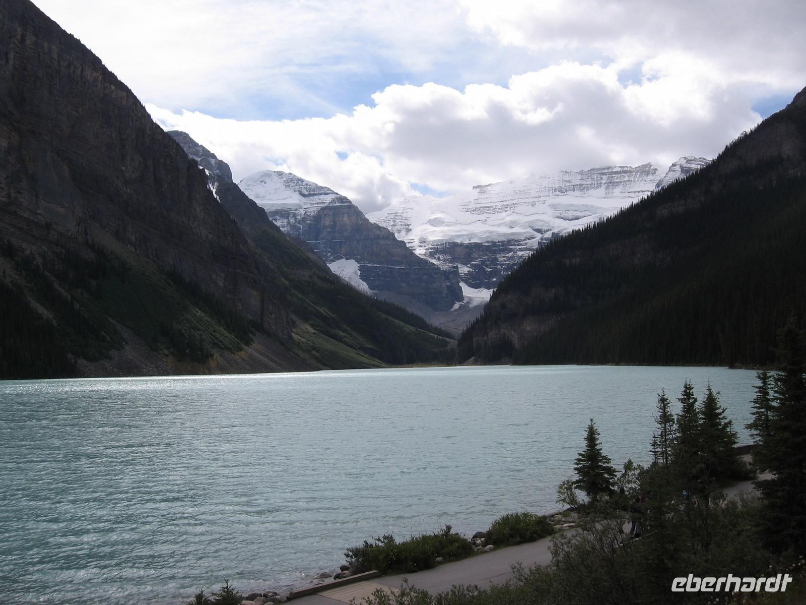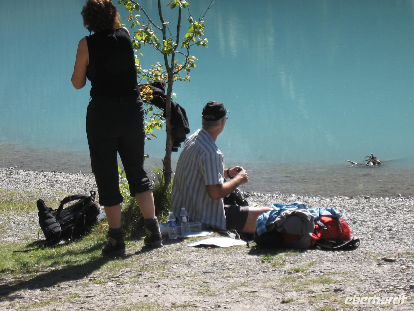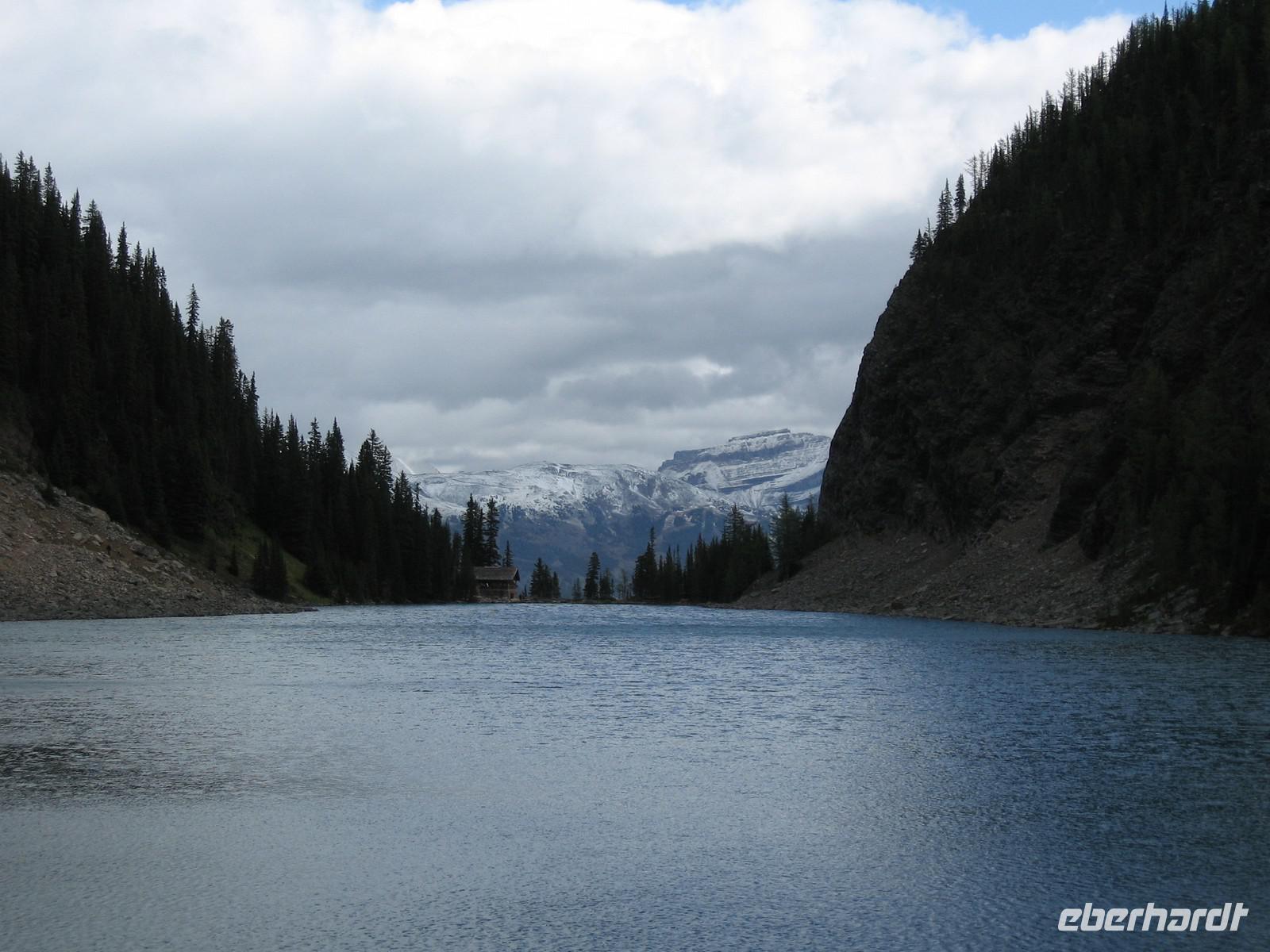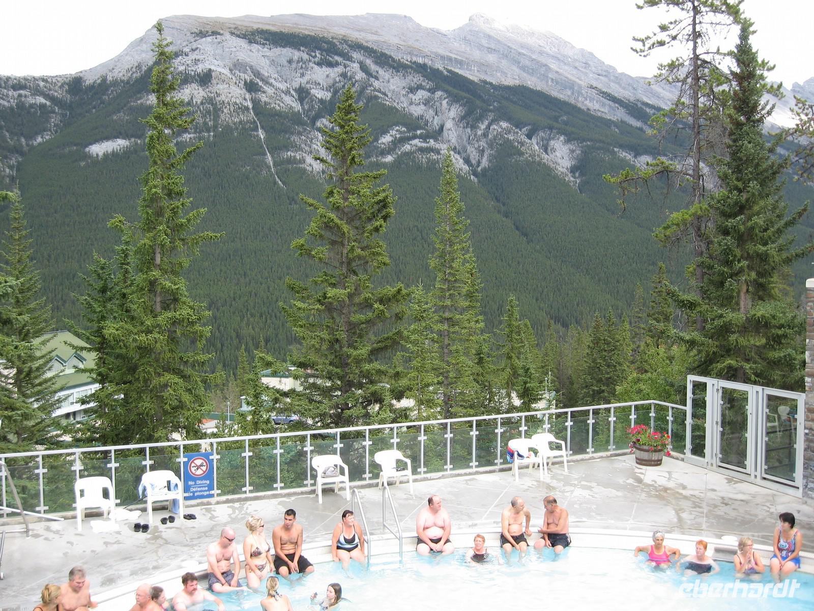 Der erste Blick aus dem Fenster zeigt uns heute Morgen leicht gezuckerte Bergsitzen. Über Nacht hat es geschneit. Es ist auch ziemlich kalt, einige Touristen auf den Straßen tragen Handschuhe und Mützen. Barry hingegen kommt mit kurzen Hosen und meint die Wetterprognose wäre so schlecht nicht. Kühl bleibt es aber den ganzen Tag und am Nachmittag zeigt sich uns sogar richtig die Sonne. Nach dem Frühstück steht die erste Wanderung an, gleich am ersten Tag die Königsetappe unserer Reise. Wir fahren nach Lake Louise, diesem malerisch gelegenen Bergsee mit dem berühmten Hotel Chateau Lake Louise. Entstanden ist dieses Hotel mit dem Bau der Eisenbahn quer durch Kanada um den Tourismus zu fördern. Und so ist diese Gegend auch noch heute in großer Zahl Menschen an, nur das keiner mehr mit der Eisenbahn kommt. Die Canadian Pacific Railway, in der ersten Nacht hat sie uns mehrfach geweckt, betreibt heute bis auf einen Touristenzug nur noch Güterverkehr. Am Chateau Lake Louise beginnt unsere Wanderung und es wird uns durchaus recht schnell warm. Gleichmäßig steigt der Weg immer an bis zum Mirror Lake. Nach einer kurzen Pause geht es über einen kurzen Anstieg hinauf zum Agnes Tea House. Es ist eine der wenigen bewirtschafteten Hütten die es hier gibt und für viele Kanadier, welche gerade ein langes Wochenende hier verbringen, ein Anziehungspunkt. Nachdem wir den Agnes Lake umwandert haben wartet der schwerste Teil auf uns, in Serpentinen haben wir nochmal gut 200 Höhenmeter bis zum „Great Beehive", dem großen Bienenstock, zu überwinden. Die Anstrengung lohnt sich auf jeden Fall. Unser nach oben getragenes Picknick können wir mit Blick auf den türkisfarbenen Lake Louise und die umliegenden Berge genussvoll zu uns nehmen. Nach dem Abstieg und der Rückfahrt wollten wir ein wohltuendes Bad in den Hot Springs von Banff einnehmen. Nur wollten das am heutigen Tag auch viele andere Kanadier und Touristen. So haben entschieden das auf den nächsten Tag zu verschieben und das war gut so.