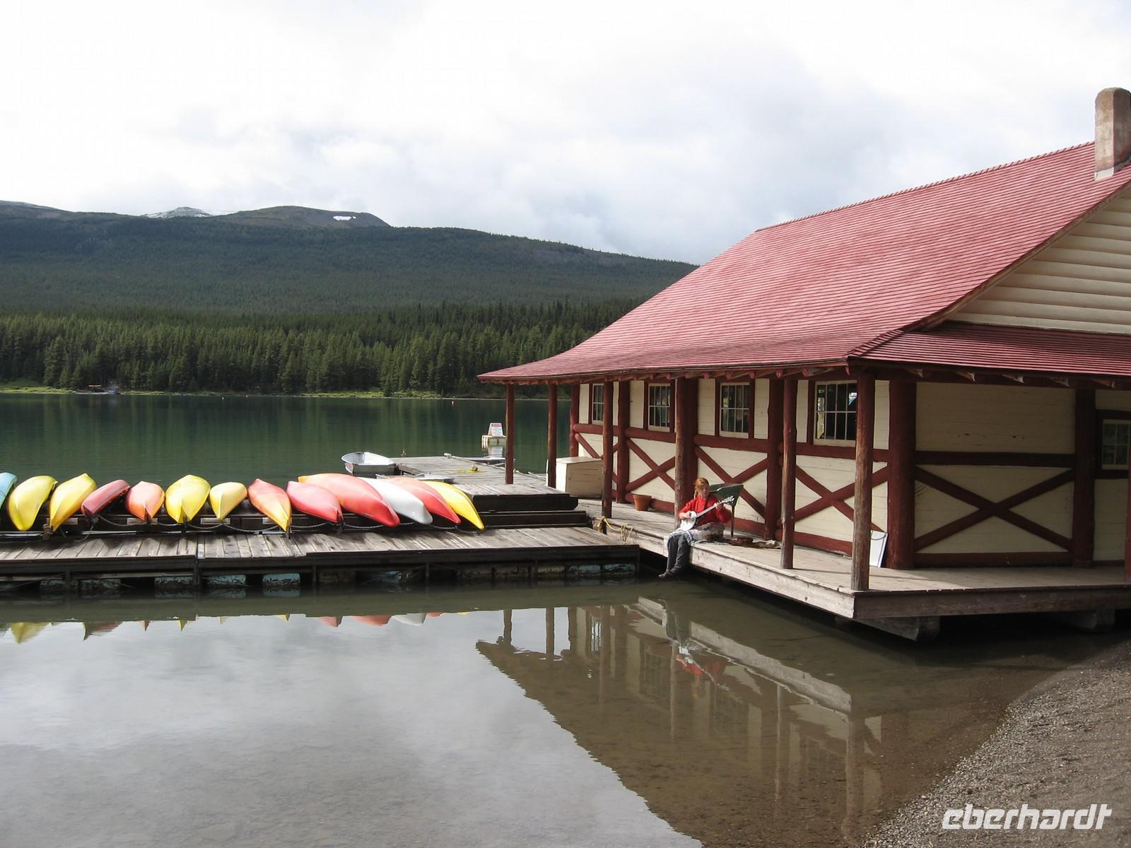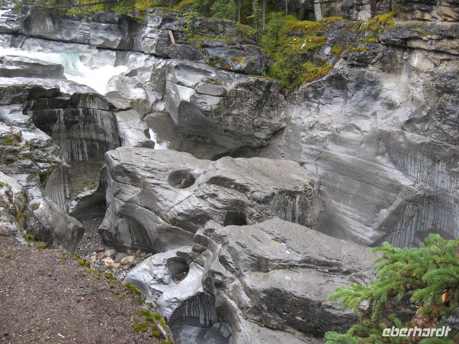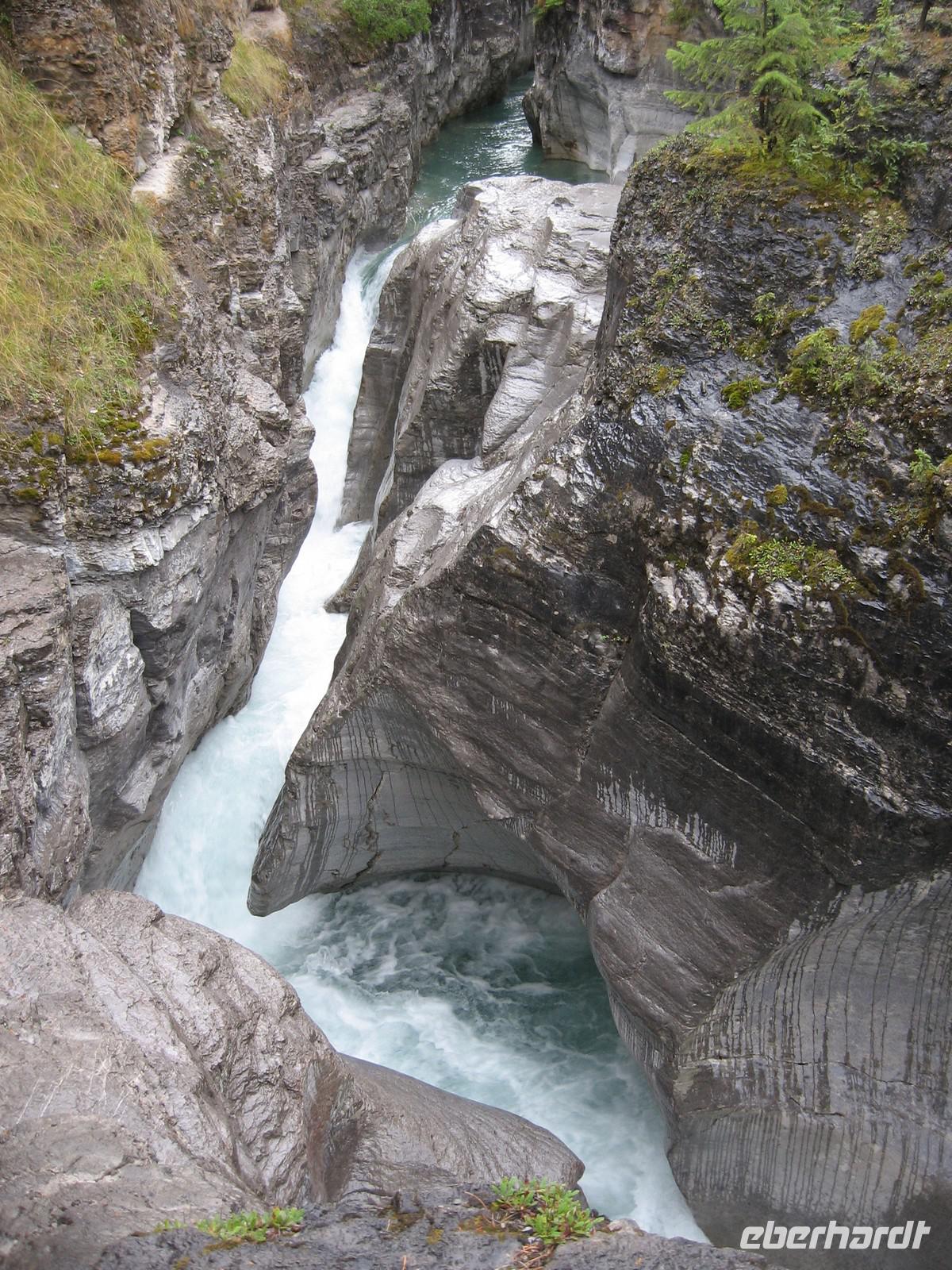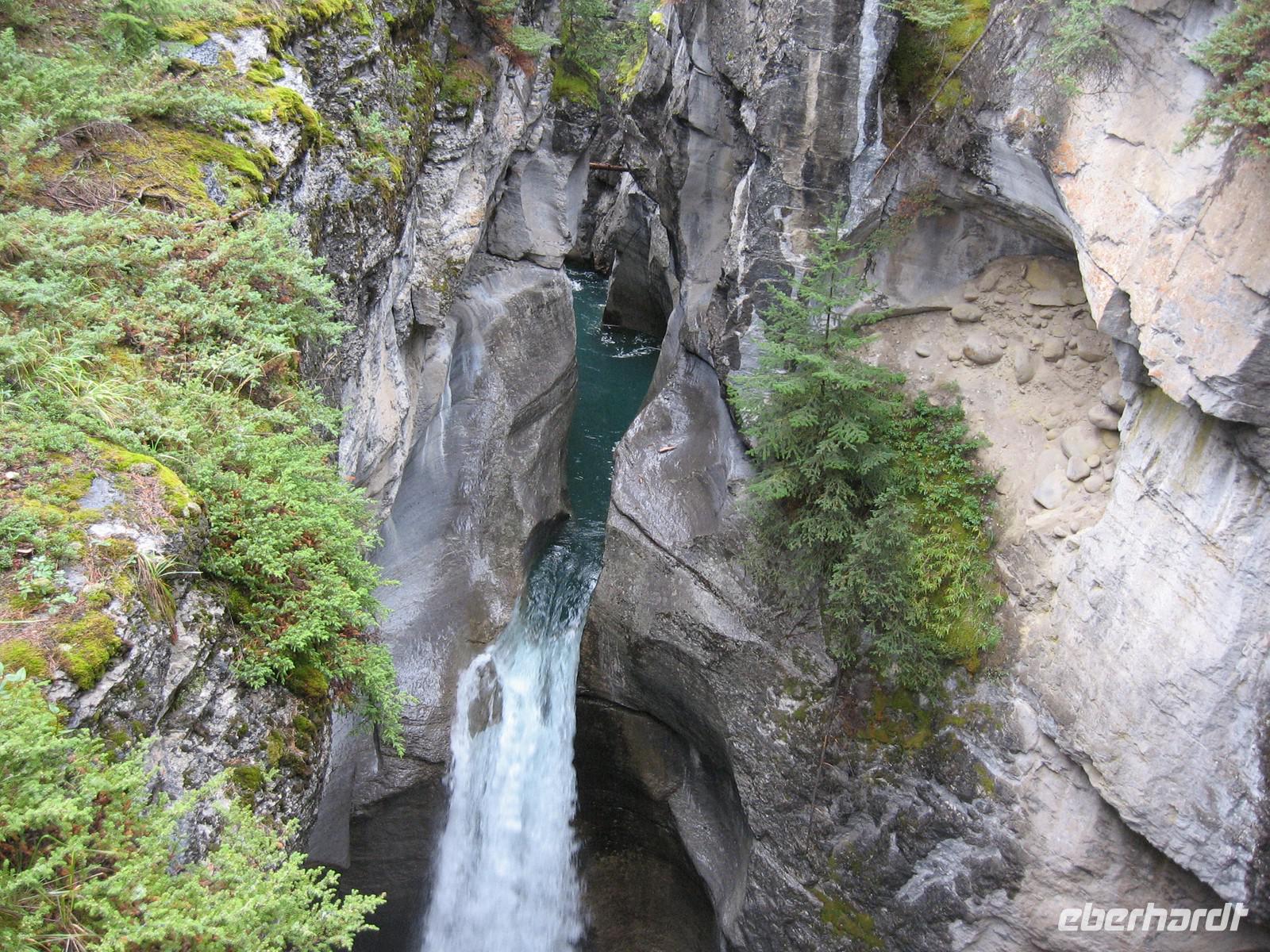 Nach dem Frühstück fahren wir kanadische fünf Minuten, diese sind etwa mal drei zu multiplizieren, zu den Athabasca Falls. Ebenfalls ein mächtiger Wasserfall, der wie auch alle anderen welchen wir gesehen haben und noch sehen werden eine durchaus magische Anziehung auf uns macht. Das Wetter spielt allerdings heute nicht so mit wie wir es gerne hätten. Man könnte auch sagen, das ein Teil des Tages ins Wasser fiel. Unsere Wanderung durch den Maligne Canyon war davon betroffen. Da im Winter eine Brücke zerstört wurde wollte Barry den Einstieg an einer anderen nehmen, aber auch die war wie vom Erdboden verschluckt. Barry machte sich auf die Suche und wir warteten als getreue Schafe auf ihn. Dabei standen wir sprichwörtlich im Regen. Als Barry aus der Wildnis zurück kam war aber Mohsen mit seinem Bus schon weg, denn er sollte uns an anderer Stelle abholen. Barry hatte sein Telefon im Bus und ich die Nummer von Mohsen. Aber ein kurzer Anruf in Vancouver dann hatten wir die Nummer und konnten Mohsen zurück rufen. Nach einem wärmenden Getränk im Restaurant am Canyon und fast keinem Regen sind wir dann von oben in den Maligne Canyon eingestiegen und haben die Kraft des Wassers bestaunt. Mit dem Bus ging es dann weiter entlang des Medicine Lake zum Maligne Lake. Barry und Mohsen hatten uns Hoffnung auf vierbeinige Fotoobjekte gemacht, aber an diesem feuchten Tag hatten auch Tiere keine rechte Lust sich zu zeigen. Nach einer Mittagspause am Maligne Lake sind wir noch gut eine Stunde auf dem Mary Schaffer Loop gewandert. Entlang des Sees und später durch einen mit Moosen und Pilzen reich verzierten Wald. Das war ein sehr schöner Ausgleich für den regnerischen Vormittag. Zurück in Jasper hatten wir etwas Freizeit bevor wir mit einem individuellen Abendessen im Earl's Restaurant den Tag beendeten.
