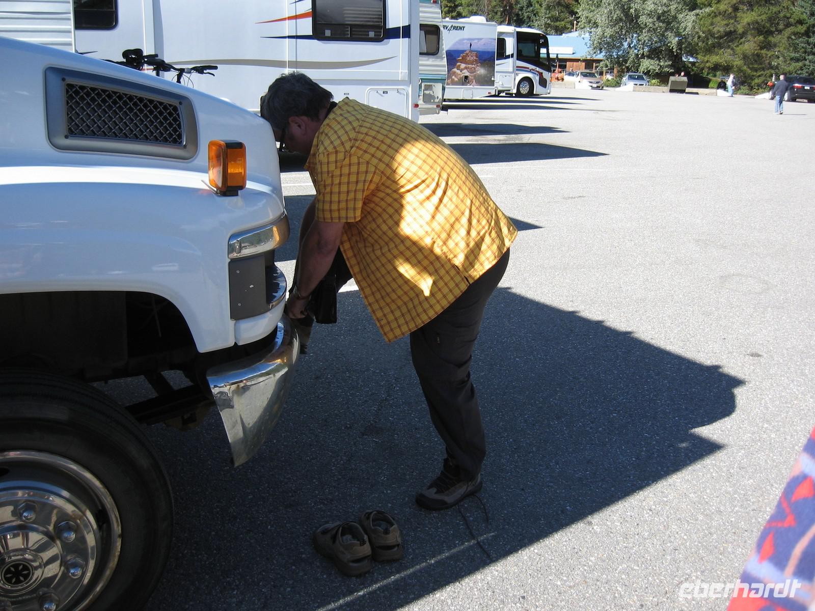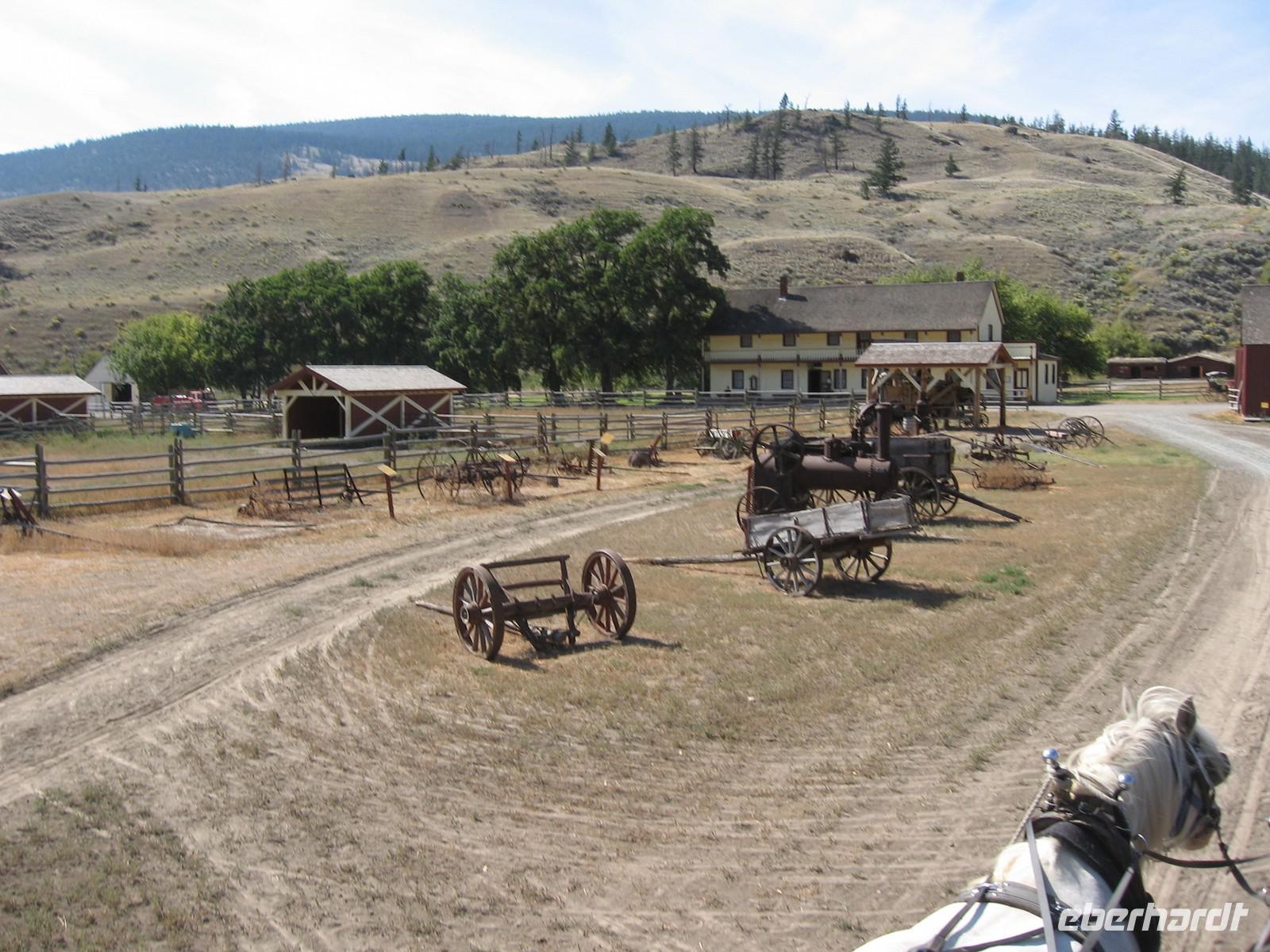 Heute ist unser Umsetz-Tag oder besser wir verschieben uns heute. So sagt Barry immer. Über 400 Kilometer liegen vor uns, welche allerdings nicht weniger erlebnisreich sind. Das geht schon kurz nach Clearwater los. Da führt über den Fraser River eine Gierseilfähre und Barry schlägt vor mal hin und her zu fahren. Ich bespreche noch kurz etwas mit Mohsen und schwups ist die Fähre weg. Die ganze Gruppe winkt mir zu und die Freude ist groß. Vorbei an Kamloops erreichen wir die alte Goldgräber Route. Der Boom ist natürlich schon lange vorbei und heute sucht hier kein Mensch mehr nach Gold. Aber dieser Drang des Menschen Reichtum und ein besseres Leben zu erlangen hat im 19. Jh. geholfen einen Großteil des Landes zu erschließen. Nicht weit hinter Kamloops, der Name ist indianisch und bedeutet soviel wie Zusammenfluss, findet in einem Dorf ein Rodeo statt. Natürlich halten wir, so etwas können wir uns nicht entgehen lassen. Junge Cowgirls müssen nach Zeit einen Rundkurs reiten und das machen erstaunlich gut. Das ist echtes Wild West Feeling, wir kennen es eigentlich nur vom Fernsehen. Wenig Später erreichen wir die „Hat Creek Ranch". Heute ein Museum aber auch hier ist fast alles echt. Zuerst fahren wir ein Stück mit der Postkutsche und stellen fest das es sich heute eindeutig komfortabler reisen lässt. Mit Staunen betrachten wir das Hat Creek House, früher eines der komfortabelsten Rasthäuser an der „Cariboo Wagon Road". Hotelzimmer, Küche, Saloon, Laden, alles ist zugänglich und noch so erhalten wie vor über 100 Jahren. Ebenso interessant das indianische Besuchszentrum auf der Ranch, hier vor allem das Grubenhaus. Auf indianisch wird es Kekuli genannt und war in erster Linie eine Winterunterkunft. Im Garten des Hat Creek House, mit Apfelbäumen die schon 150 Jahre alt sein sollen, machen wir unser Mittagspicknick. Idylle pur. Weiter reisen wir durch eine heiße, fast kahle Landschaft, passieren mehrere Indianerdörfer und erreichen später wieder die grüne Gebirgslandschaft. Ein kurzer Halt an einem Flussufer verdeutlicht uns nochmal den Lebenszyklus eines Lachses, denn hier am Ufer liegen zahlreiche verendete Lachse. Wir stehen doch ein wenig erstaunt da, das die Erklärungen von Barry so zur Wirklichkeit wird hätten wir nicht erwartet. Wenig später erreichen wir den ehemaligen Olympiaort der Winterspiele 2010, Whistler. Im Aava Hotel kommen wir für die nächsten zwei Nächte unter.