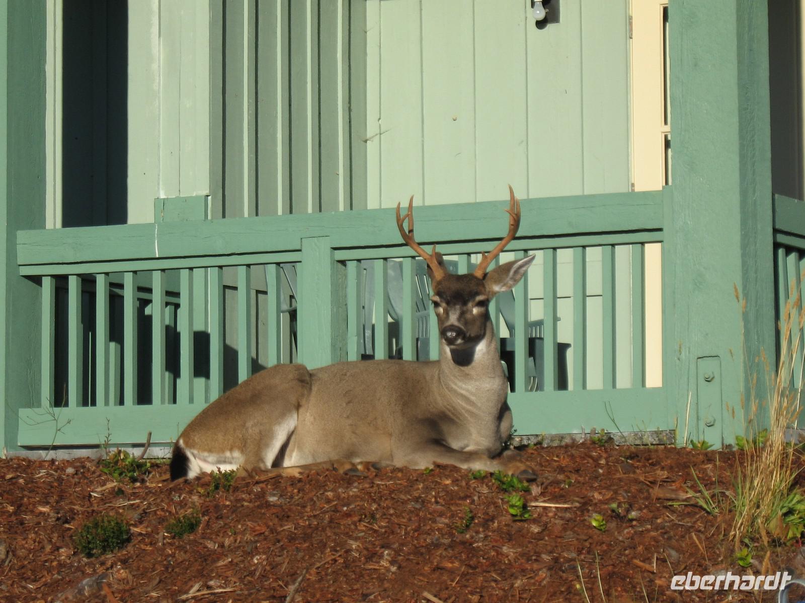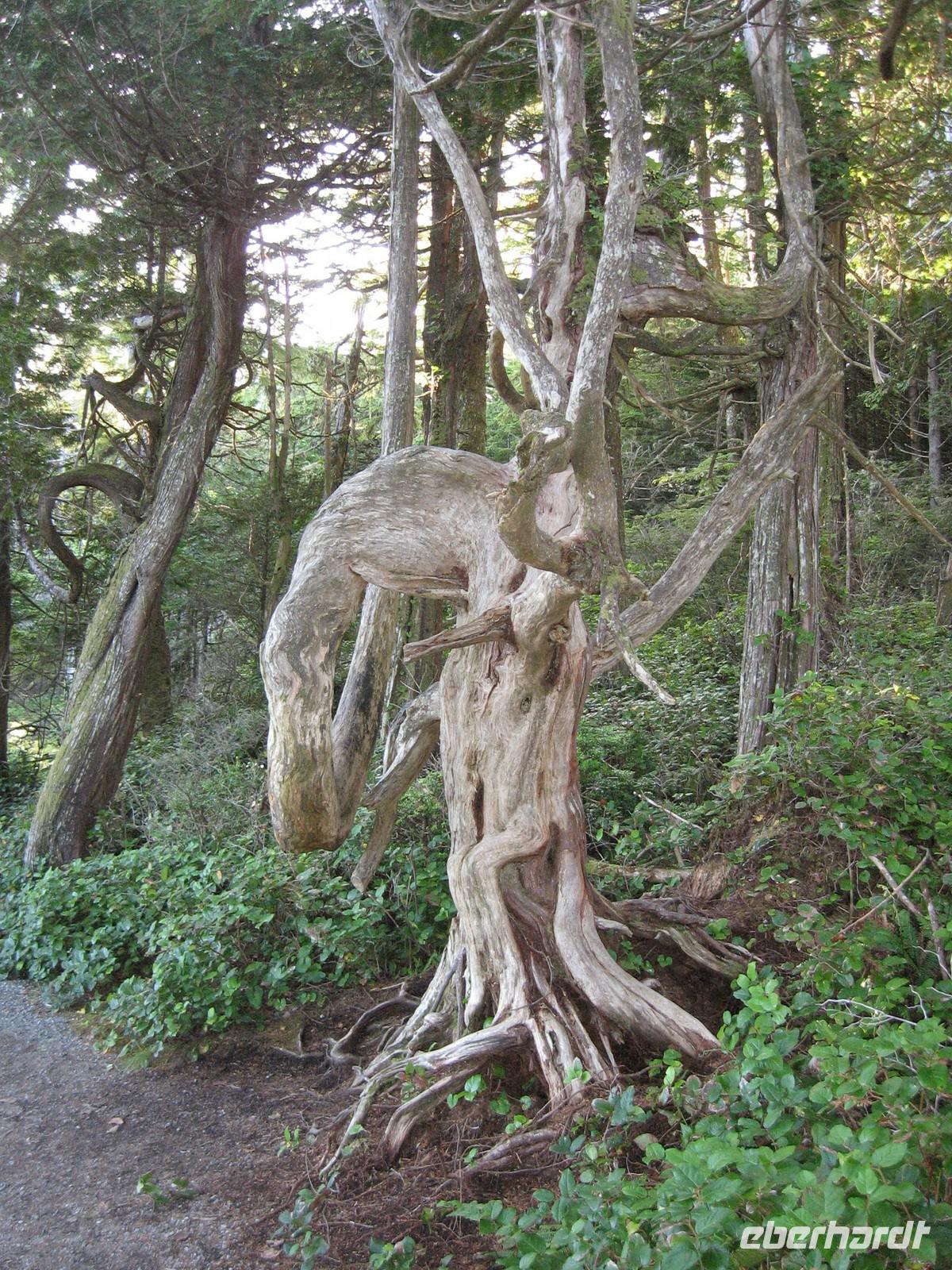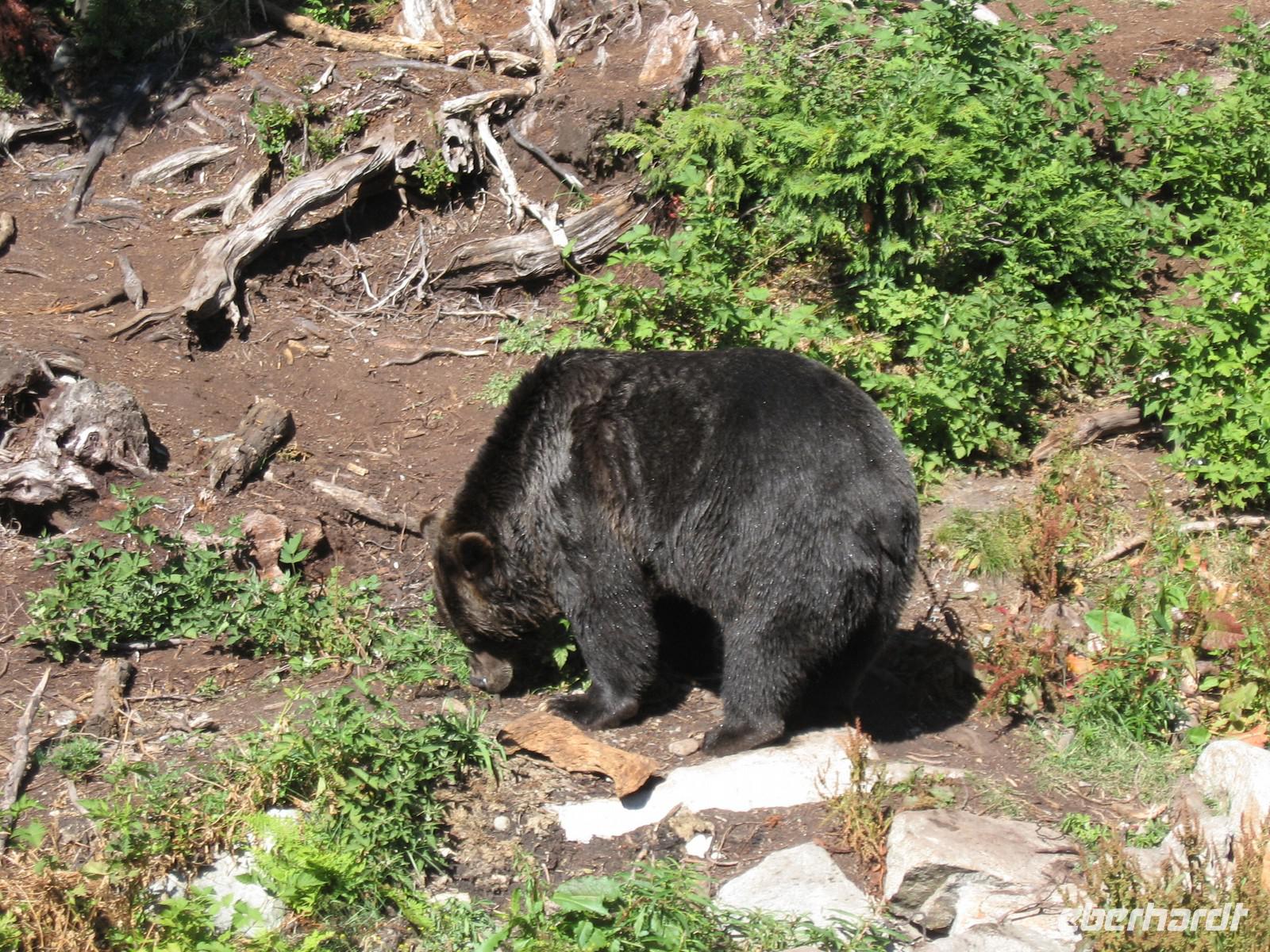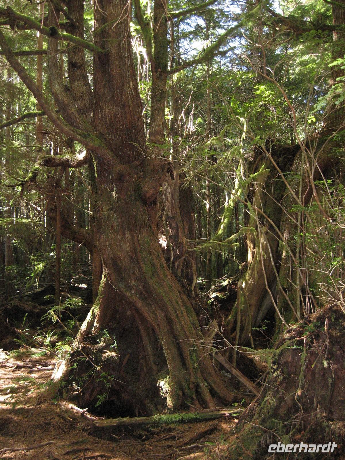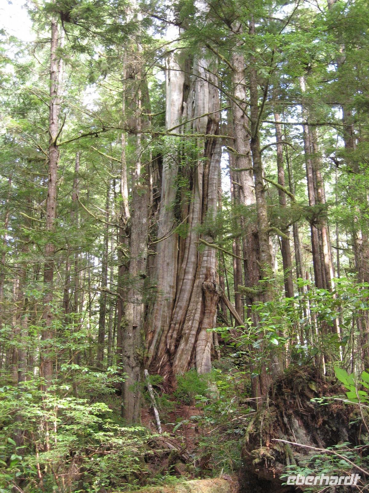 Abschied von den Bergen heißt es heute Morgen, aber wir werden sie wieder bekommen. Von Whistler geht die Fahrt an den Pacific nach Horseshoe Bay. Von hier geht die Fähre der „BC Lines" nach Vancouver Island. Diese, Vancouver vorgelagerte, Insel ist eigentlich schon ein kleines Westkanada für sich. Vom Hafen Nanaimo fahren wir nach Coombs, einem früheren Aussteiger- und Hippiedorf. Bei „Goats on the Roof", was ein Supermarkt mit Ziegen auf dem Dach ist können wir uns fürs Picknick eindecken. Über die Berge fahren wir nach Port Alberni und von dort weiter zur Pacific Küste. Bei traumhaftem Wetter machen wir einen schönen Strandspaziergang und laufen durch einen urigen Wald. Das alles ist schon ein Teil des Pacific Rim National Park. Und heute hätte es fast geklappt das wir einen Bären getroffen hätten. Er hatte seine frische Losung hinterlassen und hatte dann wohl vor unserer Übermacht das Weite gesucht. Ein letztes Stück fahren wir nach Uclulet, für zwei Nächte wird das Canadian Princess Resort unser Übernachtungsort sein. Zu Abend essen wir auf dem alten Steamer im Hafen und der Koch verwöhnt uns gar sehr. Als wir ihm den „Elchruf" als Dank überbringen schaut er doch sehr verwundert. So etwas hatte er noch nie erlebt.