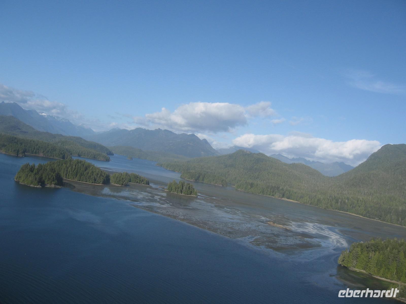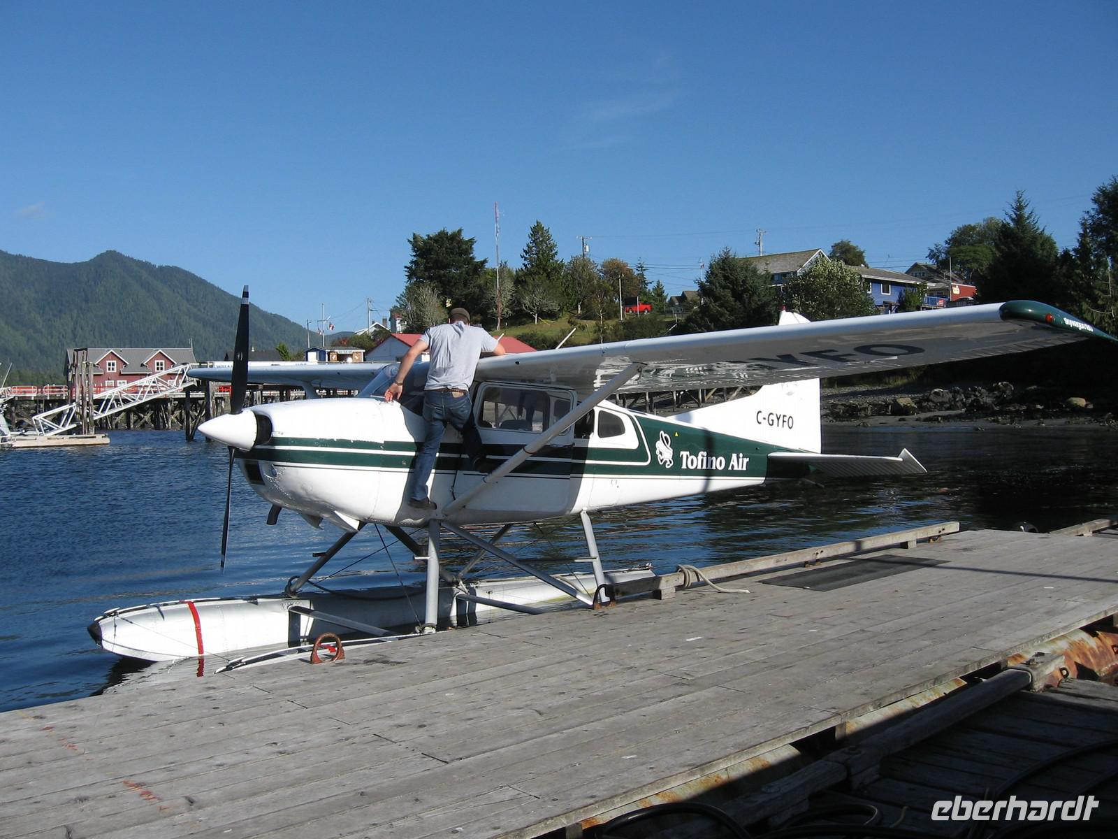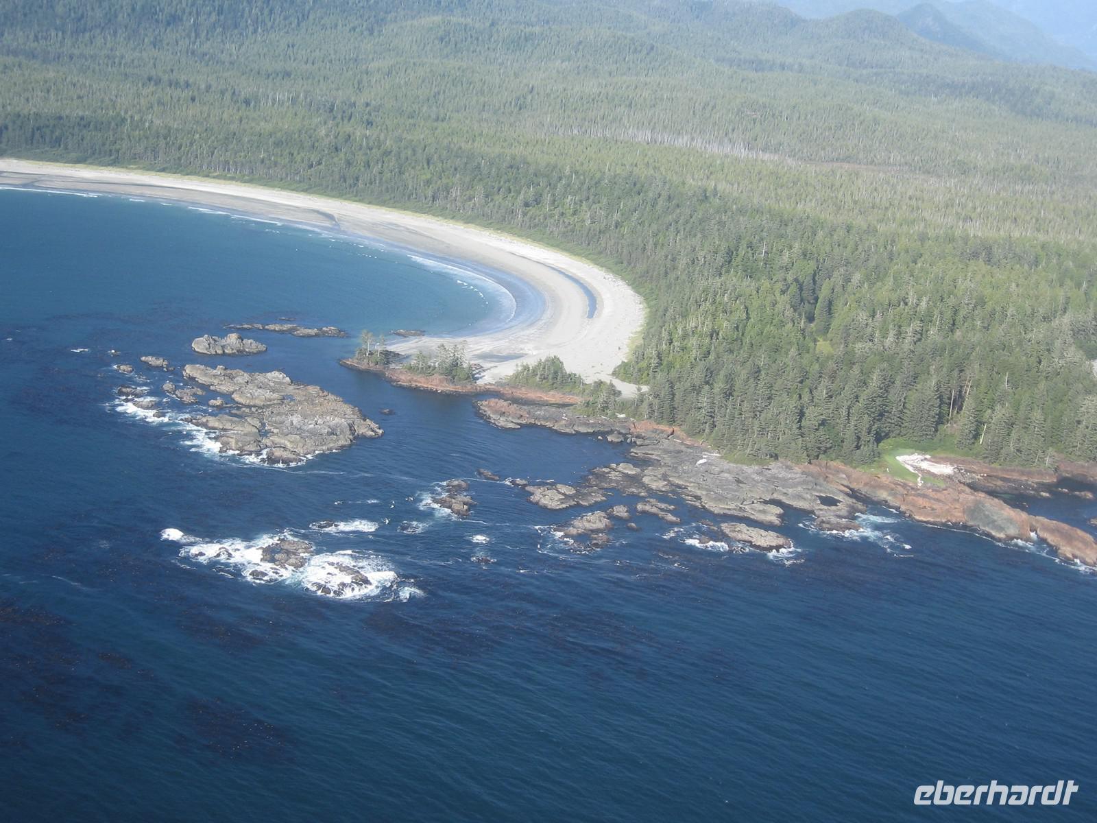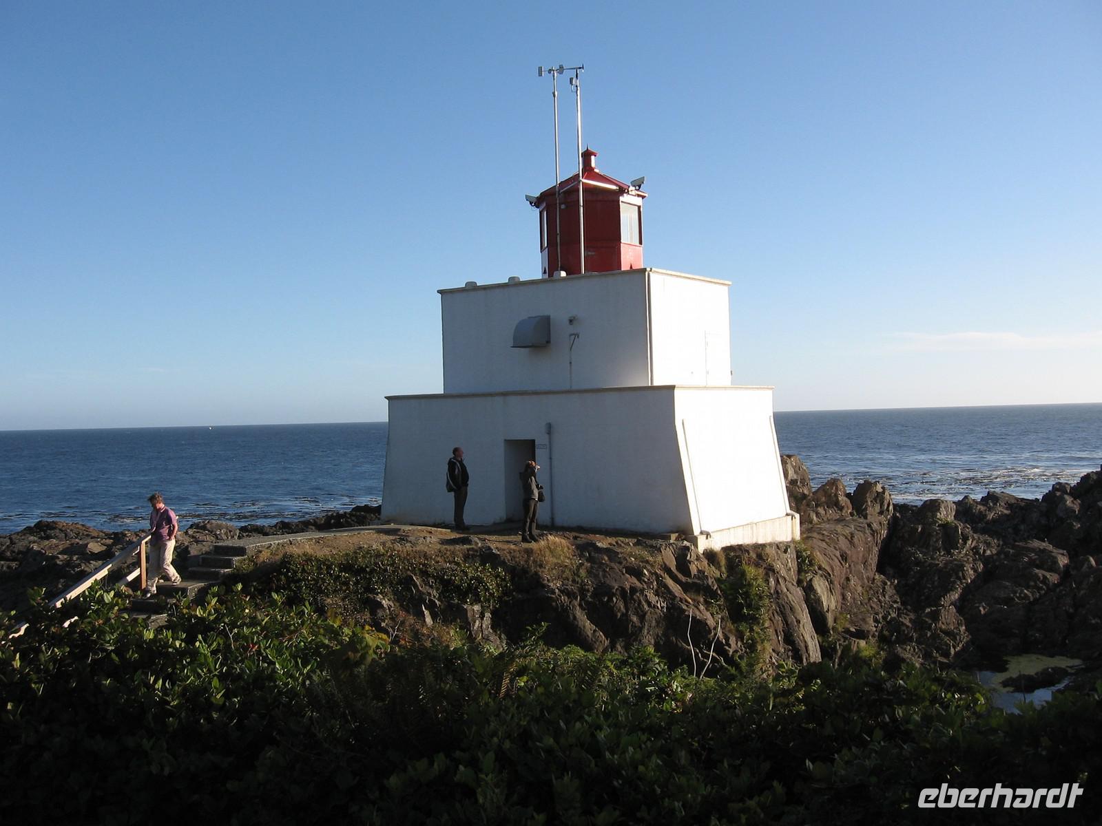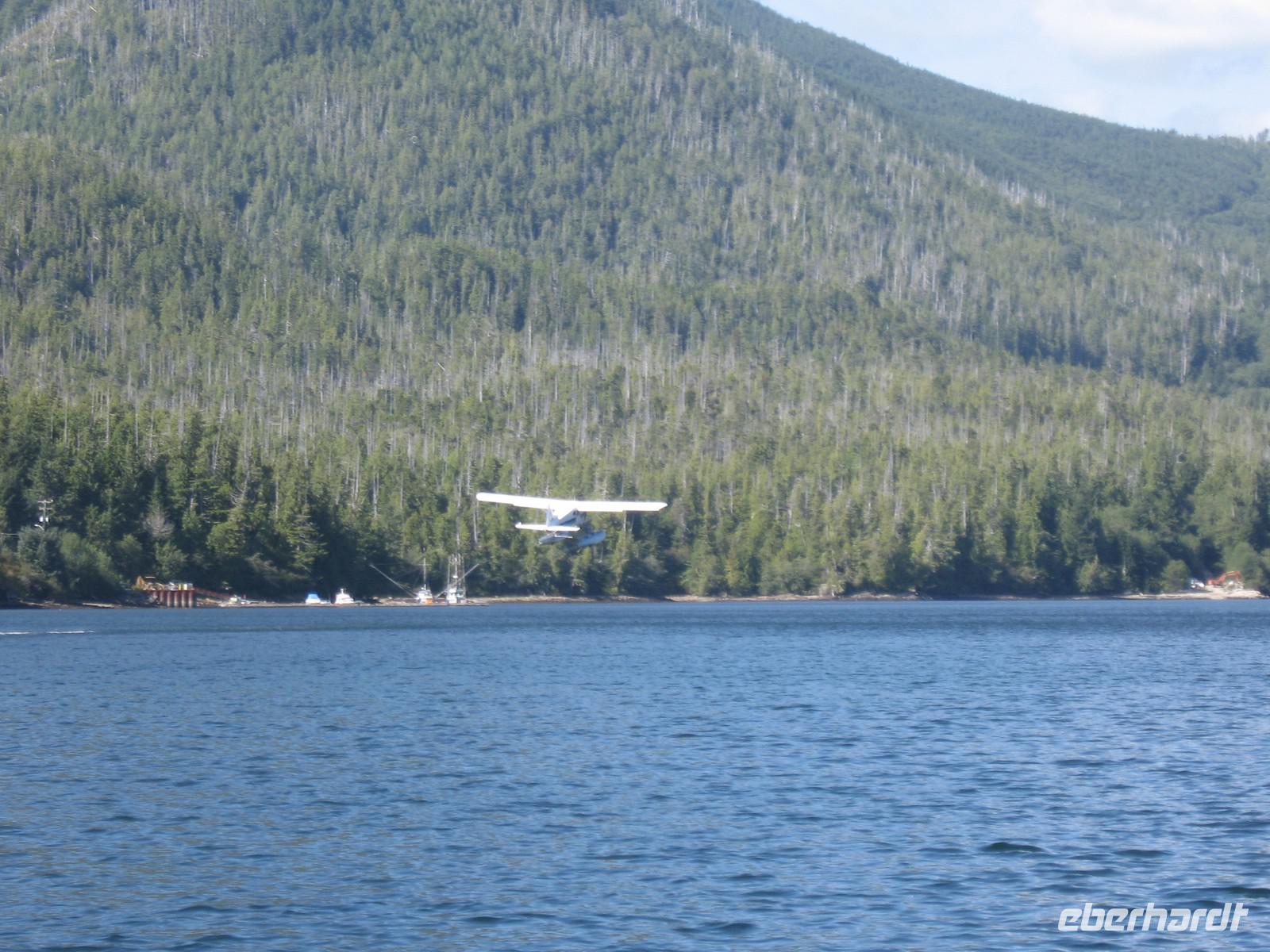 Von Uclulet fahren wir nach Tofino. Genau wie Uclulet nach dem Saisonende eher ein verschlafener Ort an der Westküste von Vancouver Island. Fakultativ steht heute Whale-Watching auf dem Programm. Nachdem alle Formalitäten erledigt sind geht es aufs Boot und hinaus aufs Meer. Die Jungs welche die Boote fahren sind nicht zimperlich und mir persönlich wird es in der Magengegend doch recht flau. Ich bin allerdings alleine mit dem Problem, alle anderen Gäste fühlen sich großartig. Einen bzw. zwei Grauwale bekommen wir unterwegs auch zu sehen, also ich sehe die Fontaine und auch mal die Schwanzflosse. Später treffen wir auf Seehunde und später Seelöwen, sehen Wasservögel und Seeotter. Ziel ist die Hot Spring Cove im Maquinna Provicial Park. Vom Bootssteg laufen wir durch gemäßigten Regenwald, wie uns Barry erklärt. Das Zusammenspiel der Bäume, Moose und Pflanzen ist fantastisch, immer wieder hat man den Eindruck wir sind in einem Märchenwald unterwegs. Mit Blick auf die Bucht nehmen wir unser Lunch und wer Lust hat kann auch in der heißen Quelle baden, ganz natürlich, einfach zwischen den Felsen. Einige aus unserer Gruppe nutzen das uns sind begeistert, andere machen noch einen Spaziergang durch den Wald. Zurück nach Tofino geht es dann mit dem Wasserflugzeug. Maximal sechs Personen können auf einmal fliegen, so dass wir gestaffelt abreisen. Es ist ein toller Eindruck, das Meer und die vielen Inseln von oben zu betrachten. Von Tofino aus fahren wir wieder nach Uclulet. Eine Wanderung wollen wir noch auf dem „Wild Ocean Trail" rund um den Leuchtturm in Uclulet machen. Wieder ein Märchenwald und immer wieder tolle Blicke aufs Meer. Nach einem wieder köstlichen Abendessen gehen wir müde und voller Erlebnisse zu Bett.