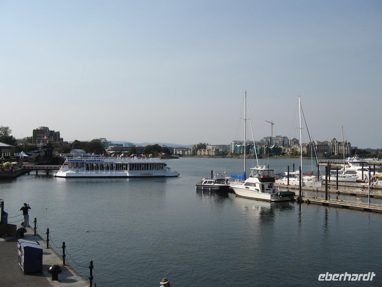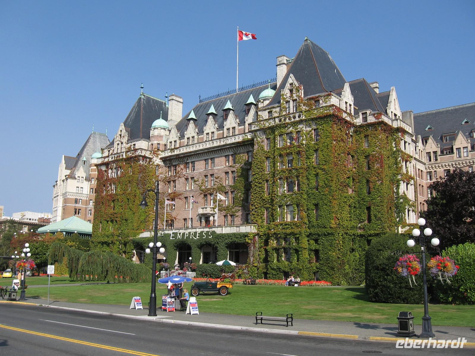 Nach dem Frühstück fahren wir zu den Butcharts Gärten. Barry nutzt nicht den direkten Weg, sondern wir fahren entlang der Oak Bay mit Blick auf den Pazifik. Vom Mount Dougles haben wir einen wunderbaren Blick über ganz Victoria. Unser Vormittagsziel ist „The Butcharts Gardens". Die bereits 1904 entstandene Gartenanlage geht auf eine Idee von Jennie Butchart zurück, welche den ehemaligen Kalksteinbruch verschönern wollte der die Zementfabrik ihres Mannes Robert Pim Butchart versorgt hatte. Innerhalb der Anlage können verschiedene Bereiche wie der „Sunken Garden", der Rosengarten, der Japanische Garten und der Italienische Garten besichtigt werden. Die Blumenpracht jetzt im September ist immer noch gewaltig, ich glaube am meisten haben die Dahlien gefallen. Im Blue Poppy Restaurant essen wir heute zu Mittag, die reichhaltige Auswahl lässt Herz und Magen erfreuen. Der Nachmittag steht uns in Victoria zur freien Verfügung. Neben zahlreichen Möglichkeiten zum Einkaufen bietet sich auch ein Besuch des BC Museums an, es ist möglich mit den Wassertaxis zu fahren oder auch noch einen Bummel durch den schönen Beacon Hill Park zu machen. Wunderbar zu Abend essen wir heute direkt an der Harbour Waterfront im Restaurant „Milestone".