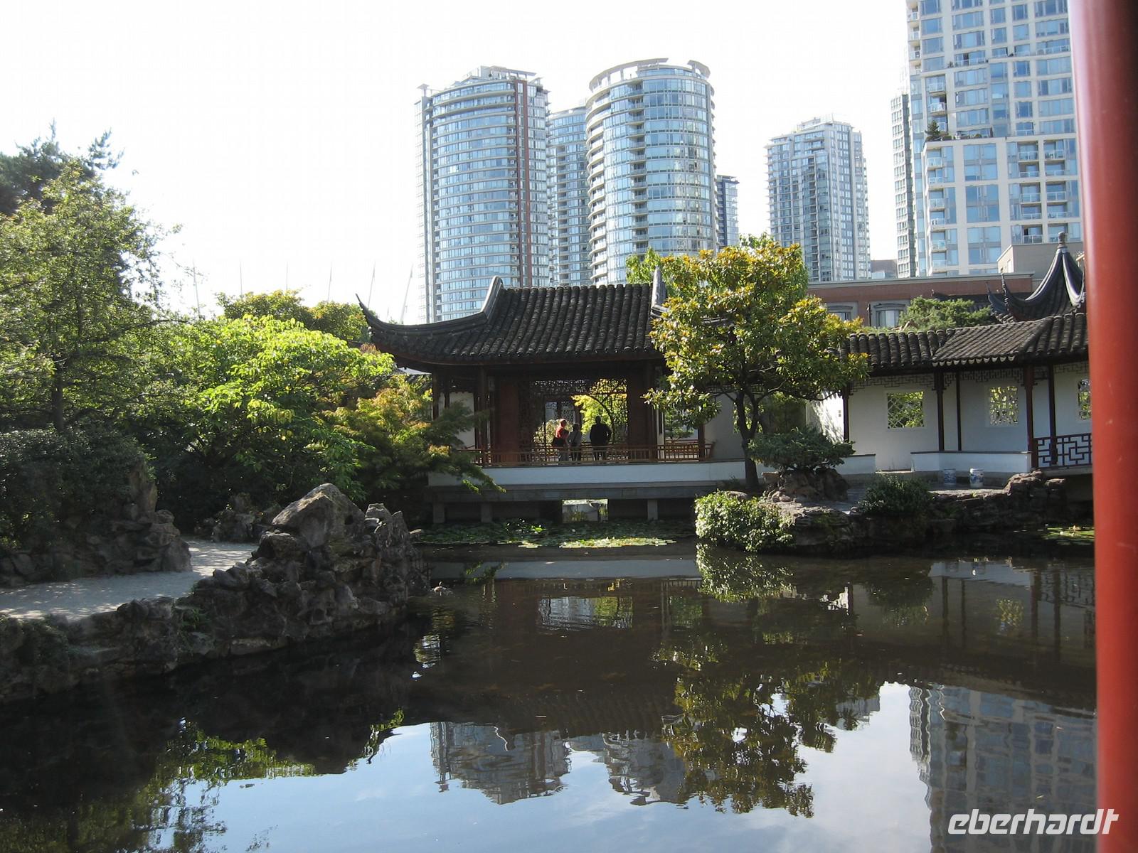 Victoria verlassen wir heute am Morgen und fahren für die letzten drei Nächte auf kanadischem Boden nach Vancouver. Bevor es in Swartz Bay für 1,5 h auf die Fähre geht machen wir noch einen kurzen Abstecher nach Sidney by the Sea. Die Fährüberfahrt ist recht abwechslungsreich, führt uns zwischen zahlreichen Inseln entlang bis wir schließlich in Tsawwassen ankommen. Von hier aus sind es auch nur wenige Minuten mit dem Auto zur Grenze Kanada-USA. Erster Anlaufpunkt bin Vancouver ist der Public Market auf Granville Island. In dem ehemaligen Industriegebiet haben sich heute viele Kunsthandwerker angesiedelt aber es gibt auch einen richtigen Markt mit Gemüse, Käse, Fleisch usw. Natürlich kommt auch das leibliche Wohl in Form von Imbissständen nicht zu kurz. Wir nutzen die Gelegenheit zum bummeln und wer möchte kann natürlich auch etwas essen. Danach geht es rein nach Downtown Vancouver. Wir fahren schon mal an unserem Hotel, dem Quality Inn, vorbei nach Yaletown um dann Chinatown zu erreichen. Vancouver hat nach San Francisco die zweitgrößte Anzahl an chinesisch stämmigen Einwohnern. Wir statten dem „Dr. Sun Yat-Sen Garden", einer Oase inmitten der lauten Großstadt einen kurzen Besuch ab. Danach schauen wir mal wie viel Eissorten man so herstellen kann. In der „Vancouver Gelaterie Italia" sind es sage und schreibe 218. Natürlich gibt es für jeden eine Kostprobe, die Entscheidung ist allerdings schon schwer. In Gastown staunen wir nicht schlecht über eine Dampfuhr, welche auch noch zur rechten Zeit mit ihren fünf Dampfpfeifen eine Melodie spielt. Entlang der Waterfront sehen wir die Kreuzfahrtschiffe und das Olympische Feuer von 2010. Über die Robson Street, der Haupteinkaufsstraße von Vancouver, erreichen wir Stanley Park. Zum einem steht man hier nochmal vor der Kulisse der Stadt zum anderen kann man dort auch den „Totem Poles" bestaunen. Es handelt sich dabei um eine größere Ansammlung von indianischen Totem pfählen. Barry erklärt uns die Zusammensetzung und die Aussage der Totem, dabei spielt viel indianische Mythologie eine Rolle. Vorbei an der Lions Bridge erreichen wir am frühen Abend unser Hotel. Heute heißt es endgültig Abschied nehmen von unserem Busfahrer Mohsen. Er hat noch eine weite Strecke vor sich, muss er doch zurück nach Calgary. Der Abend steht uns zur freien Verfügung und so kann jeder nach seinen Interessen die Stadt erkunden.