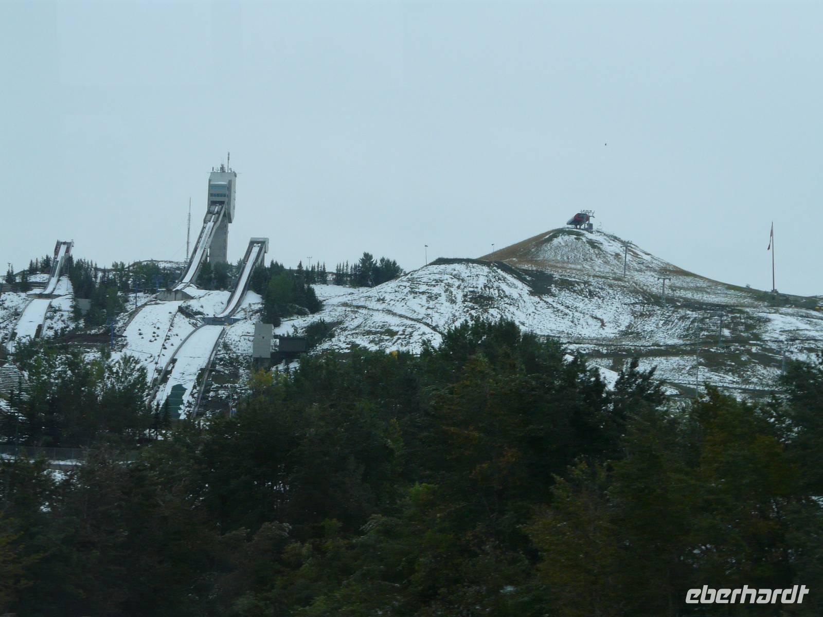 Auf dem Flughafen in Frankfurt trifft sich unsere Reisegruppe. Mit Zubringerflügen oder direkt gelangen wir zum größten Drehkreuz in Deutschland, wo unser Abenteuer beginnt. Obwohl etwas hecktisch, erreichen wir doch alle pünktlich unseren Flieger nach Calgary. Nach 9 Stunden Flug erreichen wir Calgary und durch die Zeitumstellung haben wir immernoch einen halben Tag, um die ersten Eindrücke zu sammeln. Etwas geschockt sind wir dann aber doch, als sich die kanadische Olympiastadt dann in einem weißen Gewand zeigt - Schnee im September! Glücklicherweise werden wir schon in Halle des Flughafens von unserem Reiseleiter Peter erwartet und der Weg zum Bus ist nicht sehr weit. Hier treffen wir auf unseren Busfahrer Mohsen, der uns im Laufe der Reise sehr ans Herz wachsen soll... Unser Erlebnis Kanada beginnt also. Wir machen eine kurze Stadtrundfahrt durch Calgary, sehen die alten Olympiaanlagen und sind eigentlich nur erstaunt über den vielen Verkehr. Die Weiterfahrt nach Banff dauert dann doch noch eine Weile und so scheint jeder etwas in Gedanken versunken die ersten Eindrücke aufzusaugen. Nachdem wir unser Hotel erreichen, heißt es nur noch schnell zu Abend essen um danach todmüde ins Bett zu fallen.