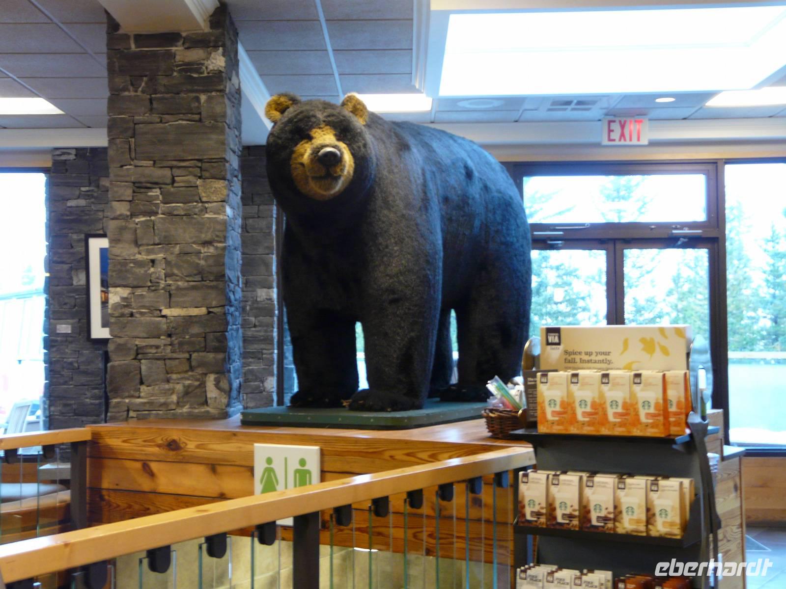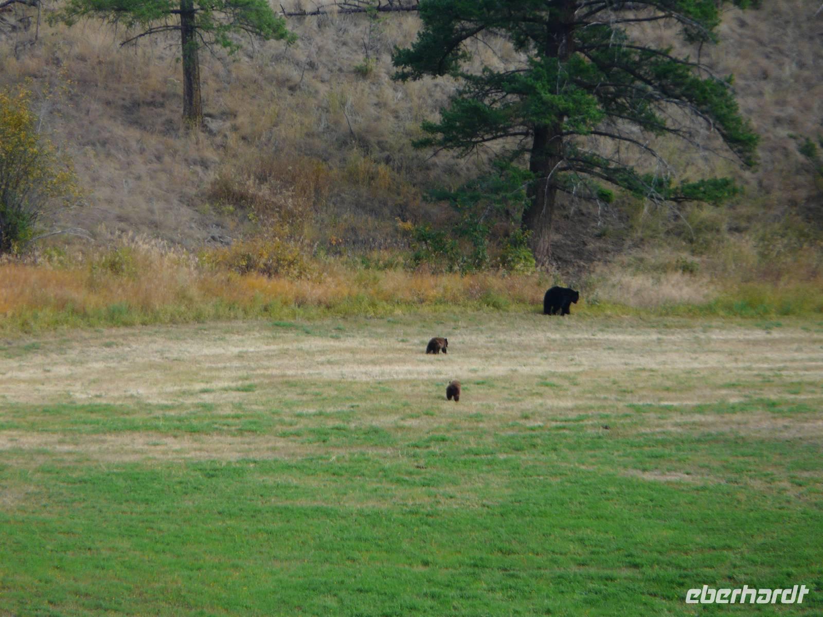 Am Abend wartet ein typisch amerikanisches Barbecue. Wir haben die Wahl zwischen Steak und Fisch, dazu gibt es leckeren Caesar's Salad, Ofenkartoffeln und natürlich guten Wein! Doch bevor wir anfangen zu schlemmen, hat Peter noch ein kleines Schmankerl vorbereitet. Wir treffen uns, jeder mit einem Glas bewaffnet, in der Mitte der Lodge an einem Holztisch und verkosten guten kanadischen Whiskey, angereichert mit Ahornsirup. Klingt zuerst komisch, schmeckt aber sehr gut! Danach folgt das unheimlich leckere Barbecue, mit einer weiteren kleinen Überraschung im Anschluss. Peter stellt uns Heidi vor, eine junge Biologin, die im Nationalpark arbeitet und uns auf sehr interessante und vor allen Dingen mehr als anschauliche Weise die Tierwelt der Rocky Mountains vorstellt. Ich denke, von uns hat noch nie jemand einen so lebendigen Bären gesehen, oder?