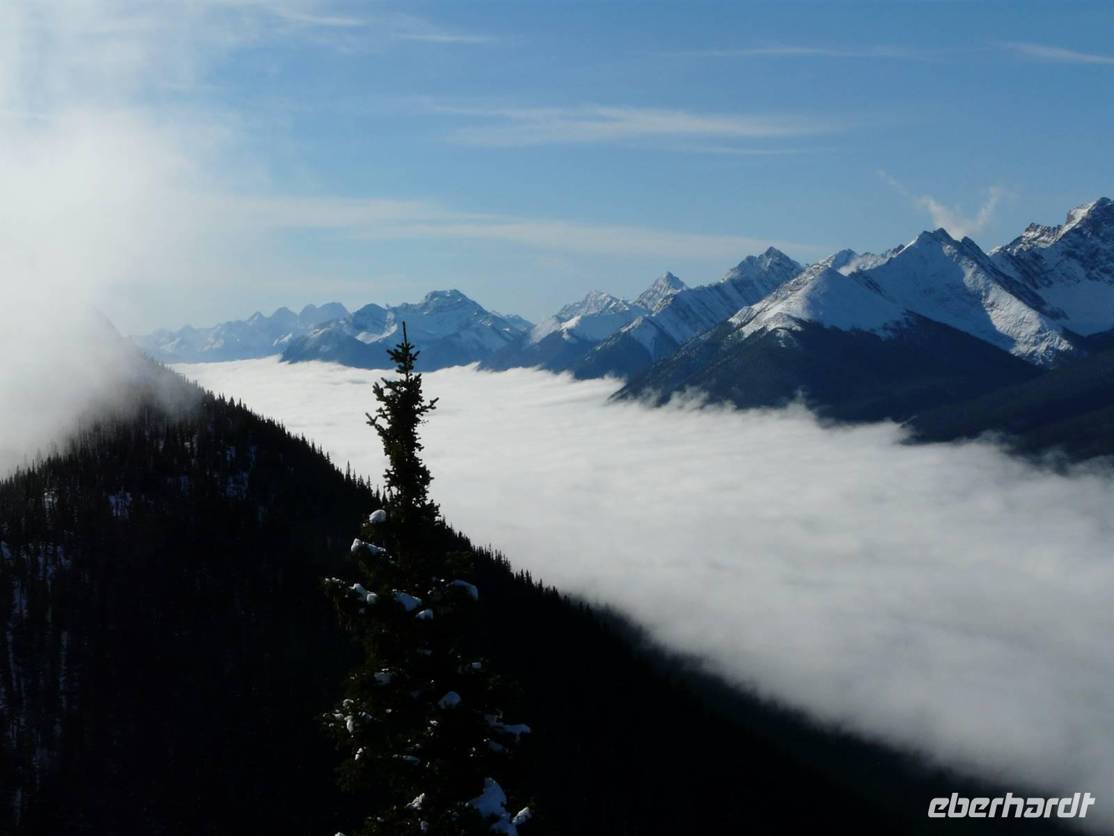 Die Rockies haben eine eisige Begrüßung für uns vorbereitet. Als wir am Morgen unser Hotel, das Irwing's Inn verlassen, sind die Autoscheiben mit Eis beschlagen, die Berggipfel schneebedeckt. Nicht der beste Beginn für so eine Reise, denkt wohl jeder für sich, als wir im Bus Richtung Sulphur Mountain sitzen. Hier erwartet uns ein Frühstück im Panorama-Restaurant hoch oben auf dem Berg. Nach kurzer Fahrt erreichen wir die Seilbahnstation unweit von Banff und fahren hinauf auf knapp 2000 Meter. Und dann die Überraschung - die Seilbahn bringt uns quasi über die Wolken und auf dem Berg haben wir schönsten Sonnenschein und einen atemberaubenden Ausblick in die schneebedeckte Bergwelt der Rocky Mountains. In der Bergstation der Gondel frühstücken wir entspannt und lassen den traumhaften Ausblick auf uns wirken. Es gibt ein eher typisch amerikanisches Frühstück - Eier, Bacon, Toast, Würstchen und French Toast - und wir sammeln Energie für unsere erste Wanderung. Nachdem wir uns gestärkt haben, wartet schon der erste „Gipfel" auf uns. Über Holztreppen gelangen wir hinüber zu Gipfel des Sulphur Mountain auf 2281m. Das Panorama, welches wir auf diesem kurzen Weg hinüber haben, lässt sich kaum in Worte fassen! Einfach fantastisch, wie sich die Wolken immer wieder um die schneebedeckten Bergriesen winden, nur um ein paar Minuten später wieder zu verschwinden und uns traumhafte Ausblicke und natürlich auch wunderschöne Fotos zu ermöglichen. An der Geo-Station am Gipfel lädt dann auch noch eine kanadische Flagge für die ersten Erinnerungsfotos ein. Über die Holztreppen gelangen wir langsam zurück zur Bergstation und so froh, so zeitig aufgestanden zu sein, schließlich wird der Berg immer voller und immer mehr Touristen kommen mit der Seilbahn nach oben. Wir hingegen fahren hinab, durchqueren kurz noch mal Banff, welches mittlerweile auch erwacht zu sein scheint und Mohlsen steuert auf den First Highway zu, welcher uns bis zu unserem nächsten Ziel führt. Zum späten Vormittag stoppen wir am Johnston Canyon, um hier mit unserer ersten Wanderung zu beginnen. Der Weg entlang des Canyons ist reichlich überlaufen, doch die einzigartige Natur entschädigt natürlich dafür. Wir haben Glück, mittlerweile ist die Sonne rausgekommen, wärmt uns und sorgt dafür, dass am Canyon traumhaftes Licht zum Fotografieren ist. Wir erreichen die Lower Falls und müssen anstehen, damit wir durch ein kleines Felsloch hindurch überhaupt zum Wasserfall gelangen. Der kleine Aussichtspunkt ist dann aber so nah, dass wir noch leicht die Gischt ins Gesicht bekommen, während wir in das türkisfarbend glitzernde Wasser schauen - wunderschön! Der Weg fährt uns weiter, ein stetiges Auf und Ab auf dem angelegten Waldweg, je weiter wir laufen, desto weniger Menschen kommen uns entgegen und es wird merklich ruhiger. Wir haben mehr Zeit zum Genießen und so verringert sich auch unser Lauftempo. Nach gut einer halben Stunde erreichen wir dann auch die Upper Falls. Diesmal ist der Wasserfall etwas schmaler, aber dafür viel höher. Auch an den Seiten der Upper Falls findet das Wasser immer wieder in kleinen Strömen oder auch nur Tropfen den Weg hinab. Und immer wieder spiegeln sich die Sonnenstrahlen im Wasser... Kurz darauf entscheiden wir gemeinsam mit Peter, nicht zu den Ink Pots weiterzuwandern, sondern auf dem Rückweg Richtung Banff lieber einen Abstecher nach Lake Louise zu machen. Gesagt, getan. Gemütlich wandern wir den Trail zurück und gelangen zu Bus, wo Mohlsen schon auf uns wartet. Es geht weiter nach Lake Louise, in den weltbekannten Wintersportort und hin zu einem der schönsten Bergseen überhaupt. Unterhalb des Victoria Gletschers erstreckt sich der gleichnamige See und schimmert grün-blau. Mit den schneebedeckten Bergen im Hintergrund ist dies einfach ein toller Anblick. Peter zeigt uns noch kurz das Innere des berühmten Hotels ehe jeder etwas Freizeit hat. Nach einem weiteren kurzen Zwischenstopp am Lake Monaire geht es so langsam zurück nach Banff, wo nun noch etwas Entspannung auf uns wartet. Die Schwefelquellen am Sulphur Mountain sind Ursprung der Banff Hot Springs. Ein Teil unserer Gruppe lässt es sich nicht nehmen und legt einen kleinen Wellnessstopp ein. Bei 40°C entspannen wir im warmen Becken. Der andere Teil macht währenddessen gemeinsam mit Peter noch eine kleine Wanderung. Danach geht es für alle zusammen zurück zum Hotel. Doch Peter wäre nicht Peter, wenn nicht noch eine kleine Sache wäre, die er uns unbedingt noch zeigen muss. Und so machen wir auf dem Rückweg noch einen kurzen Stopp an den Bow Falls, welche mit der hohen Bergkette im Hintergrund erneut ein tolles Panorama geben. Den Abend lassen wir dann in einem schweizerisch-italienischen Lokal ausklingen, ehe wir nach einem vollgepackten und erlebnisreichen Tag todmüde ins Bett fallen.