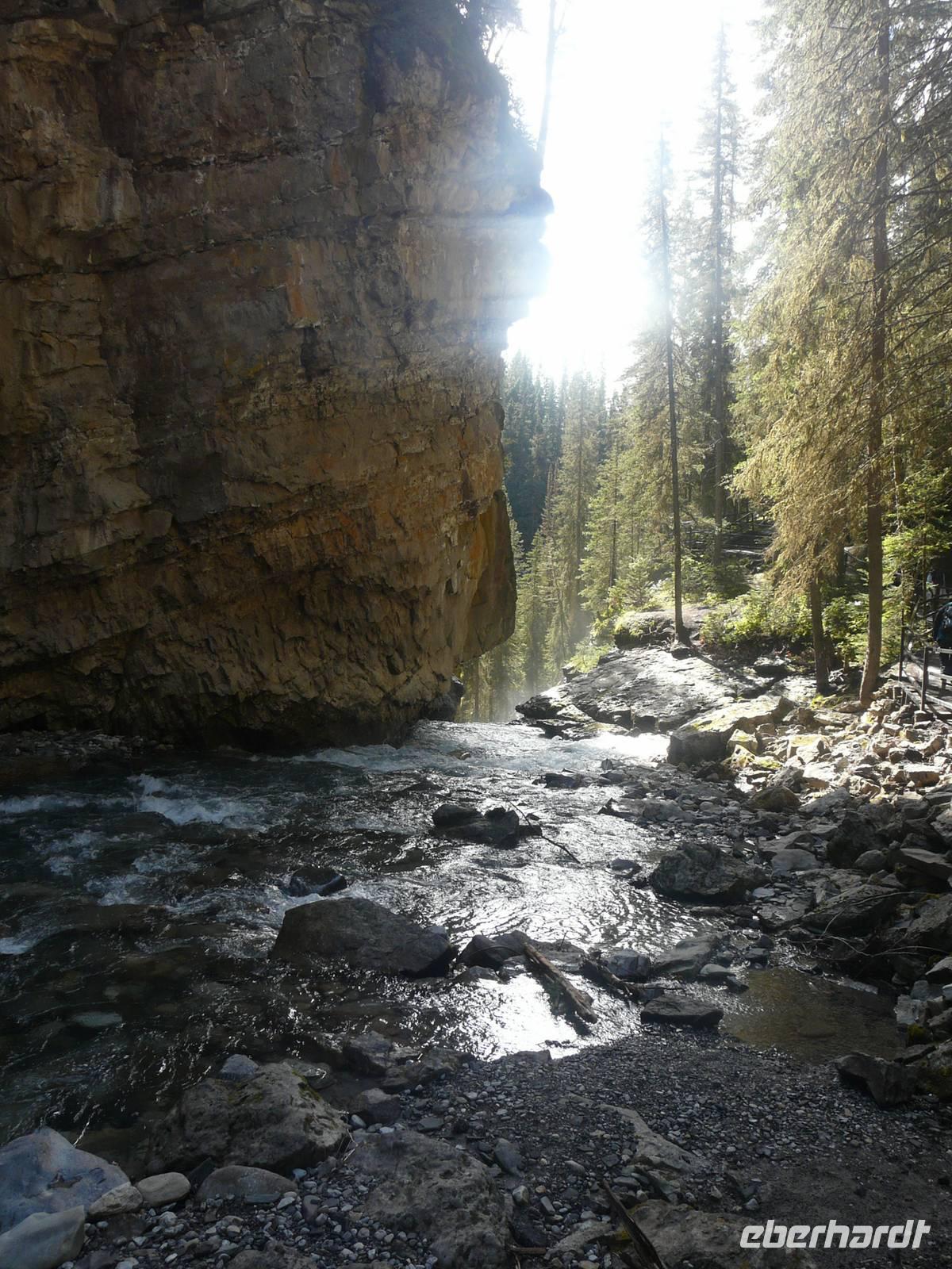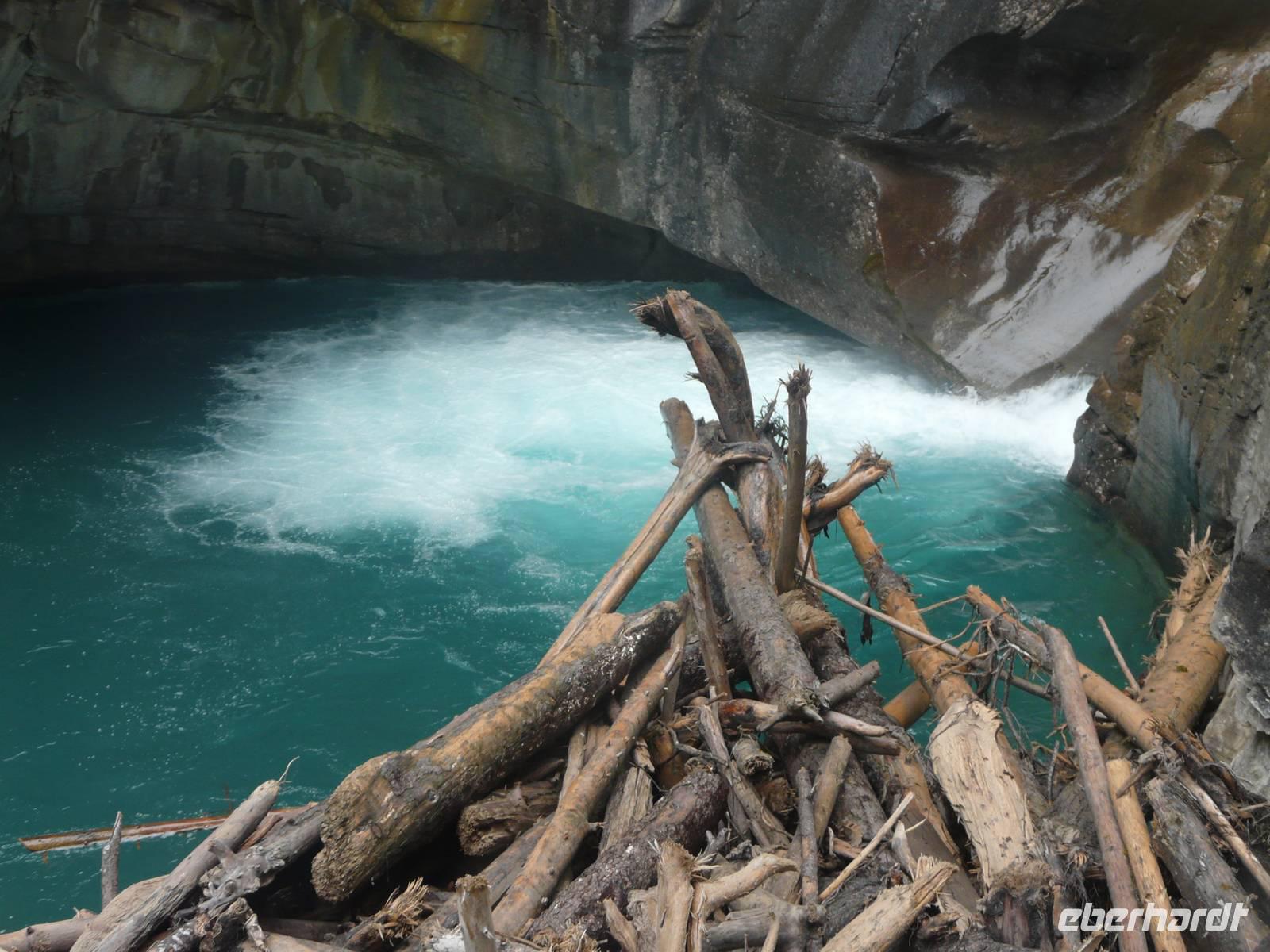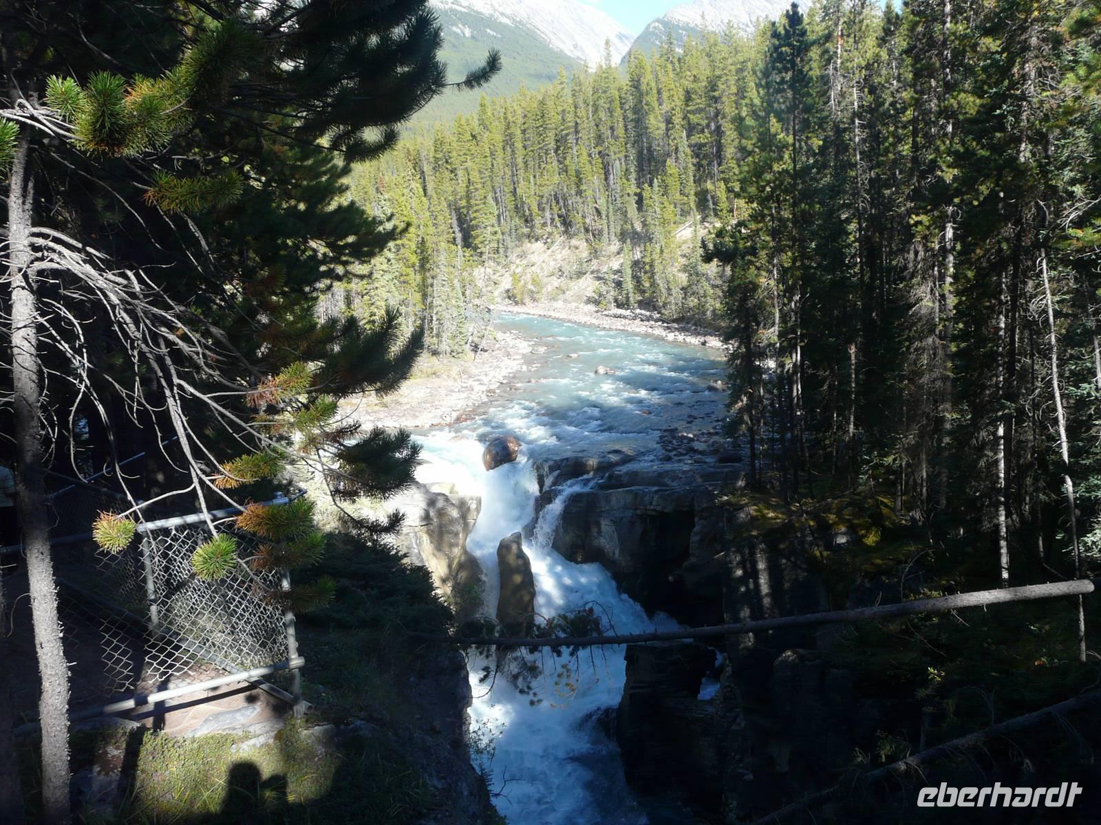Und natürlich hat Peter auch zum Nachmittag noch ein kleines Highlight für uns. Nachdem wir kurz an unserer Lodge halten und er unsere Wünsche für das Abendessen durchgibt, machen wir uns auf dem Weg zu den Sunwapta Falls. Etwas unscheinbar im Wald gelegen, laufen wir zuerst entlang eines kleinen Pfades. Wir hören die Wasserfälle bevor wir sie sehen. Auf einer kleine Brücke halten wir und sehen die Kraft des Wassers. Unter uns rauscht durch einen schmalen Canyon der Athabasca River in einer irren Geschwindigkeit. Etwas weiter vorn sehen wir, wo der Fluss mehrere Meter tief hinab fällt - ein wahres Naturschauspiel. Wenig späten befinden wir uns auf dem „Heimweg" zum Sunwapta Falls Resort, einer Lodge mitten im Wald, einfach traumhaft gelegen.