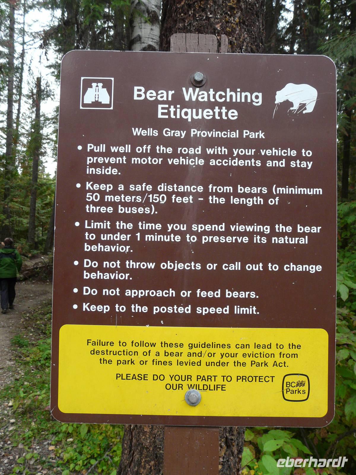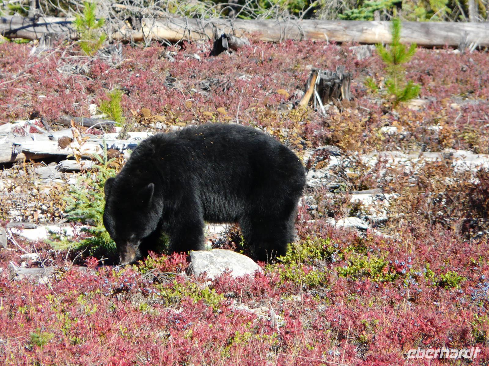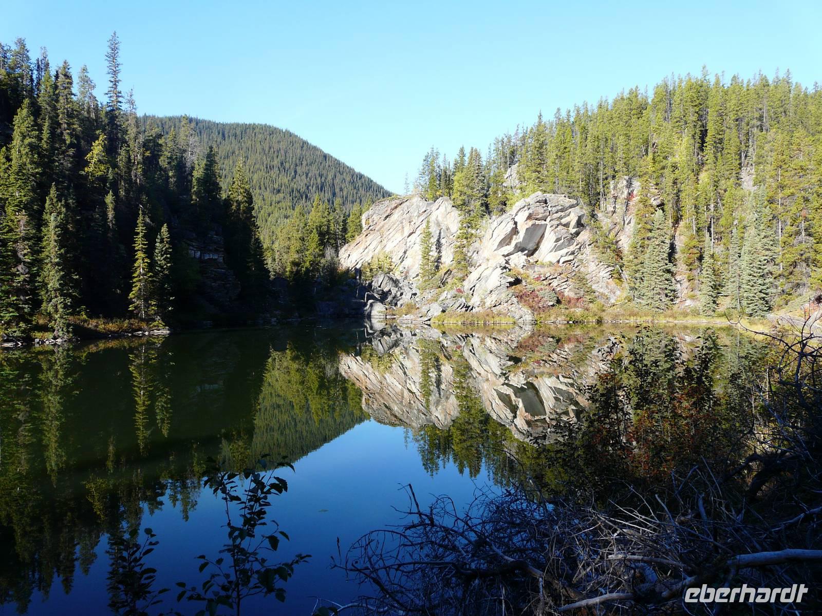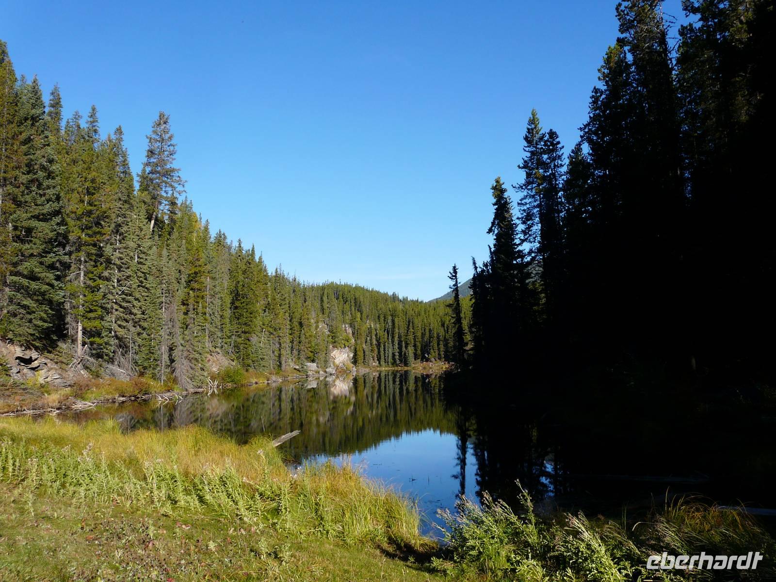 Es ist kaum zu glauben, aber auch heute scheinen wir mit traumhaftem Wetter gesegnet zu sein. Mit gepackten Koffern starten wir heute wieder zeitig, schließlich liegt ein langer Weg vor uns. Wir verlassen Alberta und fahren erstmals in die Provinz British Columbia. Am Übergang, welcher auch gleichzeitig der Eintritt in den Mount Robson National Park ist, haben wir einen „Kodak-Moment" (wie Peter Fotostopps zu bezeichnen pflegt). Der einsam gelegene See am Übergang bietet uns aber auch wieder ein traumhaftes Motiv. Die Bergwelt spiegelt sich einzigartig in dem ruhig liegenden See - wunderschön! Weiter geht es dann bis zum Besucherzentrum des Nationalparks. Nach einem kurzen Stopp bringen uns Mohsen und Peter an den Anfang des Berg Lake Trail, unserem heutigen Wanderweg, der bis zum Kinney Lake und sogar noch weiter führt. Wir starten und laufen anfangs immer parallel zum Robson River, welcher uns tosend entgegenkommt. Der Waldweg ist immer noch feucht und weist auf die letzten kalten und nassen Tage der Region hin. Überall am Wegesrand sehen wir Pilze und Flechten, auch Zedern haben hier einen guten Standort. Der Trail führt größtenteils bergan und wir scheinen fast allein zu sein. Nur ab und an kommen uns Wanderer, die wahrscheinlich am See übernachtet haben, entgegen. Wir nutzen den Sonnenschein immer wieder für tolle Motive mit dem Robson River als Hauptdarsteller, das Schimmern ist einfach zu schön. Doch das Beste kommt noch. Angekommen am Kinney Lake bietet sich uns ein atemberaubendes Panorama. Das komplette Bergmassiv rund um den Mount Robson spiegelt sich im See. Ganz sauber kann man einzelne Konturen und auch die schneebedeckten Gipfel der Berge erkennen! Traumhaft schön und eigentlich kaum in Worte zu fassen. Wir verweilen lange, genießen den Ausblick und testen mit unseren Händen die eiskalte Wassertemperatur - zum Baden hatte anscheinend niemand Lust ;-) ?! So langsam machen wir uns aber dann doch auf den Rückweg, schließlich wartet noch die lange Fahrt nach Clearwater auf uns. Nachdem wir in Valemont vergeblich nach den ersten Lachsen Ausschau gehalten haben, wartet nun unerwartet die kanadische Bürokratie und Willkür auf uns. Bei einer allgemeinen Verkehrskontrolle werden wir herausgewunken. Die Officer checken den Bus mehrmals bis auf's kleinste Detail - so lange es der Sicherheit dient, ist dies natürlich völlig in Ordnung. Als wir dann aber wegen eines Blinkers, der zu schwach blinkt zurück fahren müssen und die nächste Werkstatt aufsuchen müssen, ist dann nicht mehr in Ordnung. Auch Mohsen ist merklich not amused. So verlieren insgesamt 1,5 Stunden. Zurück aus der Werkstatt also erneut vorbei an der Kontrolle, die uns diesmal eher desinteressiert durchwinkt. Dass dieses ganze Hin und Her dann doch von Vorteil war, kann zu diesem Moment niemand ahnen. Denn 10 Minuten später sichten wir ihn - den ersten echten Bären unserer Reise! Vom Bus aus versucht nun jeder die besten Fotos zu schießen oder genießt einfach nur den Anblick des jungen Schwarzbären. Dass wir schon so zeitig unseren Bären sehen, hätte wohl gerade heute niemand gedacht!