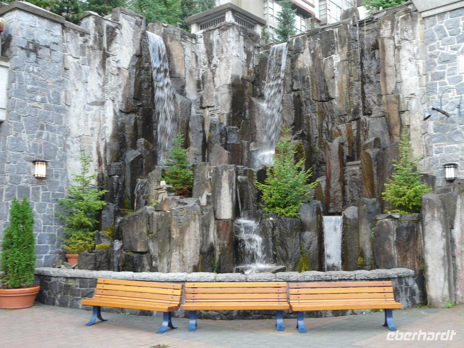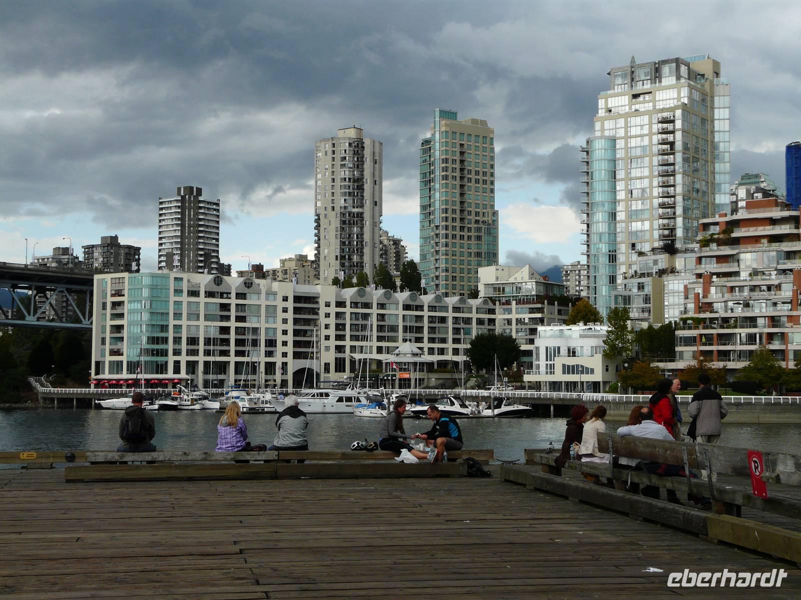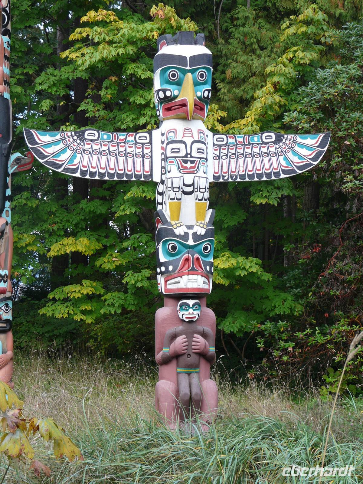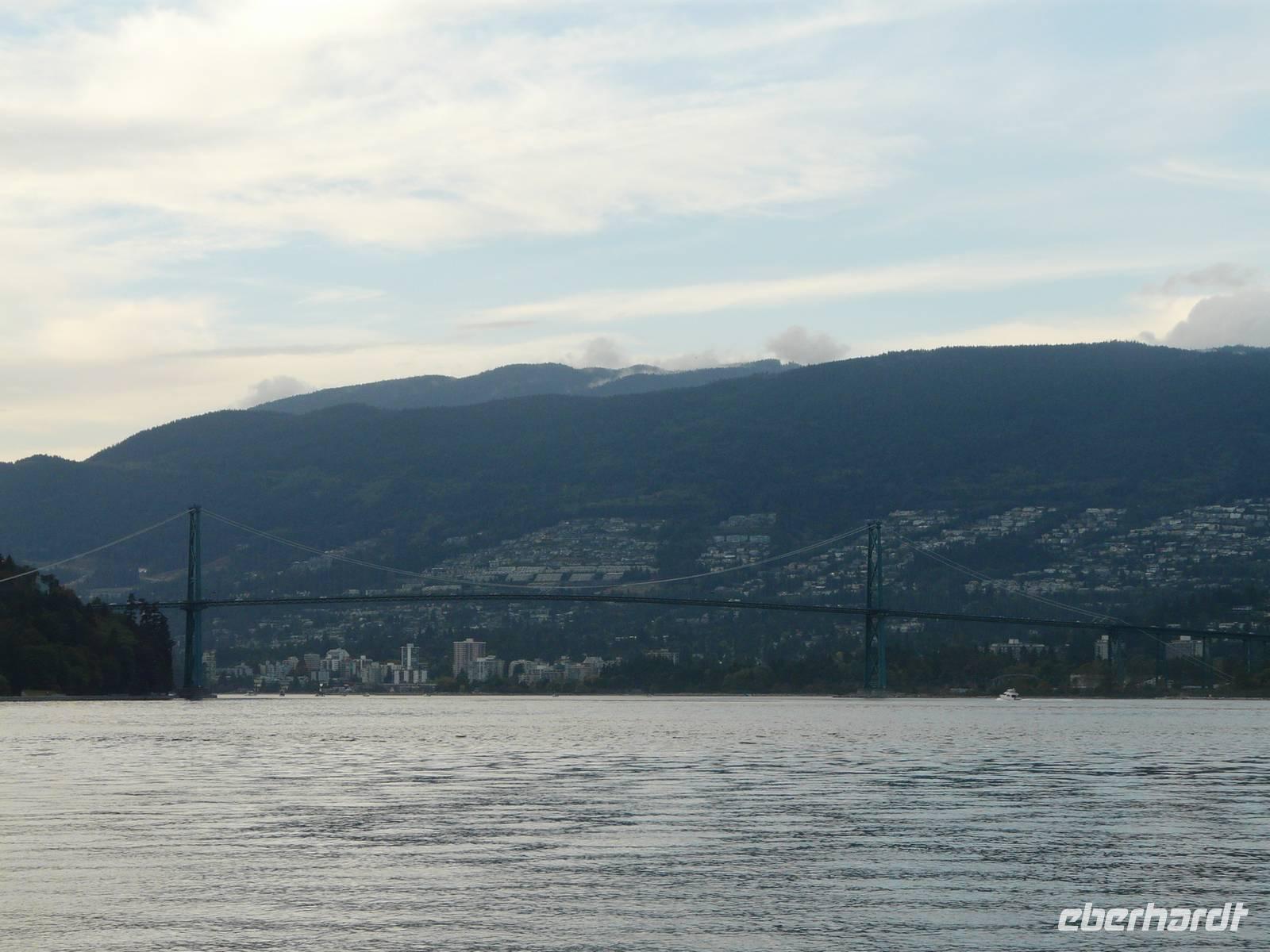 Wir verlassen Victoria, aber noch nicht Vancouver Island. Bevor die Fähre auf das Festland nehmen, machen wir noch einen Ausflug nach Butchart Gardens. Diese kleine Oase im englischen Gartenstil wurde von einer reichen Dame in einem alten Kalksteinbruch angelegt und zeigt uns eine Blumenpracht sondergleichen. Wir laufen durch die riesige Anlage, in der es nahezu alle erdenklichen Blumenarten in reicher Farbenpracht zu geben scheint. Wir sehen erneut die mächtigen Sequoja-Riesenbäume, durchqueren einen Rosengarten mit unendlich vielen Arten und finden uns wenig später in einem japanischen Garten wieder. Eher ungünstig erscheint es dann aber leider, dass hier auch noch Mittagessen für uns geplant ist. Zu zeitig und eher im Cafeteria-Stil essen wir im Blue Poppy Restaurant und hätten die Zeit doch viel lieber für weitere Erkundungen im Garten gehabt. Doch wir müssen unsere Fähre gen Vancouver erreichen und so lässt die Zeitplanung am Morgen keine Verzögerung zu. So sehen wir uns wenig später erneut im Bus sitzen und fahren nach Swartz Bay, von wo aus die Fähre nach Vancouver geht. Wer hier dem schlechten Wetter trotzt und während der Überfahrt auf dem Oberdeck ist, sieht nun sogar noch mal Wale!!! Tsawwassan, die indianische Hafenstadt vor Vancouver erstrahlt dann in schönstem Sonnenschein und wir scheinen endlich die Schlechtwettertage überwunden zu haben. Der Weg hinein nach Vancouver dauert dann trotzdem noch über eine Stunde, gerade am Verkehr merken wir nun, dass wir in der Metropole angekommen sind. Der erste Halt ist in Granville, dem Alternativ- und Künstlerviertel der Stadt. Am Hafen gelegen wurden hier aus alten Fabriken Ateliers, Cafés und eine bunte Markthalle gemacht. Die Stadtrundfahrt führt uns weiter nach Chinatown, bevor wir in Gastown aussteigen und weiter zu Fuß auf Erkundungstour begeben. Pünktlich um fünf Uhr stehen wir dann auch an der alten Dampfuhr, die dann ordentlich lospfeift. Vorbei am Olympic Plaza genießen wir die Meeresluft, beobachten wie Wasserflugzeuge starten und landen und blicken hinüber nach Grouse Mountain, unserem morgigen Tagesziel. Mit dem Bus fahren wir weiter zum Stanley Park, einer kleinen Halbinsel, von welcher wir einen traumhaften Blick auf Vancouver Downtown haben. Hier sehen wir nun auch eine Vielzahl indianischer Totempfähle, die uns Peter als alternative für Duncan versprochen hatte. Und er hatte recht. Diese hier sind wunderschön, farbenfroh und sehr gut erhalten. Nachdem wir auch hier noch etwas verweilen, geht es langsam zu unserem zentral gelegenen Hotel, von wo aus wir später nur einen kurzen Weg zum Abendessen haben.