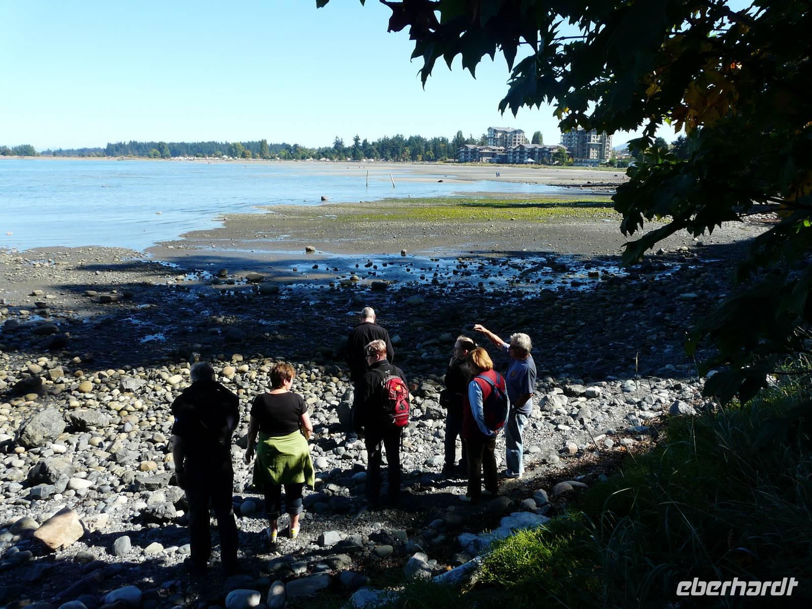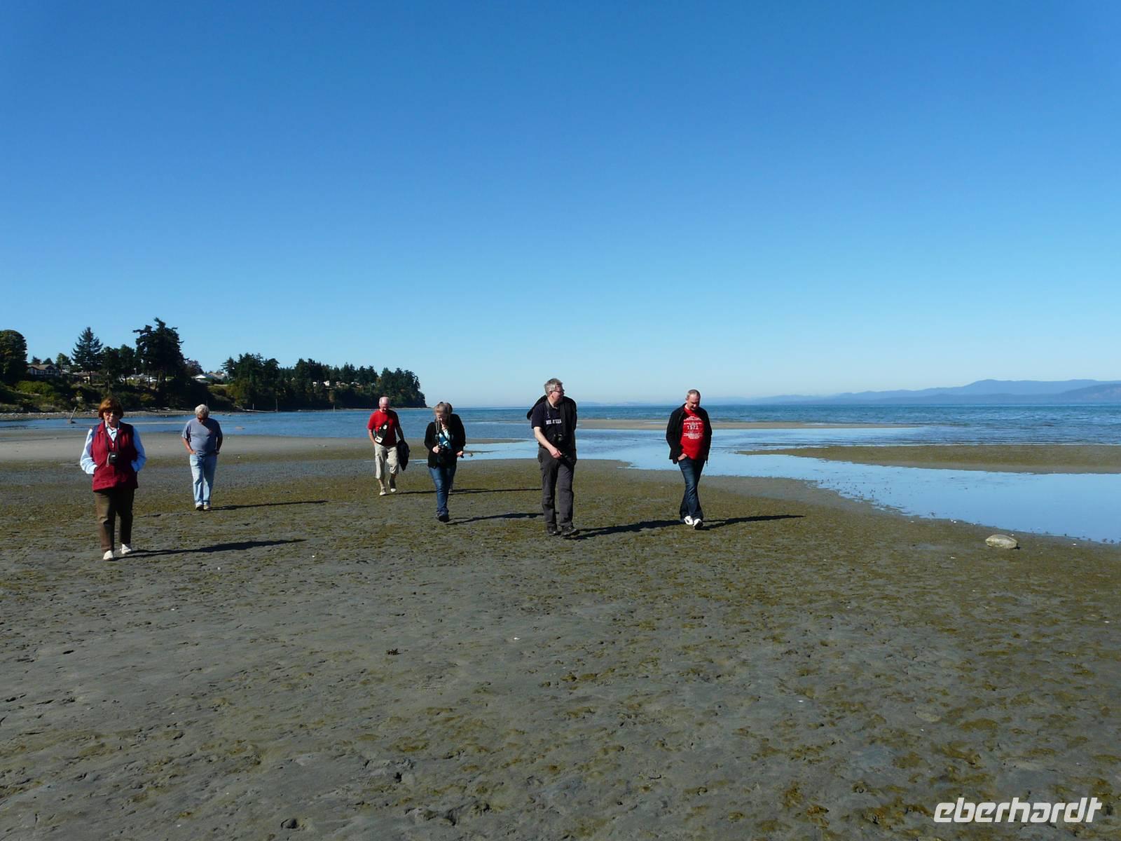 Wir verlassen Whistler heute zeitig, schließlich müssen wir pünktlich an der Fähre sein, die uns nach Vancouver Island bringt. Über die Indianerstadt Squamish fahren wir bis Horseshaw Bay, wo wir dann doch noch mehr als genug Zeit haben und in Ruhe den emsigen Fährbetrieb beobachten können. Nach einiger Wartezeit dürfen wir dann auf die Fähre und setzen bei schönstem Wetter und einer traumhaften Sicht auf die Küste vor Vancouver auf die gleichnamige Insel über. In Nanaimo angekommen geht es weiter nach Parksville, wo wir am frühen Nachmittag ankommen. Wir nutzen das tolle Wetter und natürlich die Ebbe des Pazifiks um einen ausgiebigen Strandspaziergang zu machen. Später sitzen wir gemeinsam auf der Hotelterrasse und versuchen natürlich immernoch soviel wie möglich von Peter über Kanada, seine Geschichte, Land und Leute zu erfahren. Zum Abendessen haben wir einen wunderschönen Sonnenuntergang.