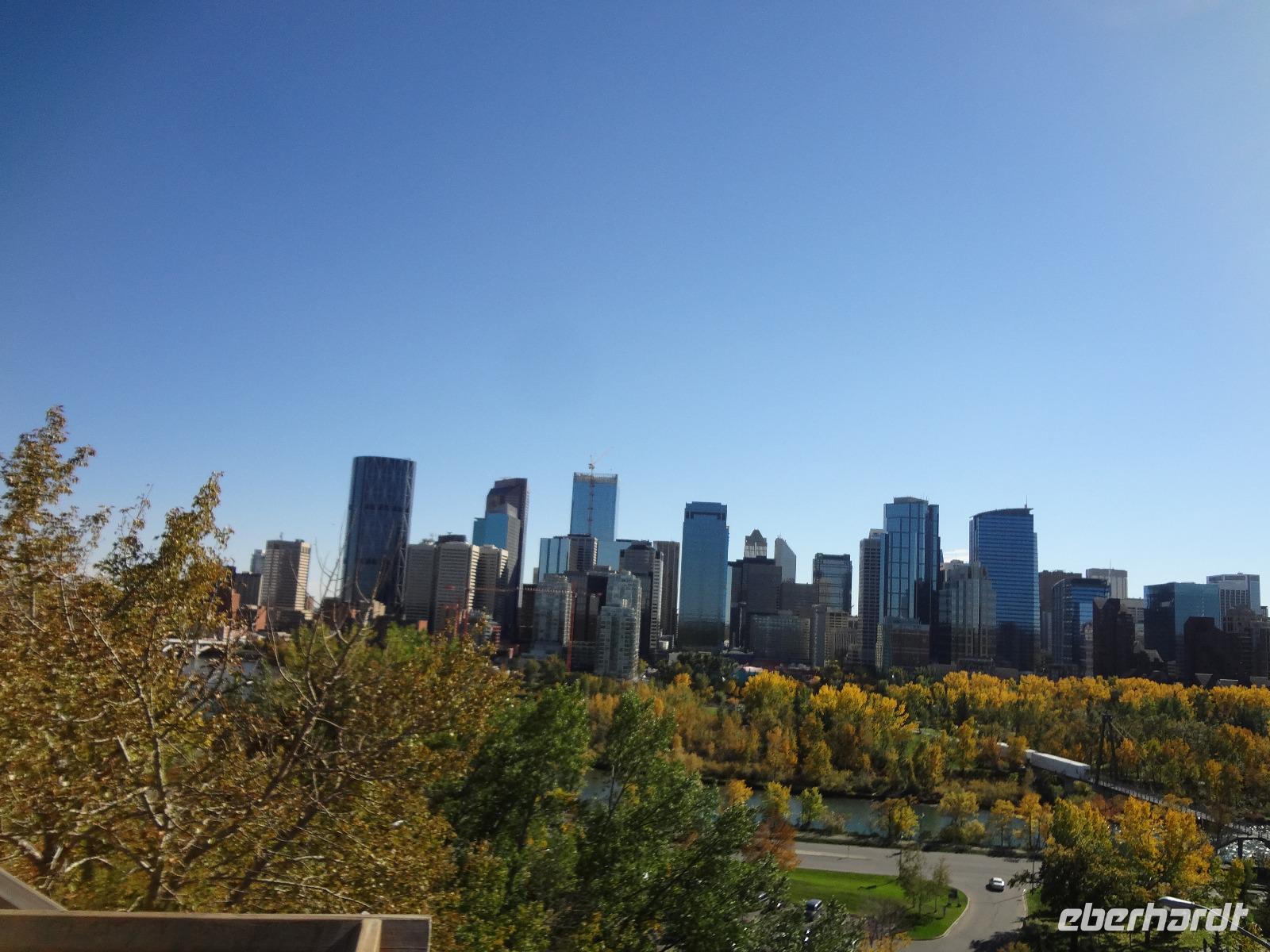 Wenn der erste Pilot sich mit Herr Vogel vorstellt und der Flugbetreuer Herr Pfeffer heisst, dann ist man sicher in guten Haenden. Bei Sonnenschein fliegt uns die Kranich-Gesellschaft nach Frankfurt. Bei Gate B 44 schauen wir einfach auf die Schuhe der dastehenden Passagiere und finden auch alsbald den Rest unserer Wandergruppe nach Kanada. 11 Stunden spaeter, nach einigen Filmen, Nickerchen, Snacks, Abend-und Mittagessen kommen wir weniger frisch in Calgary an. Und so befinden wir uns unverhofft noch immer am 1. Tag dieser Reise. Wir werden die gewonnene Zeit wieder verlieren, aber erst....am Ende der Reise. Das Gosseltern-Team auf Air Canada auch liebevoll Maple Flot genannt, ist nun auch froh, wieder daheim zu sein und Kuchen backen zu koennen. Wir werden von unserem Chauffeur Alex schon erwartet und das Flaeschchen Wasser fuer jedermann ist ein netter Willkommensgruss von Eberhardt. Unser Bus ist wie ein Museumsstueck und wird auch gleich von allen Seiten fotographiert. Das moderne Staedtchen Calgary mit seinen Hochhaeuser wird nun digital festgehalten ehe wir bei dem Austragungsort vieler Disziplinen waehrend der Olympiade 1988 anhalten und uns die Anlage anschauen. Die Rockie Mountains rufen, ab gehts, zum 2 Jack Lake als Einstimmung in diese herrliche Bergwelt. Die Fotos sprechen tausend Worte, klicken Sie auf die Fotogallerie ;-). Wir checken ins Spruce Grove Hotel ein und gehen eine halbe Stunde spaeter zum Abendbrot. Es gab ein Salatbuffet und danach ein riesengrosses schmackhaftes Sirloin Steak mit Pellkartoffel und seinen Saucen. Ein feines Essen, aber unsere Augenlider wollen einfach nicht mehr offen bleiben.
