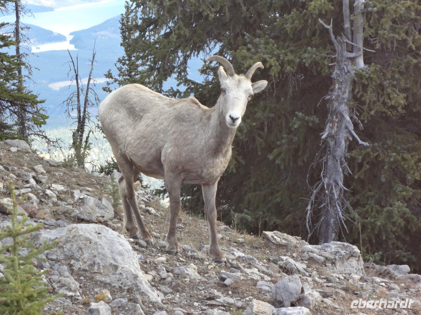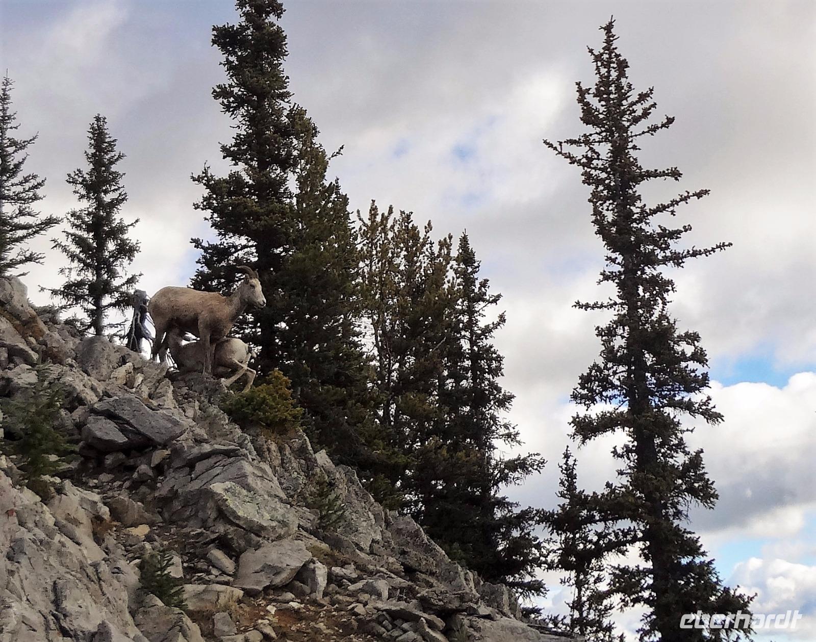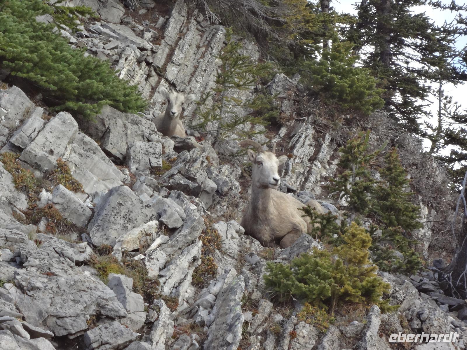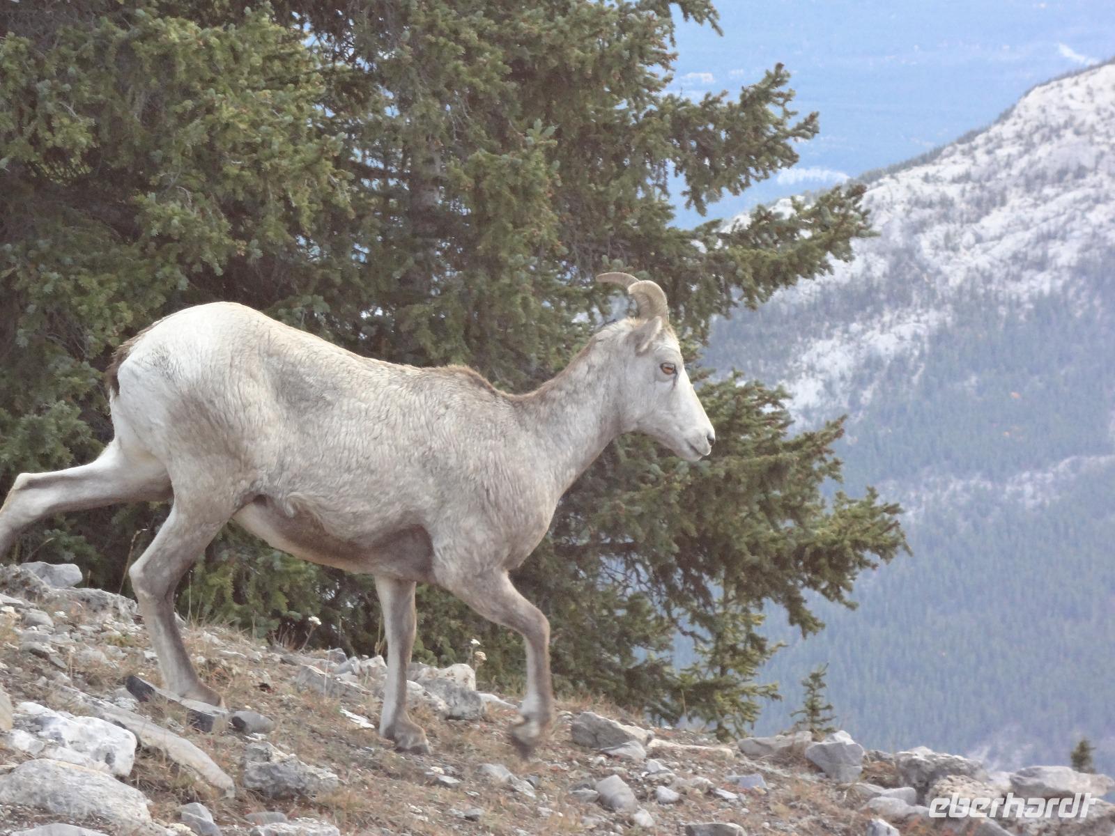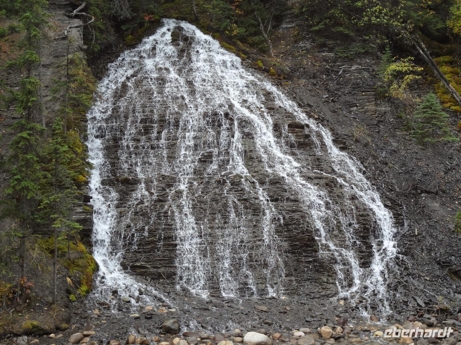 Ahhh 7 Uhr und wir liegen noch immer in den strammgezogenen Betten wie eingebundene Mumien. Man kann gar nicht rausfallen oder aufstehen, man kann bloss rauskriechen. Item. Heute ist Sonntag, trotzdem ist alles offen, ausser der Post ! Auch heute haben wir grossartiges vor. Wir fahren gleich zur Gondel die uns auf den Sulphure Mountain bringt. Oben ist es kalt dafuer lacht die Sonne. Also marsch auf Sanson's Peak. Bloss 10 Minuten fuer uns Sportler, bei der Kaelte ! Auf diesem Aussichtspunkt schaut man aufs Bow Tal hinunter, sieht Banff, das Banff Springs Hotel, sein Golfplatz, lake Miniwanka sowie Mt. Rundel, Peak Louis, Mt. Cascade und viele, viele andere Berge. Neugierig schauen wir uns das Haeuschen von Mr. Sanson an und fragen uns, weshalb da 2 Betten drinnen sind und wie kann man bloss 40 Jahre alleine da oben wohnen ? Wir gondeln wieder talwaerts wo Alex mit dem Museumsbus auf uns wartet. Damit fahren wir zum Johnston Canyon. So viele Leute wollen sich diese Schlucht anschauen, der erste Kilometer ist wunderschoen aber sehr dicht besucht. Auf den naechsten 4 Km kommen wir an wunderschoenen Wasserfaellen vorbei und der Weg steigt stetig an aber ist aber nie steil. Um 13:00 Uhr sind wir an unserem Ziel angekommen. Es sind die Ink Pots, wie die kleinen Seen hier liebevoll genannt werden. Sie werden von unterirdischem Gletscherwasser gespiesen und man sieht wie das Wasser durch den Sand gedrueckt wird. Nichts zum baden, denn die Seelein sind bloss 4 Grad kalt und wir haben sowieso hunger. Unser Picknick nehmen wir am Flussufer ein und ziehen dann auch bald wieder ab, da sich duestere Wolken bilden. Wir haben viel Glueck, denn wir wandern anscheinend schneller, als die Wolken wachsen und kommen heil und trocken wieder beim Bus an. Das Abendessen ist heute abend mitten im Staedtchen Banff. Jeder kann sich heute was von der Karte aussuchen und bestellen was auch mal schoen ist. Nach diesem Wandertag sind wir muede und die strammen Bettlaken warten schon auf ihre „Reinkriecher".