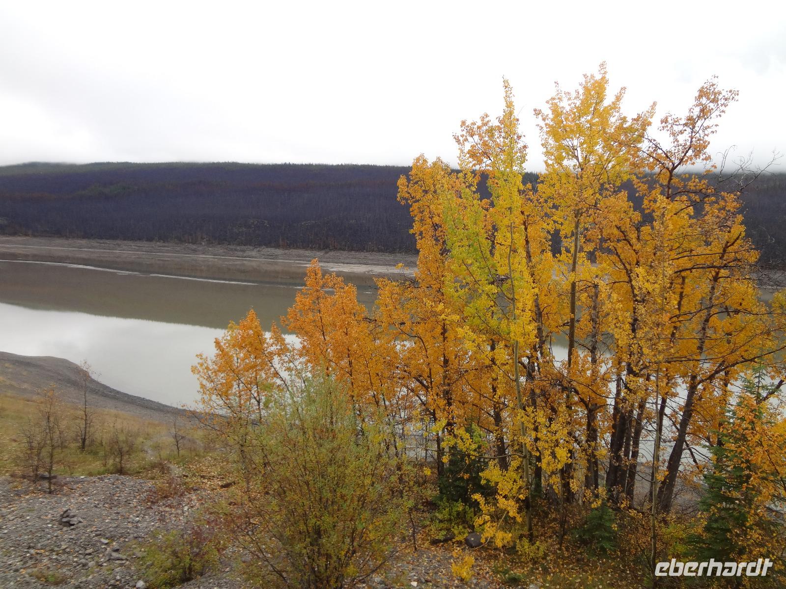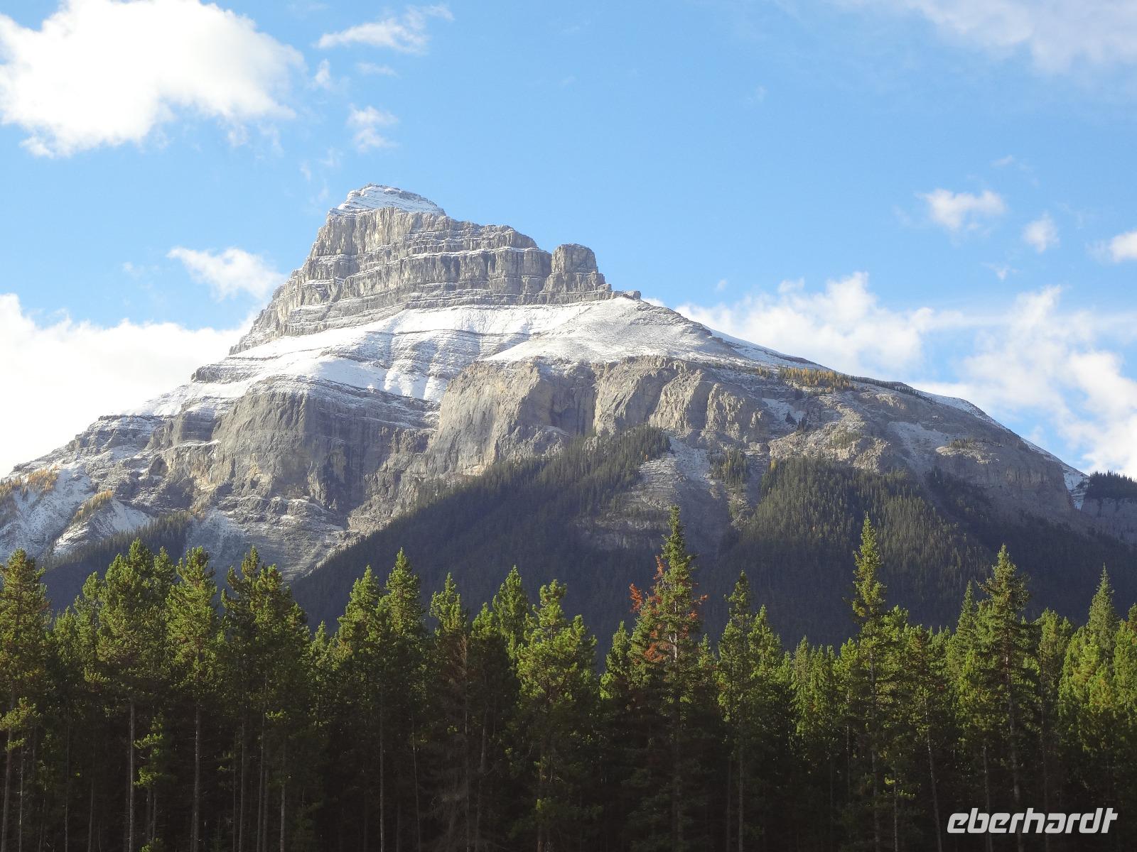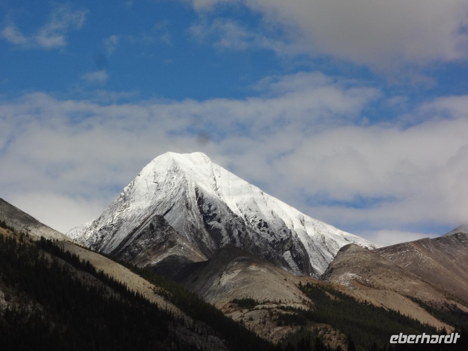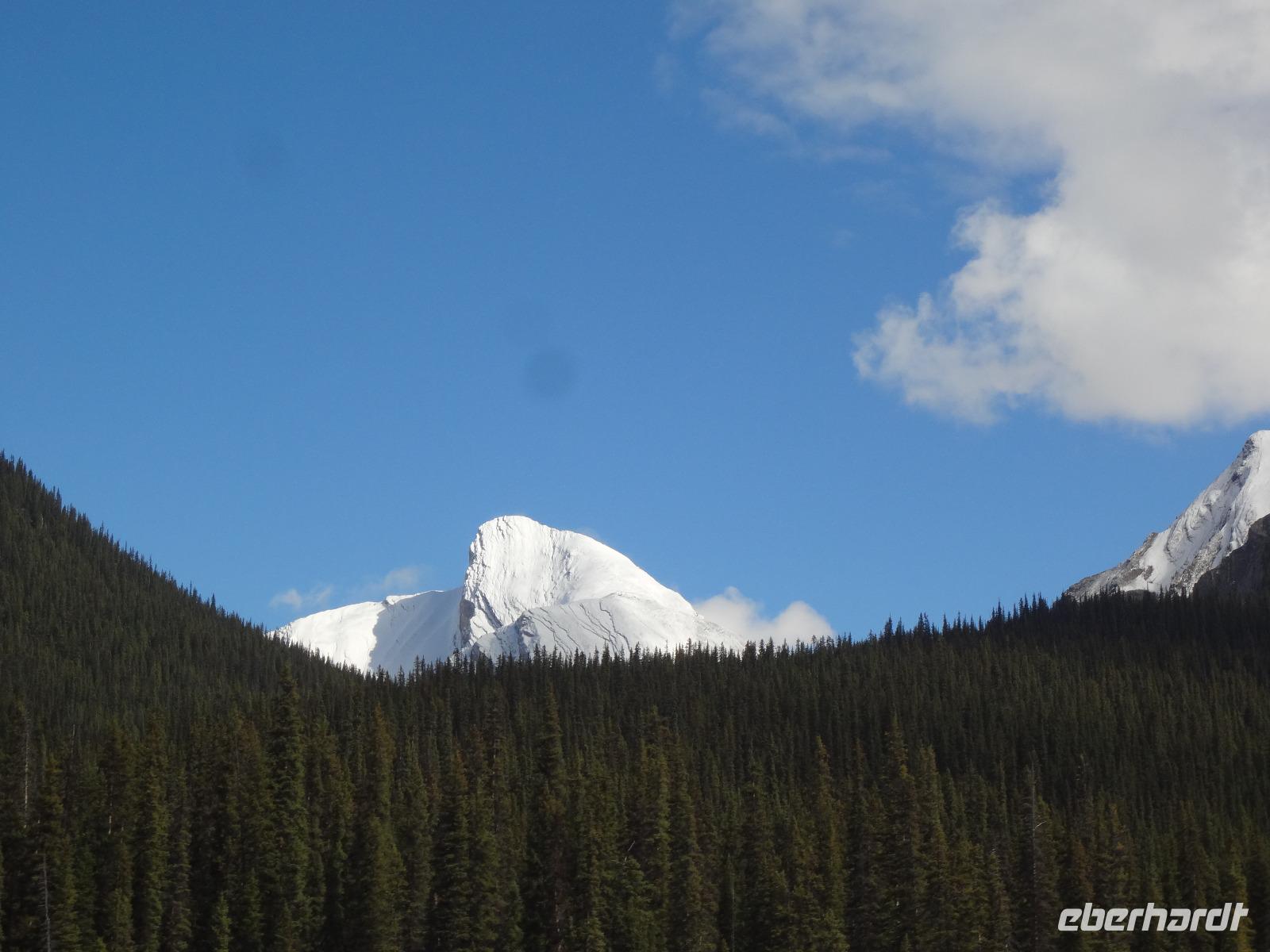 Ein wolkenloser Himmel lacht uns heute an und frohgemut geniessen wir unser ausgiebiges Fruehstueck welches aus zwei Teilen besteht. Der erste Teil steht bereits auf dem Tisch, Brot, Kaese, Schinken, Butter, Marmelade usw. Kaffee wird gebracht und dann kommt der zweite Teil ein Teller voller Ruehrei, Speck, Kartoffeln, Wuerstchen und Toastbrot. Das alles in einem Restaurant mit Panoramafenster. Es geht uns wirklich gut, denn heute haben wir auch einen Geburtstag zu feiern und wir duerfen in einem modernen Riesenbus hinter Colin so sitzen, dass jeder der moechte, eine eigene Sitzreihe beanspruchen kann. Wir fahren nach Jasper und danach auf die Yellowhead Autobahn. Nun heisst es aufpassen, denn wir wollen die Abzweigung in den Sueden BC's nicht verpassen ! Ein Stuendchen spaeter, haben wir die Grenze zwischen Alberta und British Colombia, sowie jene zwischen Jasper National Park und Mt. Robson National Park ueberquert. Es ist auch der Moment, indem wir die Uhr wieder richten muessen. Der heutige Tag hat 25 Stunden, der Geburtstag wird instant verlaengert und wir stellen die Uhr eine Stunde zurueck. Vorbei der Wasserscheide sehen wir den Fraser River in seinen Kinderschuhen und fahren vorbei an wunderschoenen Seen. Bei Moose Lake, suchen wir natuerlich den Elch, der da rueber schwimmen soll ;-). Bald sind wir bei unserer ersten Wanderung entland des Fraser Flusses angekommen. Wanderschuhe an, Jacken an, den es ist bloss 6 Grad. Eine Stunde wandern wir gemuetlich ueber Stock und Stein, schauen die Wasserfaelle an und lernen auch die wichtigsten Baeume Britisch Columbien kennen. Beim Ende des Wanderweges wartet auch schon Colin auf uns. Auf der kurzen Fahrt zu Mt. Robson Parkplatz sehen wir auch den maechtigen Berg. Mt. Robson ist der hoechste Berg BC's mit seinen 3954 M.ue.M. Mit so einer fantastischer Kulisse feiern wir nun den Geburtstag eines Gastes. Der kanadische Champagner mit den Ahornkeksen untermalen das Fest. Danach kaufen wir noch ein kleines Picknick ein und gehen alsbald auf unsere naechste Wanderung. Wir wandern auf dem Berg Lake Trail bis zum Kinney Lake. Eine herrliche Aussicht wird uns prophezeit....und ja, wahrhaftig eine praechtige Aussicht nicht nur auf Mt. Robson sondern auch eine wundebare Spiegelung von anderen verschneiten Bergen im Kinney See. Unsere Herzen singen. Der selbe Weg zurueck zum Bus ist eigenartigerweise bloss halb so lang wie hin ! Nun tut es uns aber gut, wieder im Bus zu sitzen und unsere Beine auszuruhen. Wir erfahren wie so ein Lachsleben eines der fuenf verschiedenen pazifischen Lachse ausschaut, wie sie leben, wie lange, wohin sie schwimmen und wie sie laichen. Wir halten auch gleich bei einem Fluss an, wo die Lachse laichen aber eben im August und nicht ende September. Auf der Reise zu unserem Hotel horchen wir der kanadischen Saengerin Diana Krall zu und doesen ein wenig vor uns hin. Die strahlende Sonne, sowie die weissverschneiten Berge, der grosse Wald, die kleine Doerfer und die verschiedenen Fluesse begleiten uns. In Clearwater checken wir in unser Hotel ein und stoebern noch ein bisschen im Garten herum ehe wir zum Abendessen im Hause gehen. Heute testen wir den Coho Lachs, er schmeckt sehr lecker, andere waehlen das Haehnchen oder den Steak. Manche gehen auf einen kleinen Abendspaziergang, aber die geraeumigen Zimmer rufen schon.