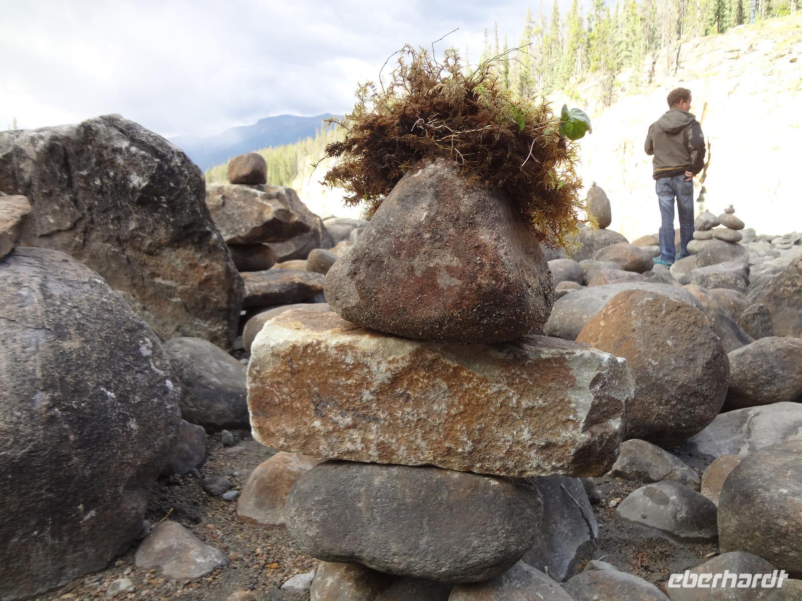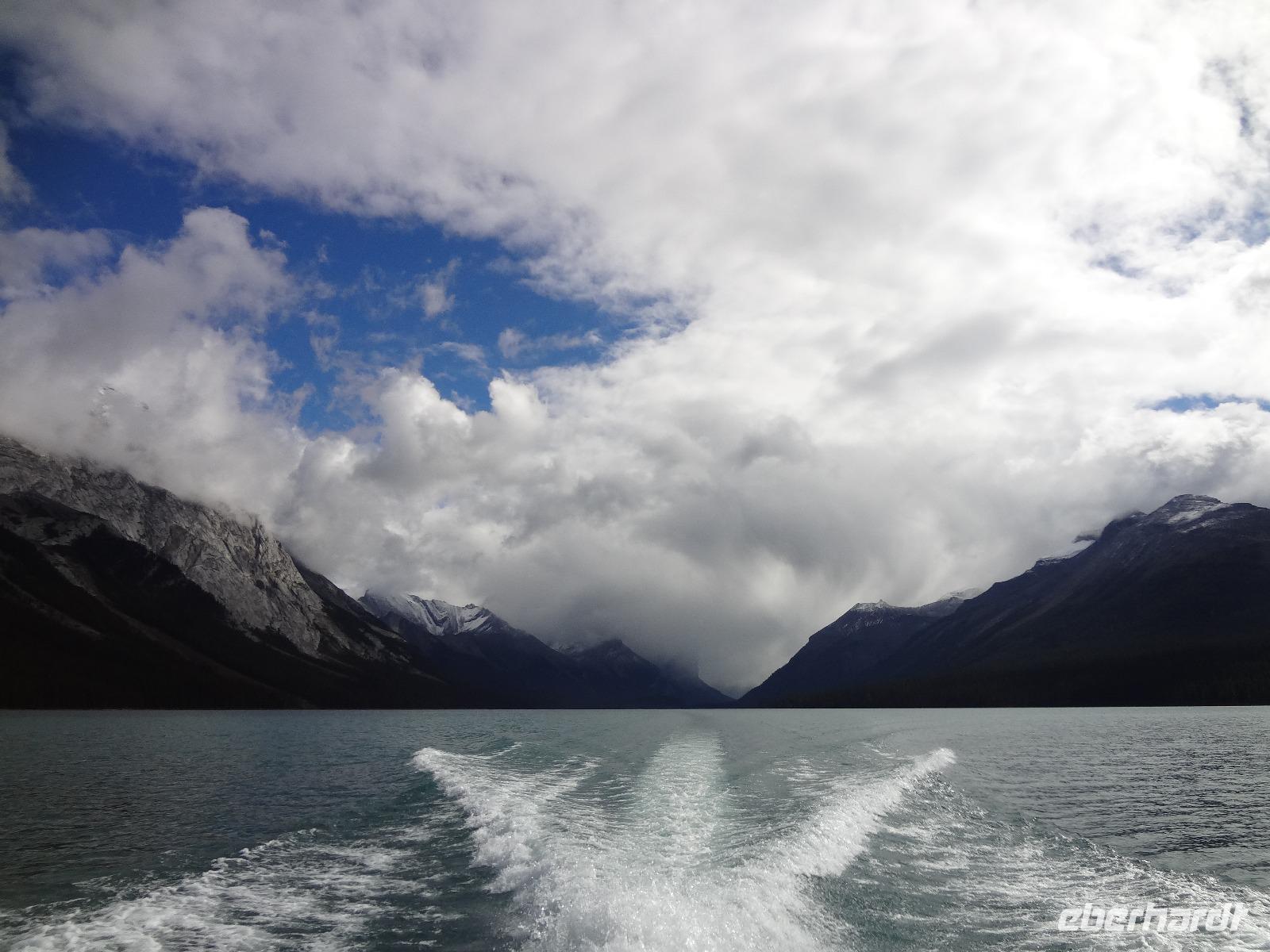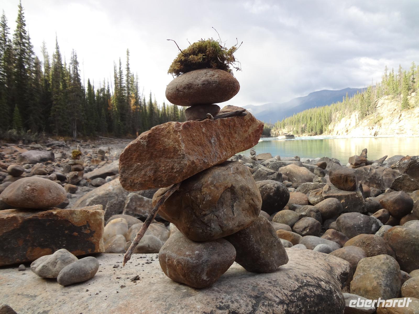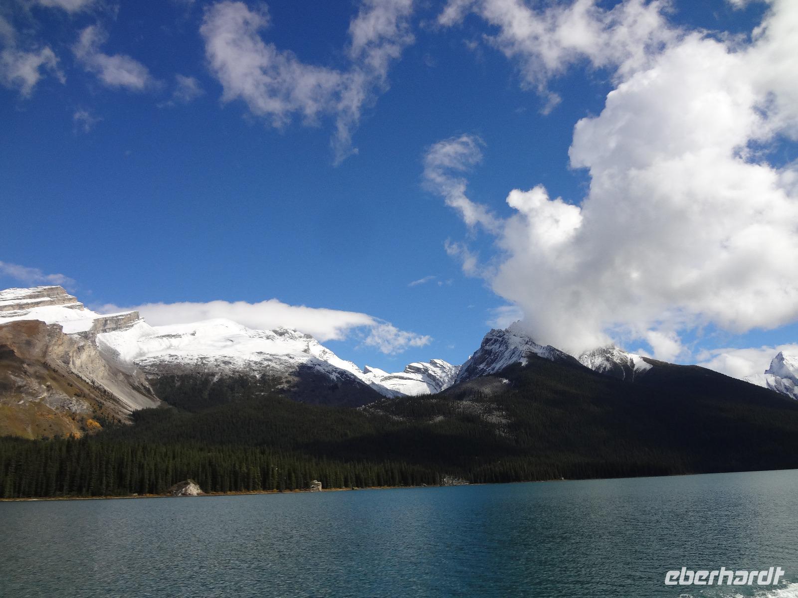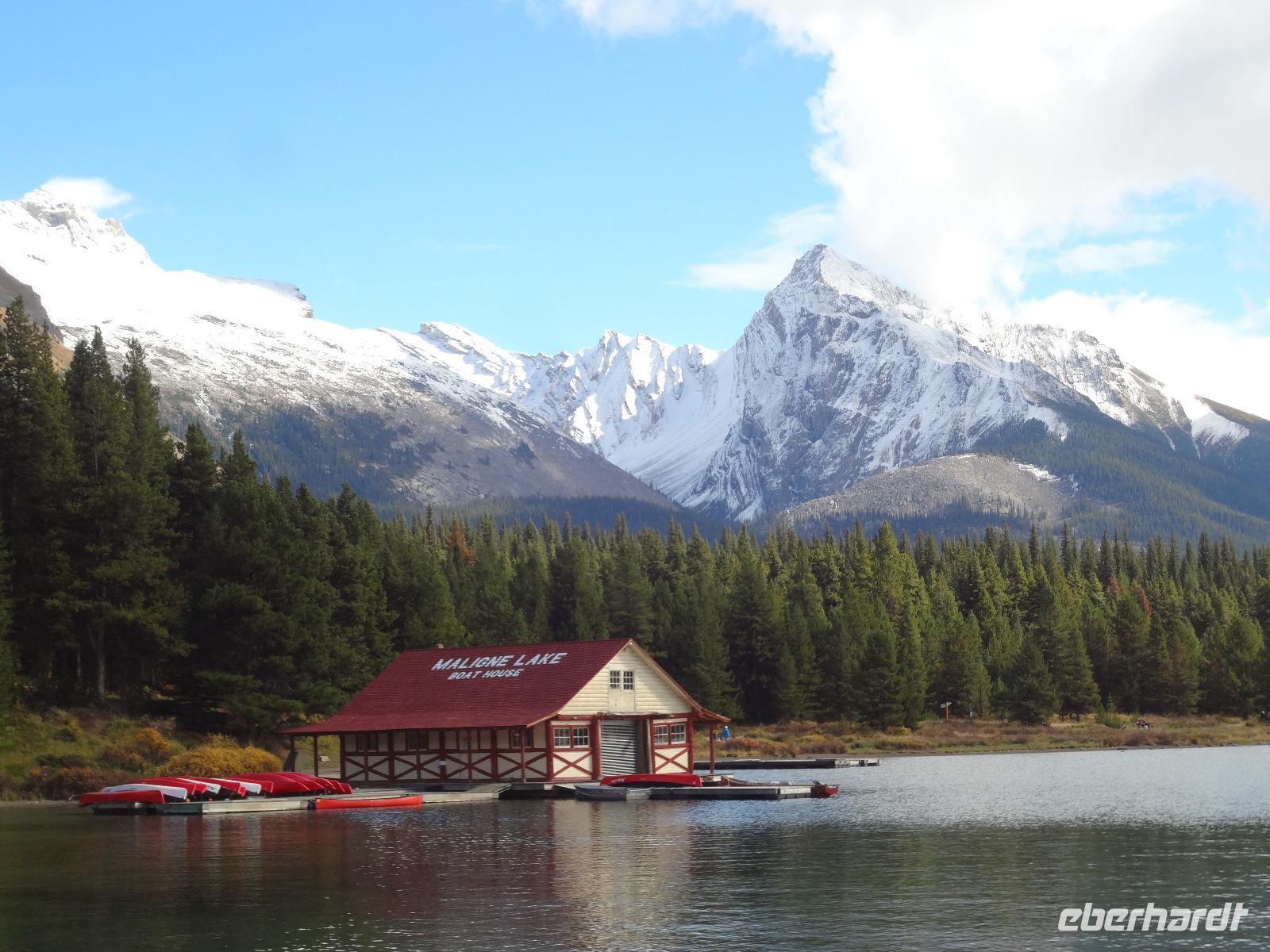 Nach einer geruhsamen Nacht in unseren Waldhaeuschen und einem ueppigen Fruehstueck, fahren wir in Richtung Jasper und sehen ploetzlich beim Vorbeifahren zwei Woelfe. Alex haelt den Bus und versucht auch zurueck zu fahren, aber die beiden sind gerade am verschwinden und nur das Hinterteil ist noch sichtbar. So einen Zufall, Woelfe zu sehen sei doch sehr selten und wir haben gleich 2 gesehen. Kurz vor Jasper werden wir nochmals verwoehnt, denn eine Wapitidame zeigt sich gleich neben unserem Bus, kurze Zeit danach sehen wir auch einen Wapiti Hirsch der wohl noch sehr jung ist. Auf dem Weg zum Maligne Canyon staut sich auf einmal die Autobahn.....ein ganzes Rudel, das heisst ein Wapitihirsch mit seinen 12 Damen sonnen sich gleich neben der Autobahn. Er steht mit seinem Riesengeweih majestaetisch da und schaut auf sein, im Gras liegendes, Harem. Ein wunderbarer Anblick. Natuerlich will da jedermann zuschauen und einige Fotografen haben bereits Stative aufgebaut und hantieren mit Kameras die teilweise einen Meter lang sind ! Auch wir versuchen noch ein Park-Plaetzchen zu ergattern, aber wir sind ein Bus und so viel Platz gibts nicht mehr. Wir fahren einfach ganz langsam vorbei und schauen dem Schauspiel zu. Bald sind wir bei unserer Wanderung. An dem linken Ufer des Maligne Canyons wandern wir von der 5. Bruecke bis hinauf zum Restaurant wo uns auch der Bus wieder abholt. Dieser Fluss ist wirklich verzaubert, einmal fuehrt er viel Wasser, und gleich danach wieder ganz wenig. Unterirdische Fluesse speisen ihn und fuehren auch Wasser ab. Ganz eigenartig. Wir kommen auch beim „Weissen Ton" Wasserfall vorbei und schauen immer wieder hinunter in die Schlucht die bei manchen Stellen ueber 50 Meter tief ist. Im Winter kann man hier Eiswandern und Eisklettern. Das soll interessant sein. Beim Restaurant angekommen haben wir etwas Zeit zum Kaffee trinken oder das Geschaeft anzuschauen. Die handgemachten Mocassins sind sehr weich und huebsch mit ihren Perlen. Aber passen die noch in unseren Koffer ? Bald gehts wieder weiter, zu unserem naechsten Ziel. Der Maligne See. Vorbei am Medicin Lake sind wir auch bald da. Die Mittagspause ist etwas kuerzer, da wir schon in einer ½ Stunde mit dem Schiff zur Spirit Island fahren werden. Das Schiff heisst Mary Schaeffer und ihre Geschichte haben wir bereits im Bus vernommen. Die Bootstour bringt uns Glueck, denn das Wetter wird zunehmends besser und bald haben wir einen blauen Himmer mit strahlender Sonne. Jetzt werden aber viele schoene Erinnerungen geknipst. Schatzilein vor Spirit Island, Schatzilein und ich vor einem verschneiten Berg, ich bei dem herrlich tuerkisfarbenen See usw, usw. Nach 1 ½ Stunden sind wir wieder zurueck und steigen auch wieder in unseren Bus ein. Wir wollen naemlich in Jasper noch Pause machen und uns das Staedtchen anschauen. Gesagt, getan und nun weiter zum Athabasca Wasserfall. Ohhh wie schoen, wie hoch, wie tief, wie ausgegraben, ein Wunder der Natur. Wie man einen Inukshuk baut und was das Ding ueberhaupt ist, erfahren wir gleich danach. Diese Lektion wird dann auch gleich in Tat umgesetzt und wir bauen die einfallsreichsten Inukshuks. Da die Ausscheidung so schwierig ist, stossen wir einfach mit einem echten kanadischen Whiskey auf unsere Arbeit an und knabbern an den salzigen-Limetten-Snacks. Zurueck im Hotel erfahren wir, dass wir morgen Bus und leider auch Buschauffeur wechseln werden. Wir werden den antiken Bus nicht so sehr vermissen, aber Alex, der uns sicher und gut durch die Rockies gefahren hat, schon. Das Abendessen ist wieder koestlich und Alex isst mit uns mit. Stewart, der Hotelmanager, ist heute besonders grosszuegig mit seinem Wein und fuellt auf Anfrage unsere Glaeser nochmals. Ja, die kanadische Grosszuegigkeit, vielleicht duerfen wir davon eine Portion mit nach Hause nehmen.