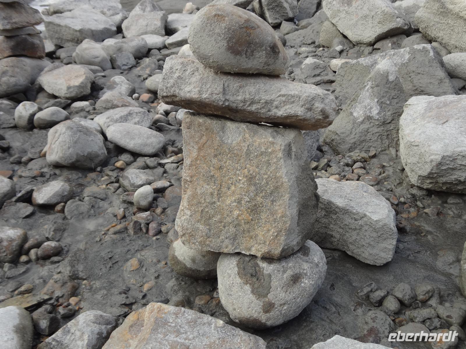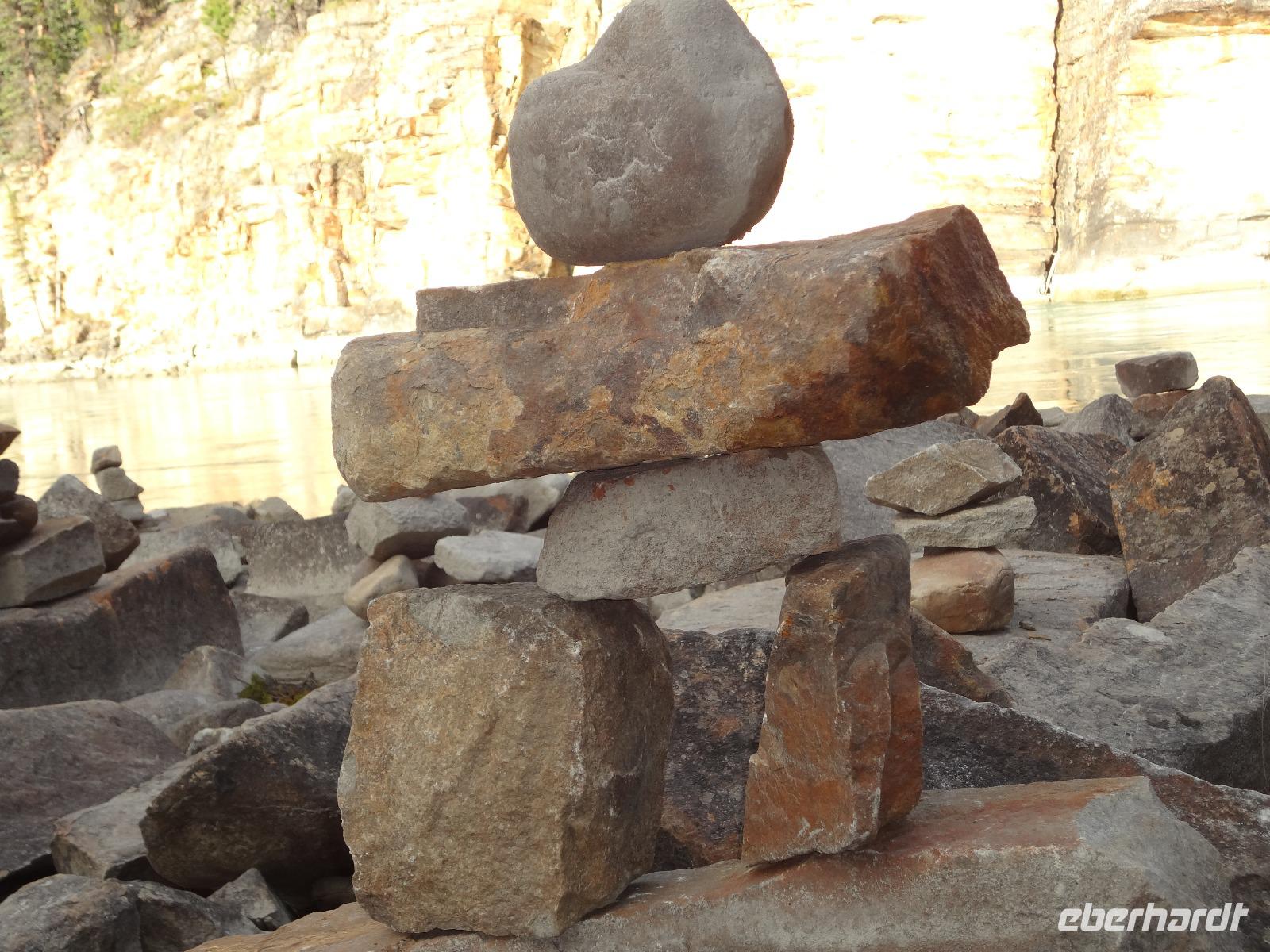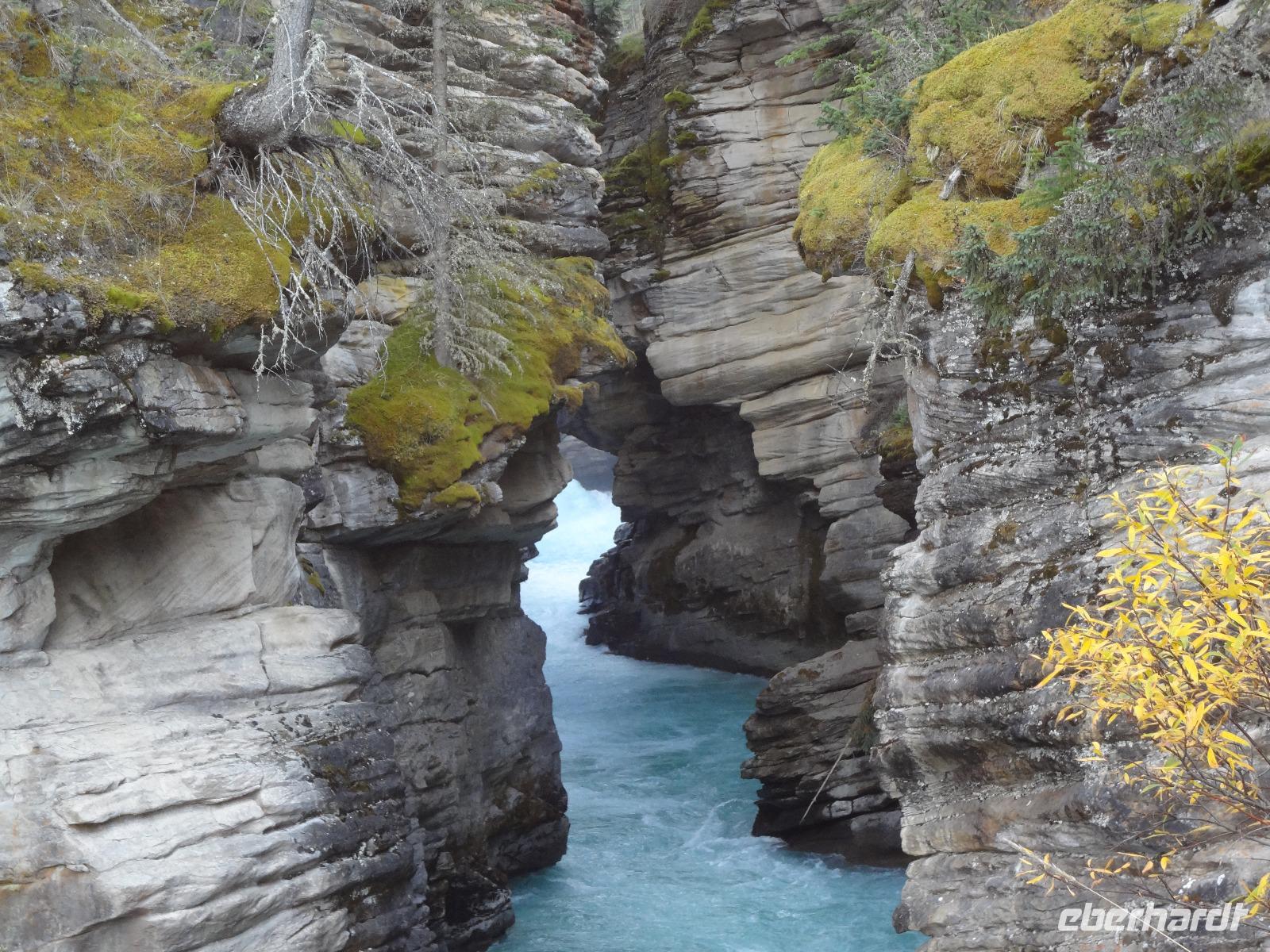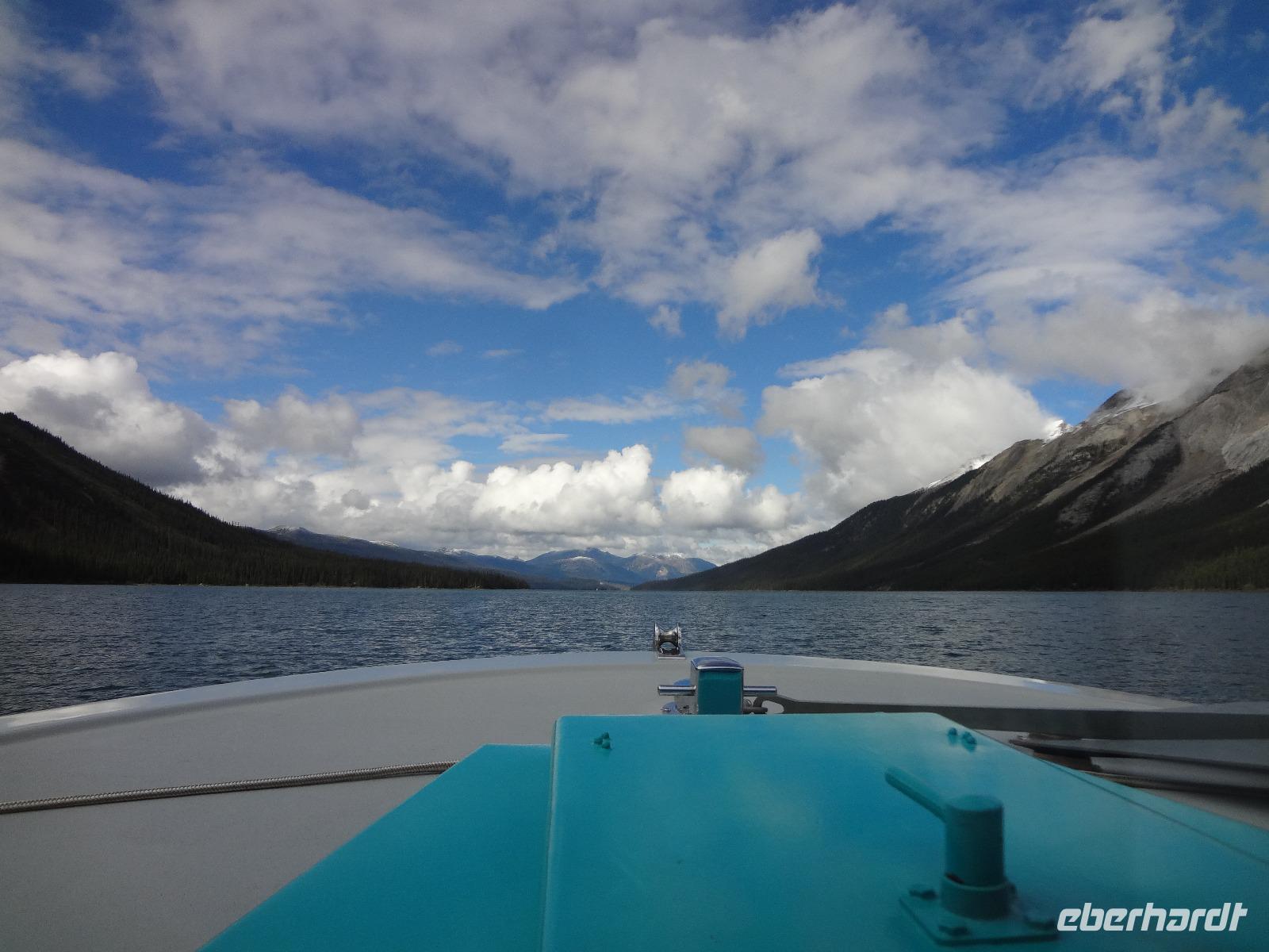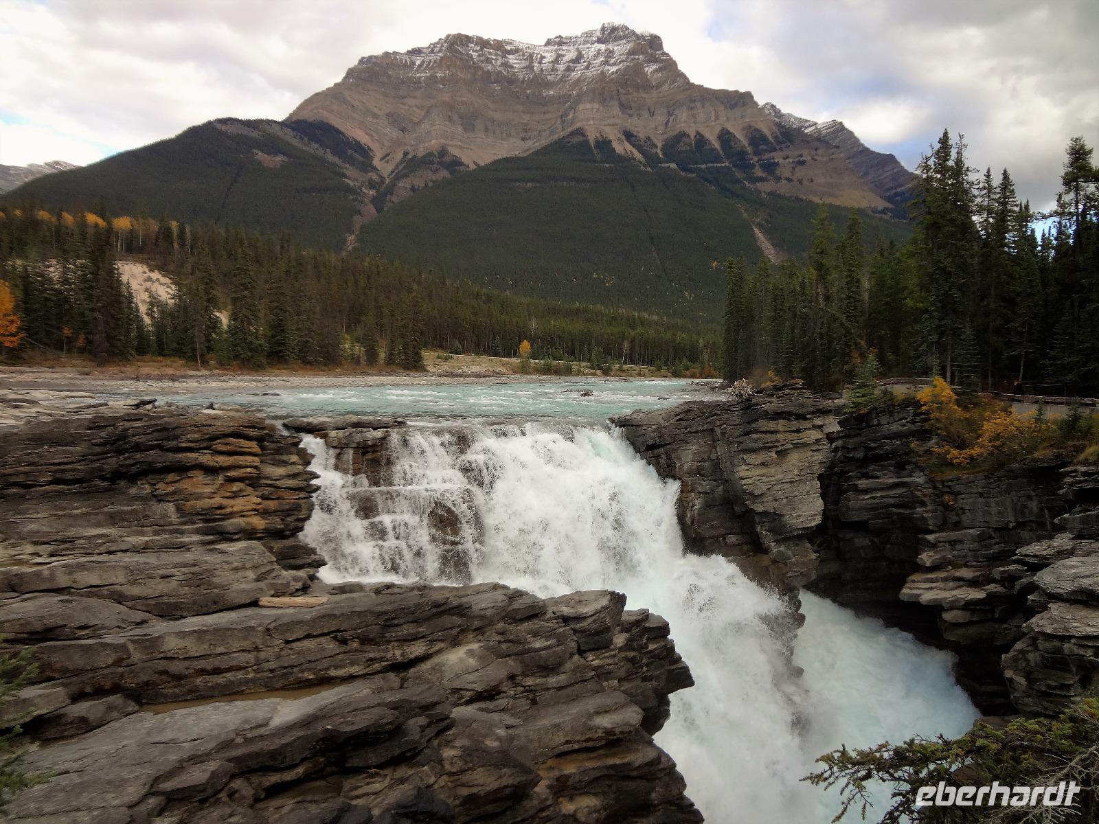 Nach einer geruhsamen Nacht in unseren Waldhaeuschen und einem ueppigen Fruehstueck, fahren wir in Richtung Jasper und sehen ploetzlich beim Vorbeifahren zwei Woelfe. Alex haelt den Bus und versucht auch zurueck zu fahren, aber die beiden sind gerade am verschwinden und nur das Hinterteil ist noch sichtbar. So einen Zufall, Woelfe zu sehen sei doch sehr selten und wir haben gleich 2 gesehen. Kurz vor Jasper werden wir nochmals verwoehnt, denn eine Wapitidame zeigt sich gleich neben unserem Bus, kurze Zeit danach sehen wir auch einen Wapiti Hirsch der wohl noch sehr jung ist. Auf dem Weg zum Maligne Canyon staut sich auf einmal die Autobahn.....ein ganzes Rudel, das heisst ein Wapitihirsch mit seinen 12 Damen sonnen sich gleich neben der Autobahn. Er steht mit seinem Riesengeweih majestaetisch da und schaut auf sein, im Gras liegendes, Harem. Ein wunderbarer Anblick. Natuerlich will da jedermann zuschauen und einige Fotografen haben bereits Stative aufgebaut und hantieren mit Kameras die teilweise einen Meter lang sind ! Auch wir versuchen noch ein Park-Plaetzchen zu ergattern, aber wir sind ein Bus und so viel Platz gibts nicht mehr. Wir fahren einfach ganz langsam vorbei und schauen dem Schauspiel zu. Bald sind wir bei unserer Wanderung. An dem linken Ufer des Maligne Canyons wandern wir von der 5. Bruecke bis hinauf zum Restaurant wo uns auch der Bus wieder abholt. Dieser Fluss ist wirklich verzaubert, einmal fuehrt er viel Wasser, und gleich danach wieder ganz wenig. Unterirdische Fluesse speisen ihn und fuehren auch Wasser ab. Ganz eigenartig. Wir kommen auch beim „Weissen Ton" Wasserfall vorbei und schauen immer wieder hinunter in die Schlucht die bei manchen Stellen ueber 50 Meter tief ist. Im Winter kann man hier Eiswandern und Eisklettern. Das soll interessant sein. Beim Restaurant angekommen haben wir etwas Zeit zum Kaffee trinken oder das Geschaeft anzuschauen. Die handgemachten Mocassins sind sehr weich und huebsch mit ihren Perlen. Aber passen die noch in unseren Koffer ? Bald gehts wieder weiter, zu unserem naechsten Ziel. Der Maligne See. Vorbei am Medicin Lake sind wir auch bald da. Die Mittagspause ist etwas kuerzer, da wir schon in einer ½ Stunde mit dem Schiff zur Spirit Island fahren werden. Das Schiff heisst Mary Schaeffer und ihre Geschichte haben wir bereits im Bus vernommen. Die Bootstour bringt uns Glueck, denn das Wetter wird zunehmends besser und bald haben wir einen blauen Himmer mit strahlender Sonne. Jetzt werden aber viele schoene Erinnerungen geknipst. Schatzilein vor Spirit Island, Schatzilein und ich vor einem verschneiten Berg, ich bei dem herrlich tuerkisfarbenen See usw, usw. Nach 1 ½ Stunden sind wir wieder zurueck und steigen auch wieder in unseren Bus ein. Wir wollen naemlich in Jasper noch Pause machen und uns das Staedtchen anschauen. Gesagt, getan und nun weiter zum Athabasca Wasserfall. Ohhh wie schoen, wie hoch, wie tief, wie ausgegraben, ein Wunder der Natur. Wie man einen Inukshuk baut und was das Ding ueberhaupt ist, erfahren wir gleich danach. Diese Lektion wird dann auch gleich in Tat umgesetzt und wir bauen die einfallsreichsten Inukshuks. Da die Ausscheidung so schwierig ist, stossen wir einfach mit einem echten kanadischen Whiskey auf unsere Arbeit an und knabbern an den salzigen-Limetten-Snacks. Zurueck im Hotel erfahren wir, dass wir morgen Bus und leider auch Buschauffeur wechseln werden. Wir werden den antiken Bus nicht so sehr vermissen, aber Alex, der uns sicher und gut durch die Rockies gefahren hat, schon. Das Abendessen ist wieder koestlich und Alex isst mit uns mit. Stewart, der Hotelmanager, ist heute besonders grosszuegig mit seinem Wein und fuellt auf Anfrage unsere Glaeser nochmals. Ja, die kanadische Grosszuegigkeit, vielleicht duerfen wir davon eine Portion mit nach Hause nehmen.