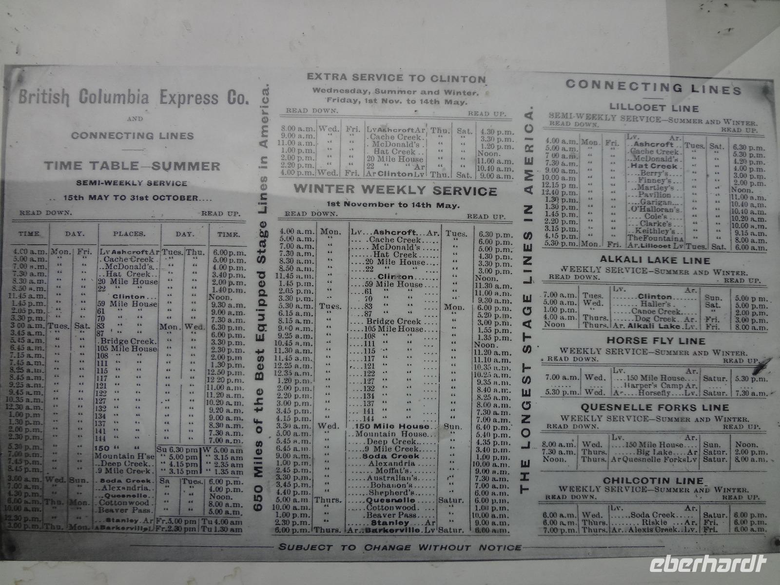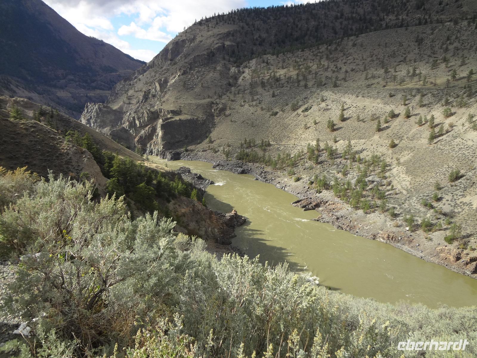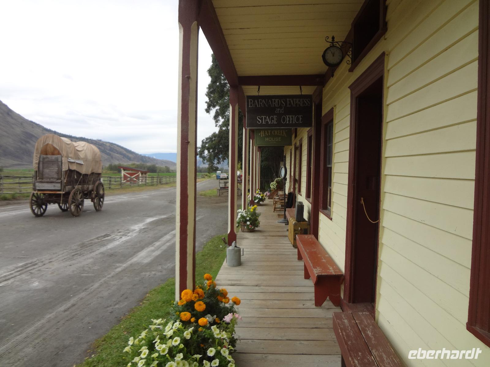 Nebel, ueberall nur Nebel. Nach dem schoenen Fruehstueck aber, hebt sich der Nebel und verwandelt sich in eine Wolke. Naja, heute darf es nicht so toll Wetter sein, denn heute haben wir viele Kilometer zurueckzulegen und auch sehr schoene. Zwischen Clearwater und Kamloops geht es gemuetlich dem North Thompson River entlang und wir horchen den Geschichten der Goldgraeber, des David Thompson und Simon Fraser zu. Wir erfahren auch, weshalb in West Kanada so viele Chinesen wohnen. In Kamloops machen wir im City Hall Halt, da es hier immer saubere Toiletten gibt und man waehrend des Wartens die schoene Bilder der guten alten Zeit betrachten kann. Die riesigen Shopping Malls am Stadtrand sind wohl fuer alle Leute der Umgebung gedacht, wir sind nun auch fast 300 Km gefahren, ohne ein groesseres Zentrum zu sehen. Vorbei an etlichen Salzseen kommen wir zum Kamloops See. Da gab es zu Goldgraeberzeiten sogar eine Dampfschiffahrt um die Gueter in die Goldgraeberstaedte zu befoerdern. Natuerlich machen wir auch da Halt. Etwas verregnet schauen wir den langen See an und entdecken den wilden Salbei, der hier waechst. Er ist sehr stark im Geschmack und sicher nicht geeignet fuers Piccata Schnitzel. Nun fahren wir nach Cache Creek, wo wir naechstes mit einem Spaten zurueckkehren wollen (da hier anscheinend viel Gold versteckt sei, was bis heute nicht gefunden wurde). Aber bitte nicht weitersagen ! Bei der historischen Hat Creek Ranch kehren wir ein. Wie damals zu Goldgraebers Zeiten, halten auch wir und verweilen nicht Tage aber ein paar Stuendchen. Vorerst werden wir mit einer Pferdekutsche zum Haupthaus, auch Hotel oder Roadhouse genann,t gefuehrt. Eine Filmcrew arbeitet gerade in der historischen Kueche also schauen wir alles andere an. Sie brauchen anscheinend keine deutschen Statisten. Wir betrachten den Empfangssalon, den Speiseraum mit feinstem Porzellangeschirr, den Saloon mit Spielkarten auf dem Tisch, die keine Zahlen darauf haben, die Schlafzimmer sowie die antike, handbemalte Tapete die noch auf Seide aufgezogen ist. In den Zimmers scheinen die Gaeste soeben erst ausgecheckt zu sein, doch haben sie ihre Klamotten vergessen. In dem nahegelegenen Holzhaus, lebten die ersten Besitzer dieses Hotels, 3 von ihren 11 Zoeglingen sind auf den schiefen Weg geraten und wurden zu den gefuerchtesten Kriminellen BC's. Sie mussten haengen um fuer ihre zahlreichen Straftaten zu bezahlen. Nun besuchen wir aber auch die friedliche Indianerstaette. Der Fuehrer, ein Sushwap Erste Nation, ist leider heute nicht da, weil in seinem Dorf jemand gestorben ist und alle in Trauer sind. Wir wollen uns soeben das Kekuli, die Sauna, die Kochstelle, Kuehlschrank usw. anschauen, da kommt der Waechter mit einem Schiessgewehr daher. Die Baerin ist wiede ganz in der Naehe und wir hoeren ueber den Walky Talky wo sich die Mama Baer mit ihren Kleinen gerade aufhaelt. Wir sind in Sicherheit, der Waechter bleibt bei uns bis wir nicht zurueck beim Eingangsgebaeude und dem Restaurant sind. Wir haben die Baerin nie gesehen, aber das ist auch gut so, denn soooo nahe wollen wir gar keinen Baeren sehen! Ein feines Mittagessen erwartet uns und schmeckt uns auch sehr. Weiter gehts nun nach Lillooet der schwindelerregenden Fraserschlucht entlang. Danach haben wir noch die Duffy Lake Road mit ihren 10'000 Kurven zu bestehen ehe wir in Whistler ankommen. Noch auf der Passtrasse, kurz vor Pemberton, sehen wir ihn.... ein grosser, schoener schwarzer Baer. Natuerlich haelt Colin damit wir auch Fotos machen koennen, aber die Autos hinter uns stauen sich und die Kurven auf dieser Strasse sind echt eng und unuebersichtlich, also muessen wir schneller weiterfarhren, als wir es erwuenscht haetten. Aber, wir haben ihn gesehen, den ersten Baeren auf dieser Reise. Etwas geraedert checken wir ein und machen noch gemeinsam einen Orientierungsspaziergang durchs Dorf. Viel sind wir gefahren, noch mehr haben wir gesehen, muede fallen wir in die weichen Whistler-Betten.