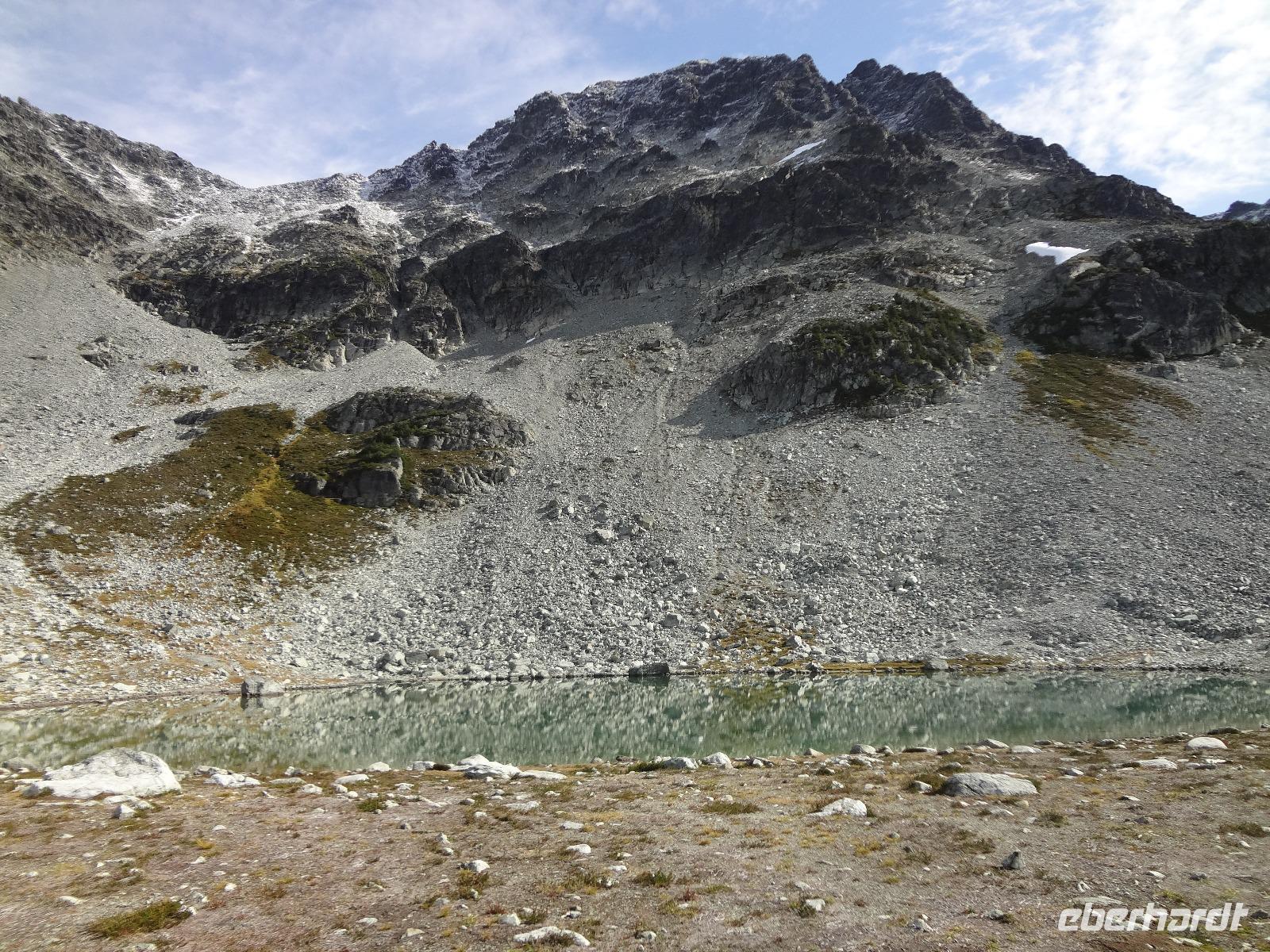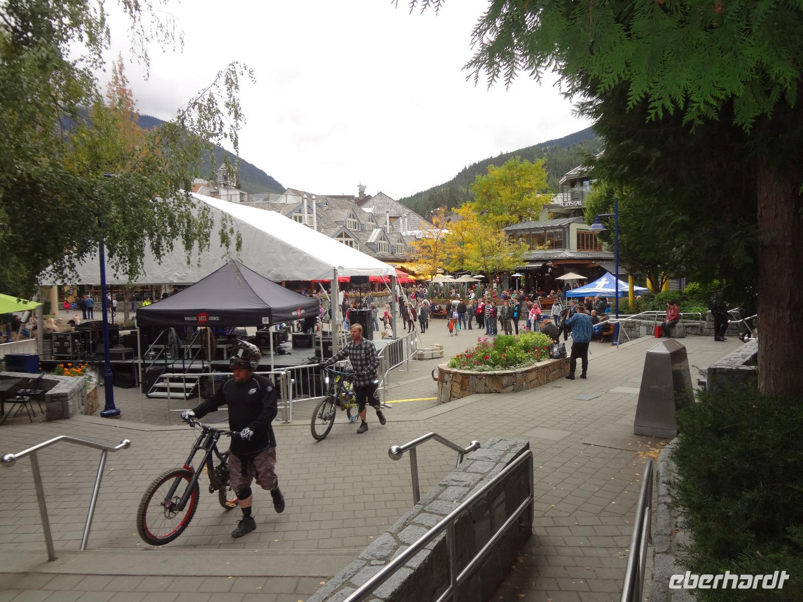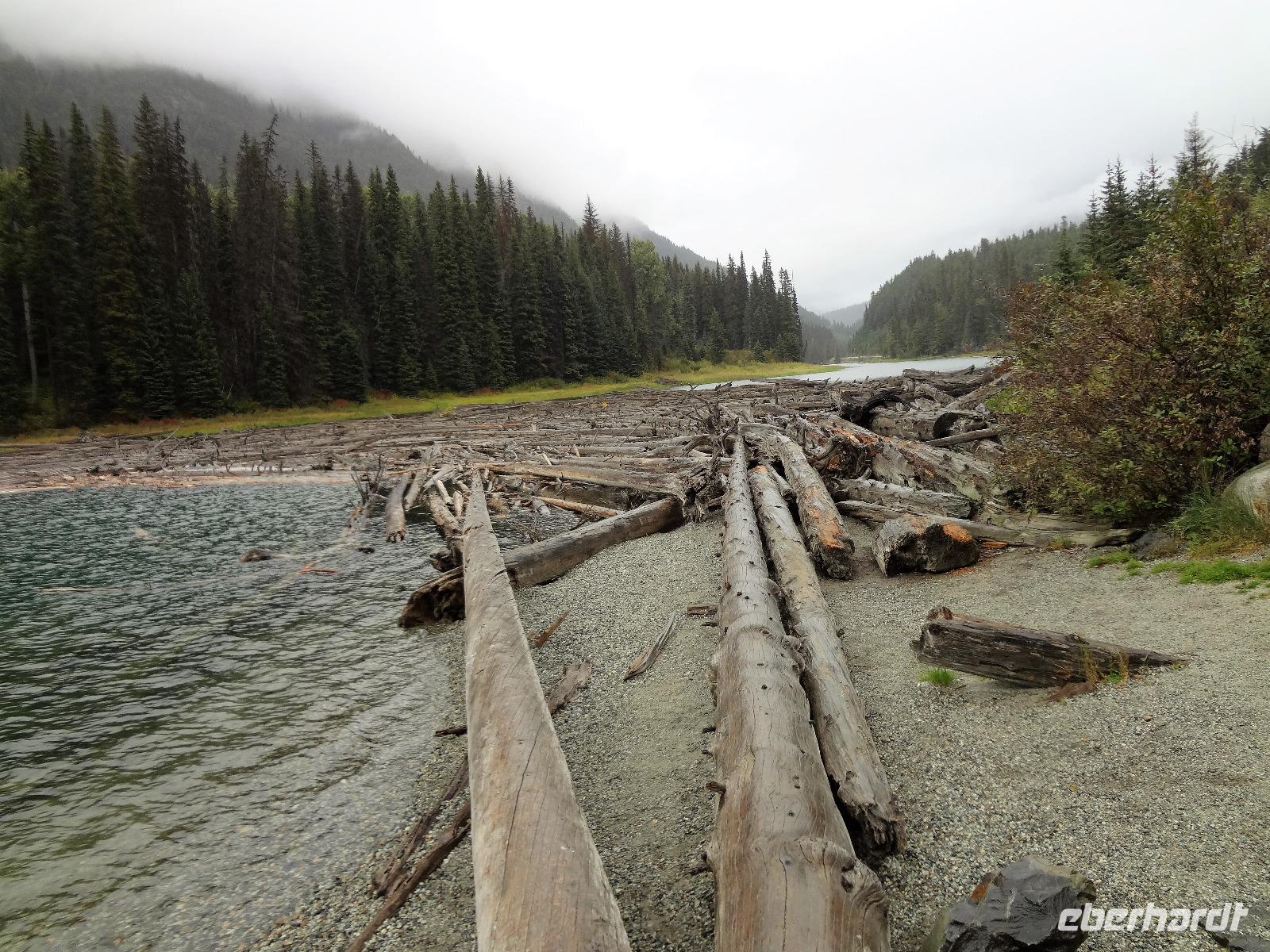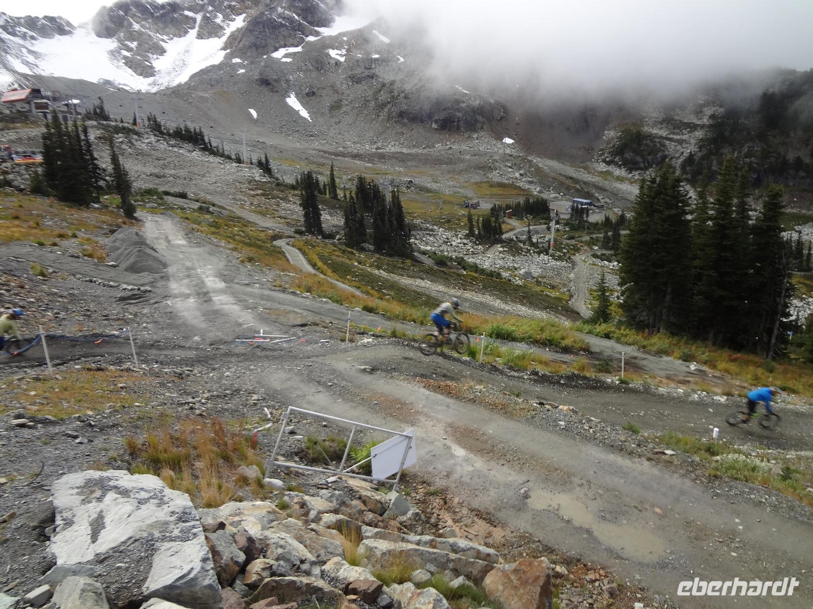 Heute duerfen wir eine halbe Stunde laenger schlafen.....da wir einen Whistler-Blackcomb Wandertag einschalten. Das Fruehstueck dauert zwar ewig bis es bestellt ist und noch eine Ewigkeit, bis es zubereitet und serviert wird. So hat das Wetter auch Zeit sich zu verbessern und wir gehen gut gelaunt zur Talstation der Whistler Gondel. Hier wird gerade ein Film gedreht und wir werden ganz schnell abgefertigt. Schon schweben wir in Gondeln die jeweils 8 Personen fassen koennen. 20 Minuten dauert diese Fahrt unterdessen hoeren wir einige Whistler Skigeschichten und schauen gespannt in die Tiefe wo die Downhill Biker, Kopf und Kragen aufs Spiel setzen um mit so einem Drahtesel so schnell wie moeglich den steilen Berg hinunter zu flitzen. Ausschauen tun sie wie mittelalterliche Krieger die sich gerade durch den Schlamm gekaempft haben. Durch die erste Wolkendecke sind wir durchgeschwebt und nun sind wir auf Whistler Mountain oben. Ein fantastischer Blick auf die Bergspitzen, die Gletscher und einen kleinen Stausee tut sich vor unseren Augen auf. Da die Wolke jedoch hochkommen moechte, entscheiden wir uns, gleich auf Blackcomb hinueber zu schweben. WOW, wir sitzen in der laengsten Seilbahn der Welt mit der laengsten Spanne. Wir fliegen von einem Berg zum andern in einer dicken Wolke gehuellt. Auf Blackcomb aber, blaest ein zarter Hauch von Wind und alsbald ist die Sicht wieder frei. Auf gehts, die Wanderung zum Balckcomb Lake wartet schon auf uns. Es ist ein sehr schoener Weg, etwas eng, durch Wald und ueber Pisten mit herrlicher Aussicht auf Whistler Mountain und sogar auf den Black Tusk. Beim See machen wir Pause ehe wir denselben Weg zurueck nehmen. Nun schaut die Welt wieder ganz neu aus und wir reden und lachen viel ueber verschiedene Themen. Zurueck in Whistler, wollen die einen zu Lost Lake spazieren, andere wollen einkaufen gehen und die meisten wollen einfach das Dorf mit seinem Musik festival geniessen. Wir sehen uns alle wieder zum Abendessen im La Boca, wo uns die Vorspeise und das Dessert sehr gut schmecken, die Pasta dazwischen, als Hauptgericht, jedoch etwas weniger. Heute ist Samstag, da ist im Dorfkern sicher noch mehr los als gestern. Whistler ist ein echtes Partydorf mit einem Durchschnittsalter unter 25 Jahren. Schoen wars.