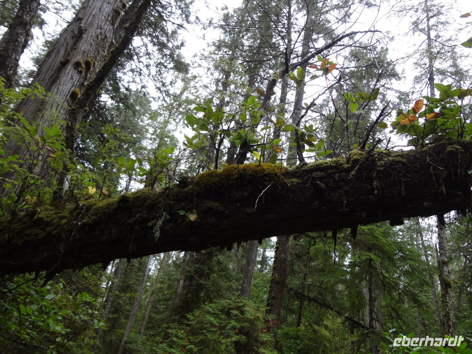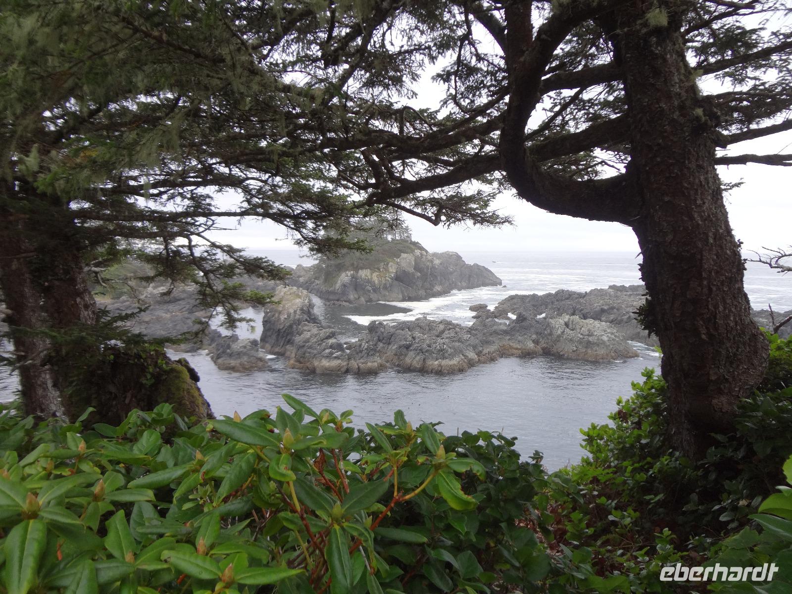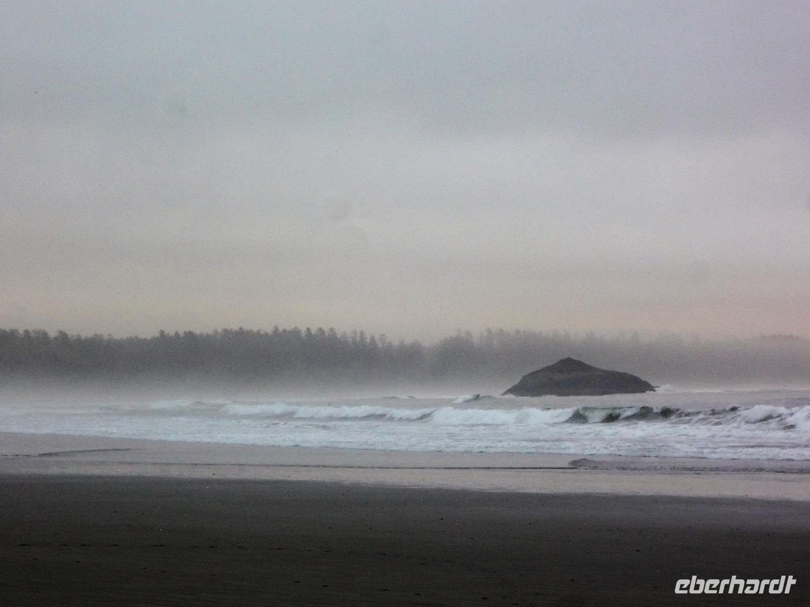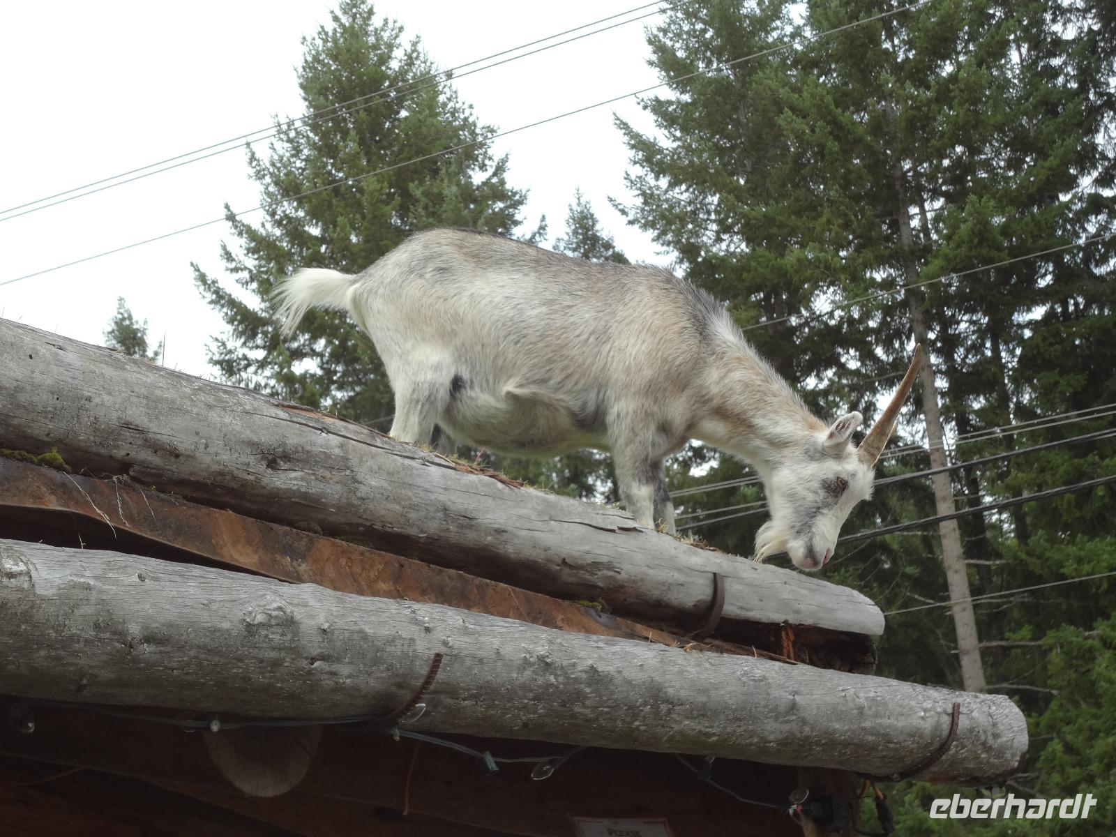 In Whistler ist immer gut schlafen und das Fruehstueck ist auch heute wieder spaet aber ueberschwenglich. Heute fahren wir schon zeitig weg, eine ½ Stunde frueher als ueblich da wir nach Vancouver fahren werden um dort die Faehre auf die Insel von Vancouver zu erwischen. Der Himmel ist verhangen und die Strasse ist an diesem Sonntagmorgen ganz leer. Wir erfahren vieles ueber die Olympiade die hier im 2010 abgehalten wurde und auch wie es zu Whistler Blackcomb kam. Vielleicht sollten wir auch in Whistler ¼ Zimmer in einem Hotel kaufen, sodass unsere Investition sich so schnell verdoppelt ! Mit solchen Flausen im Kopf, kommen wir gut voran und sind auch zeitig bei der Faehre in Horseshoe Bay. Kaum auf der Faehre lichtet sich auch schon das Wetter und wir sehen in den ersten 10 Minuten eine Gruppe Schweinswale tummeln. Sie sind so schnell, dass man sie kaum fotografieren kann. Wir schauen auf die vorgelagerten Inseln und die Stadt Vancouver in der Ferne. Auf der Faehre gibt es allerhand, ein Geschaeft mit Kleider und Schnickschnack, sowie ein Restaurant, eine Bar, Spielplatz und Sonnendeck. Nach 1 ½ Stunden segeln wir in Nanaimo ein und fahren auch gleich weiter zu unserem Mittagsziel. Coombs heisst dieser Markt wo die Ziegen auf dem Dache grasen und man in der Markthalle allerhand zu essen finden kann. Interessante Geschaefte gibt es um diese Markthalle herum und wir amuesieren uns an der feilgebotenen Ware die teilweise wirklich viel zu gross ist mitzunehmen. Nach einer Stunde gehts wieder weiter zum naechsten Ziel. Ein Stueck wunderschoener Urwald will von uns erforscht werden. Die Riesen schauen auf uns kleine Menschen hinunter und wundern sich vielleicht weshalb wir wie wild knipsen. Diese Stunde im Urwald vergeht viel zu schnell. Die naechsten 2 dafuer ein wenig langsamer. Die Reise durch die Insel, an die wilde West Kueste, ist sehr kurvenreich und verfuehrt uns, nach Gespraechen ueber das Sozial- und Schulwesen Kanadas, dazu, die Augenlieder von innen anzuschauen. Bei Sproat Lake und Kennedy Lake vorbei kommen wir in Ucluelet an. Einchecken und dann gleich auf eine schoene Wanderung auf dem Wild Pacific Trail bis zum Leuchtturm. Dort wartet Colin schon auf uns und faehrt uns ins Restaurant zum Abendbrot. Alles war lecker aber danach eilen wir in unsere Zimmer. Gute Nacht.