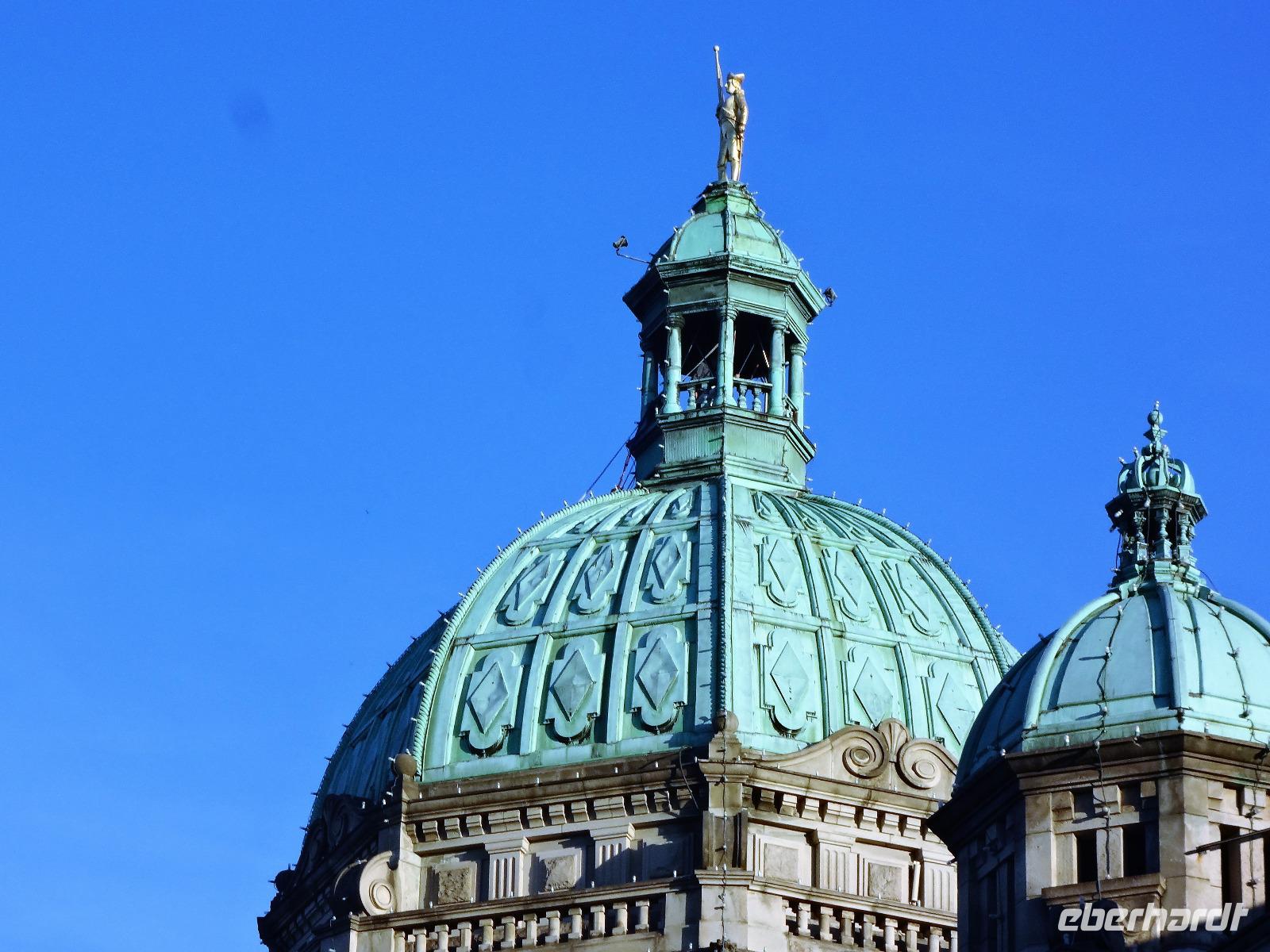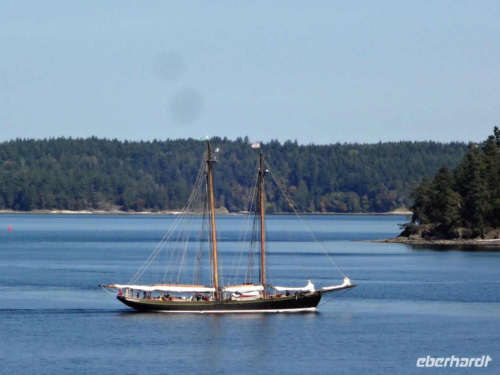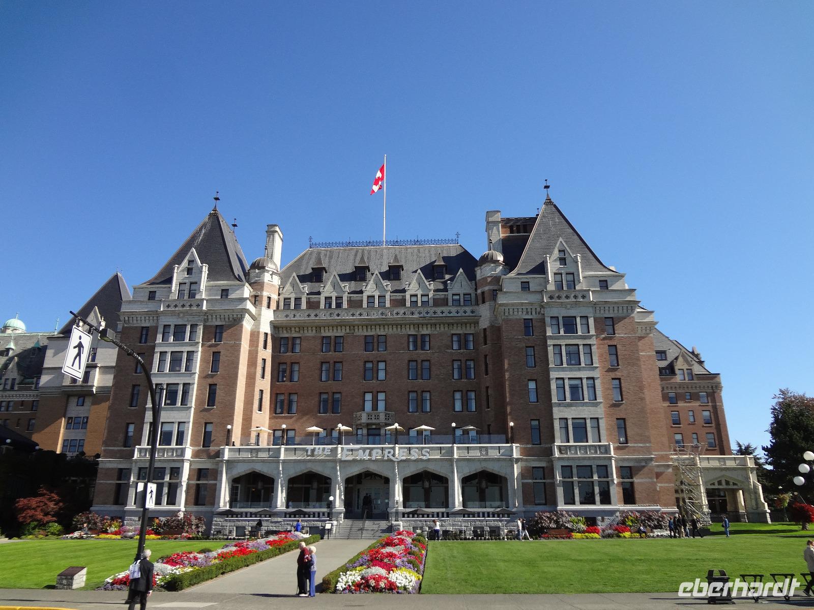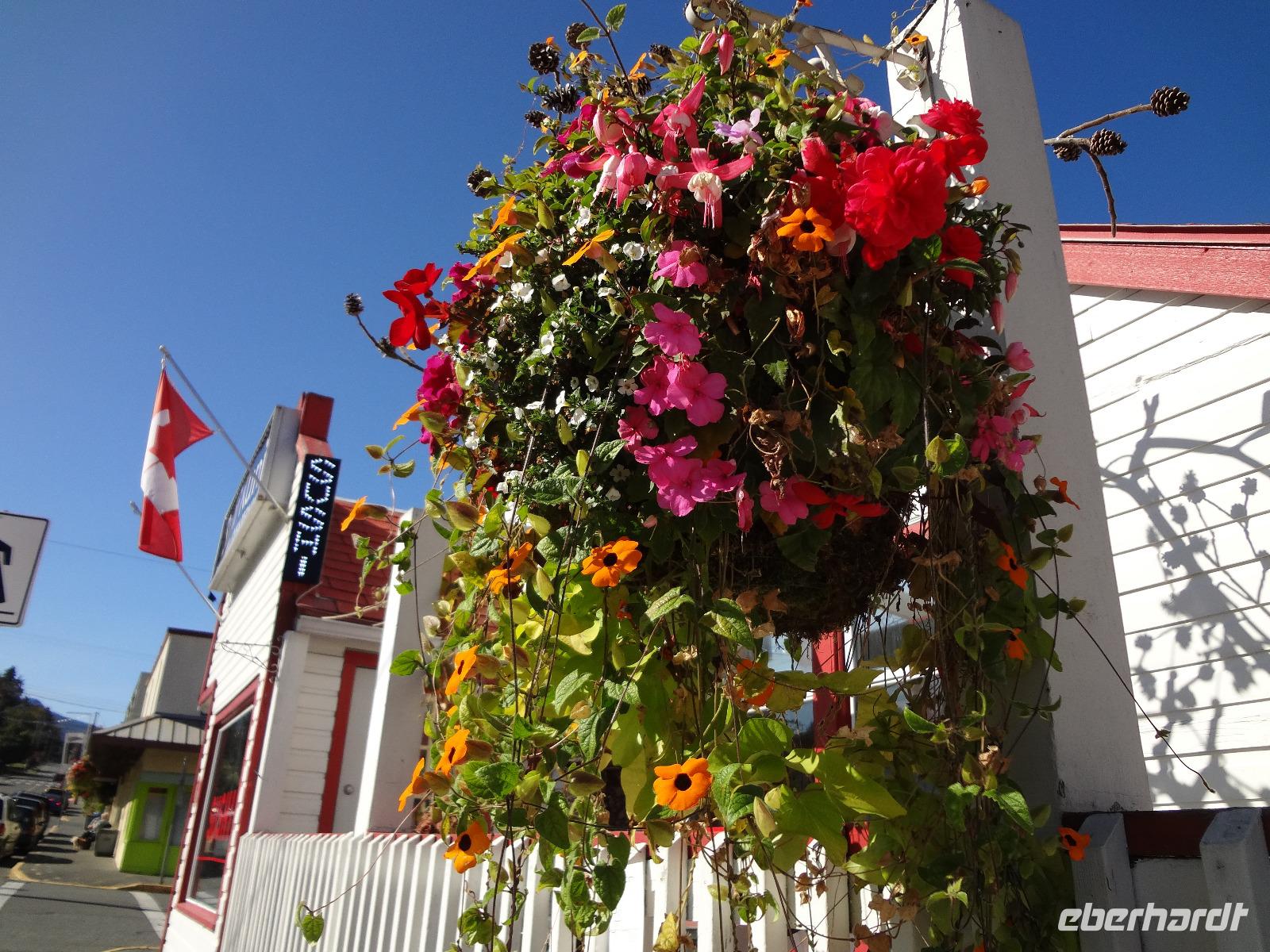 Herrlicher Sonnenschein erwartet uns heute. Noch schnell das letzte Bild von dem schoenen alten Schiff „Canadian Princess". Sie war nun 30 Jahre hier in Ucluelet angelegt und wird morgen den Hafen verlassen. Ein chinesischer Millionaer hat das Museumsstueck gekauft und niemand weiss so richtig, wohin sie segeln, oder besser „gezogen" wird. Wir werden es sicher in den Zeitungen erfahren. Ein Halt beim Wickaninnish Center beschert uns einen gebuehrenden Abschied von Pacific Rim National Park. Es war sehr schoen und hat uns sehr gefreut ! Haette Kaiser Franz Joseph gesagt. Die Sonnenstrahlen glitzern auf den langen Wellen, der Dunst des Meeres huellt die Felsen in ein zartes Licht und die angeschwemmten Hoelzer bleiben wie Kunstwerke am Strande liegen. Unsere Reise fuehrt uns wieder zurueck in die Wirklichkeit, vorbei in Port Alberni mit einem Stopp bei Tim Hortons fuer Kaffee und Donuts, sodass wir gestaerkt nach Chemainus weiterfahren koennen. Chemainus ist ein Freilichtmuseum ganz besonderer Art. Das Dorf ist eine Bildergallerien. Hier bleiben wir eine Weile, um die vielen Gemaelde anzuschauen, und auch was kleines zu Mittag zu finden. Danach gehts weiter nach Victoria. Hauptstadt von Britisch Columbien mit seinen schoenen Blumenampeln, dem majestaetischen Parlament dem lebhaften Hafen und natuerlich dem maechtigen Empress Hotel. Wir machen eine Stadtfuehrung zu Fuss und lernen so gleich schon Chinatown mit ihrer eigenen Schule und engen Gassen kennen, sowie die Bastion, die Government Street mit allen ihren tollen Geschaeften und die Agatha Christi-Romeo und Juliette-Geschichte um den Architekten des Parlaments. Unser Hotel ist ganz in der Naehe des Hafens und das feine Restaurant indem wir fuer unser Abendessen gebucht sind, hat eine herrliche Aussicht auf das beleuchtete Parlamentsgebaeude. Mmmm, der Steak, der Lachs, das Haehnchen, alles ist so lecker, dass viele danach noch im Irish Pub bei live Musik auf ein Bierchen einkehren. So wird es eine kuerzere Nacht im Hotelzimmer, aber Morgen muessen wir auch nicht so frueh wieder raus.