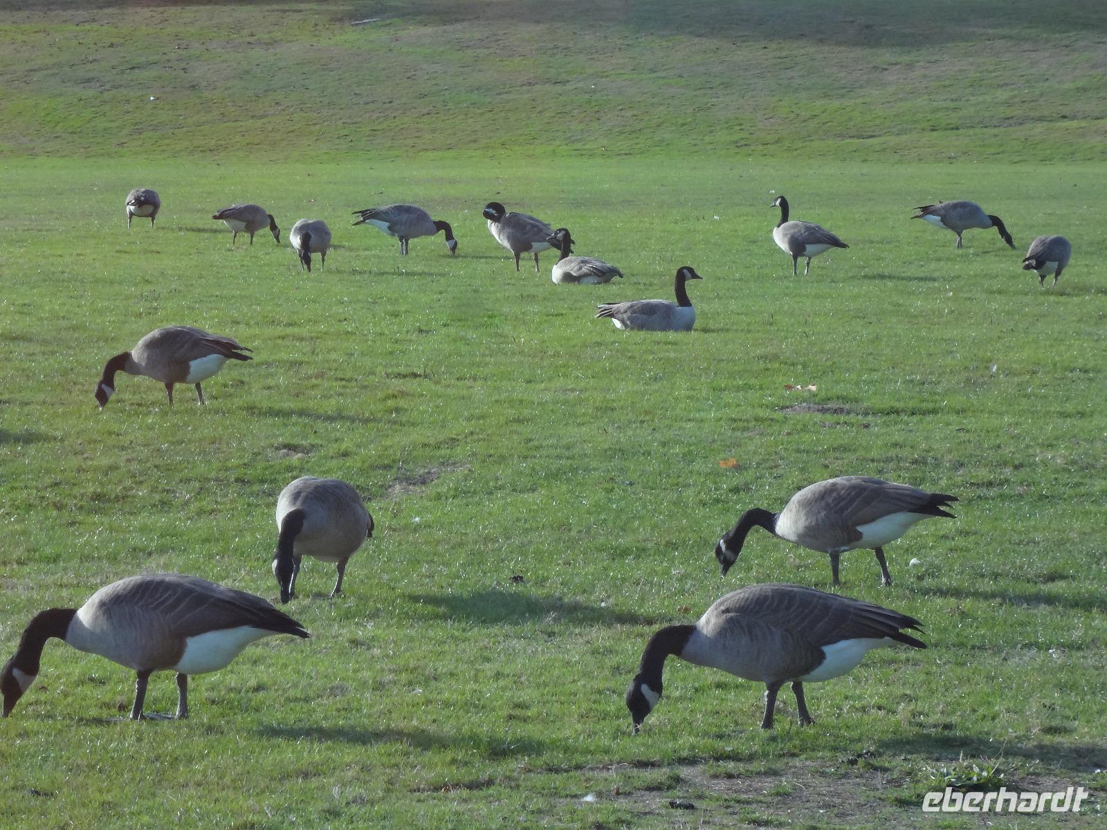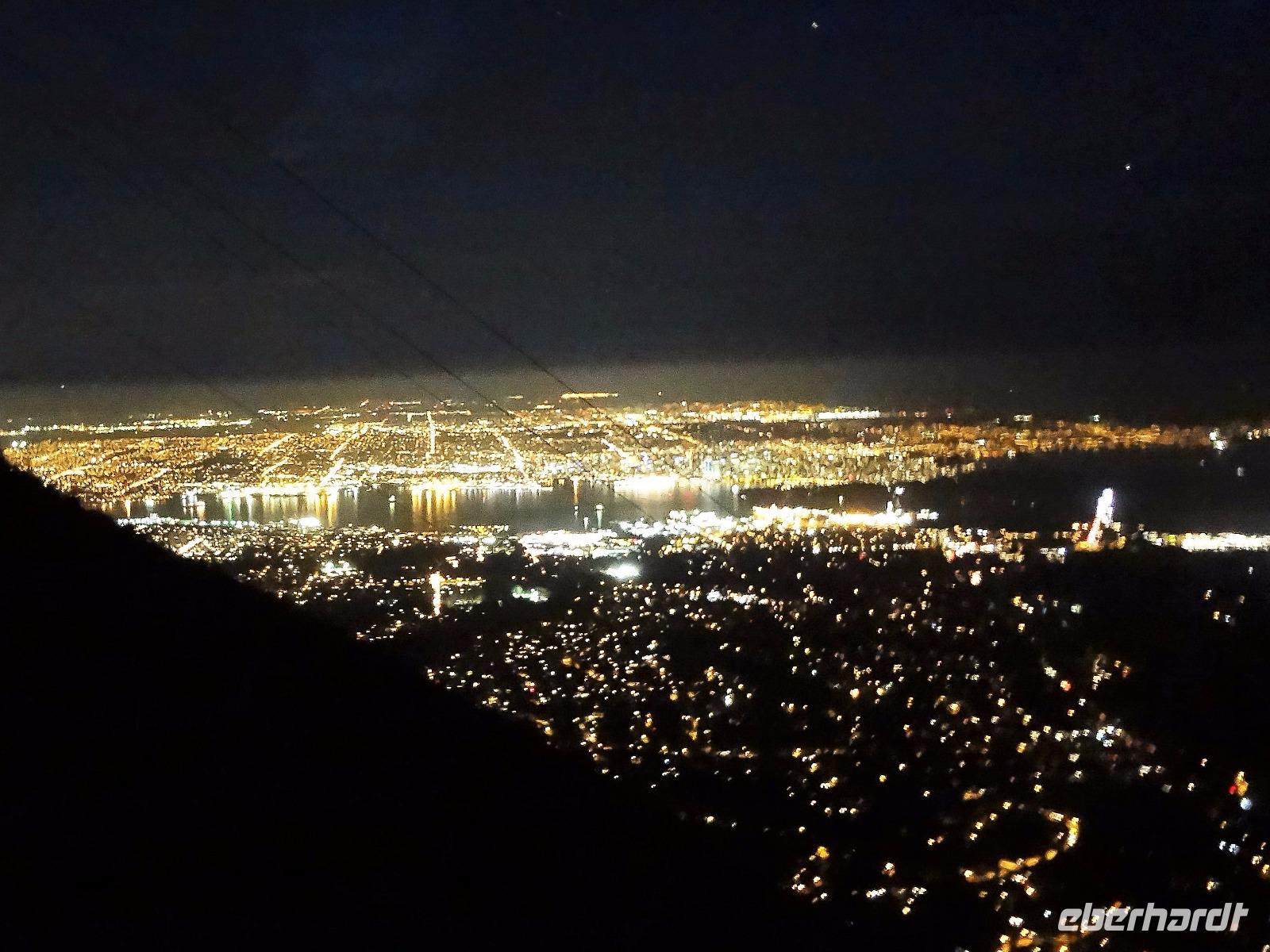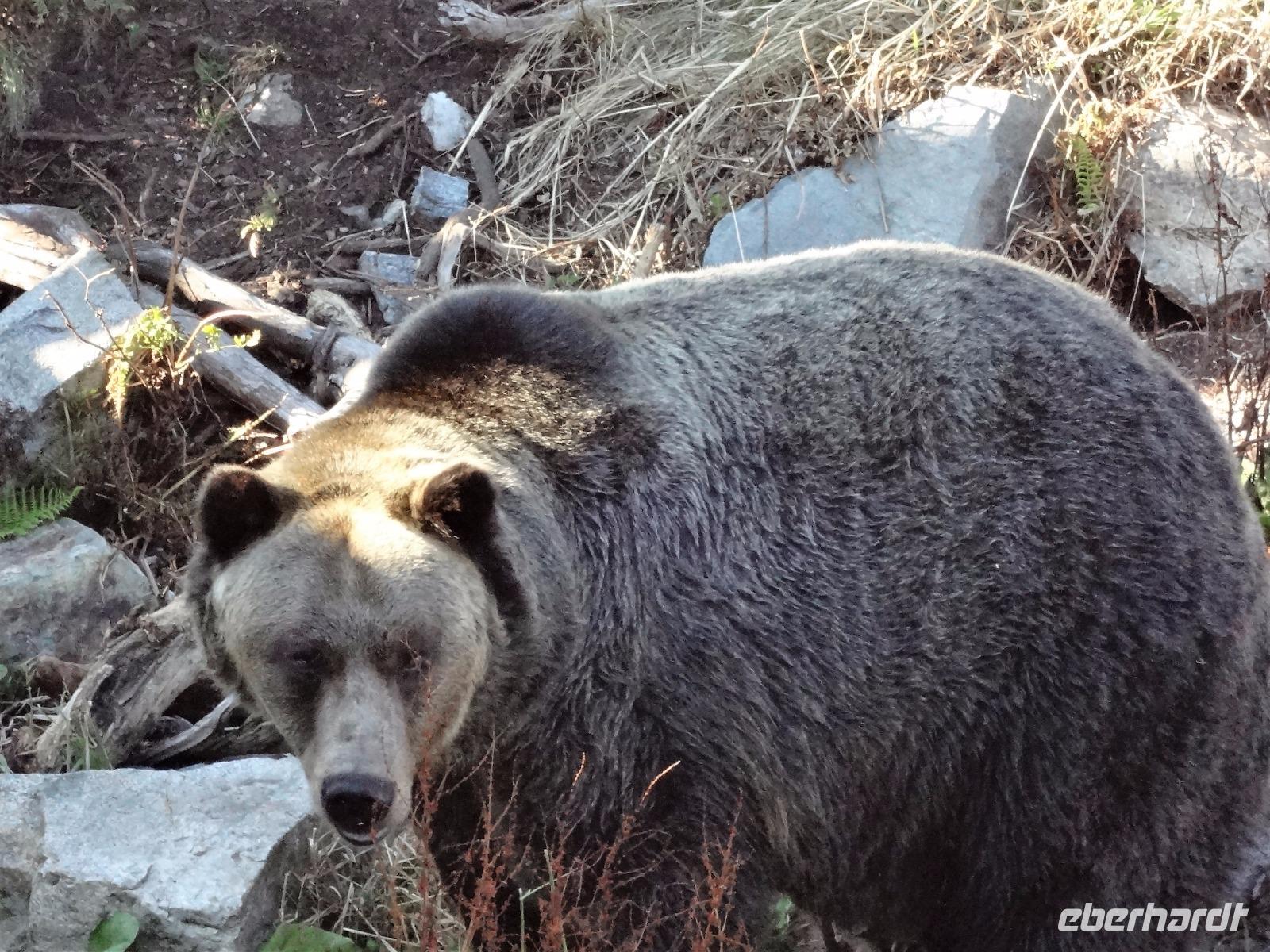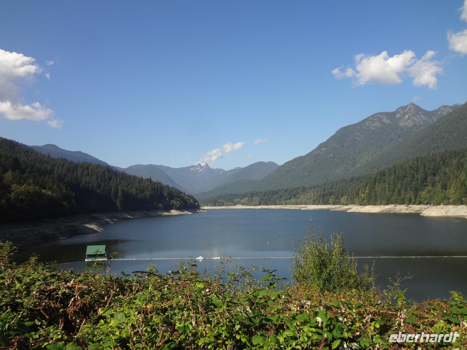Sonnenschein, wunderbarer Sonnenschein. Das Fruehstuecksbuffet ist schoen und unser neuer Kleinbus faehrt uns entlang der Nordkueste Vancouvers zu einem schoenen Park. Wir wandern 1 Stunde im Lighthouse Park wo wir immer wieder zu herrlichen Aussichtspunkten gelangen und wo wir uns auch von den Urbaeumen gebuehrend verabschieden koennen. Der Wanderweg sei relativ ebenerdig wird uns prophezeit....aber eben, nur relativ.....es geht rauf und runter, ueber Wurzeln und Steine, auf Felsen hinauf und unter Beaumen durch. Nun sind unsere Lungen von der guten Luft angereichert und wir lassen uns zu einer der laengesten Haengebruecken der Welt bringen. Bei Capilano Suspension Bridge, so heisst diese Bruecke, amuesieren wir uns ueber den Lebenswandel ihrer frueheren Besitzer, bewundern die schoen geschnitzten Totem und gelangen so zur Bruecke. Wir trauen uns alle hinueber, auch weil man ueberall in diesem Park versteckte Stempel hat wo man seinen Weg abstempeln lassen kann, zur Erinnerung ! Natuerlich sind einige Stempel auf der anderen Seite der Bruecke. Dort klettern wir auch auf einen Turm, wo beim Wipfelweg verschiedene Bruecken an hohen Bauemen angebracht sind. Die Fotoapparate arbeiten wiede sehr fleissig und ihre Besitzer versuchen hinter ihnen herzulaufen. Wieder zurueck auf der Eingangsseite, erleben wir auch den neuen Weg, der an einer Felswand angeklebt ist. Da braucht man noch mehr Mut, aber uns Wanderer schuechtert sowas nicht ein. Jetzt verstehen wir auch ein wenig, wie es den Kletterer geht die auf einer Via Ferrata gehen. Nun ist aber Zeit fuers Picknick. Tische, Stuehle, Baenke gibt es zur Genuege und man riecht den Duft der Speisen die gegrillt werden. Nach der Pause fahren wir zur Capilano Fischaufzucht und gleich danach schauen wir uns den Damm von Capilano Lake an. Es werden gerade Arbeiten am Damm durchgefuehrt und so machen wir ein Foto von der unendlichen Tiefe und dem Wasser, was da hinunterstuerzt. Das naechste Ziel und Abenteuer wartet schon auf uns, mit einer Gondel schweben wir auf Vancouvers Hausberg, den Grouse Mountain. Auf 1200 Meter scheint es hier waermer zu sein als unten am Meer und wir wandern kurzaermelig zu dem Grizzly Habitat um zu schauen, was Grinder und Coola so machen. Es ist ihnen zu warm und sie doesen vor sich hin. Der kurze, langsame Peak Sessellift ist heute das letzte mal geoeffnet und dieses Vergnuegen wollen wir auch mitmachen. Nichts wie hin und „Aufi" gehts. Uh, hu, die Aussicht von hier oben ist noch gigantischer als jene von der Gondel aus. Ganz Vancouver liegt uns zu Fuessen. Nur die Holzfaeller-show, ueberzeugt uns doch wieder hinunter zu fahren. Die Show ist echt lustig und die zwei Holzfaeller kaempfen um den ersten Preis. Sie faellen, sie kraxeln, sie balancieren und sie schnitzen mit Kettensaegen, der Holzfaeller rechts gewinnt schlussendlich und die Freude ist gross. Unsere Freude auch, denn Grinder ist aufgewacht und spaziert gemaechlich zum Wasser. Er ist schoen dick angefressen da er ja auch bald in den Winterschlaf gehen wird. Wir hingegen, werden nun mit einem wunderbaren sophistizierten Abendessen verwoehnt. Das Menue hat sogar das Eberhardt Logo drauf und das Essen ist so vorzueglich, dass wir uns lange daran erinnern werden. Das Abendessen bei der Aussicht ist ein Erlebnis fuer sich. Die englische Koenigsfamilie die im Moment in Victoria verweilt wird in den naechsten Tagen auch hier essen, hoffentlich haben sie es auch so schoen und lustig wie wir. Ein schoener Abend soll auch gebuehrend abgerundet werden und die Ueberraschung, der 3 Stretch Limousinen ist gelungen. Kein Weihnachtsbaum hat je so viele gleuckliche Gesichter auf einmal gesehen. Stilvoll fahren wir durch Downtown Vancouver bis zu unserem Hotel. Der Absacker in der hauseigenen Bar mit den 2 Pianospielern haben diesen Abend noch musikalisch abgerundet und die Martinis und Mohitos schmeckten auch ganz lecker. So haben wir einen wunderbaren letzten Tag in Vancouver verbracht.
