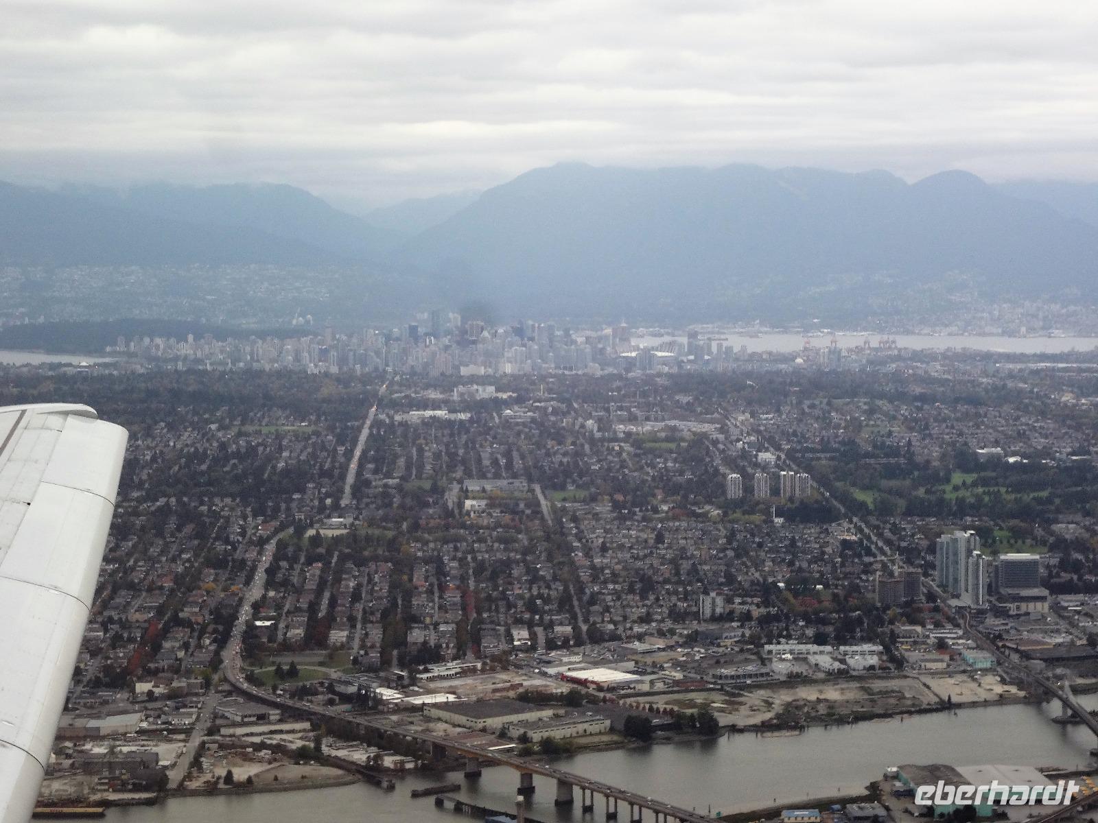 Ohh, eine Jacke hat sich gestern bei der Capilano Suspension Bridge vom Besitzer getrennt und hat mausseelen alleine die ganze Nacht auf einer Bank verbracht. Der Besitzer hat sich gemeldet, die Jacke auch, ein Taxi hat die beiden wiedervereint und die Wiedersehensfreude ist riesengross. Bald kommt auch schon unser Bus, der uns zum Flughafen bringt. Wir sind etwas traurig gestimmt, lieber wuerden wir diese Reise gleich nochmals umgekehrt machen. Das einchecken geht reibungslos sowie die Kontrollen. Eine Stunde haben wir noch um uns umzuschauen und dann bekommt jeder wieder seine 50 cm im Quadrat als Spielwiese zugewiesen fuer die naechsten 5 Stunden. In Toronto eilen wir zum Gate E 75. Unser Flug wird uns ueber Nacht nach Frankfurt bringen. Ein Abendessen und ein Fruehstueck spater landen wir am...