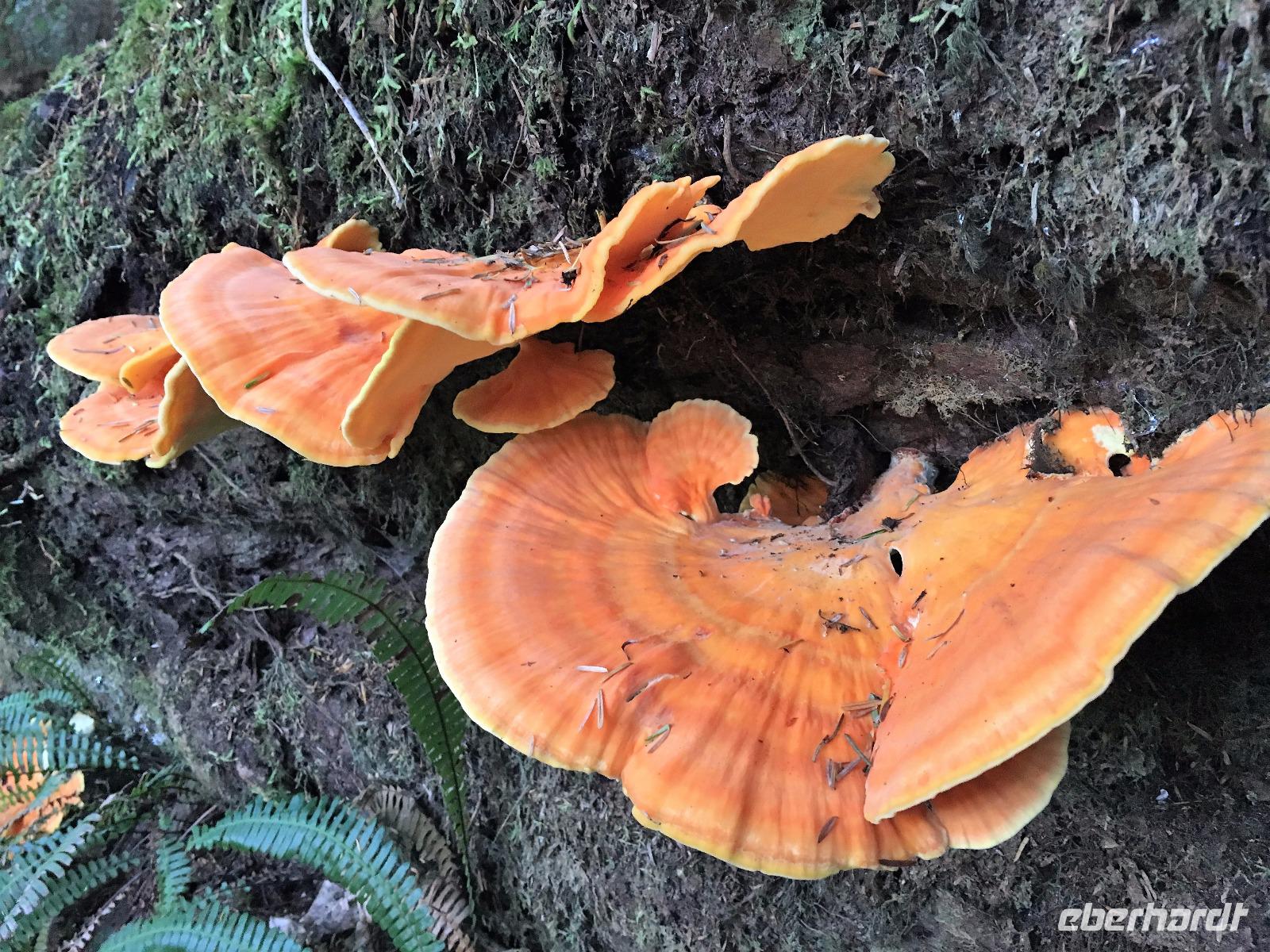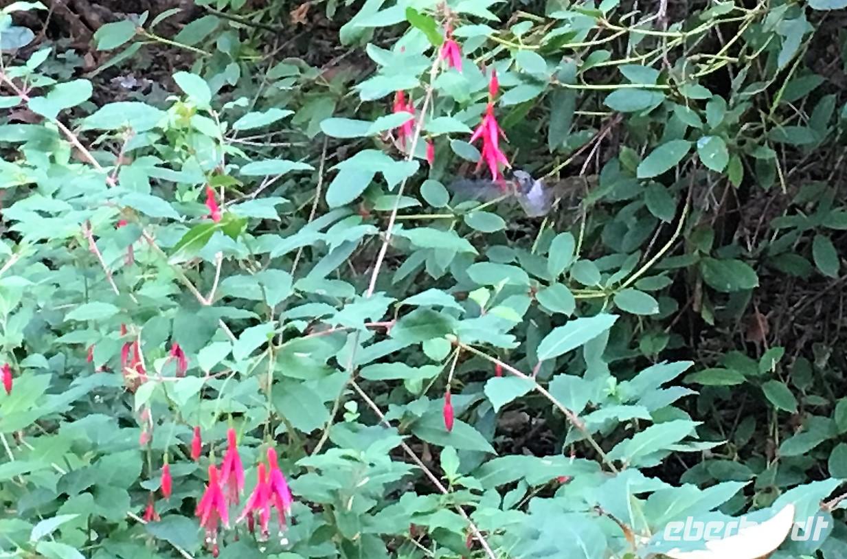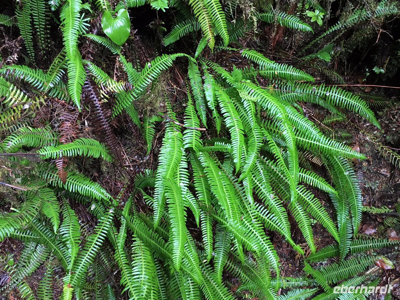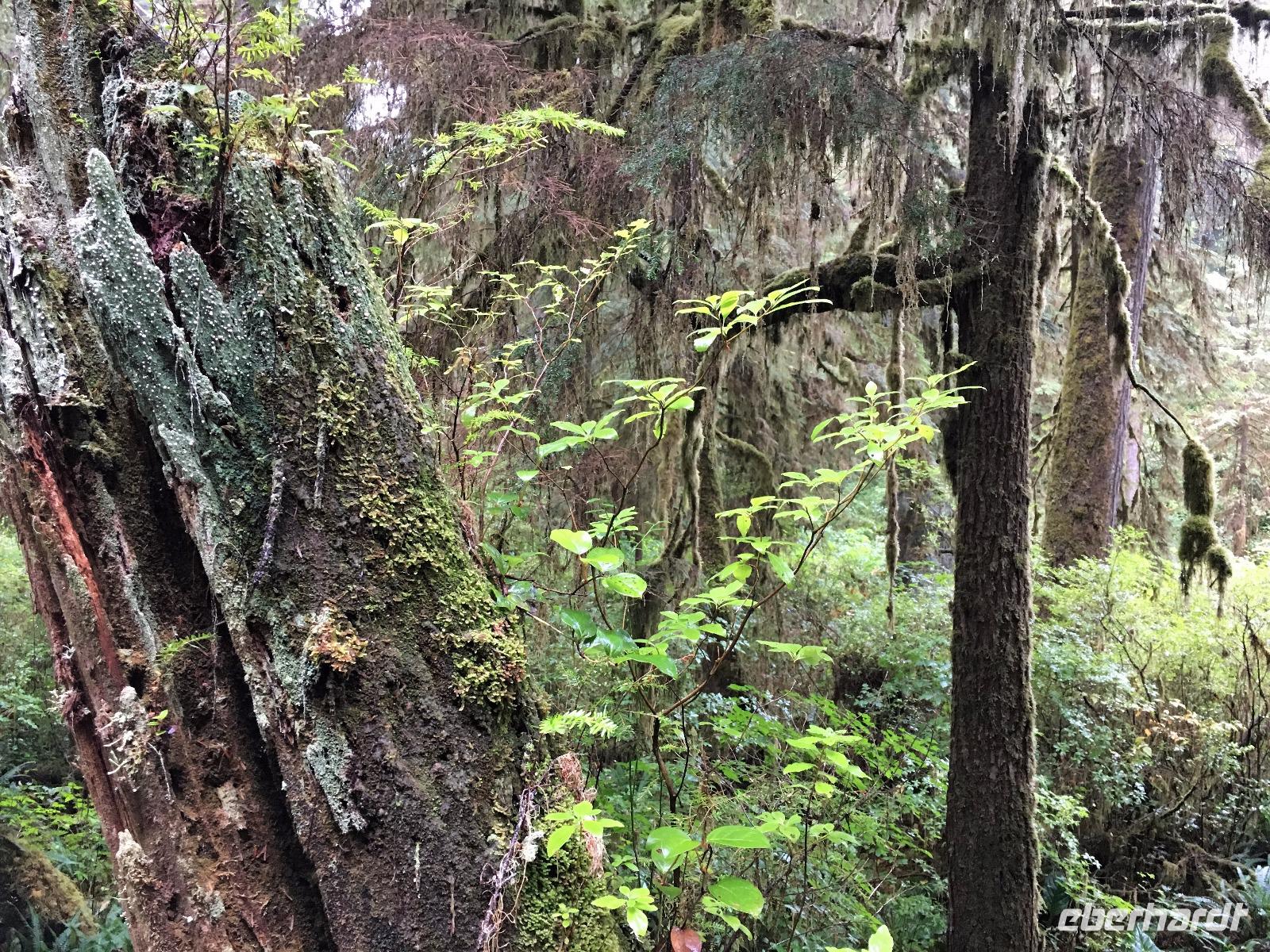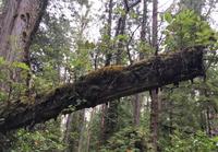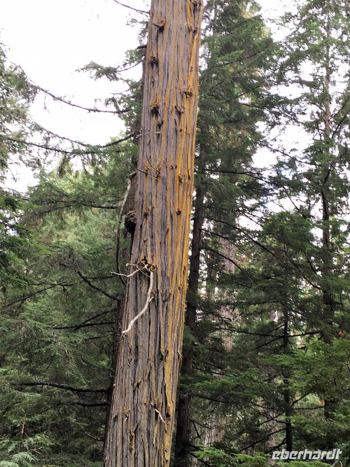 Es ist unser Westkuesten-Tag, der Regenwald-Tag, und es troepfelt sogar ganz leise. Das Fruehstueck nehmen wir in einem huebschen kleinen Kaffeehaus ein. Ausser ein paar Ortsansaessige belegen wir das ganze Restaurant. Als erstes wollen wir gleich mal diese legendaeren Riesenbaeume des Pacific Rim Nazionalparks sehen und halten also auch gleich bei einem Rundwanderweg an. Auf einem Holzsteg gehend geniessen wir die Ueberschwenglichkeit der Vielfalt dieses Waldes. Es ist wirklich ein Urwald auf 3 Etagen und wir bewegen uns mal im Unterholz und mal im Mittelbereich. Die Krone des Waldes ist kaum sichtbar...so hoch oben... aber auch weil es immer wieder regnet und wir die Scheibenwischer unserer Brillen nicht dabei haben ! Gerade im Regen, wird uns erklaert, sind diese Waelder am schoensten, alles glitzert, die Farne leuchten und die Troepfchen schauen zierlich aus auf dem Moos und den Luftpflanzen. Es ist wie ein Maerchenwald. Knipsend und staunend gehen wir und sehen nach einer Stunde auch unseren Bus wieder. Auf der Tafel steht, dass dieser Rundgang 1.1 Km lang ist. Wir waren eine Stunde unterwegs und wir sind doch eine Wandergruppe ? Also holen wir die Zeit mit dem Bus wieder ein. Noch einen kurzen Abstecher auf Radar Hill mit der schoenen Aussicht auf den ganzen Pacific Rim National Park und schon sind wir in Tofino. Die Bootsfirma mit der wir den heutigen Ausflug gebucht haben offeriert auch Kaffee, Tee und heisse Schokolade. Es regnet auch nicht mehr und ein bisschen hellblau zeigt sich am Himmel. Warren ist unser Kapitaen, er segelt uns in seinem 600 PS gedeckten Schiff sicher an den vielen Inseln vorbei. Wir schlaengeln uns eigentlich durch ein Inselmeer. Ploetzlich sehen wir etwas schwimmen, ein Seehund ? Nein, groesser. Ein schoener grosser Schwarzbaer steigt aus dem Wasser und betritt die Insel die ca 50 Meter neben unserem Schiff liegt. Was fuer ein Glueck, wir sehen unseren ersten Baeren auf dieser Reise. Nun sind wir uebergluecklich sodass auch die 10 Minuten unruhige See uns gar nichts ausmachen. Wir haben auch einen Seemann unter uns, er geniesst den hohen Wellengang lachend, wir anderen ueberleben diese Schauklerei schweigend. Kaum an Destination gelandet, faengt es an zu schuetten was nur geht. Wir verabschieden uns von Warren und eilen zur Ueberdachung. Das Picknick schmeckt gut, wenn nicht durchnaesst. Jetzt wollen wir aber zu den heissen Quellen und das ist eine 1 stuendige Wanderung durch den Wald. So schoen, jetzt so nass. Bloss 2 unter uns, trauen sich bei Ankunft an den Quellen, die triefende Kleidung auszuziehen um ins warme Nass zu springen, die anderen schauen kopfschuettelnd zu. Es regnet immer heftiger, als waere das moeglich, die Tropfen sind so lang wie endlose Spaghetti und total gebadet erreichen wir wieder die Anlegestelle. Bald kommt das Wasserflugzeug, um uns durch die Luefte zu heben und uns wieder mit dem warmen Bus zu vereinen. Der Flug mit so einem Wasserflugzeug ist ein Abenteuer fuer sich es ist toll ueber die Inselwelt zu schweben wie ein Vogel. Mancheiner unter uns haelt auch Ausschau, ob er den Baeren nicht doch noch einmal sehen kann. Auf dem Steg in Tofino treffen wir auf jene die heute «frei» haben und Brendan. Nun gibts aber einen heissen Kaffee und danach fahren wir auch gleich zurueck zum Hotel, wo jeder seine eigene Quelle/Badewanne geniesst. Ein feines, wenn auch unuebliches Abendessen rundet diesen ereignisreichen Tag ab. Das offerierte Bier schmeckt vorzueglich, der gute Schlaf ist gesichert.