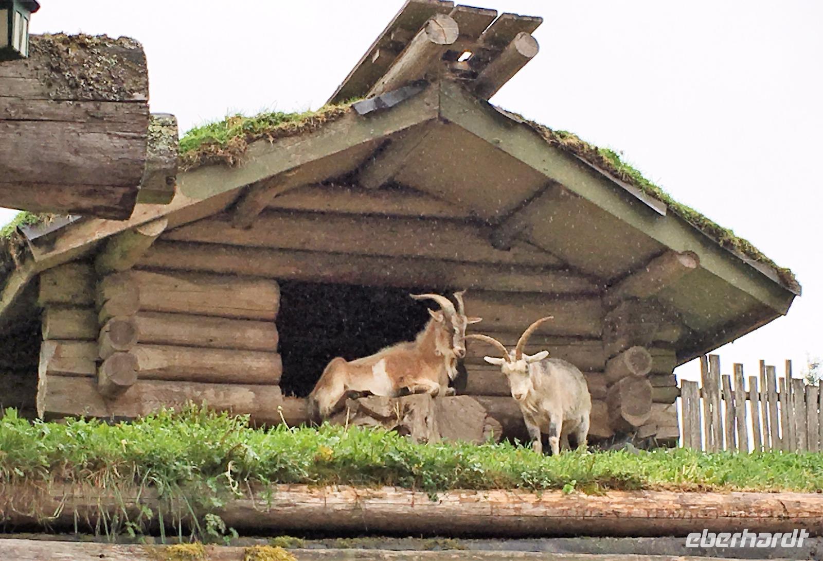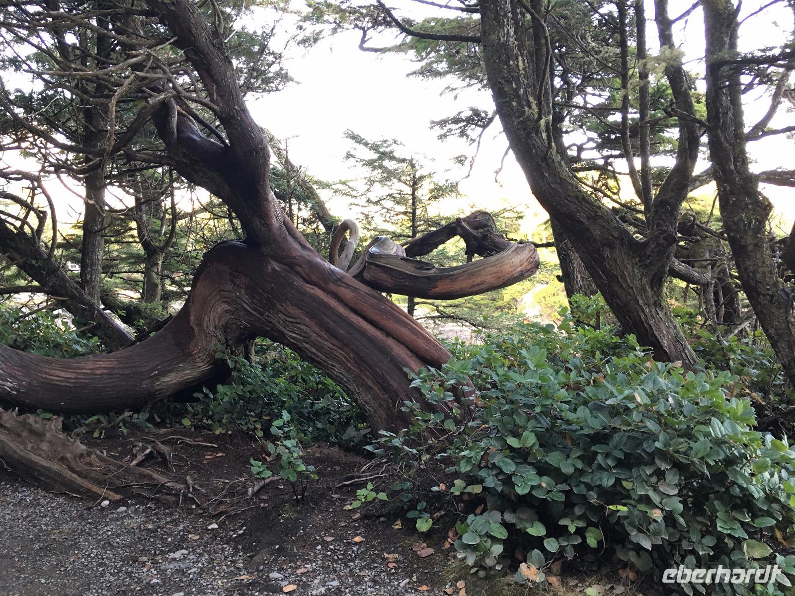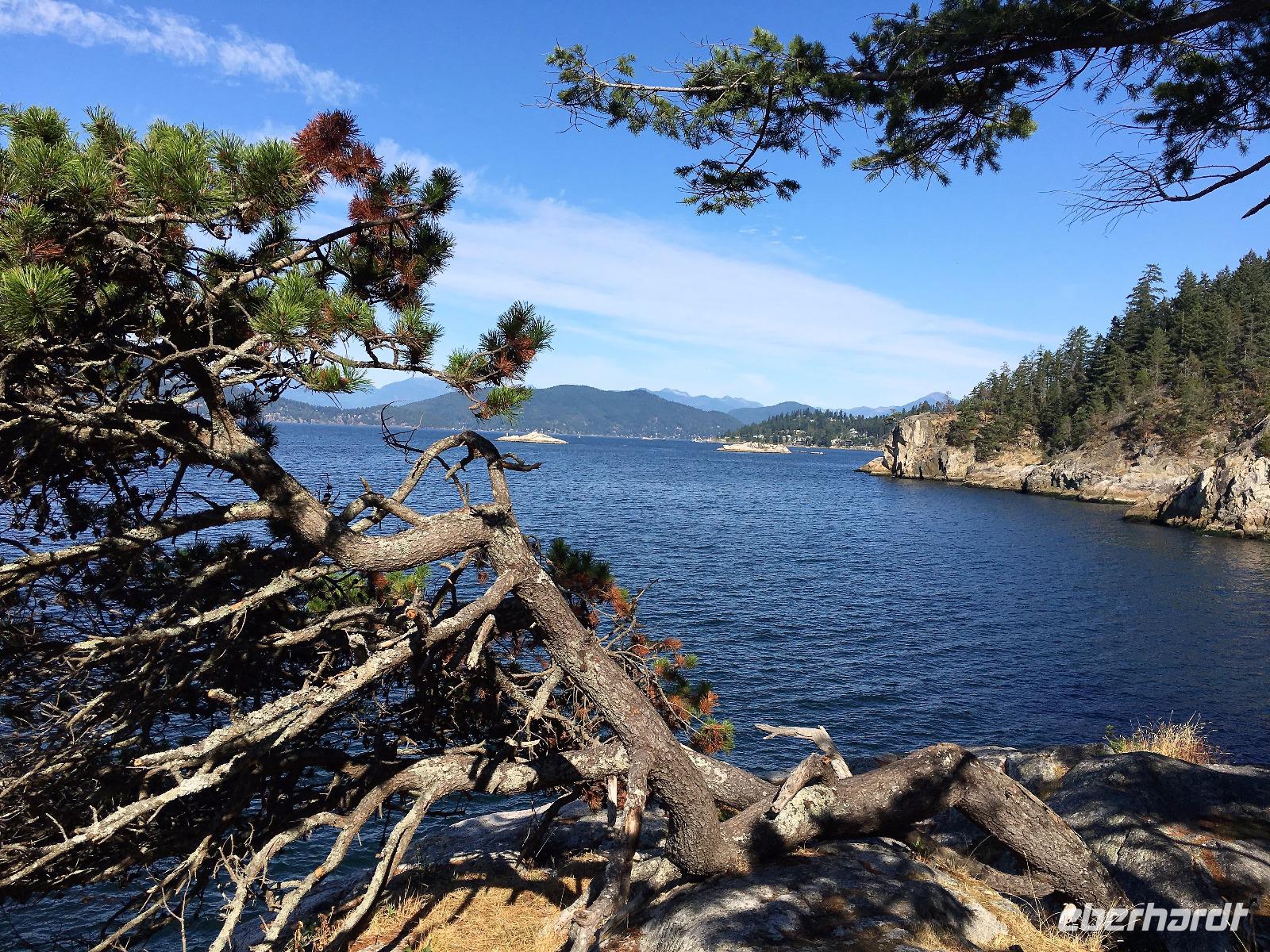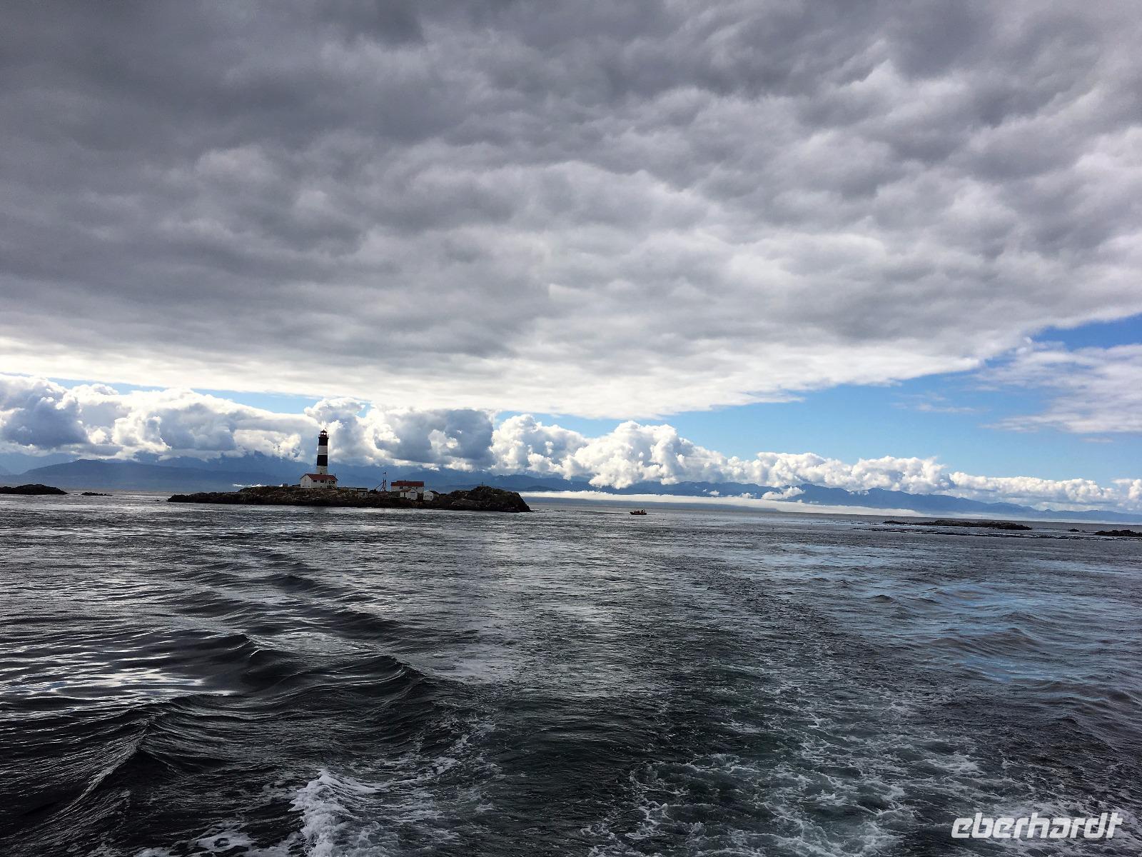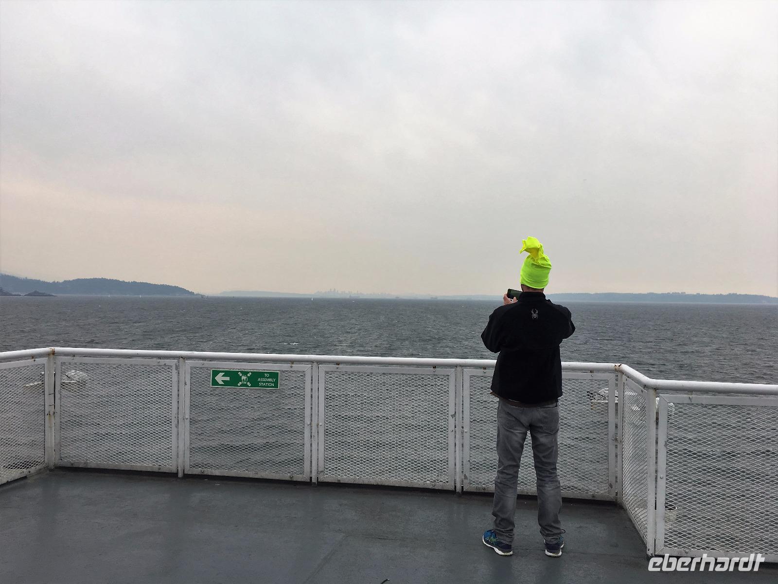 Das Fruehstuek schmeckt bestens und ist auch sehr ueppig. Es regnet und so sind wir gar nicht so traurig dies lustige Whistler zu verlassen. Auf der Sea to Sky Highway fahren wir zuegig gen Vancouver. Ein Halt um ein Foto der Tantalus Berge zu schiessen und gleich weiter nach Horseshoe Bay wo die Faehre uns in 1 Stunde 35 Minuten auf die Insel von Vancouver bringen wird. Wir fahren gleich mit dem Bus auf die Faehre und steigen aus um dem Auslaufen beizuwohnen. In der Ferne sieht man die Hochhaeuser von Vancouver. Die Perle des Pazifiks werden wir jedoch erst in 4 Tagen besuchen ! Wir wollen heute nach Ucluelet das ist auf der Westkueste der Insel. Der Mittagsstopp beim Markt in Coombs ist unterhaltsam und die Ziegen stehen wohl auf dem Markthallendach, jedoch unter einem Daechlein da auch sie nicht nass werden wollen. Die Stunde vergeht sehr schnell, da es hier so viel anzuschauen gibt. Waeren die Koffer nicht schon so voll, haetten wir gerne so einen Riesenbudda fuer den lieben Nachbarn, ein Holzspielzeug fuer die Enkelchen oder einen handgefertigten Tontopf fuer den eigenen Garten mitgebracht. Leider, leider. Fuers T-shirt hats gerade noch gereicht. Bis wir wieder im Buss sind, scheint schon fast die Sonne. Ganz vertraeumt gehen wir kurz darauf in einem Urwald spazieren. Die Riesen schauen auf uns Zwerge hinunter und viele Baeume sind von Moos so umgeben, es schaut aus, als haetten die einen Pelzmantel an. Jetzt fahren wir aber weiter, denn die Strecke nach Ucuelet zieht sich immer in die Laenge. Dort angekommen, checken wir ein und fahren gleich an einen schoenen kleinen Strand wo unsere «Romantische Wanderung» startet. Wir wandern eine Stunde der Kueste entlang in einem Regenwald. Die Aussichten aufs Meer sind einfach atemberaubend, die Eindruecke haftend. Brendan holt uns beim Leuchtturm auch wieder ab und bringt uns wieder zurueck ins Dorf. Morgen haben wir auch wieder viel vor also ziehen wir uns auch bald zurueck. Ach ja, vielleicht auch bloss, weil es im Fischerdorf Ucuelet keine Clubs oder Bars gibt !