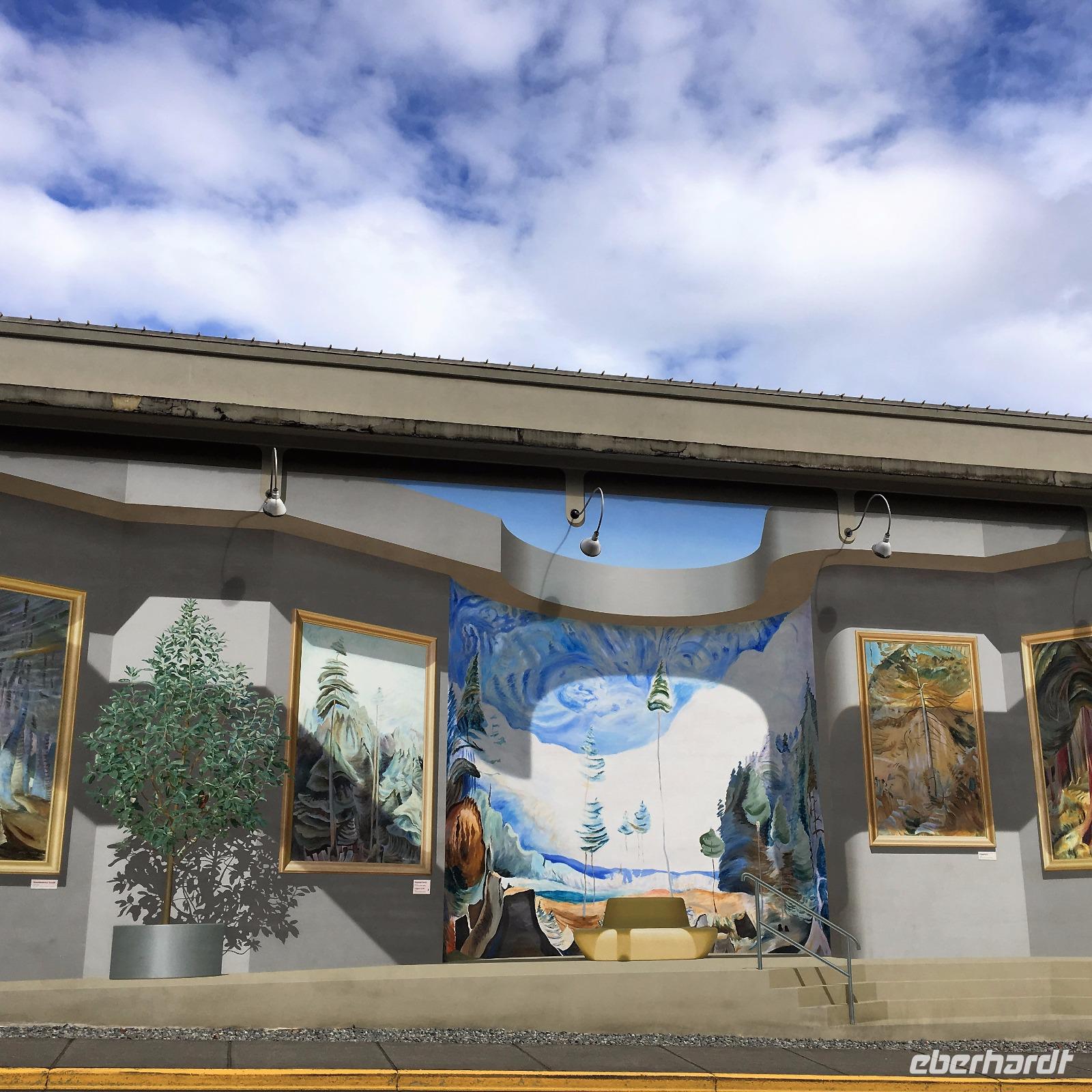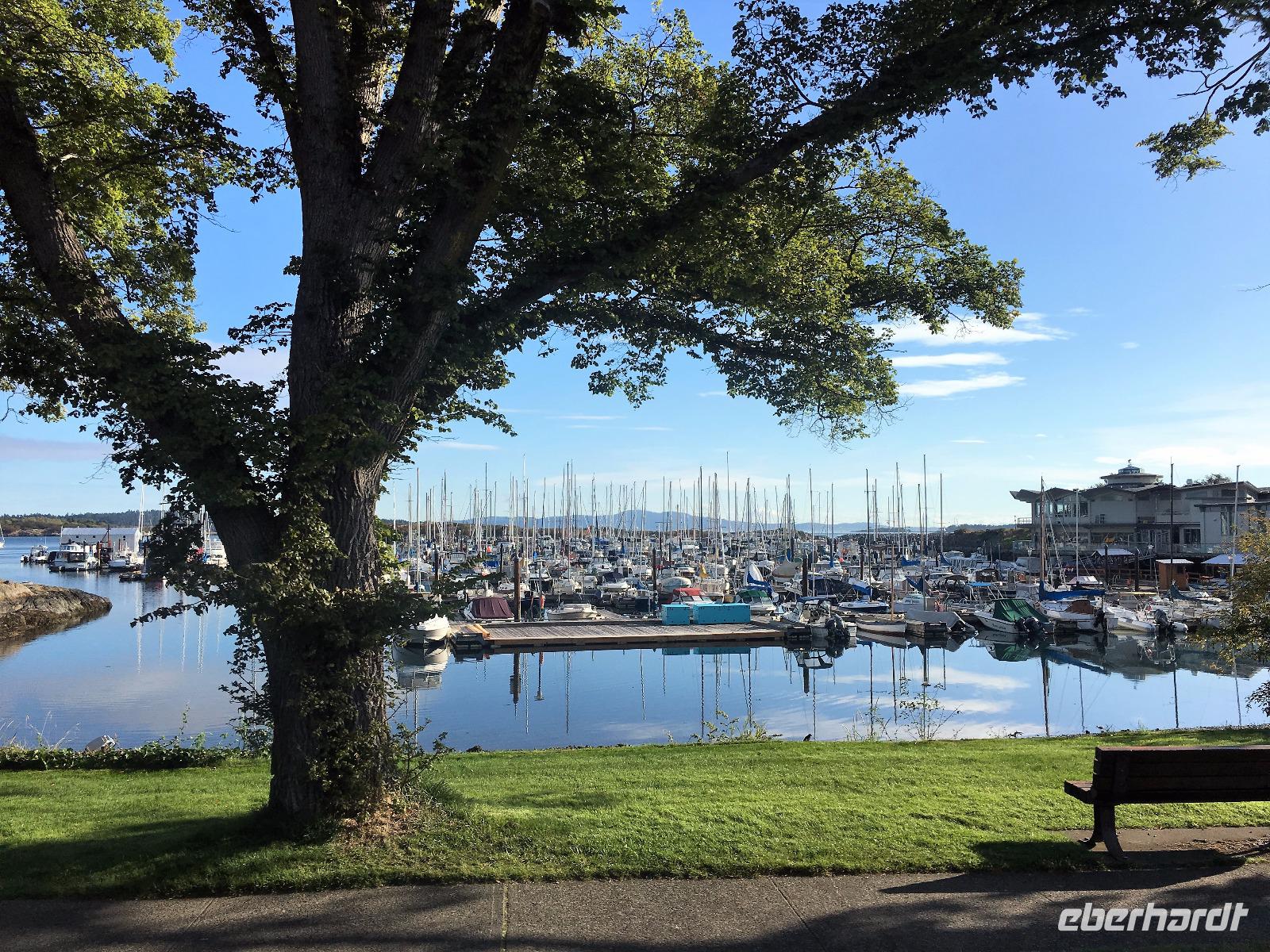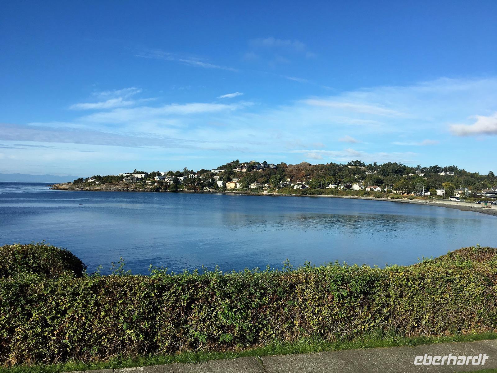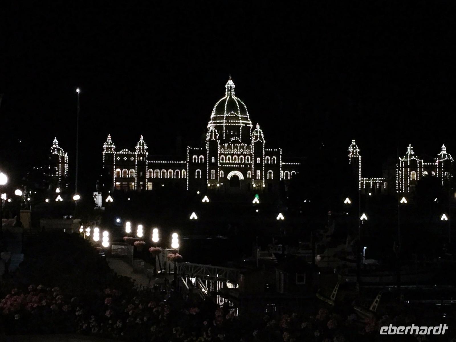 Gar nicht so schlecht, man erblickt blauen Himmel, das Zimmer ist angenehm temperiert und die Decken sind warm, wer will da schon aufstehen.....Aber eben. Das Fruehstueck ist wie gestern in dem kleinen Kaffeehaus und danach fahren wir gleich zum Strand, den wir gestern nicht besucht haben. So weit, so einladend zu einem Spaziergang, so bezaubernd und eindruecklich. Die kleinen Felsen am Strand lassen die Wellen hochsteigen, das Meer zieht sich in die Ebbe zurueck und hinterlaesst einen 100 Meter breiten hellen Sandstrand. Viele Holzstaemme liegen wie ein riesen-Mikadospiel am Ufer und die Kelp Pflanzen haben sich ineinandergewickelt, sodass sich richtige Kelp-Knoepfe vom Sand erheben. Mit einer Pflanze springen wir auch Seil, zwei halten die Enden und schwingen die Pflanze und wir springen wie die kleinen Maedchen damals auf dem Schulhof. Wir geniessen diesen Aufenthalt und bleiben auch eine ganze Weile. Die Rueckfahrt nach Nanaimo wird kurz mit einem Besuch bei einem legendaeren Tim Hortons unterbrochen, ansonsten doesen wir einfach vor uns hin. Der naechste Halt ist in einer Freilicht-Gallerie. In Chemainus sind naemlich viele Hauswaende mit historischen Gemaelden bemalt. Man kann von einem Bild zum anderen gehen und sich manchmal sogar in ein Gemaelde hineinfotografieren. Wir fahren weiter nach Victoria, unserem heutigen Ziel der Reise. Die Stadtfuehrung wird zu Fuss durchgefuehrt sodass wir auch alles richtig anschauen und knipsen koennen. Morgen haben wir am Nachmittag Freizeit, dann werden die Geschaefte durchstoebert und nochmals diese Stadtteile angeschaut, welche besonders gefallen haben. Der Hafen mit seinen vielen Atraktionen und Geschichten steht ganz oben auf der Victoria Lieblings-liste. Das Abendessen geniessen wir im einstmaligen Wachs-Museum mit herrlichem Blick ueber den Hafen und die Stadt.