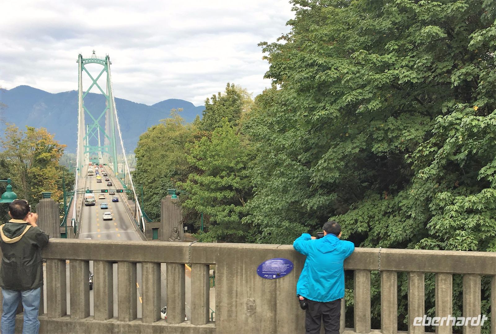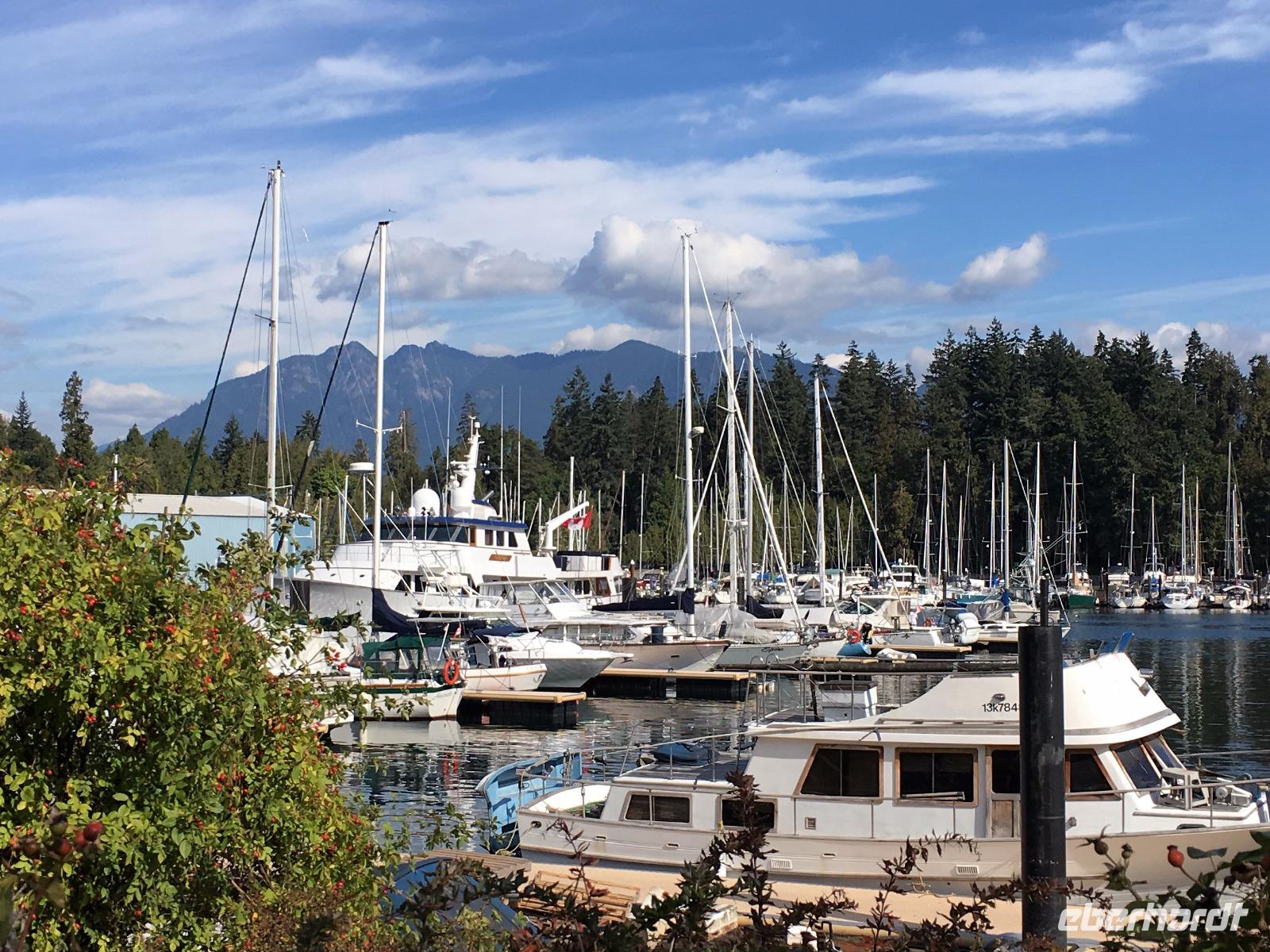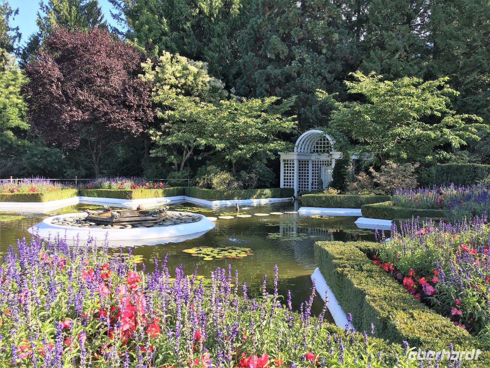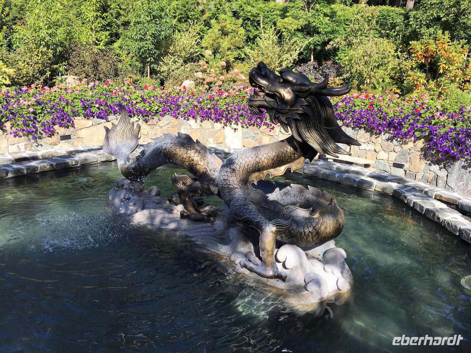 Abreise von Victoria steht heute auf dem Programm. Aber vorerst nochmals ins Bistrot zum Fruehstueck. Sobald die Koffer im Bus sind, fahren wir durch die vornehmen Wohnviertel dieser Stadt. Am Meer entlang fahrend haben wir eine herrliche Aussicht auf die Olympischen Berge von Washington State. Bald erreichen wir die Butchart Gardens. Eine riesengrosse Anlage mit verschiedenen Gaerten erwartet uns hier. Elisabeth darf uns hier leider nicht mehr begleiten, also bekommen wir die ganze Fuehrung im Bus, sodass wir uns hier nun wie in unserer Hosentasche auskennen. Vorerst der haengende Garten, dann den Wald-Garten, der versunkene Garten mit seiner Fontaene, den Rosengarten, den japanischen Garten, der franzoesische- und, zu guter Letzt, der italienische Garten. Bis wir wieder beim Kaffeehaus sind, sehen wir nur noch Blueten und Blumen vor unseren Augen. So beeindruckend sind diese Gaerten. Ueber eine Million Gaeste schauen sich jaehrlich diese Pracht an. Wir auch ! Mittags sind wir auf der Faehre und da essen wir auch in dem feinen Buffet im Restaurant. Aehnlich einem Kreuzschiff ist das Buffet sehr gediegen und besonders fein. Die 1 ½ Stunden sind sehr schnell vorbei. Bei Ankunft auf dem Festland fahren wir in Richtung Norden nach Vancouver. Wir lernen die Stadt auch gleich kennen, denn die Stadtfuehrung fuehrt uns vorerst ins Chinatown. Aber och neee, Brendan hat eine falsche Strasse genommen und wir kommen, anstelle ins Chinatown, in ein Stadtviertel wo sonst nie Touristen oder konventionel lebende Leute kommen. Fuer 200 Meter sehen wir so viele sozial Ausstenstehnde wie noch nie zuvor. Etwas benommen von den Bildern von East Hastings Street, fahren wir anschliessend doch durch Chinatown und anschliessend durch Gastown. Gastown ist der aeltesten Stadteil Vancouvers. Es ist nun genau 15:58 Uhr und wir stehen erwartungsvoll vor der Dampfuhr. Ploetzlich legt sie los, diese Dampfuhr. Die Stunde wird durch viel Dampf angezeigt und durchs Glass kann man das Getriebe anschauen. Ganz schoen einfallsreich der Lok-ingenieur ! Nun sehen wir noch viele Sehenswuerdigkeite der Perle des Pazifiks und halten wieder in Stanley Park bei den Totem Pfaehlen. Auch hier weiss Elisabeth noch Geschichten dazu. Die lustige Kinder-Trockenanlage beim Spielplatz ist sehr amuesant und die Loewenbruecke beeindruckend. Bald gelangen wir so zu unserem Hotel wo wir uns von Brendan mit einem dicken Umschlag und besten Wuenschen verabschieden. Heute Abend ist freies Abendbrot und so ziehen wir alle mit unseren Stadtkarten ausgeruestet durch die Strassen Vancouvers.