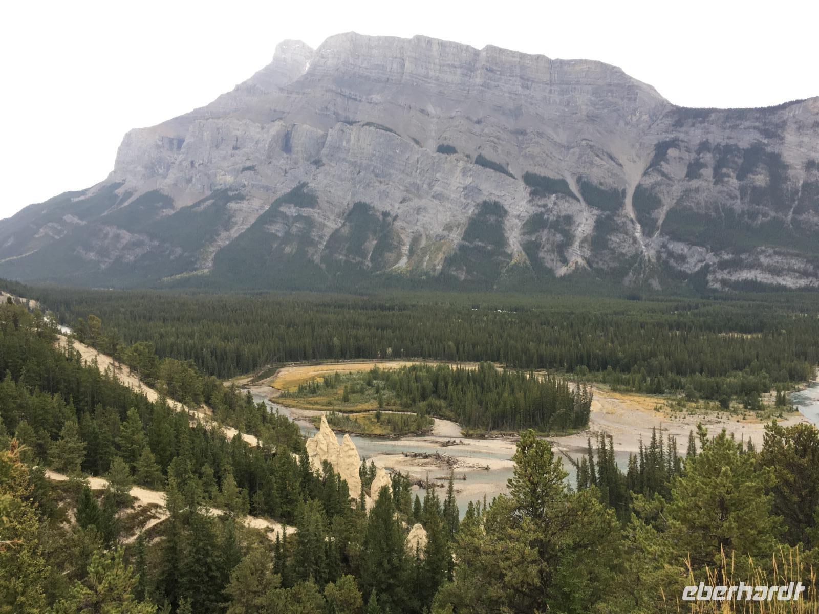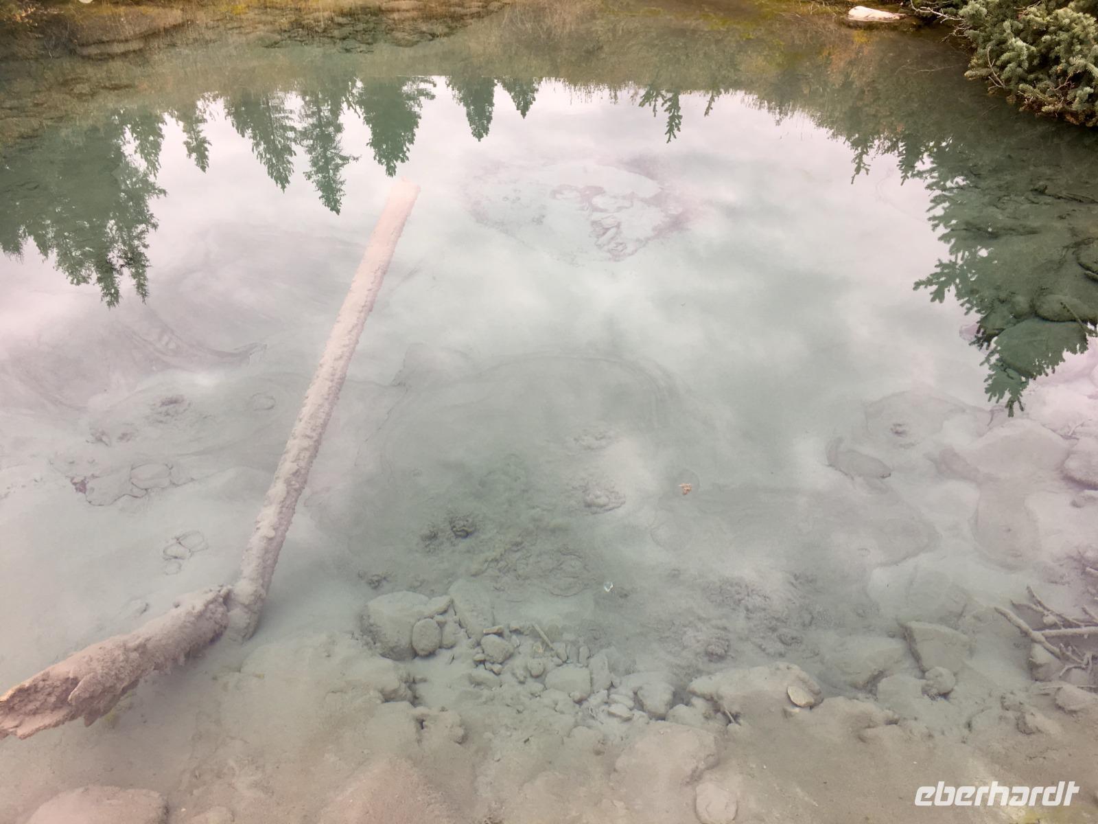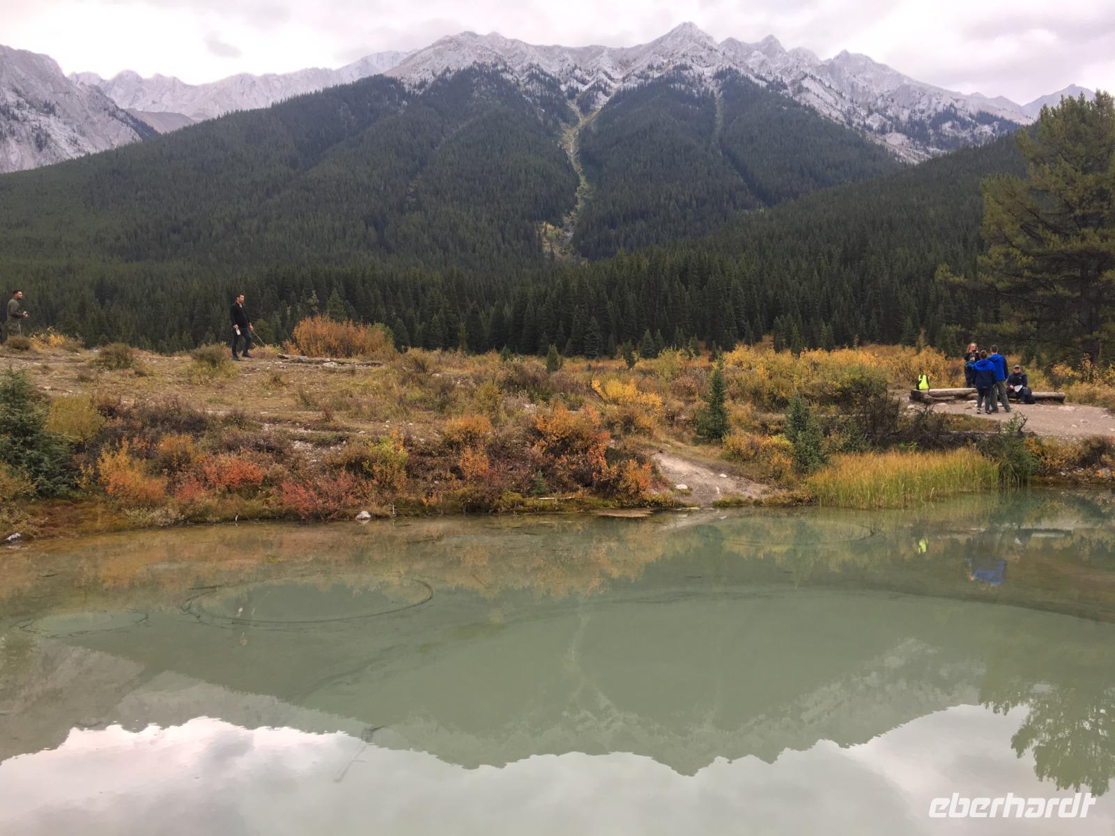 Heute in der Frueh, gehen wir vorerst auf eine Stadtrundfahrt von Banff. Wir schauen uns die Hoodoos an, das sind lustige Steinformationen von Wind und Wetter geformt. Wir horchen vielen Geschichten zu und bestaunen natuerlich das allererste Hotel in Banff, das Banff Springs Hotel. Dies bringt uns zur Gondel auf den Sulphur Mountain. 7 Minuten spaeter sind wir oben, die frische Luft und der schoene Fussweg zu Samson's Huettchen sind richtig erquickend. Die Aussicht, einfach ein Traum. Wir nehmen uns Zeit und fahren mit der Gondel wieder ins Tal. Mit Alex gehts nun weiter auf die alte Highway. In Johnston Canyon angekommen, wandern wir heute bis ganz hinauf zu den Ink Pots. Der erste Kilometer ist geteert und zieht deshalb auch viele Spaziergaenger an. Wir ueben uns im Slalomlauf und kurven geschickt um die Leute, Kinder und Hunde. Schoene Wasserfaelle begleiten diese Schlucht. Nach dem 3. Wasserfall haben wir den Weg fast ausschliesslich nur fuer uns. Der Weg fuehrt uns nun durch einen lichten Wald und steigt staendig leicht an. Auf einmal aber wissen unsere Muskeln nicht mehr was mit ihnen geschieht denn nach guten 2 Stunden hinauf gehts auf einmal bergab. Oh nein, wir verlieren an Hoehe, das muessen wir uns danach wieder hinauf bemuehen ! Aber es ist nicht mehr weit, da sind sie schon, die Tintenfaesser in diesem Hochtal. Es sind kleine Seen die unterirdisch von Gletscherwasser gespiesen werden. Da der Boden aus Sand besteht sieht man grosse und kleine Ringe in den Seen wo das Wasser hinaufgestossen wird. Bei manchen Seelein sprudelt es regelrecht. Nun ist Zeit zum Ausspannen, Fotos knipsen und picknicken. Am allerersten Tag dieser Reise hatte ein Reisefamilienmitglied Geburtstag und heute koennen wir ihn so richtig hochleben lassen. So ein Fest muss doch gefeiert werden ganz egal wann !! Ach so, es ist nicht bloss sein Geburtstag, er und seine Frau feiern auch ihren 40. Hochzeitstag. Ja, dann trinken wir gleich noch ein Glaeschen kanadischen Whisky. Daraufhin wandern wir schwatzend, kichernd und diskutierend wieder gute 1 ½ Stunden hinunter zu unserem Bus. Wir waren geschlagene 4 Stunden unterwegs. Die Busfahrt zurueck nach Banff ist sehr heiter. Einige brauchen nun ein bisschen Ruhe und Pause. Sie steigen beim Hotel aus, wir anderen fahren gleich weiter zu unserem naechsten Ausflugsziel. Die Banff Hot Springs. Sie sind gerade das Richtige fuer unsere armen und mueden Muskeln und Glieder. Nach 30 Minuten sind wir gar-gekocht in dem 39 Grad warmen Schwefelwasser. Alex faehrt uns wieder zurueck zum Hotel. Haetten wir nun Zeit, wuerden wir alle gleich einschlafen, aber nein, es geht gleich weiter zum Abendessen ! Auch das ist gelungen und die zur Auswahl gebotenen Speisen sind sehr fein. An die riesengrossen Portionen Schokoladekuchen werden wir uns noch lange erinnern. Jetzt aber nichts wie ab in die Zimmer sonst kommt der Elisabeth nochwas in den Sinn. Gute Nacht.