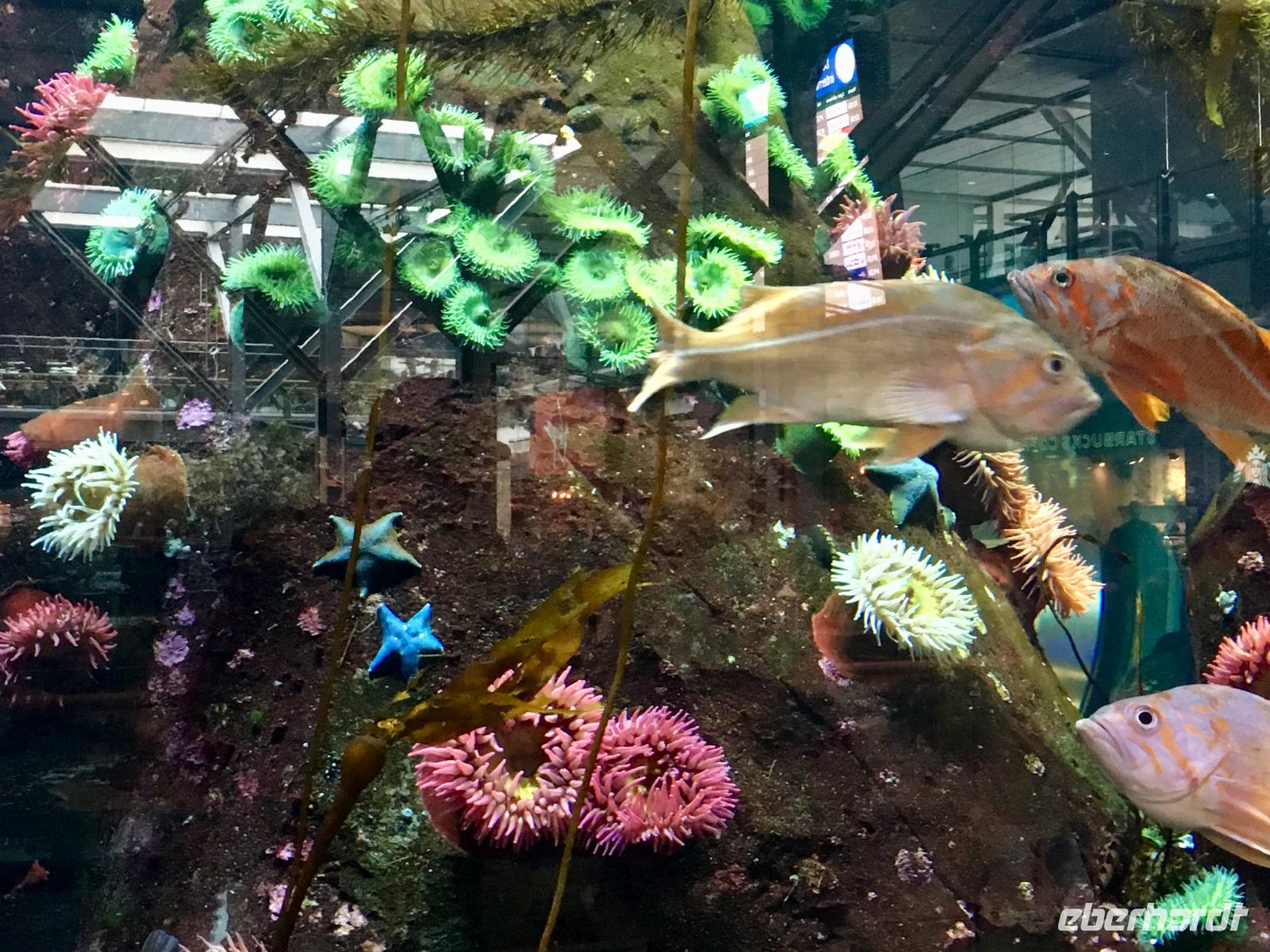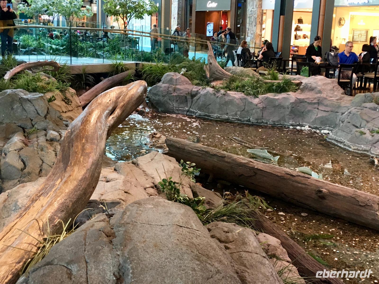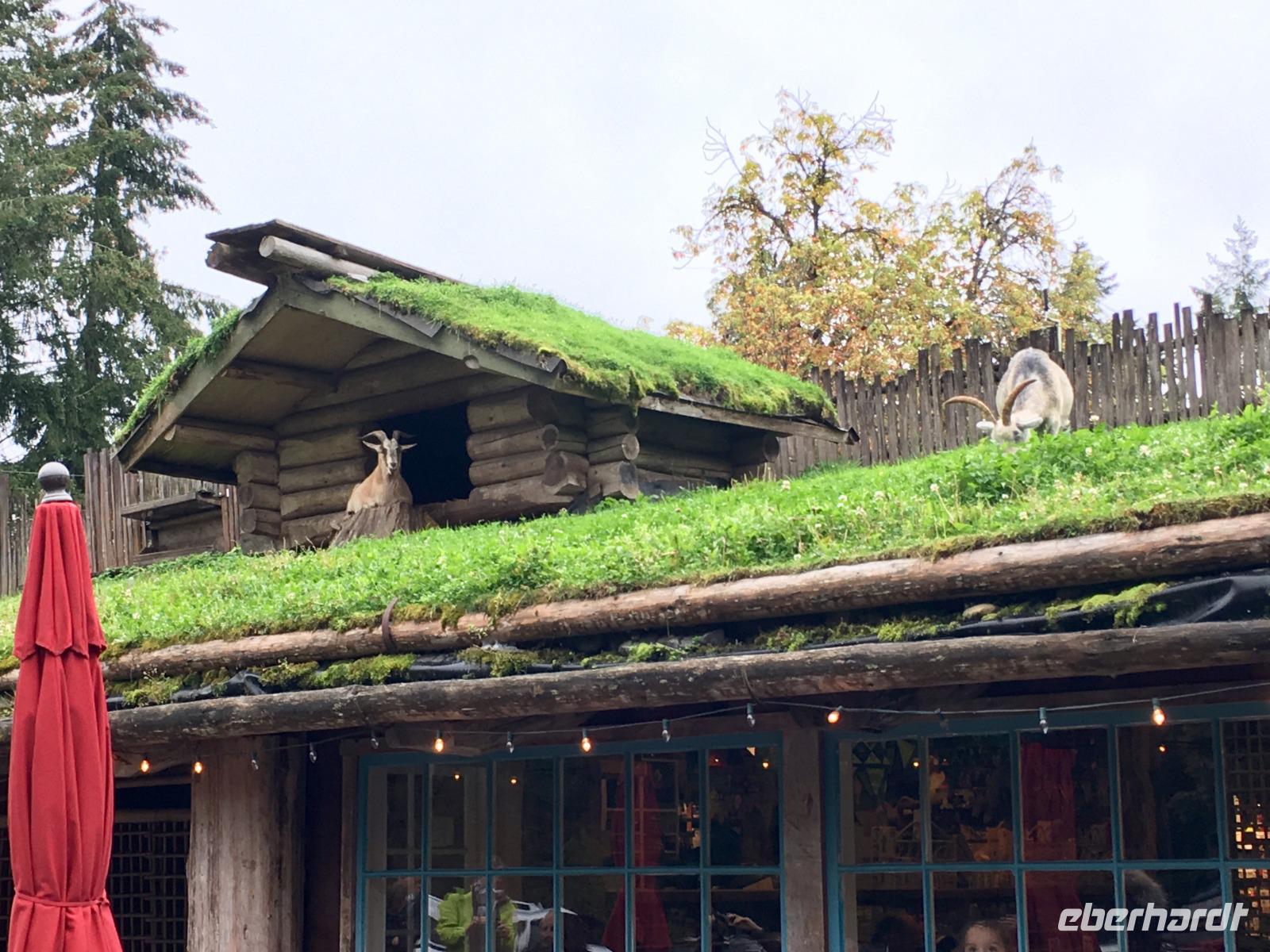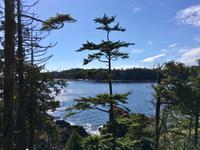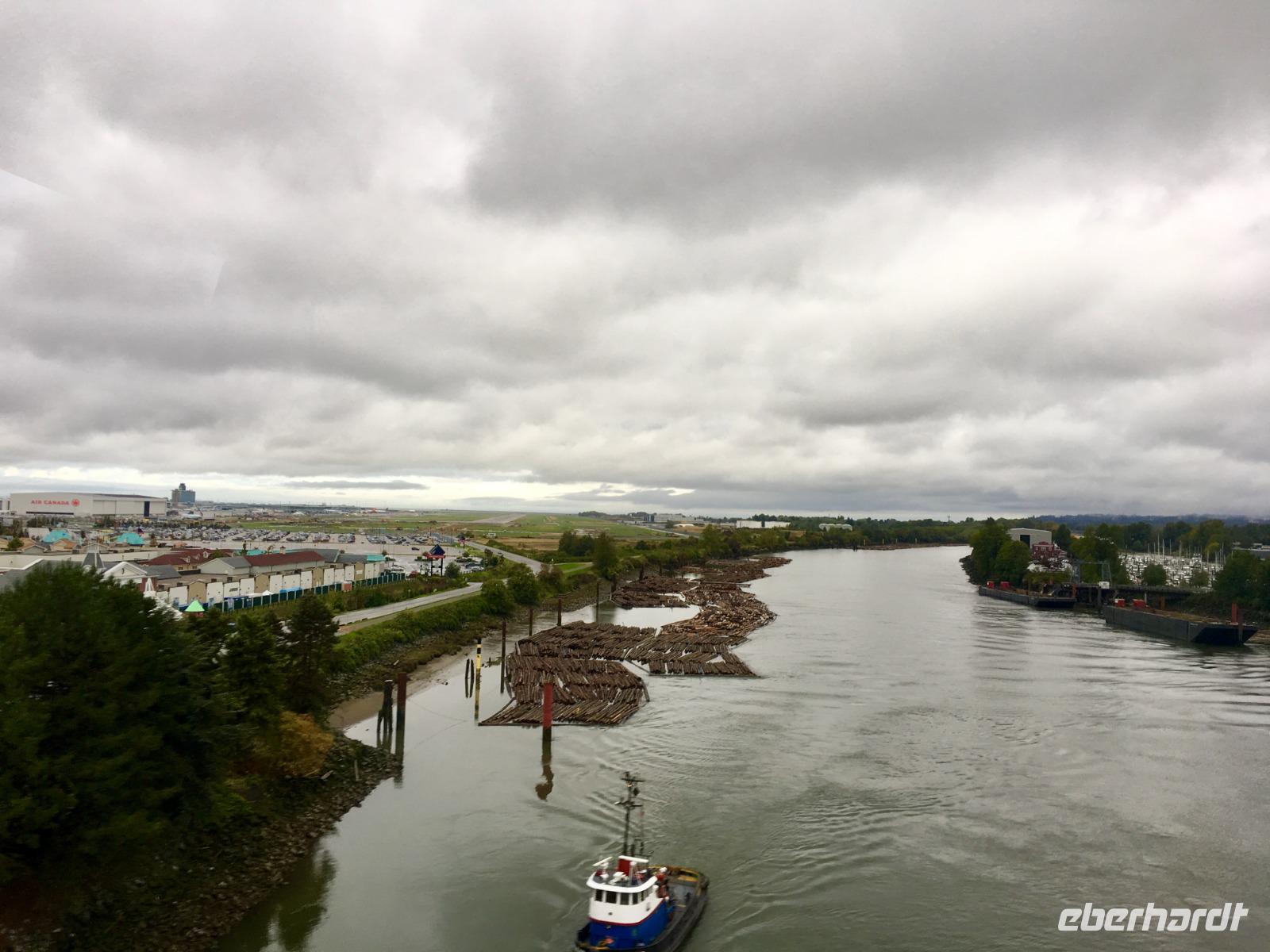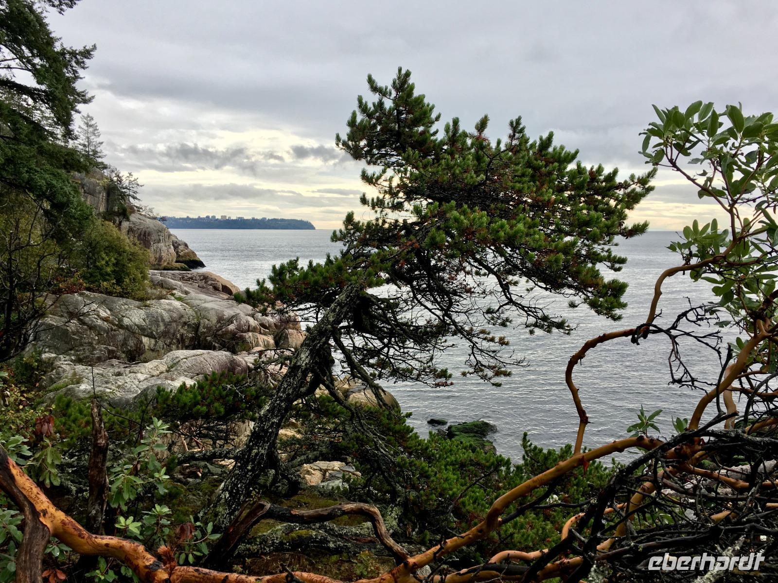 Gestern hat es genieselt, geregnet und geschneit, heute schuettet es so richtig und so sind wir gar nicht so traurig dies lustige Whistler zu verlassen. Auf der Sea to Sky Highway fahren wir zuegig in Richtung Vancouver. In Horseshoe Bay machen wir Halt, schauen uns das Dorf an ehe uns die Faehre in 1 Stunde 35 Minuten auf die Insel von Vancouver bringt. Wir fahren gleich mit dem Bus auf die Faehre und steigen aus um dem Auslaufen beizuwohnen. In der Ferne sieht man die Hochhaeuser von Vancouver. Die Perle des Pazifiks werden wir jedoch erst in 4 Tagen besuchen ! Wir wollen heute nach Tofino es liegt an der Westkueste der Insel. Der Mittagsstopp beim Markt in Coombs ist unterhaltsam und die Ziegen stehen wohl auf dem Markthallendach, jedoch unter einem Daechlein da auch sie nicht nass werden wollen. Die Stunde vergeht sehr schnell, da es hier so viel anzuschauen gibt. Waeren die Koffer nicht schon so voll, haetten wir gerne so einen Riesenbudda fuer den lieben Nachbarn, ein Holzspielzeug fuer die Enkelchen oder einen handgefertigten Tontopf fuer den eigenen Garten mitgebracht. Leider, leider. Fuers T-shirt hats gerade noch gereicht. Bis wir wieder im Buss sind, scheint schon fast die Sonne. Ganz vertraeumt gehen wir kurz darauf in einem Urwald spazieren. Die Riesen schauen auf uns Zwerge hinunter und viele Baeume sind von Moos so umgeben, es scheint sie haetten Pelzmaentel an. Jetzt fahren wir aber weiter, denn die Strecke nach Tofino zieht sich immer in die Laenge. Wir durchqueren die ganze Insel von Vancouver um andie Westkueste zu gelangen. Dort angekommen, gehen wir gleich mal an einen wilden Strand. Ahh die Luft, das Meer, die Muscheln, Kelp und Krebshuelsen, alles passt in dieses Bild. Die Sonne lacht, die Luft ist lau, es ist perfekt. . Die kleinen Felsen am Strand lassen die Wellen hochsteigen, das Meer zieht sich in die Ebbe zurueck und hinterlaesst einen 100 Meter breiten hellen Sandstrand. Viele Holzstaemme liegen wie ein riesen-Mikadospiel am Ufer und die Kelp Pflanzen haben sich ineinandergewickelt, sodass sich richtige Kelp-Knoepfe vom Sand erheben. Mit einer Pflanze springen wir auch Seil, zwei halten die Enden und schwingen die Pflanze und wir springen wie die kleinen Maedchen damals auf dem Schulhof. Wir geniessen diesen Aufenthalt und bleiben auch eine Weile. Nach diesem schoenen ersten Eindruck an der Westkueste fahren wir noch einige Kilometer und checken alsobald in unsere Regenwald Lodge ein. Ein leckeres Abendessen spaeter fallen wir muede ins Bett. Den morgigen Tag koennen wir kaum erwarten.