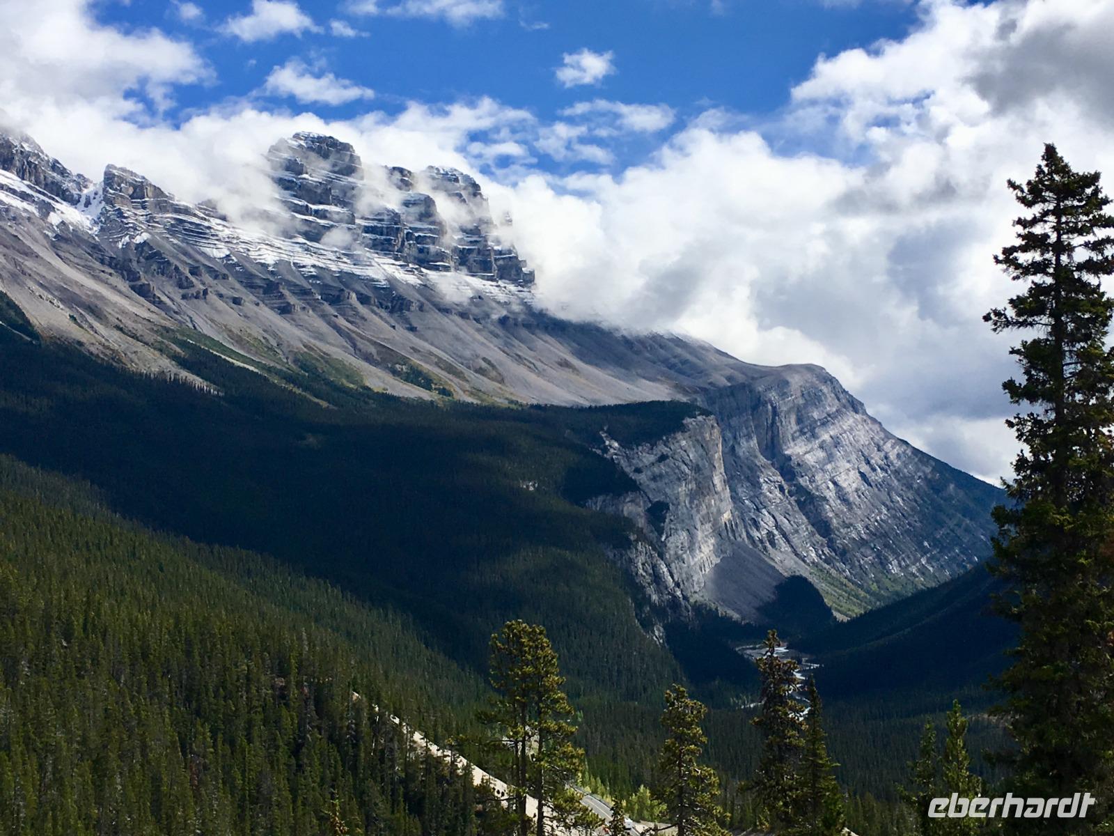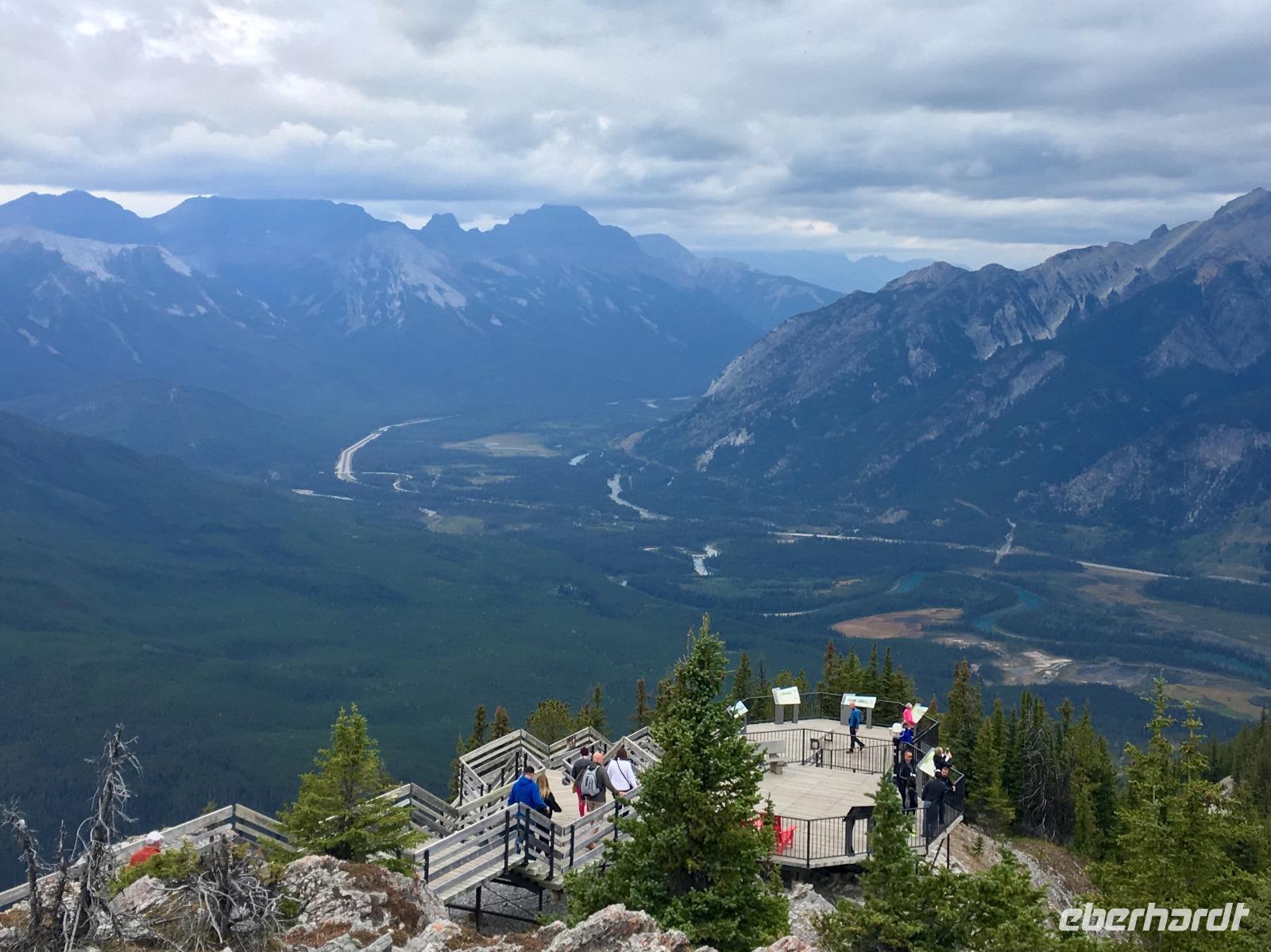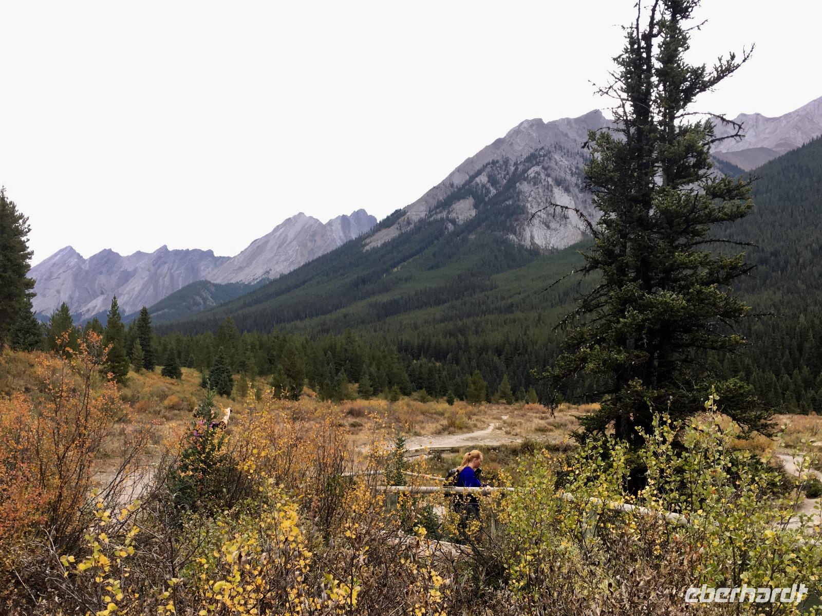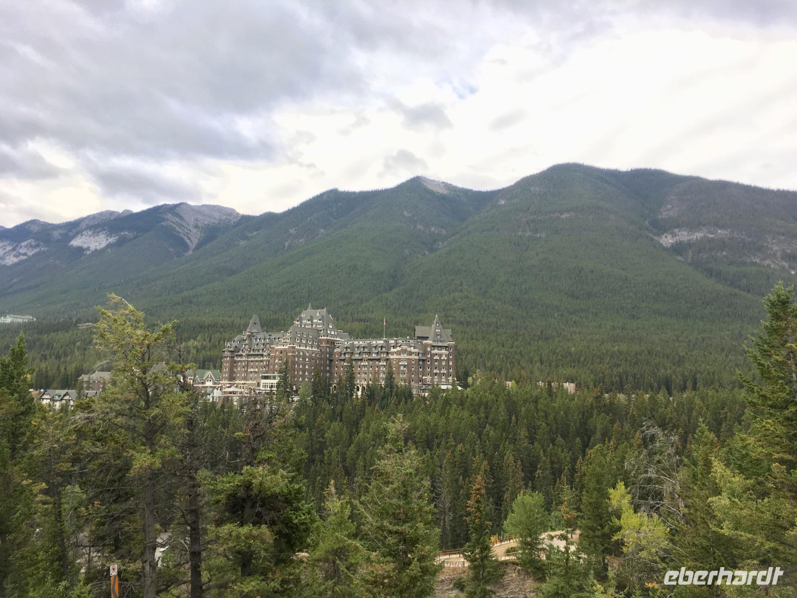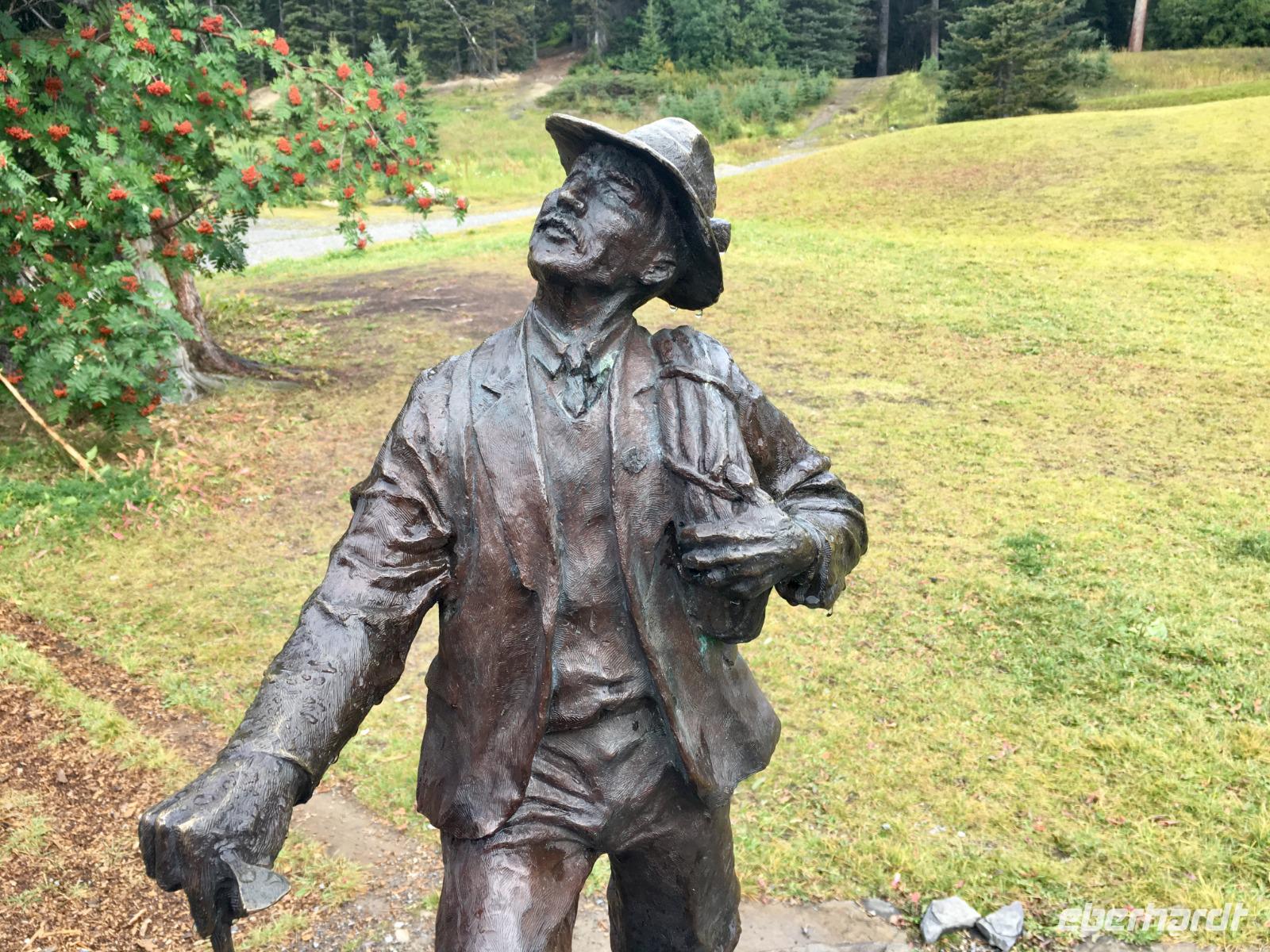 Unsere Wanderschuhe steht schon bereit um auf eine unvergessliche Reise zu gehen. Der stolze Schuhbesitzer ist bereit seinen/ihren Traum zu verwirklichen. Auf gehts in den Westen Kanadas. Die Wanderschuhe passen gerade noch in den Koffer und der Rucksack wird zum Handgepaeck. In Frankfurt treffen wir uns beim Gate nach Calgary. Das Abenteuer kann beginnen. Erst mal die Einreiseformulare ausfuellen, dann den Pass abstempeln lassen und ploetzlich kommt der Aufruf zum Einstieg in den Flieger. An die 60 quadrat Centimeter Spielwiese die jedem angeboten werden, koennen wir uns nicht gewoehnen aber wir haben ja 9 Stunden Zeit um uns damit anzufreunden. Alles laeuft wie am Schnuerchen, puenktlich kommen wir am Nachmittag desselben Tages in Calgary an. Unser Bus kommt nach einigen Telefonaten und bald sind wir unterwegs ins Zentrum da wir dort noch 2 Mitreisende abholen wollen, die gestern schon geflogen sind. Diese Stadt mit ihren glaesernen Hochhausern den schnurgeraden breiten Strassen, den Einkaufsstrassen im 2. Stockwerk der Haueser und der jungen Bevoelkerung ist faszinierend aber nichts kann uns von der Weiterreise abhalten, denn wir wollen heute noch in die beruehmten Rocky Mountains fahren. Nach einem kurzen Stop an dem Austragungsort der olympischen Spiele 1988 fuehrt uns Alex direkt in den Banff National Park. Oh wie majestaetitsch sie doch in den Himmel ragen, wie eindrucksvoll sie doch gezeichnet sind und wie imposant sie doch wirken, diese herrlichen Rocky Mountains. Bald fahren wir schon nach Banff hinein. Unser Hotel ist im Zentrum, auf der Banff Avenue, gelegen und wir bleiben 3 Naechte hier. Das Abendessen ist gleich nebenan und die Kost schmeckt wunderbar. Die Augenlider wollen jedoch nicht mehr mitmachen und bald verschwinden wir in unsere Zimmer und fallen in die Traumwelt. Ja, unser Geburtstagskind hatte heute einen besonders langen Geburtstag.