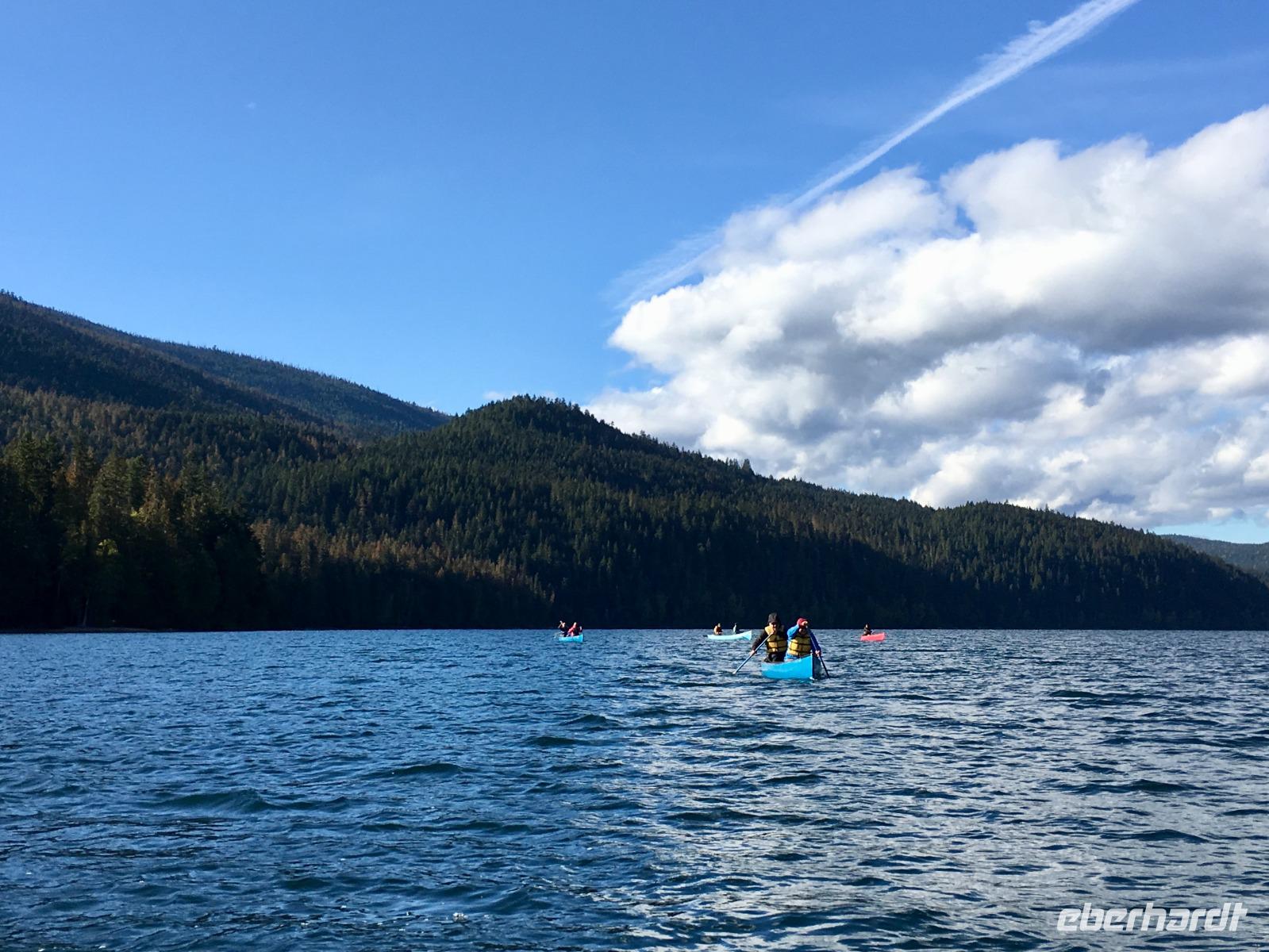 Den Westen Kanadas erleben wir hautnah. Wir wandern in den Bergen und im Regenwald, fahren Kanu auf einem abgelegenen See, gehen ueber Haengebruecken, beobachten Orcas und Baeren und erkunden Sehensw