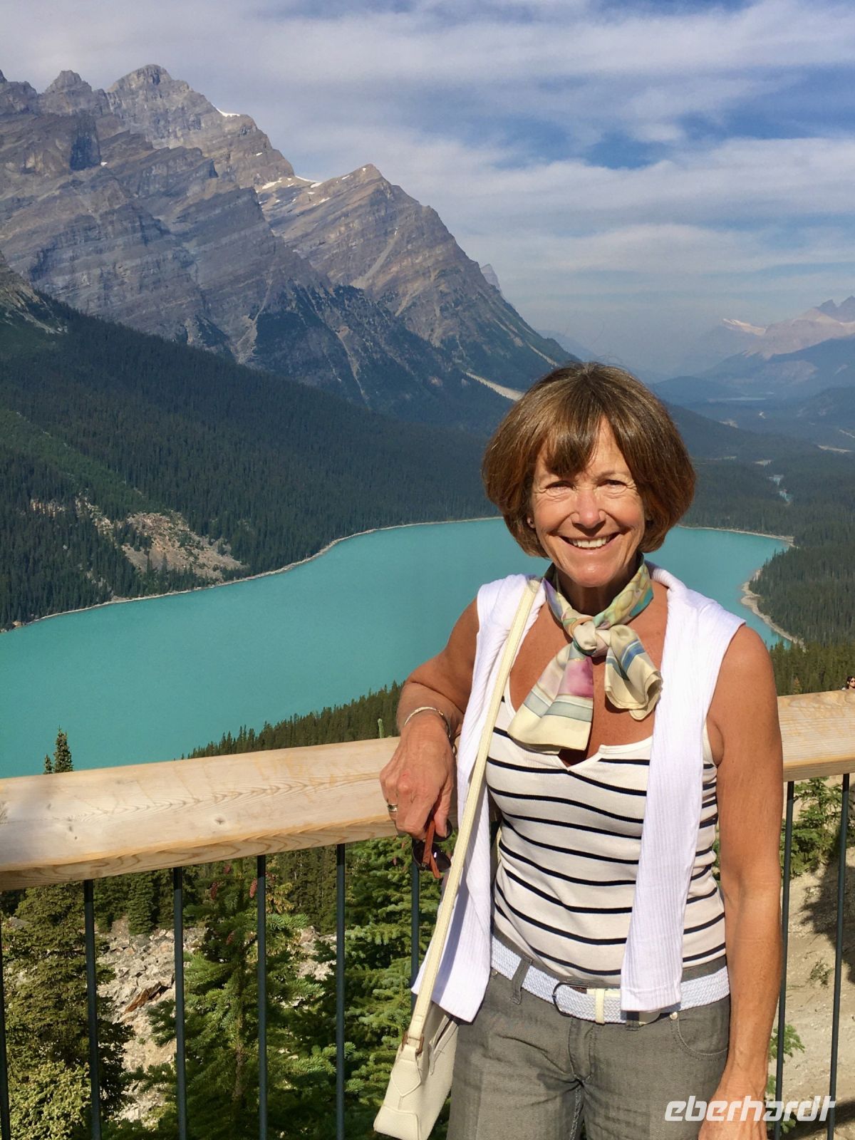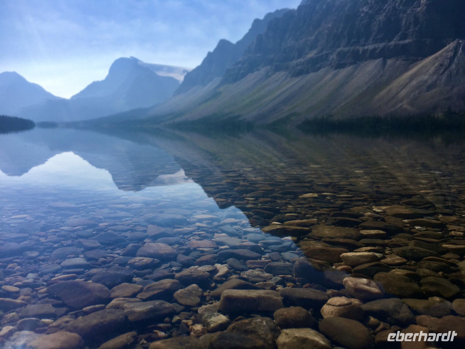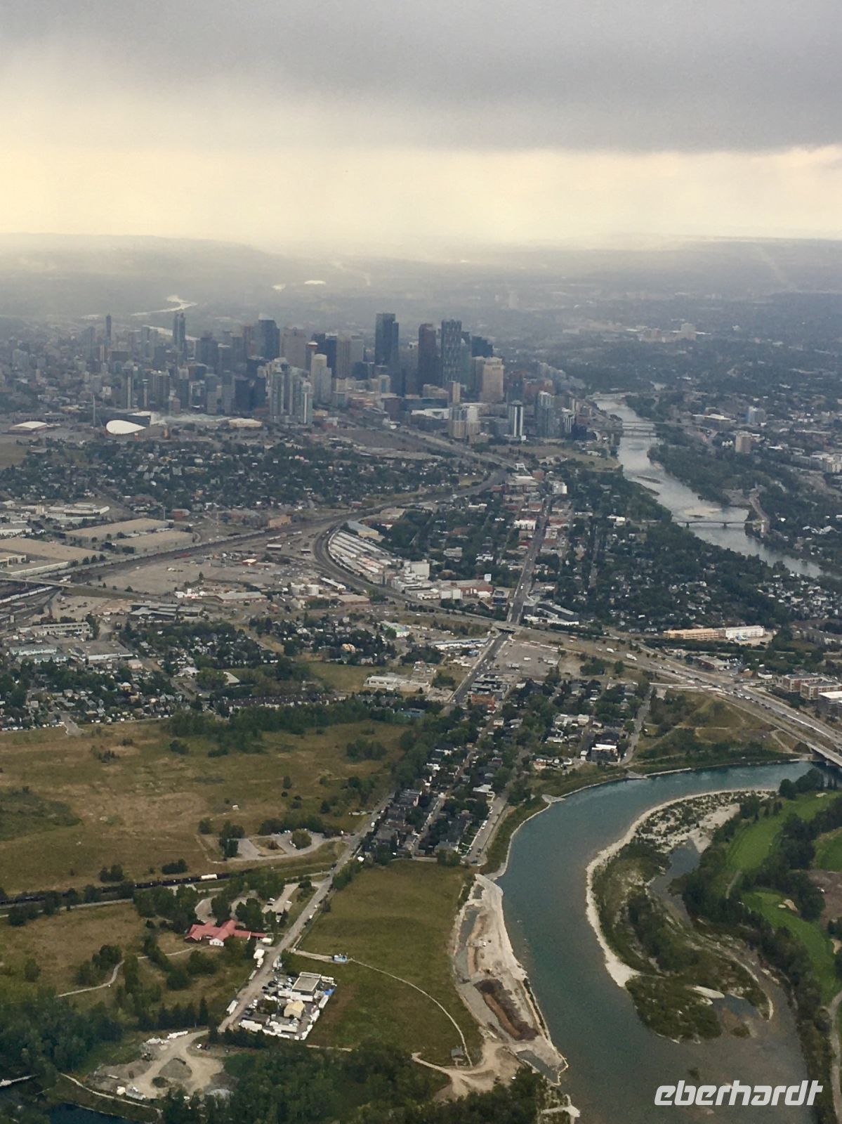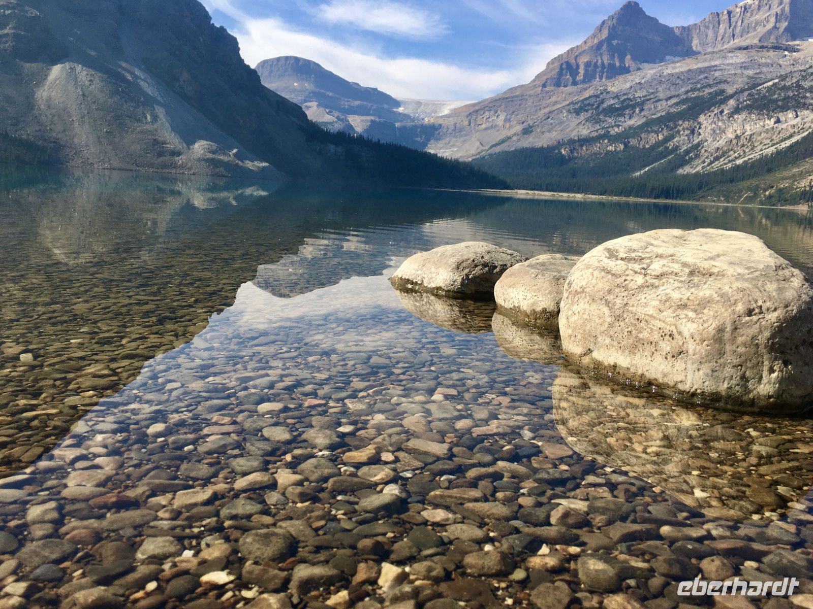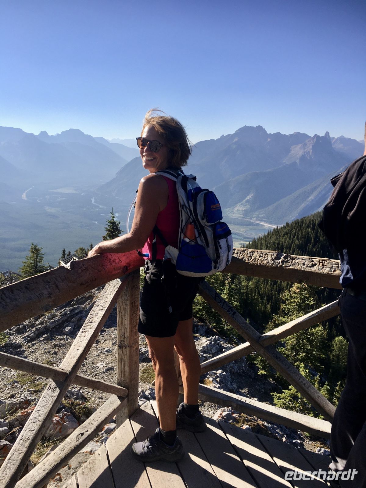 Die Wanderschuhe stehen bereit um auf eine unvergessliche Reise mitgehen zu duerfen. Der stolze Schuhbesitzer ist seit Jahren schon bereit die langersehnte Reise endlich zu verwirklichen. Covid19 hat alles verschoben aber nun gehts auf, in den Westen Kanadas. Passen die Wanderschuhe noch in den Koffer ? Notfalls koennen sie ja auch jetzt schon die Fuesse zieren. Der Rucksack wird ja auch zum Handgepaeck. In Frankfurt treffen wir uns alle beim Gate nach Calgary. Das Abenteuer kann beginnen. Erst mal den Pass abstempeln lassen und ploetzlich kommt der Aufruf zum Einstieg in den Flieger. Oh, ein Gast ist nicht da, meldet sich auch nicht am Schalter, trotz aufrufen. Ploetzlich kommt die Nachricht, er sitzt bereits in einem Flieger der Air Canada und wird in Calgary auf uns warten. 2 weitere Gaeste sind bereits 2 Tage eher abgereist und wir holen sie in Calgary in der Stadt ab, ehe wir nach Banff weiterreisen werden. Also alles gut, es kann nun los gehen. An die 60 quadrat Centimeter Spielwiese die jedem angeboten werden, koennen wir uns schlecht gewoehnen aber wir haben ja 8 Stunden Zeit um uns damit anzufreunden. Alles laeuft wie am Schnuerchen, unser Airbus 350 von Finnair ist nigel-nagel-neu, wie auch das post-Covid Flugpersonal. Wir kommen mit 10 Minuten Zeitgewinn am Nachmittag desselben Tages in Calgary an. Alle Koffer sind auch angekommen und der Mitreisende sehen wir auch gleich bei Ankunft. Unser Bussfahrer, Eugene faehrt auch bald vor mit seinem Minibus und wir staunen anfangs ueber den Geraeuschpegel dieses Busses. Bald sind alle Koffer geladen und wir sind unterwegs um das Zentrum dieser neuen Glaeserpalast-Stadt zu sehen. Au wei, au wei, der Geraeuschpegel war hoch wenn man draussen stand, aber im Bus drinnen ist er noch viel hoeher. Eugene ist auch ganz verzweifelt und unsere Reiseleiterin ist bloss noch am Telefon. Es toent nicht besonders nett, was sie da zu sagen hat. In der Stadt, werden nun die zwei Gaeste abgeholt ehe wir mit diesem Donner und Blitz-Gefaehrt nach Banff fahren. Ein grosses Glueck ist uns beschieden, wir sind eine toll aufgestellte Truppe. Das Wetter ist leicht bewoelkt, der Bow River glitzert in der Sonne und die Hochhaeuser kaempfen um die beste Spiegelung. Ein paar Fotos spaeter fahren wir nun Richtung Berge, d.h. in den Westen. Vorbei dem Olympia Zentrum der Winterspiele von 1988. Hier glaenzte unsere Katarina Witt als Goldmedalien Siegerin, Eddy the Eagle war das Kukuksei, die jamaikanische Bobmanschaft war der Liebling dieser aussergewoehnlichen Winterolympiade. Wir sind alle ganz schoen geschaffen von dem langen Flug und nun auch etwas deprimiert ueber diesen furchtbar lauten Bus. Es bleibt uns nur eins. Ohren mit Oropax zu bestuecken und doesen. Die Reise nach Banff dauert mit dem kaputen Bus auch doppelt so lange, so erreichen wir Banff erst abends, checken ein und fallen auch wie ohnmaechtig in die schoenen, stramm eingebundenen Betten.