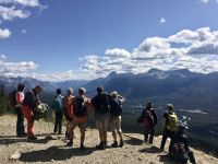 Ein herrlicher Tag bricht an. Wir erwachen im Banff National Park. Oh wie majestaetisch sie doch in den Himmel ragen, wie eindrucksvoll sie doch gezeichnet sind und wie imposant sie doch wirken, diese herrlichen Rocky Mountains. Heute sind sie sogar oben leicht angezuckert und der Herbstnebel romantisiert die Kulisse. Gleich nach dem Fruehstueck kaufen wir gemeinsam unser Picknick im Supermarkt ein denn wir wollen heute schoen wandern gehen. Heute ist die Wanderung in einer Schlucht angesagt. Also begeben wir uns vorerst auf die alte Highway. UUUps, sie ist gesperrt wegen Arbeiten. Also nehmen wir eine andere Strasse um an unser Wanderausgangspunkt zu gelangen. Nach ein paar Umwegen in dem super lauten Bus landen wir bei Johnston Canyon. Nun verlaesst uns Eugene und faehrt zurueck nach Calgary, um den Bus auszutauschen. Gut ausgeruestet, kann nun unsere erste Wanderung bis ganz hinauf zu den Ink Pots beginnen. Der erste (der rund 13) Kilometer ist geteert und zieht deshalb auch viele Spaziergaenger an. Wir ueben uns im Slalomlauf und kurven geschickt um die Leute, Kinder und Hunde. Schoene Wasserfaelle begleiten diese Schlucht. Und ploetzlich stehen wir vor einem Wander-Verbotsschild. Der Wanderweg ist ohne Vorwarnung ploetzlich gesperrt wegen Arbeiten. Uns bleibt nicht anderes uebrig als wieder hinunter zu gehen. Gott Sei Dank, kennt unsere Reiseleitung so viele Buschauffeure und Kollegen, so koennen wir mit einem anderen Bus zu einem anderen Wanderweg gebracht werden. Dieser Weg ist etwas kuerzer aber auch steiler, er fuehrt vom Bowtal ueber einen gut gesicherten Waldweg ziemlich steil hinan auf den Castle Mountain. Herrlich schaut dieser Schlossberg aus. Er ist maechtig, imposant und alleinestehend wie ein englisches Schloss. A propos englisches Schloss, gestern haben wir die traurige Nachricht vernommen, dass Queen Elizabeth II verstorben ist. Gluecklich fuehlen wir uns, die wir sie erleben durften. Wir gehen gute 2 Stunden stetig hinauf, haben wunderbare Aussichten auf das ganze Bowtal und Picknicken unterwegs. Endlich sind wir da, eine kleine Terrasse. Ohne Baeume. Eine atemberaubende Aussicht von Banff bis nach Lake Louise. Nun laufen die Kameras und Handy’s wieder heiss. Eigentlich kann man hier bloss Panoramabilder schiessen, der Blick ist so grandios. Genau wie im Prospekt sehen wir “endlose Waelder” und “leicht angezuckerte Berge”. Spaeter wandern wir schwatzend, kichernd und diskutierend wieder gute 1 1/2 Stunden hinunter zu unserem Bus. Ja, richtig, Eugene hat uns gefunden. Geduldig wartet er mit einem neuen Minibus auf dem Parkplatz. Wir waren gute 3 1/2 Stunden unterwegs. Die Busfahrt zurueck nach Banff ist in dem neuen Bus sehr angenehm, sie beinhaltet daher auch eine kleine Siesta. In Banff halten wir vorerst in unser Hotel um die Badesachen zu holen ehe es weitergeht zu den Banff Hot Springs. Das ist genau das Richtige fuer unsere armen und mueden Muskeln und Glieder. Nach 30 Minuten sind wir gar-gekocht in dem 38 Grad warmen Schwefelwasser. Eugene steht auch wieder bereit und faehrt uns nun ins Dorf Zentrum, fuer jene die noch shoppen moechten, und danach gleich weiter ins Hotel fuer die anderen. Wir gehoeren alle den “Anderen” an. Unser Abendessen ist heute in einem nahegelegenen Restaurant. Auch das ist gelungen und der Lachs sehr lecker, wie das offerierte Bierchen dazu auch. Jetzt aber nichts wie ab in unsere Zimmer, sonst kommt der Elisabeth nochwas in den Sinn. Wir schlafen wie die Herrgoettchen in den grossen Zimmer.