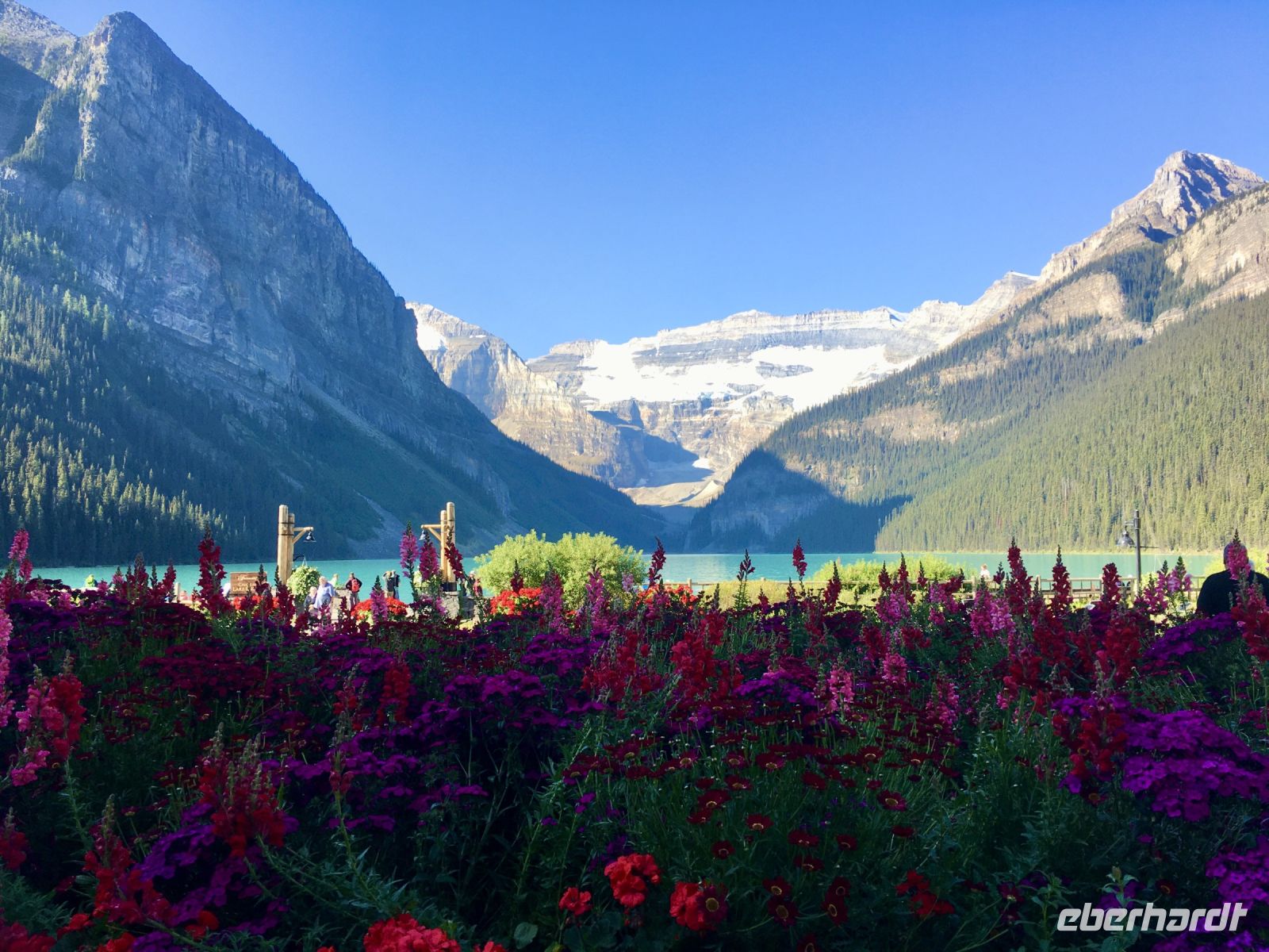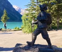 Im strahlenden Sonnenschein fahren wir heute gleich los nach Lake Louise. Denn auch heute haben wir ein tolles Programm. Vorerst noch ein schoenes Picknick einkaufen und los gehts. Eugene faehrt uns nun auf der Hwy no 1 nach Lake Louise. Dort angekommen sind wir nicht die einzigen die diesen praechtigen Samstag in Lake Louise verbringen wollen. So besichtigen wir schon einmal das maechtigen Luxushotel Chateau Lake Louise. Viele Fotos und Eindruecke spaeter, gehts nun auf die Wanderung zum Teehaus bei Agnes Lake. Die Hearte dieser Wanderung erkennt man an den verschwitzten T-Shirts der Zurueckkehrenden. Die Sonne lacht, kein Woelkchen ist am Himmel zu sehen und der schattige Waldweg ist angenehm frisch. Es geht nun ganz schoen steil hinauf bis zu Mirror Lake, da machen wir auch Verschnauf-Pause. Nun ist es nicht mehr weit zu Agnes Lake bloss noch 20 Minuten, Treppen inklusive ! Es ist wahrlich eine wunderbare Wanderung mit einer gebuehrenden Belohnung fuer die Strapazen. Die Sicht auf den schimmernde See inmitten hochragender Berge ist fantastisch. Hier am Seeufer wollen wir uns auch setzen und das Mitgebrachte essen. Die Zehen freuen sich ueber das kuehle Fussbad. Ein paar Streifenhoernchen beobachten uns staendig und sehen nicht ein, weshalb da nicht endlich etwas von dem Pausenbrot runterfaellt und die kleinen Weissfische schwimmen dem Ufer entlang wohl auch in derselben Streifenhoernchen- Hoffnung. Bald wandern wir munter wieder runter zu unserem Bus. Nun gehts weiter nach Lake Moraine. Dieser See ist so beruehmt und atemberaubend, dass die alte 20 Dollar Note dieses Motiv aufgedruckt hatte. Bei so einem tollen Wetter sind wir auch hier nicht die einzigen Gaeste am See. Einfach herrlich dieses tuerkisblau des Sees. Solche praechtigen Farben kann man kaum beschreiben. Bitte schauts in die Bildergalerie. Nun wollen wir aber nach Banff zurueck, denn unser Tag ist noch lange nicht zu Ende. Ehe wir mit der Gondel auf Sulphur Mountain fahren, gibts noch einen kurzen Umweg zum beruehmten Banff Springs Hotel. Das schlossartige Gebaeude aus Stein inmitten des tiefgruenen Waldes wird von Prominenz sowie asiatischen Besuchern gern besucht. Die Skulptur von Cornelius Van Horn bewacht das ganze. Die Bow-Wasserfaelle sind gleich ums Eck, so wollen wir doch auch schauen wo dieser Film, „Fluss ohne Wiederkehr“ mit der schoenen Marilyn Monroe gedreht wurde. Nun aber sitzen wir in den Gondeln auf den Sulphur Mountain. Uii hier oben ist es genauso warm wie unten im Tal, wir befinden uns hier auf ueber 2200 MueM. Da laesst es sich gemuetlich auf einem schoenen Fussweg zu Samson’s Huettchen spazieren. Die Aussicht ist wieder ein Traum und die Geschichte von Mr. Samson inspirierend. So spazieren wir wieder zurueck zur Gondel und viele Fotos spaeter schweben wir wieder ins Tal wo Eugene uns schon abholen kommt. Nun gehts zurueck nach Banff Zentrum, wo einige zum shoppen aussteigen und danach gleich zum Hotel fuer die anderen. Was fuer ein wunderbaren Urlaub. Am Abend gibts ein leckerer Steak als Hauptspeise in dem lokalen Restaurant gleich neben unserem Hotel. Wir haben einen vollen, tollen Tag erlebt und fallen todmuede in die Betten.