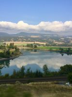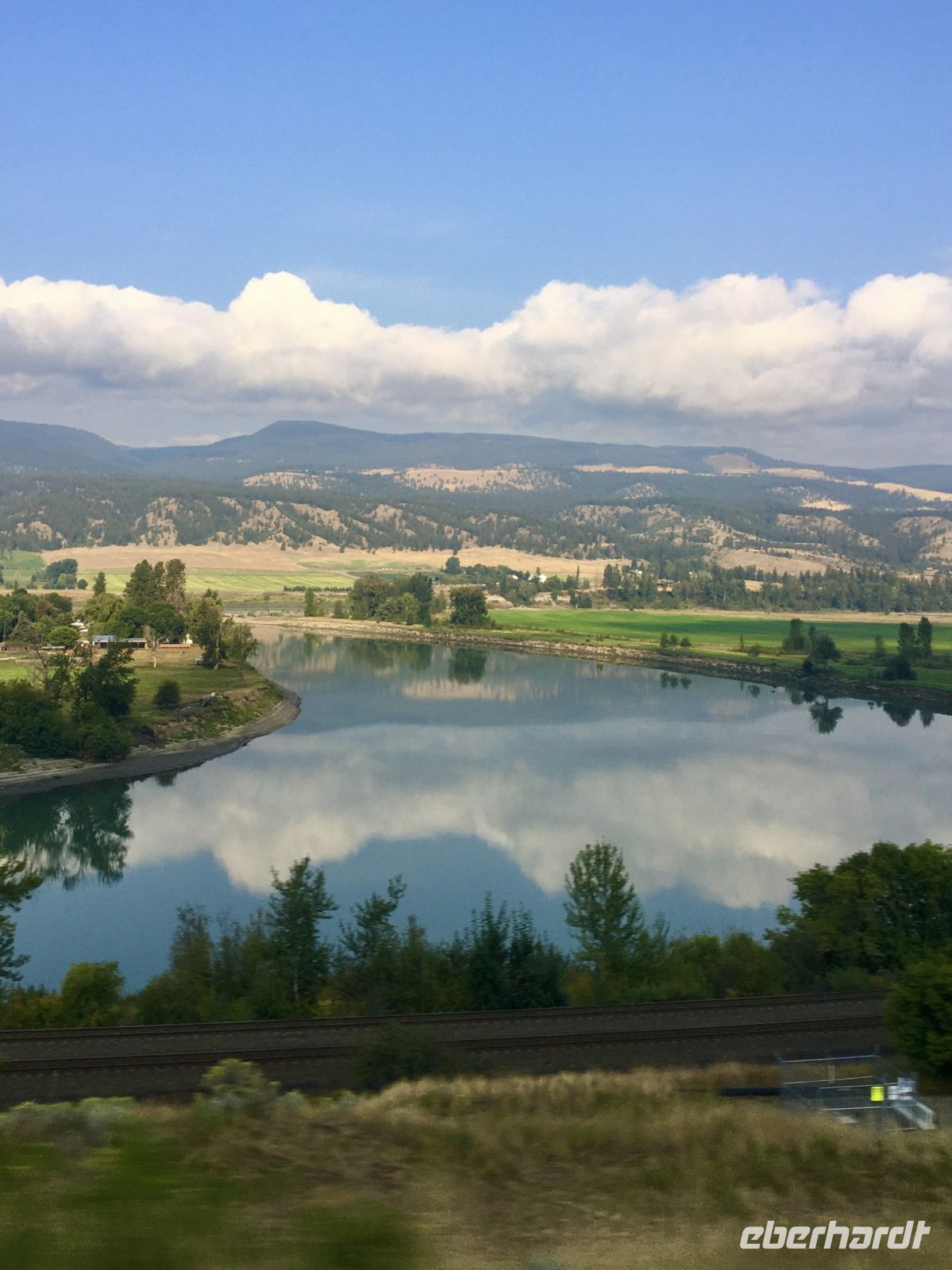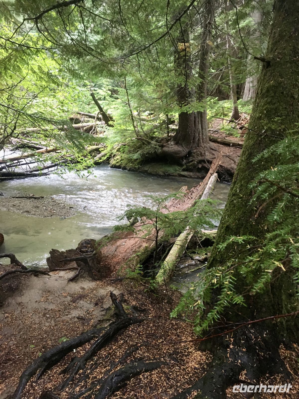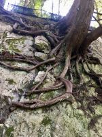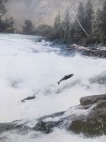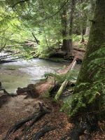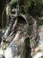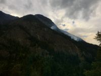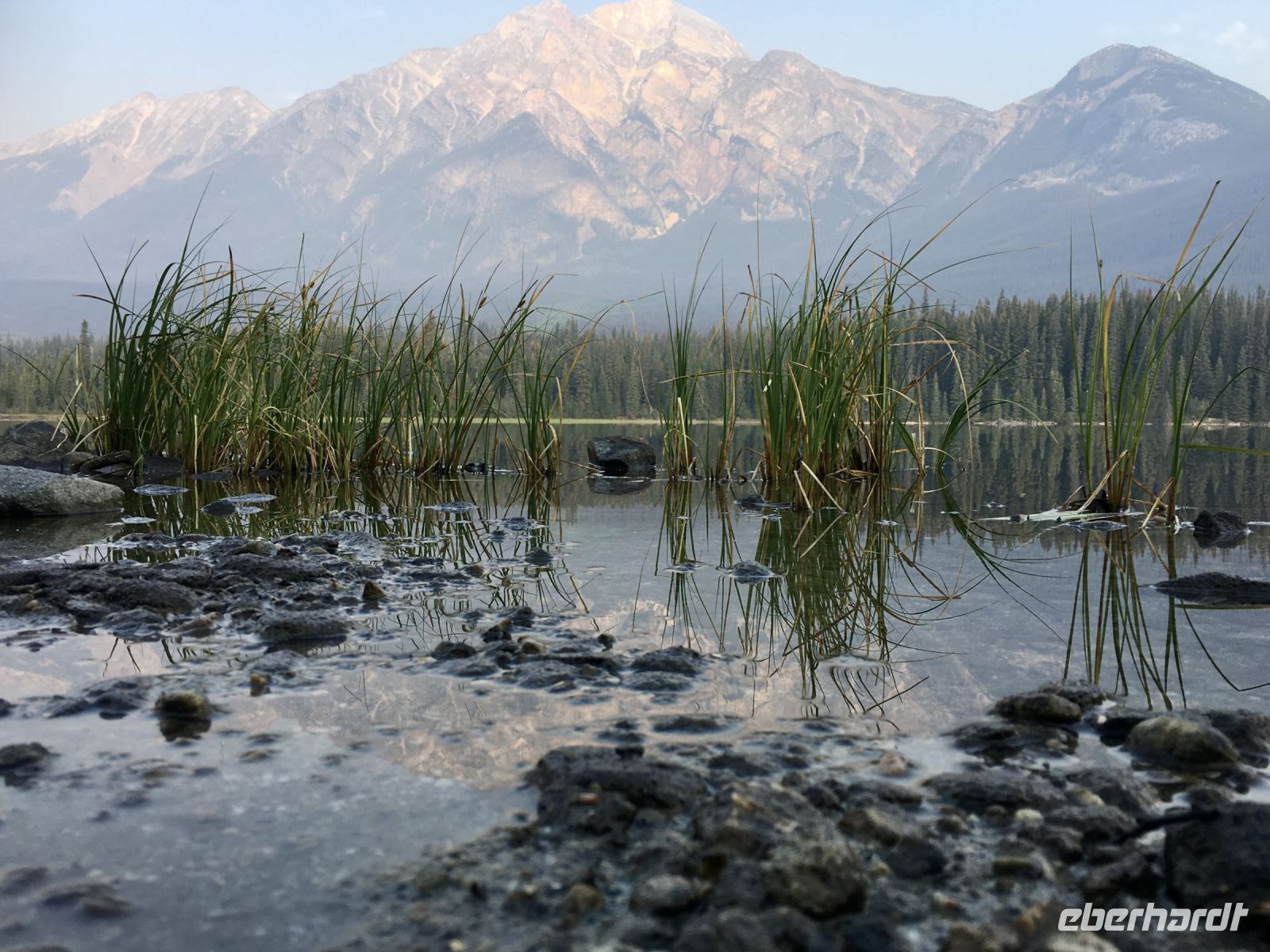 Nach dem Weckruf strecke ich auch gleich meinen Kopf erwartungsvoll zum Fenster hinaus und meine Nase wird nicht nass, also regnet es nicht. Ich habe ein sehr feines app, denn es wird immer noch schoener als geplant. Schnell alle Fenster wieder zu, denn es ist draussen doch sehr kalt. Mein Zimmer ist jedoch angenehm warm. Nun heisst es wieder alle 7 Sachen zusammenpacken und Eugene verstaut alles wieder im Bus. Die Sonne schaut schon hinter den Wolken und Rauchschwaden hervor. In Jasper fahren wir vorerst den Anhang hinter Jasper hinauf um dort zwei Seen zu besichtigen. Bei Pyramid Lake halten wir fuer einen kleinen Spaziergang auf der Insel. Auch hier bieten sich viele tolle Motive und unsere Kameras und Handy werden gut genutzt. Der gute Pyramid Lake liegt spiegelglatt und Pyramid Mountain spiegelt sich sanft darin. Sanft, da der Rauch doch die Sicht etwas beeintraechtigt. Hier, bei der tollen Riesen-Wurzel, machen wir auch das Gruppenbild, welches bloss fuer uns privat bleiben wird. Auf der Rueckfahrt halten wir nun bei Patricia Lake an, denn wir wollen erstens die Spiegelung aufnehmen und natuerlich kontrollieren, ob die Geschichte der Eisschiff-Werft auch stimmt. Alles gut, das Foto der Werft steht auch noch da. Nach einem kurzen technischen Halt in Jasper ist es aber wirklich Zeit diese schoene Gegen zu verlassen, denn British Columbia auch liebevoll BC genannt erwartet uns schon. Ueber der grossen Wasserscheide treffen wir auf den Fraser Fluss der erste Fluss der in den Pazifischen Ozean fliesst. Wir wandern auch eine Stunde diesem Fluss entlang. Schoen ist es, durch saftig gruenes Dickicht mit schoenen Aussichten auf den reissenden Fluss und die umliegenden Berge, zu wandern. Da wir bereits die Uhren eine Stunde zurueckstellen konnten ist es auch wieder frueher am Vormittag, es ist frisch und wir freuen uns um die Extrastunde Spielzeit heute. Wir lernen auch gleich schon die drei wichtigsten Bäume von BC kennen. Duglasien, Hemlock Tannen und Westliche Rote Zedern wachsen hier in diesem Hosentaschen-Regenwald. An der Kueste werden wir noch viele solche Baeume sehen aber dann als Riesen, wird uns versprochen. Nun sind wir eingelaufen und wollen nach der Mittagspause auch gleich die zweite Wanderung zum Kinney See unternehmen. Hmmm, der Park-Waechter hat alle Wanderwege um den guten Mount Robson bis auf weiteres gesperrt. Wohl wegen des Rauches und der Feuergefahr. So nutzen wir die Zeit und schauen uns vorerst die Reargard Wasserfaelle an. Es sind die letzten Wasserfaelle, die von den Chinook Lachsen vor ihrer Laichstelle bewaeltigt werden muessen. Alle Chinook sind bereits hochgeklettert, das muss sehr schwierig gewesen sein, denn diese Faelle des Frasers River sind rund 1200 Km von der Kueste entfernt ! So reden wir natuerlich viel ueber die Lachse, ueber ihren Lebensweg und ihre Laichgruende. Britisch Kolumbien ist durchzogen von Fluessen die Lachse fuehren, hoffentlich erwischen wir eine Schule bei Clearwater morgen. Nun geht unsere Reise mit dem Bus weiter und wir halten nochmals fuer eine laengere Wanderung in der Naehe von Valemount. Wir koennen es kaum glauben, wir machen eine Duenen-Wanderung und gehen auf Sand wie an einem Strand, Es ist hier sehr trocken, der Sand ist teilweise mit Moose und kleinen Graesern und Gestruep bewachsen, es ist, als waeren wir in einem anderen Land. Ueber 6 Km spaeter, sind wir wieder beim Bus. Nun machen wir endlich Siesta im Bus. Die Reise dauert 2 Stunden bis wir in Clearwater ankommen, wir sprechen ueber Waelder, Lachse, Studenten usw so vergeht die Zeit schnell. Wir kommen etwas spaeter als geplant in Clearwater an, da unser Minibus bloss 70 KmH fahren kann, ohne dass der Motor ueberhitzt. Wir muessen uns bloss noch einen Tag gedulden, dann bekommen wir einen neuen, grossen Bus. Ahh, das Abendessen bei Kaiden, so fein, so koestlich. Dieser abwechslungsreiche Wander- und Reise-Tag endet in strahlendem Sonnen-und Mondschein die noch immer etwas rauchig riechen.