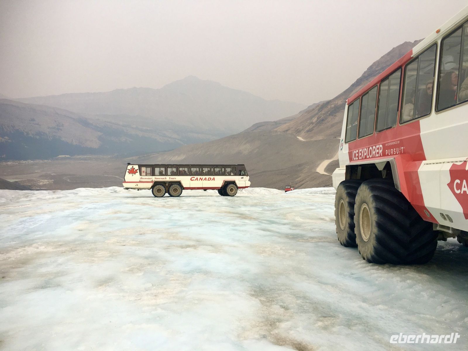 In der Frueh, so gegen 7 Uhr sind die Berge beleuchtet als haette jemand den Lichtschalter betaetigt. Der Himmel ist dunkel blau, ein tolles Foto-Wetter. Wir fahren heute in Richtung Jasper. Alles ist perfekt die Berge strahlen, die Gletscher glitzern, die Wasserfaelle schaeumen weiss und die Seen liegen ruhig in den endlosen Waeldern. Genau wie in der Ausschreibung. Gleich in der Frueh fahren wir auf die Pirsch. In Richtung Miniwanka See. Wir spaehen und halten Ausschau auf die erwuenschten Wapiti und Krummhornschafe. 32 Augen tanzen von rechts nach links sie suchen den Wald und die Wiesen ab….leider hoert man im Bus kein „STOP“. So hoeren wir zwar allerhand ueber die tollen Tiere aber eben… Ploetzlich sieht man rechts (oder war das nun links?) einen herrlichen See mit einer tollen Spiegelung. Natuerlich halten wir und steigen auch gleich aus, um dies wunderbare Foto von Two Jack Lake mit seiner kleinen Halbinsel vor Mt. Rundle zu erhaschen. Das ist nun wirklich ein schoenes Abschiedsgeschenk der Banff Gegend. Gluecklich geht unsere Fahrt nun weiter auf die Hwy 1. Heute gibts Geschichtsunterricht, von den ersten Weissen, ueber die Entstehung der Hudsons Bay Co. bis zur Erstellung des Eisenbahnnetzes. Viele Stopps sind heute angesagt so bestaunen wir vorerst den Kraehenfuss-Gletscher. Auf dieser beruehmten Parkstrasse durch die Rockies sieht man so viele riesen Gletscher von der Strasse aus. Dieser Kraehenfussgletscher ist besonders beeindruckend durch seine 3 Zehen. Gleich danach halten wir wieder, dieses mal beim Bow See. Hier wandern wir munter zum Ufer um dort den Fotokurs „interessante Spiegelung 101“ zu belegen. So liegen, knien, sitzen wir halb im Wasser und versuchen unser Glueck. Ja, toll, schaut Euch die Bilder in der Fotogalerie an. Einige sind fast Kunstwerke. Das Wetter ist nach wie vor perfekt und wir koennen uns von dem See fast nich trennen. Aber der Wagen der rollt….Der naechste Stopp ist auch wieder aufregend. Es ist der Peyto Lake. Ein kurzer Weg fuehrt auf eine hoelzerne Terrasse wovon man die perfekte Aussicht auf diesen Dackel-foermigen, hellblauen See bewundern kann. Die Kameras laufen wieder ganz heiss, wir sind nicht die einzigen hier sondern in guter Begleitung vieler anderer Touristen. Dieser See ist auch auf jedem Kalender der Rockies abgebildet und wer will nicht seinen eigenen Kalender fuer 2023 kreieren ! So, weiter gehts, dem Waterfowl Lake entlang. Dieser See wartet noch immer geduldig auf seine vielen Wasservoegel, aber zwei, drei Entchen haben sich heute hierher verirrt! Es gibt sie also doch, die Wasservoegel. Auf der Parkstrasse schauen die Gletscher von jedem Berg auf uns hinunter. Wir sehen sie zwischen Berge, Morainen und Felsen. Vorbei dem North Saskatchawan River auf welchem Alexander Mackenzie das Land auf Fluessen im 1805 erkundet hat fahren wir bis an Elisabeths Lieblings-picknick-platz. So sitzen wir gemuetlich am Flusses Ufer, auf tolle Berge schauend und geniessen das Mitgebrachte. Nach dieser erholsamen Mittagspause machen wir uns auf den Weg zum Athabasca Gletscher. Dies ist unser Highlight heute. Ehedem erfahren wir, dass es in Kanada sogar Kurven auf der Strasse gibt !! Mit unserer Hilfe schaffen wir auch alle 3 Kurven, sodass wir heil beim Columbia Icefield Center ankommen. Die Sicht ist nun nicht mehr so toll, ein Feuer bei Jasper ist dafuer verantwortlich, dass die Luft nach Waldbrand riecht und die Sicht beeintraechtigt ist. Oh, wir sind da, steigen aus, gehen zum Center und sind doch sehr erstaunt ueber die vielen Damen-Toiletten. Sie sind sogar im Guiness Book of Records vermerkt und das muessen wir natuerlich gleich ausforschen. Einige entscheiden sich fuer eine Moraene-Wanderung am Fusse des Athabasca Gletschers aber die Mehrheit faehrt mit dem riesen Snowcoach aufs Eis. Wir fahren vorerst mit einem normalen Bus auf eine Seitenmoraene und dann steigt man in den Snowcoach um. Damit fahren wir auf den Athabasca Gletscher. Der Fahrer ist echt nett und ist unter dem hiesigen Durchschnittsalter von 25 Jahren. Unser Bus ist voll. Eine grosse Gruppe Franzosen sitzen alle brav auf ihren Baenken und horchen der Reiseleitung zu, wie er ohne zu atmen 10 Minuten lang etwas sehr kompliziertes auf franzoesisch mit Quebec Dialekt erklaert. Oben angekommen, koennen wir nun Quebecois und wir haben 30 Minuten Zeit das Eis zu erleben, darauf herumzu-rutschen und -turnen, mit dem klaren Gletscherwasser das mitgebrachte Flaeschchen abzufuellen und das Quebecois wieder zu verlernen. Das rutschige Bild mit der herrlichen Kulisse des Eisfalls wird sicher ein Hit. Ist Eis nicht hart ? Unten angekommen, treffen wir unsere Wanderfreunde und sind bald bereit weiter zu fahren. Es ist nicht weit zu unserem heutigen Nachtquartier. Die Sunwapta Lodge liegt wirklich idyllisch mitten im Wald. Gott Sei Dank, wissen wir nun auch, wie man sich mit Baeren auseinandersetzt, denn nicht weit von der Lodge entfernt sind die Sunwapta Wasserfaelle. Das Abendessen ist sehr fein zieht sich jedoch lange hinaus. Nach diesem vollen Tag wollen wir nun eigentlich bloss noch unsere Waldhaeuschen aufsuchen um da, mitten im Wald ruhig schlafen zu koennen. Manch einer traeumt heute von Schwarzbaeren und Grizzlis.