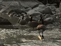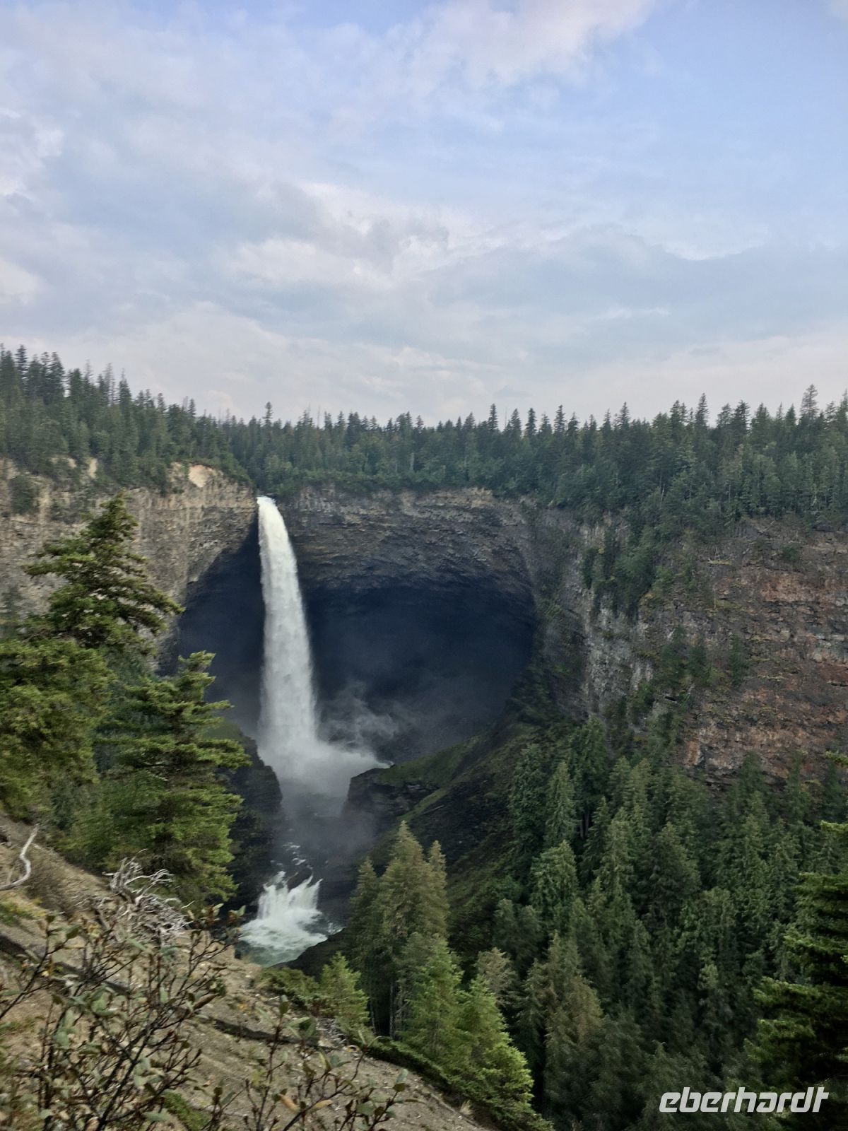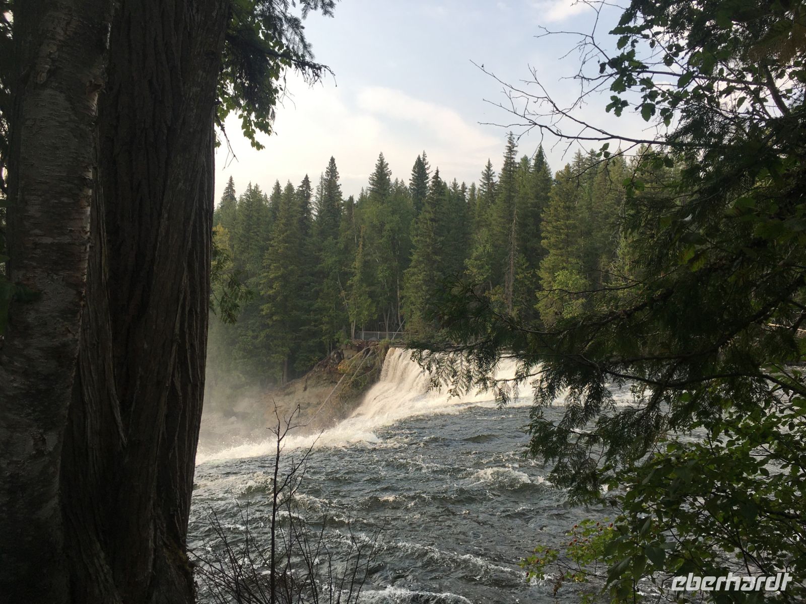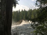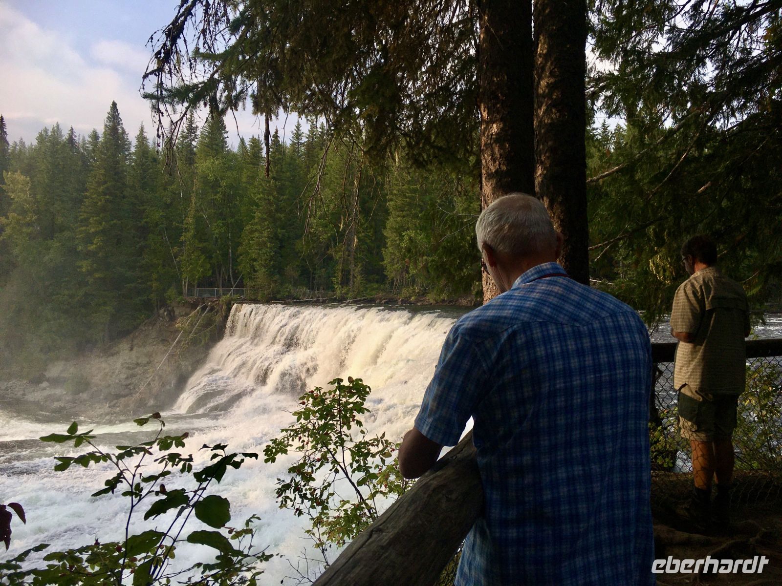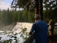 Ruhig und gut haben wir hier geschlafen und beim oeffenen der Balkontuere sehen wir Sonnenschein und spueren Kaelte. Nach dem wahrlich koeniglichen Fruehstueckbuffet welches nur fuer uns bereitet wurde, starten wir den Tag mit den Spahat Faellen. Diese hohen Wasserfaelle sind eines von drei ganz besonders schoenen Wasserfaellen hier in diesem Park. In Wells Grey Park gibt es rund 300 Wasserfaelle und in den ersten 20 km auch Farmen welche in Oesterreichischer, Deutscher und Schweizer Hand sind. Mike, der wilde Oesterreicher, hat hier auch eine Farm und sein Paddelmeister Frank fuellt nun unseren Bus mit unserem Mittagessen, den Schwimmwesten und sonstigem. So sind wir bald unterwegs zu diesem Abenteuer. Schoen ist es durch diesen Park zu fahren, so viel Natur. So kommen wir so gegen Mittag zum Clearwater See. Nun faengt unser heutiges Highlight an. Wir werden von Frank eingewiesen wie man so ein Kanu fuehrt, wer vorne und wer hinten sitzt, wer Richtung und wer Tempo angibt und wie man geradeaus faehrt. Wir lernen auch Kurven fahren, was wir jedoch bloss einigermassen verstehen. Denn im zig zag Muster paddeln wir froehlich nicht allzuweit bis zu einem schoenen Strand. Einige unter uns fahren erst einige Runden im Kreis bis auch sie das zig zag Muster meistern ? Die Sonne scheint praechtig, der Wind hilft fleissig mit und der Clearwater Lake ist spiegelglatt. Am Caribou Strand «parken» wir unsere Kanus und inspizieren vorerst die Gegend. Wir sind mitten in einem herrlichen Wald, es gibt sogar einen Camping Tisch und eine Feuerstelle. Frank zaubern in windeseile ein tolles Picknick auf den Tisch. Ein Lagerfeuer wird angefacht und schon…..huepfen die ersten ins kalte Wasser und danach gleich noch ein Paeaerchen. MMMMh die Sandwiches sind sehr lecker. Als Nachtisch gibt es Smores, das sind auf dem Lagerfeuer geroestete Marshmellows mit Kekschen und Schokolade. Sie heissen Smores fuer «some more». Gestaerkt paddeln wir nun fleissig auf dem grossen See Richtung Steg. Das Wasser ist unterdessen gekreuselt und ein Gegenwind ist aufgekommen. Wir sollen kraeftig auf die andere Uferseite paddeln, ohne anhalten ! Gesagt getan, uuiiii, das ist ja gar nicht mehr so einfach wie zuvor. Autsch die Arme, autsch die Bauchmuskeln. So paddeln wir nun dem Ufer entlang, da ist ea etwas ruhiger, man hoert nur die Paddel wie sie das Wasser ruehren. Alles schaut sehr romantisch aus. Etwa 1/2 Stunde spaeter sind wir wieder beim Steg. Nach dem Wegraeumen der Kanus, faehrt uns Eugene in seinem Minibus wieder auf der Schotterstrasse zurueck. Aber nun muessen wir uns noch ein paar Wasserfaelle anschauen. Vorerst halten wir bei Beiley’s Chutes, da sehen wir zwar keine Lachse dafuer aber die noch sehr selteneren Kayaker wie sie durch diesen langen Wasserfall runterstuerzen. Einer hat so viel Spass daran, dass er beim 2. Durchgang sogar einen Sprung ueber eine Welle mit seinem Kayak macht. Wir klatschen ihm zu und haben es auf Bild festgehalten. Nun aber weiter, die naechsten Wasserfaelle warten bereits. Es sind die Helmcken Falls. Diese Faelle sind die 3. hoechsten Kanadas und einfach spektakulaer. Das Wasser stuerzt in ein steiles Lavatal und graebt sich immer weiter hinein. Eindrucksvoll ist auch die riesen Hoehle welche sich dieser Wasserfall ausgegraben hat. Kurz danach halten wir bereits wieder. Die Dawson Faelle, welche wir nun besichtigen sind aehnlich den Niagara Faellen bloss nicht so hoch und weit, jedoch ohne Hochhaeuser dahinter. Nach einem Spaziergang durch den Wald und einer Weiterfahrt sind wir dann wieder gegen 6 Uhr abends im Hotel. Der Abschluss dieses Tages ist wieder ein schoenes Essen im Hotel selbst. Es war ein herrlicher Tag, mit bloss 5.5 Km Wanderung jedoch, so scheint uns, mindestens 20 Km im Kanu paddelnd !! Sagen die Oberarme !! Unser Fahrer Eugene verlaesst uns heute mit seinem Minibus und wir verabschieden uns dankend von ihm.