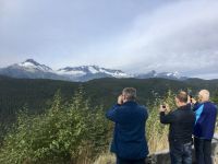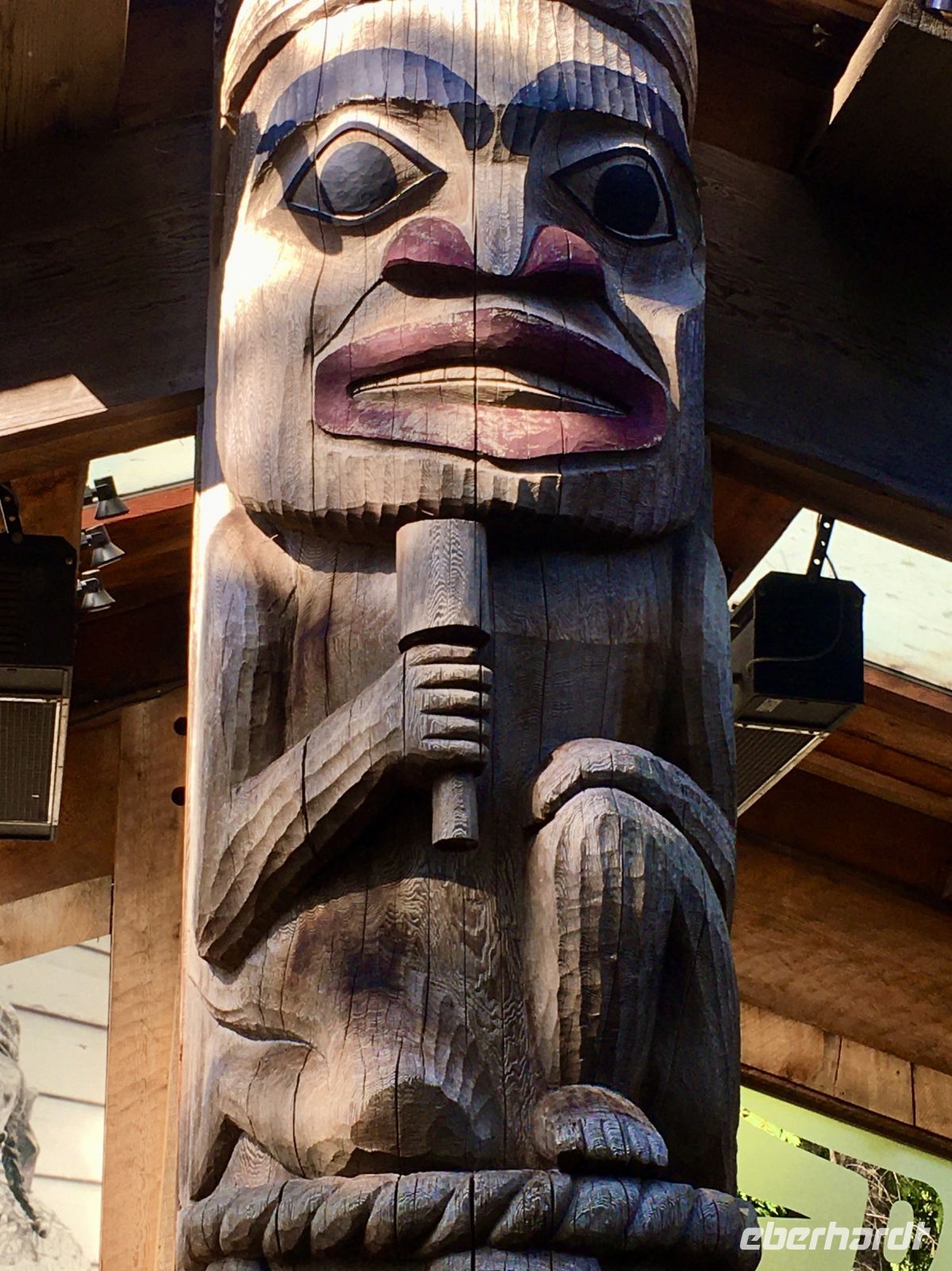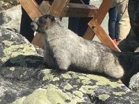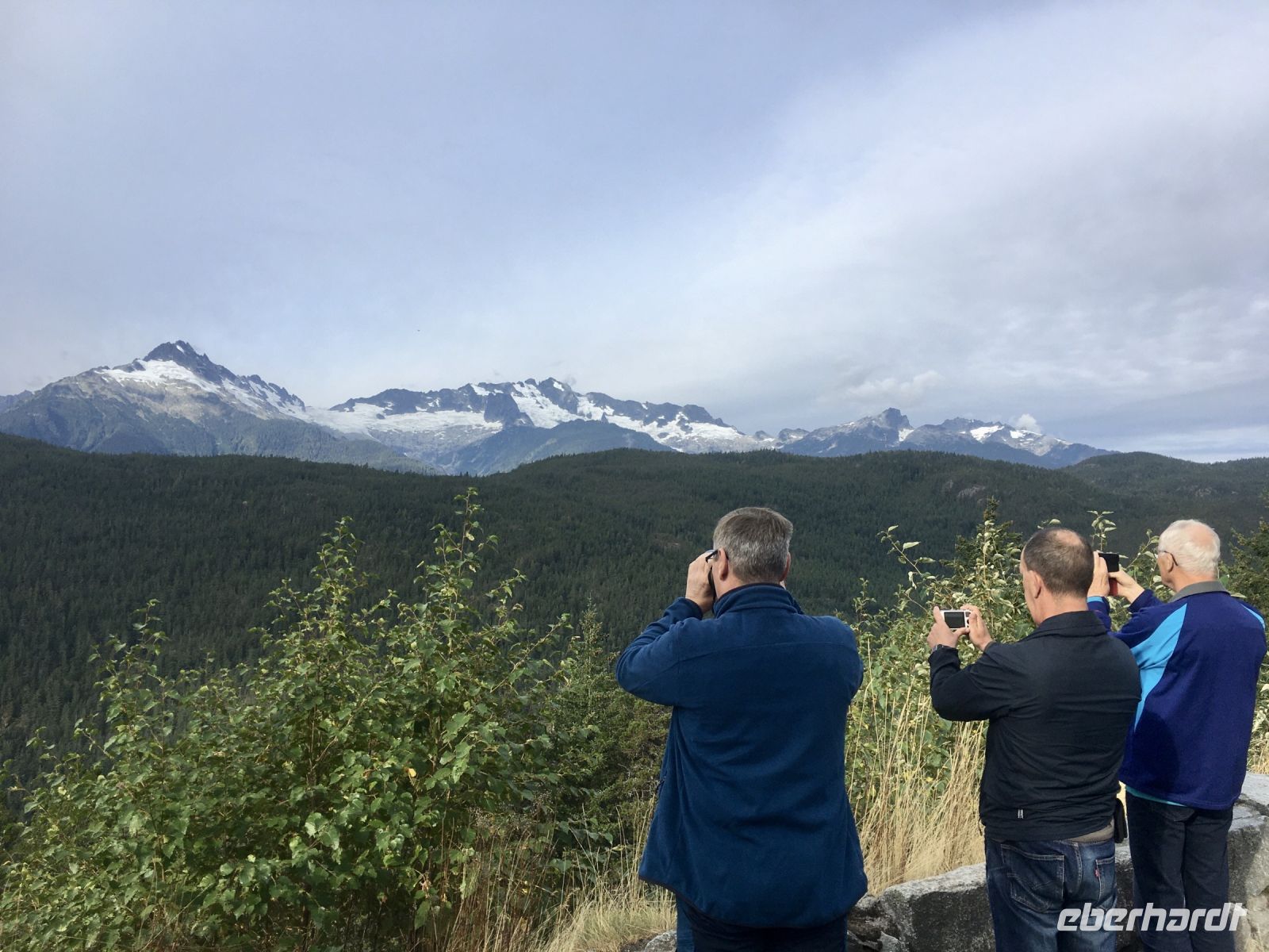 Guten Morgen in Whistler. Es gibt viele enorm dicke Wolken vor der Sonne, es regnet in Stroemen ! Fruehstueck gibt es heute in einem nahegelegenen Restaurant. Heute gibt es Egg Benedict auf verschiedene Art und einen echten guten Kaffee dazu. Es schmeckt sehr gut. Der Wetterbericht meint, es wuerde viel regnen und ab 16;00 Uhr kaeme dann die Sonne zum Vorschein. Also machen wir unser Programm dementsprechend. Vorerst machen wir eine Wanderung um einen kleineren im Walde liegenden See. Ehe wir jedoch zu Lost Lake gelangen, besuchen wir auch North Whistler mit seiner Gondelbahn auf den Blackcomb Mt und seinem praechtigen Chateau Whistler. Hier zu gehen ist gar nicht so einfach, viele Wege fuehren einem irre, Baeren gaebe es ueberall und Fahrradfahrer sehen wir auch in Massen. Der Weg um den See ist schoen breit….also nehmen wir bald den Waldweg der ueber Stock und Stein fuehrt. Wir sind doch eine Wandergruppe und keine Spaziergaenger auf einer Gassi-Gassi Tour ! Wir werden platsch nass, es regnet immer mehr und die Berge werden von den tiefliegenden Wolken immer noch mehr gedrueckt. Bald liegen die Berge alle im See. So gelangen wir wieder ins Dorf von Whistler und machen einen weiteren Tagesplan. Da es Mittag ist, gibt es vorerst eine Pause. Viele unter uns, treffen sich um 13:30 um das vielversprechende Museum der Ersten Nationen zu besuchen. Danach, um 15:00 Uhr wollen wir uns alle wiedertreffen um doch auf den Berg zu schweben da das App schoener Wetter verspricht. Das Museum ist echt sehr sehenswert, besonders wenn man gefuehrt wird. So waren wir anfangs genau zur richtigen Zeit da und haben dem Trommeln und Gesang zuhoeren koennen und danach den Film ueber die beiden Nationen der Squamish und Lillooet anzuschauen. Genau um 15:00 verziehen sich die Wolken, wir treffen die anderen Wanderer und schweben alsobald mit Gondeln auf Blackcomb Mountain. Da gibt es auch einen Zwischenhalt und wir wollen natuerlich gleich aussteigen, ahhh nein, Elisabeth hat doch gesagt, wir sollen sitzen bleiben bis wir ganz oben auf dem Berg sind. Die Aussicht auf Whistler ist super, das Wetter wird immer schoener, grosse Freude kommt auf, wenn wir oben sind. Praechtiger blauer Himmel erwartet uns auf Blackcomb Mt. Die Murmeltiere, wovon es hier so viele gibt, sind riesengross und posieren regelrecht fuer uns. Der 1 1/2 stuendige Wanderweg schlaengelt sich entlang des Berges. Es ist ein schoener Pfad ueber Stock und Stein mit Sicht auf Whistler Mountain. Die Sicht ist wie von einem Flugzeug aus. Ueber dem tiefgruenen Wald, ragen herrliche, leicht schneebedeckte Berggipfel heraus. Die perfekten Bonsai-Tannen und Fichten begleiten uns auf dieser Wanderung. Da die Gondel nur bis 17:00 Uhr geoeffnet ist, wandern wir wieder zurueck zur Gondel und fahren alsobald wieder ins Tal. Es gaebe hier so viele Baeren, aber wo sind die denn, wir haben noch immer keine gesehen. Vielleicht alle auf Vancouver Island ? Nun haben wir vorerst Freizeit in Whistler, da kann man schoen einkaufen und Leute schauen. Wir treffen uns morgen frueh wieder. Gute Nacht meine lieben Wanderer.