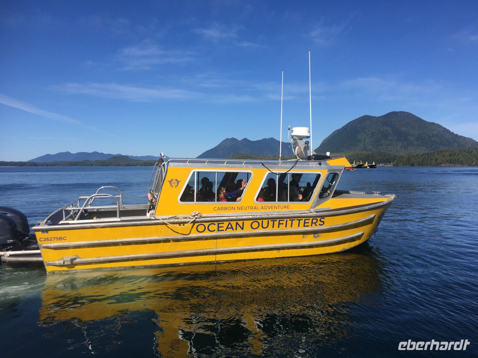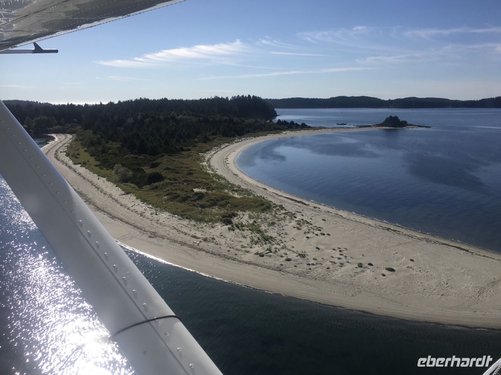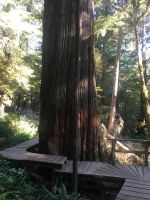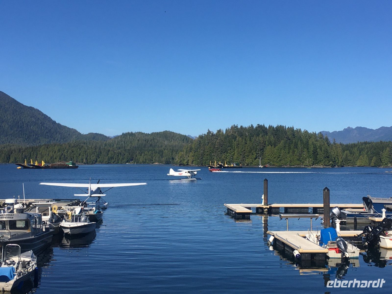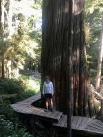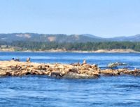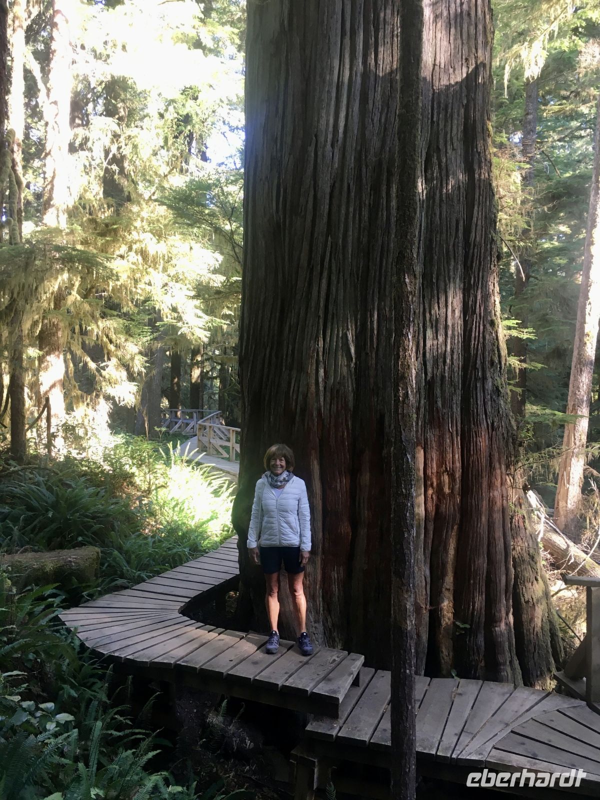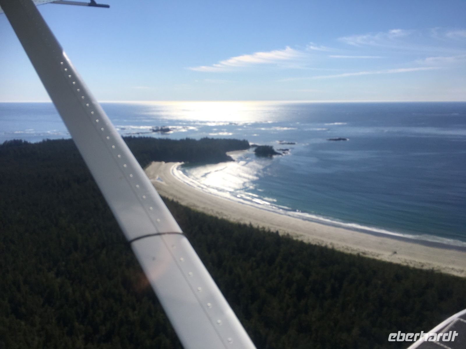 Es ist unser Westkuesten-Tag, der Regenwald-Tag, und es regnet ueberhaupt nicht, es ist wunderschoen. Kein Wind, kein Nebel, einfach bloss blauer praechtiger Himmel. So wachen wir auf, einige gehen gleich im Ozean baden und dann Fruehstueck wann man will. Mmmmm Urlaub. Nach dem schoenen Fruehstuecksbuffet, wollen wir gleich mal diese legendaeren Riesenbaeume des Pacific Rim Nationalparks sehen und halten also auch gleich bei einem Rundwanderweg an. Auf einem Holzsteg gehend, geniessen wir die Ueberschwenglichkeit und Vielfalt dieses Waldes. Es ist wirklich ein Urwald auf 3 Etagen und wir bewegen uns mal im Unterholz und mal im Mittelbereich. Die Krone des Waldes ist kaum sichtbar...so hoch oben... 80 Meter hoch werden diese Riesen. Der hoechste soll ueber 100 Meter hoch sein. Fruehmorgends sind diese Waelder am schoensten, alles wacht gerade aus, die Farne leuchten aber da es schon so lange nicht geregnet hat, ist sogar der Regenwald eher trocken. Ja, es gibt natuerlich nach wie vor die Moose und die Luftpflanzen. Auch bei einem schoenen Tag schaut es hier aus wie in einem echten Ur-Regenwald. Baeren soll es hier viele geben, doch wir sind eine muntere Gruppe und somit sind alle Baeren gewarnt und verstecken sich im Dickicht. Ihre Jungen haben sie sicher auch bereits auf die Baeume gejagt, also war kein Baer fuer uns sichtbar. Wir gehen staunend weiter knipsen viele Bilder bleiben immer wieder stehen, reden und lachen viel. Ein vielsprachiger Kolkrabe begleitet uns eine Weile. Er fliegt von Baum zu Baum immer mit uns mit und kraechzt, piepst und gluckst fröhlich vor sich hin. Ploetzlich sind wir wieder bei der Strasse. Hier ist auch die Tafel. Da steht, dass dieser Rundgang 1.01 Km lang ist. Wir waren eine geschlangene Stunde unterwegs und wir sind doch eine Wandergruppe ? So fahren wir zurueck Richtung Tofino. Bei Long Beach gibt es noch einen Halt denn heute, an dem sonnigen Sonntag wollen wir auch den Surfern zuschauen. Wellenreiten ist hier der Sport der Jugend und jung gebliebenen. In ihren schwarzen Combis schauen die Surfer eher wie Taucher aus und wenn sie denn noch das Wollmuetzchen tragen und das lange Brett unter dem Arm geklemmt haben, ist alles klar…. Hier surfen ist eine kalte Angelegenheit. Wir schauen eine Weile zu, geniessen die Sonne und den endlosen Strand und fahren auch bald wieder weiter. Bereit fuer unser naechstes Abenteuer. Nach dem kurzen Picknick gehts nun auf die Bootsfahrt, eine Baerenbeobachtung wird hier geboten. In den naechsten 2 1/2 Stunden fahren wir in die Inselwelt um Tofino. Das Boot fasst jeweils 12 Personen und wir haben ein, eigen fuer uns gechartetes Boot. Wir segeln auf dem flachen Wasser dahin, an vielen Inseln und Straenden vorbei. Andere Boote sind auch unterwegs und die Suche nach Baeren, die sich an den Straenden bei Ebbe von Krebschen und Muscheln ernaehren, geht los. Wir sehen 2 Baeren, wie sie gerade am Meeresufer sind, um die Muscheln die es hier angeschwemmt hat, zu knacken. Eine Leibspeise der Baeren. Wir sehen aber auch Seeloewen und eine ganze Insel von Alaska Seeotter. Ach wie suess sie doch auf ihrem Ruecken schwimmen….oder schlafen die sogar. Sie sind so nahe beinander, dass es echt wie eine Insel ausschaut. Was fuer ein tolles Erlebnis, kommts mit auf diese Reise, selbst erleben ist noch schoener. Zurueck in Tofino gehts nun weiter mit einem Wasserflugzeug Ausflug. Bei diesem fantastischem Wetter ist das natuerlich die Krone des Tages. Wir schweben ueber Inseln, dieser wilden Westkueste des Pacific Rim National Parks entlang und sehen sogar…..einen Walfisch von oben. Es ist „Picture perfect“. Gluecklich finden wir auch wieder Bernie mit seinem weissen Bus .Er faehrt uns auch gleich zurueck zu unserem Hotel und dem schoenen Strand. Einige unter uns Strandgaenger stuerzen sich sogar in den Pazifischen Ozean, es ist schon kalt, aber eben, einmal hier baden gehen ist auch ein Erlebniss. Ein feines Abendessen in dem schmucken Restaurant mit Sicht aufs Meer und die vorgelagerten Inseln rundet diesen wunderschoenen, ereignisreichen Tag ab. Der kanadische Wein oder das Bierchen schmecken vorzueglich, der gute Schlaf ist gesichert.