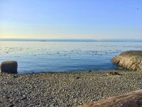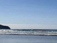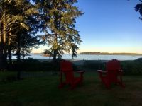 Ab heut ist wieder Sonne angesagt, ach wie schoen. Es hat naemlich schon gedauert, bis alle Kleider von gestern wieder trocken waren. Heute legen wir viele schoene Kilometer zurueck denn wir wollen bis an die Westkueste der Vancouver Island. Auf der Sea to Sky Highway fahren wir vorerst zuegig in Richtung Vancouver. Bei Squamish vorbei sehen wir das Kletterparadies der Vancouverites. Auf Cheakamus Chief sehen wir auch einige Spiderman und -women. Naechster Halt ist Horseshoe Bay, das ist einer der zwei Faehrehafen fuer die vielen Faehren welche Vancouver mit Vancouver Island verbinden. Die Faehre bringt uns in 1 Stunde 35 Minuten auf die Insel von Vancouver. Wir fahren gleich mit dem Bus auf die Faehre und steigen aus um dem Auslaufen beizuwohnen. In der Ferne sieht man die Hochhaeuser von Vancouver. Das Wetter ist perfekt fuer so eine tolle Ueberfahrt. Die Perle des Pazifiks werden wir jedoch erst in 4 Tagen besuchen, im Moment sehen wir bloss die Umrisse dieser schoenen Stadt ! Nachedem wir Faehre verlassen fahren wir vorerst noerdlich bis wir nicht westlich abbiegen koennen denn wollen heute nach Tofino, es liegt an der Westkueste dieser Insel. Der kurze Stopp beim Markt in Coombs ist unterhaltsam, die Ziegen stehen auf dem Markthallendach und das Eis schmeckt vorzueglich. Die ½ Stunde vergeht sehr schnell, da es hier so viel anzuschauen gibt. Waeren die Koffer nicht schon so voll, haetten wir gerne so einen Riesenbudda fuer den lieben Nachbarn, ein Holzspielzeug fuer die Enkelchen oder einen handgefertigten Tontopf fuer den eigenen Garten mitgebracht. Leider, leider. Fuers T-shirt oder einen Apfel hats gerade noch gereicht. Spaeter gehen wir ganz vertraeumt in einem Urwald spazieren. Die Riesen schauen auf uns Zwerge hinunter und viele Baeume sind von Moos so umgeben, es scheint sie haetten Pelzmaentel an. Jetzt fahren wir aber weiter, denn die Strecke nach Tofino zieht sich immer in die Laenge. Wir durchqueren die ganze Insel von Vancouver. Dort angekommen, gehen wir gleich mal an einen wilden Strand. Ahh die Luft, das Meer, die Muscheln, Kelp und Krebshuelsen und Schwemmholz, alles passt in dieses Bild. Auch Elisabeth’s Freundin, die hier in der Naehe wohnt, besucht uns hier. Die Sonne lacht, die Luft ist lau, es ist perfekt. Der pazifische Ozeam hinterlaesst einen 100 Meter breiten hellen Sandstrand. Viele Holzstaemme liegen wie ein riesen-Mikadospiel am Ufer und die Kelp Pflanzen haben sich ineinandergewickelt, sodass sich richtige Kelp-Knoten vom Sand erheben. Mit einer Pflanze springen wir auch Seil, zwei halten die Enden und schwingen die Pflanze und wir springen wie die kleinen Maedchen damals auf dem Schulhof. Wir geniessen diesen Aufenthalt und bleiben auch eine Weile. Nach diesem schoenen ersten Eindruck an der Westkueste fahren wir noch einige Kilometer und checken alsobald in unsere tolle Lodge am Strand ein. Dieser Sonnenuntergang von unseren Zimmern aus bleibt in ewiger Erinnerung. Alle beziehen wir unsere Zimmer und gehen auch gleich die paar Schritte zum Strand hinunter. Es ist Kamera Hochbetrieb. Ein leckeres Abendessen spaeter fallen wir muede ins Bett. Den morgigen Tag koennen wir kaum erwarten.