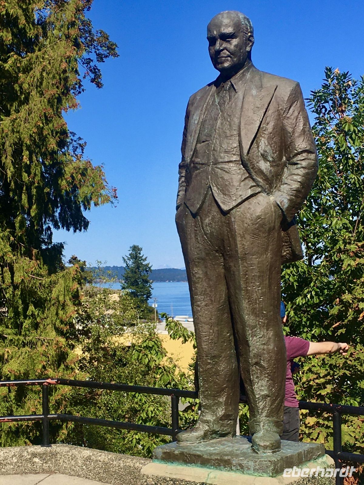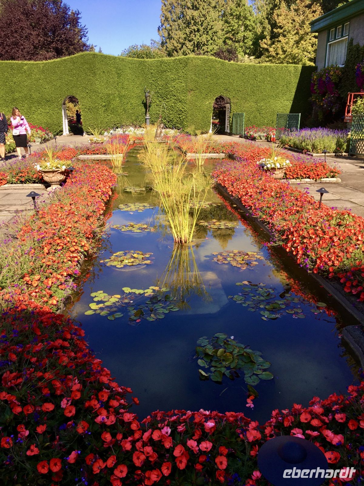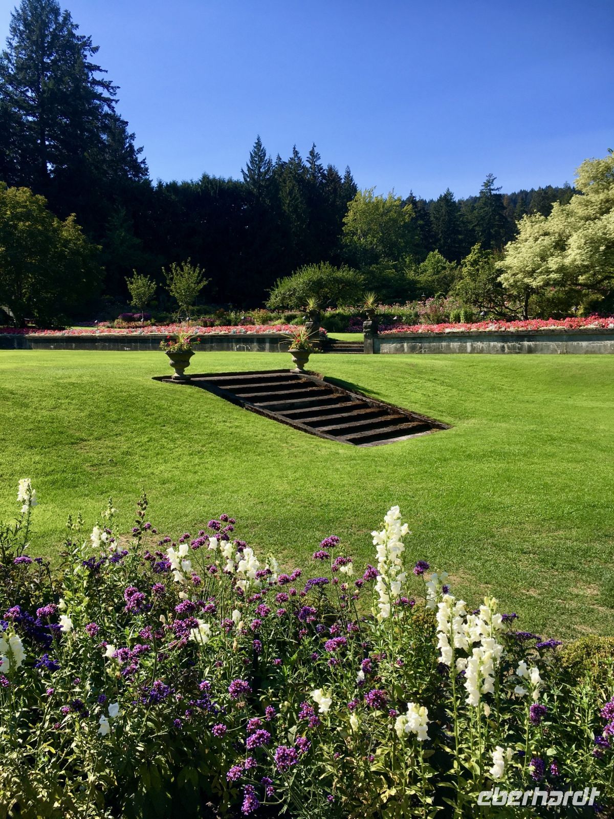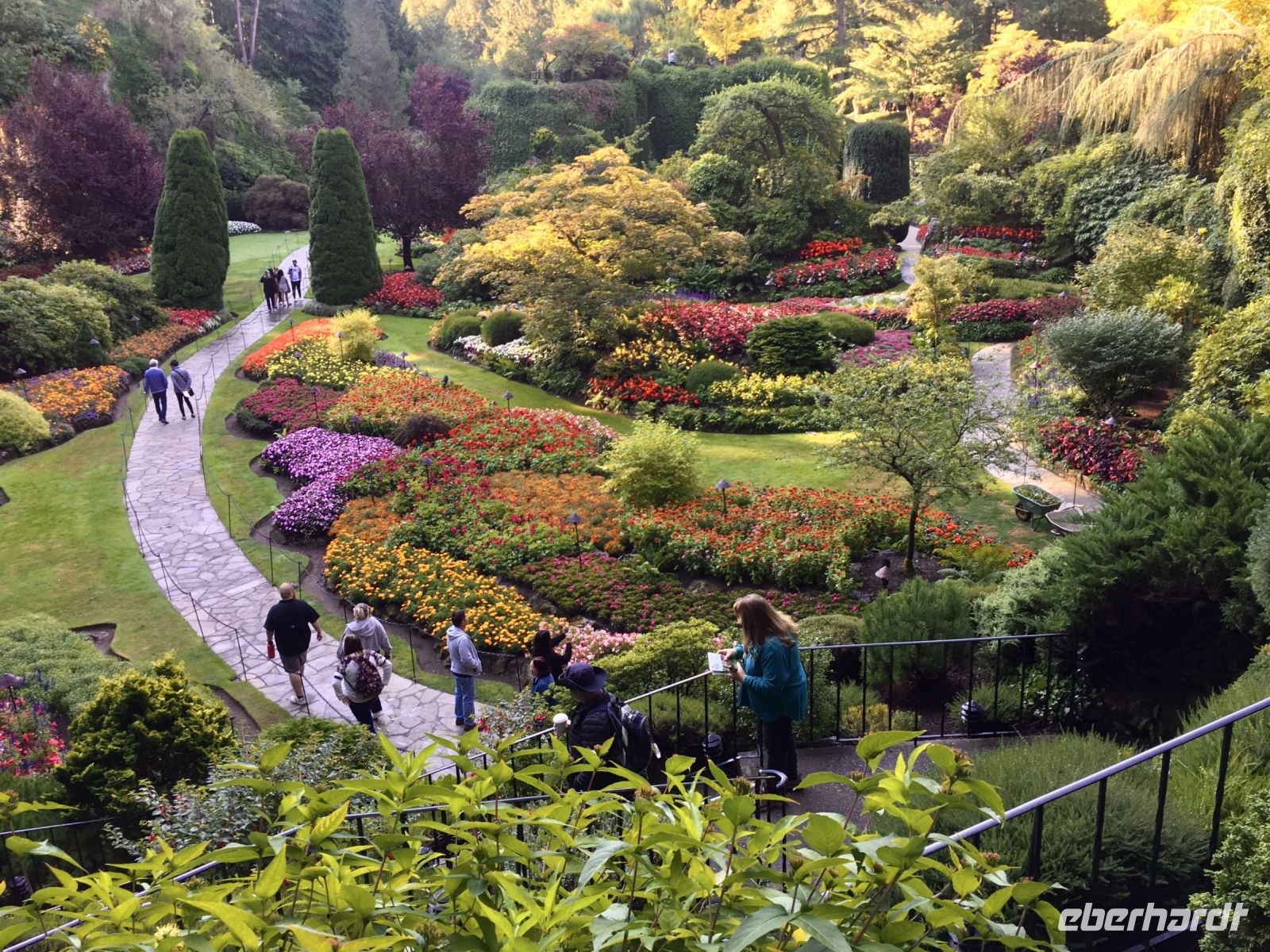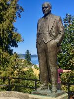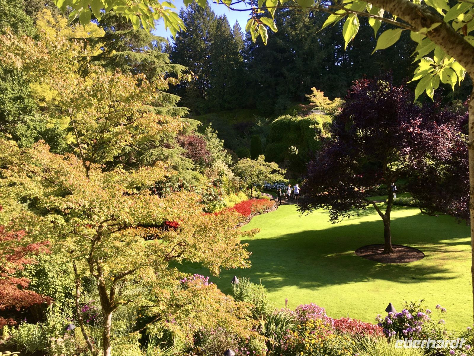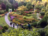 Abreise von Victoria steht heute auf dem Programm. Sobald die Koffer im Bus verstaut sind, fahren wir vorerst zur Meile 0 der Trans Canada Highway. Wir gehen auch an einen kleinen Strand hinunter und verabschieden uns gebuehrend von der wilden Westkueste und den olympischen Berge von Washington State. Danach gehts weiter in die Butchart Gardens. Eine riesengrosse Anlage mit verschiedenen Gaerten erwartet uns hier. Elisabeth darf uns hier eigentlich nicht mehr begleiten, also fuehrt sie uns sozusagen stillschweigend durch diese Gaerten. Dies bekommt ihr aber gar nicht und so plappert sie einfach trotzdem froehlich weiter. Ach so, Vanillebluemchen in die Geranien pflanzen schuetzt vor Schaedlinge. Aha, so soll man den Garten anlegen, mit Huegel und Wege, Boegen und Baueme. Naja, bei 300 Gaertner ist das alles ein einfaches Unterfangen. Vorerst der haengende Garten, dann den Wald-Garten, der versunkene Garten mit seiner Fontaene, den Rosengarten, den japanischen Garten, der franzoesische- und, zu guter Letzt, der italienische Garten. Bis wir wieder beim Kaffeehaus sind, sehen wir nur noch Blueten und Blumen vor unseren Augen. So beeindruckend sind diese Gaerten, dass ueber eine Million Gaeste sich jaehrlich diese Pracht anschauen. Wir auch ! Mittags sind wir auf der Faehre und da essen wir auch die eingekaufte Speise die wir in dem Garten Kaffee ausgesucht haben. Die Sonne strahlt. Wir sitzen draussen, geniessen und lassen die vielen Inseln an uns vorbeiziehen. Die 1 ½ Stunden sind sehr schnell vorbei. Bei Ankunft auf dem Festland fahren wir nun in Richtung Norden nach Vancouver. Wir lernen die Stadt auch gleich kennen, denn die Stadtfuehrung fuehrt uns vorerst ins Chinatown. In dem schoenen ruhigen chinesischen Garten setzen wir uns in den Gazebo und besprechen das Leben der Chinesischen Bevoelkerung hier in Vancouver. Anschliessend gehts nach Gastown. Es ist der aelteste Stadteil Vancouvers mit seiner interessanten Geschichte und seiner Dampfuhr die man auf jedem Vancouver Prospekt auch sehen kann. Und nun stehen wir vor der Dampfuhr. Die Stunde wird durch viel Dampf im Big Ben Muster angezeigt und durchs Glass kann man das Getriebe anschauen. Ganz schoen einfallsreich der britische Lok-Ingenieur ! Nun sehen wir noch viele Sehenswuerdigkeite der Perle des Pazifiks und halten wieder in Stanley Park bei den Totem Pfaehlen. Auch hier weiss Elisabeth noch Geschichten dazu. Die lustige Kinder-Trockenanlage beim Spielplatz ist sehr amuesant und die Loewenbruecke ist beeindruckend. Bald gelangen wir so zu unserem Hotel wo wir uns von Berni mit einem Umschlag und besten Wuenschen verabschieden. Wir werden ihn vermissen, er hat uns sicher und gut gefuehrt. Heute Abend ist freies Abendbrot und so ziehen wir alle, mit unseren Stadtkarten ausgeruestet, durch die Strassen Vancouvers. Wichtig ist jedoch das Rendez-vous am englischen Strand zum Sonnenuntergang.