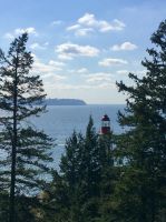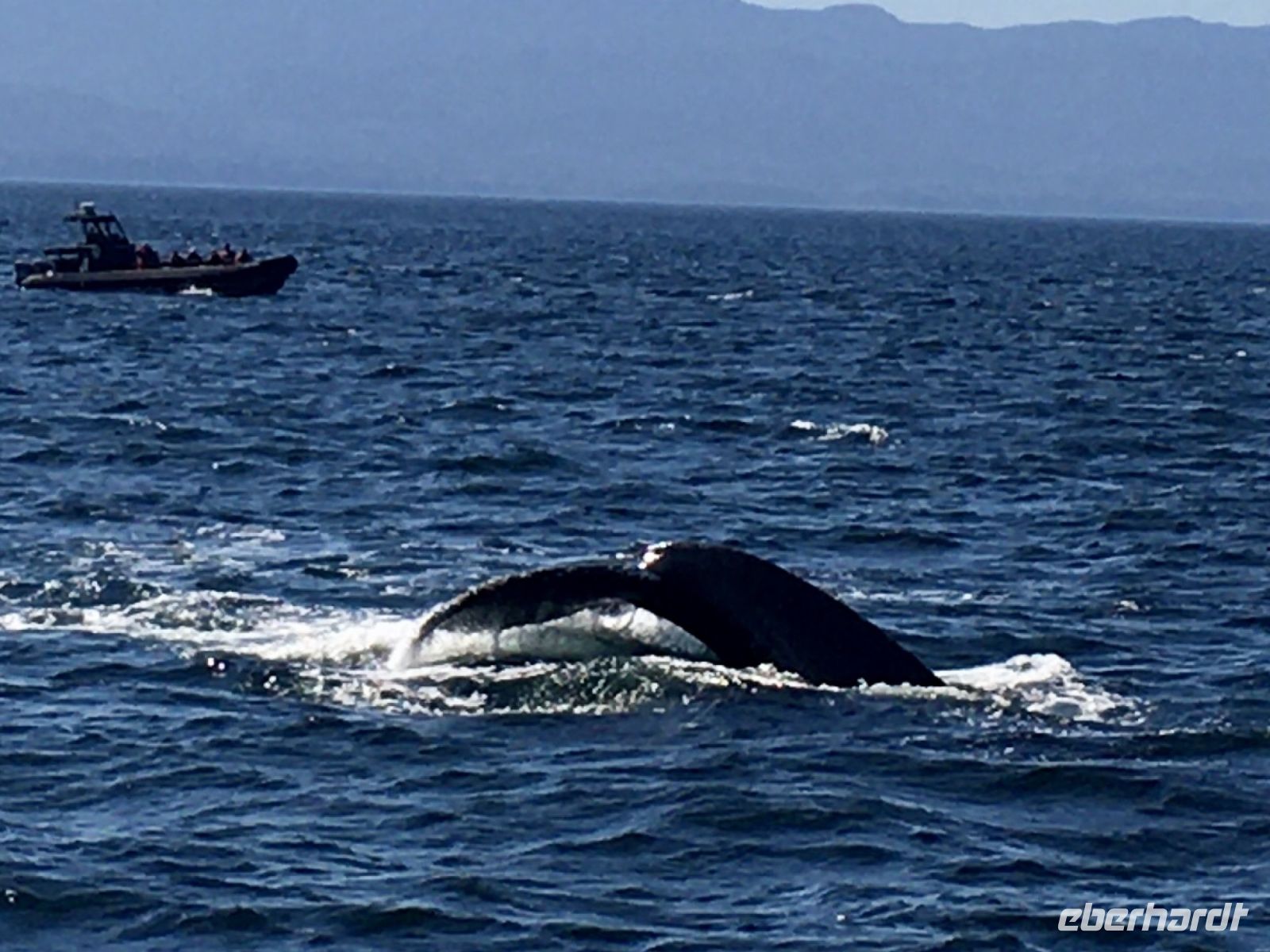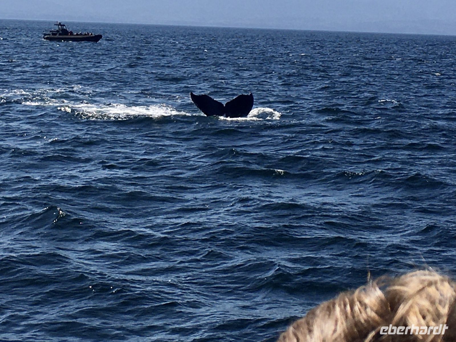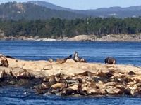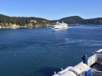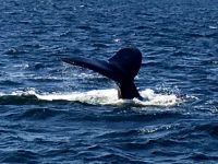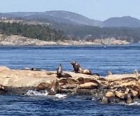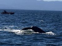 Es ist unser freier Tag in Victoria, aber wir haben ein ganz tolles Programm. Stahlblauer Himmel begleitet uns und schon sind wir unterwegs zum heutigen Highlight. Wir gehen naemlich auf Walbeobachtung. Das Boot wartet bereits am Hafen auf uns. Andrew, der Kapitaen winkt und die Marine-Biologin, Joana begleitet noch andere Gaeste auf dieses Boot. An Kaffee, Tee und heisser Schokolade kann man sich hier kostenlos bedienen. Es ist etwas kuehl aber die Sonne will uns aufwaermen. Das Meer, ist heute spiegelglatt, kein Wind jedoch lange weiche Wellen halten das Meer in leichter Bewegung. Wir fahren und fahren, schauen und suchen. Wir sind ganz nahe der amerikanischen Kueste, sehen aber keine Fontaenen also gehts wieder ans kanadische Ufer. Immer schauen wir aufs Meer. Wir sehen viel Wasser. Auf einmal aber geschiehts, nein keine Fontaene auf dem Wasser, sondern es hat sich irgend etwas um einen, der zwei Propeller gedreht und der eine Motor will nicht wie sich das der Kapitaen wuenscht. Er schaut nach, alle Klappen werden hochgehoben und der Kapitaen verschwindet im Motorloch. No, nichts kaputt, alles sei i.O. mit dem Motor. Also doch etwas mit dem Propeller. Vor-Zurueck-Vor-Zurueck….nichts hilft. So schleichen wir auf dem grossen blauen Ozean zu den anderen Booten. Anscheinend, haben sie Wale gesichtet…..Da, vorne auf ein Uhr….nichts wie hin....es ist ein Buckelwal, er muss erwachsen sein, meint Elisabeth’s Freundin Joanna, die Marine-Biologin. Er ist unterwegs in den Sueden. Immer wieder sieht man die grosse Fontaene des riesen grossen Buckelwales. Gute 5 Minuten spielt er sich im Wasser bis sich auf einmal der Koerper absonderlich kruemmt, und er uns seine tolle Schwanzflosse zeigt ehe er abtaucht. Wie wild hoert man nun das Knipsen der Kameras, denn wir wollen alle die Schwanzflosse erwischen. Nun koennen wir wieder atmen, aber nach etwa 3 Minuten kommt er wieder hoch, veschwindet, kommt hoch, verschwindt und kommt danach noch einmal hoch ehe er sich wieder kruemmt. Gespannt wie eine Violinsaite warten wir auf das erscheinen der Schwanzflosse. Was fuer ein tolles Erlebniss. Lange schauen wir diesem Buckelwal zu, bis wir nicht hinter uns gleich zwei Tiere sehen und danach gleich noch zwei. Die letzteren sind unserem Boot sehr nahe, sie bleiben auch eine Zeitlang auf der Wasseroberflaeche ehe nicht auch sie wieder das Schwimmen aufnehmen. Sie kommen in unsere Richtung und etwa 6 Meter vom Boot entfernt kruemmen sie sich…..wir sind wie versteinert auf dem Boot und koennen es kaum glauben, was da vor unseren Augen gerade abspielt….die beiden tauchen ab und zeigen ihre Schwanazflosse so nahe wie noch nie. Wir koennnen kaum atmen. Aber irgendwann gehts dann doch weiter zu einem grossen Felsen, Race Rocks, das sind grosse und kleine Schaeren, einige Kilometer vom Land entfernt. Auf der groessten steht ein Leuchtturm. Ueberall liegen Seeloewen und Seehunde. Die besichtigen wir auch, das oink oink oink hoert man schon von weitem und der Geruch verraet das Versteck der Tiere. Diese Stellar- und Kalifornia-Seeloewen machen hier jeweils Station auf dem Weg nach Alaska oder, im Herbst, hinunter nach Kalifornien. Wir sehen sie schwer, dick und riesig. Bereit um den Maedel in Kalifornien zu imponieren. Ein herrlicher Ausflug geht so zu Ende. Zurueck im Hafen habe wir nun einen Nachmittag zur freien Verfuegung. Jeder geht seinen Weg, da alle etwas vor haben. Die einen besuchen das BC Museum, andere das Parlament, einige machen Einkaeufe und einige gehen auf eine Stadtwanderung wieder andere spannen einfach aus und setzen sich in ein Kaffeehaus oder ins Empress Hotel und geniessen diesen herrlichen sonnigen Nachmittag. Unser Abendessen ist mit Sicht auf das beleuchtete Parlamentsgebaeude. Besser und schoener geht es nicht. Die Musik im Irish Pub bleibt noch lange in unseren Ohren und begleitet uns erst spaet ins Land der Traeume.