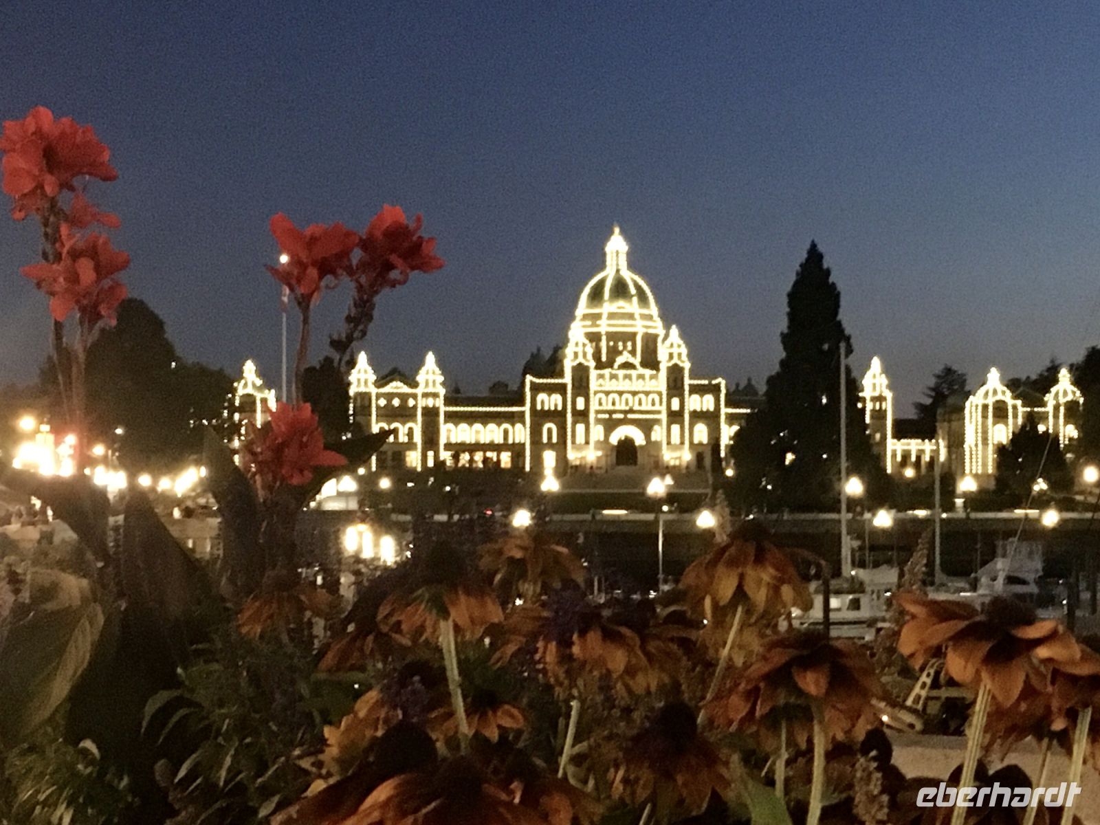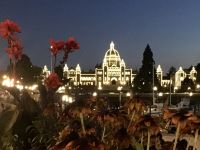 Oh wie herrlich, man erblickt schon wieder stahlblauen Himmel, das Zimmer ist sehr gross und angenehm temperiert und die Decken sind warm, aber der Tag lacht ins Zimmer. Nach dem Fruehstueck fahren wir gleich nach Ucluelet wo unsere «Romantische Wanderung» startet. Wir wandern eine Stunde der Kueste entlang in einem Regenwald. Die Aussichten aufs Meer sind einfach atemberaubend, die Eindruecke haftend. Die Rueckfahrt nach Nanaimo wird kurz mit einem Besuch bei einem legendaeren Tim Hortons unterbrochen, ansonsten doesen wir einfach vor uns hin und schauen einen Film an. Der naechste Halt ist in einer Freilicht-Gallerie. In Chemainus sind naemlich viele Hauswaende mit historischen Gemaelde bemalt. Man kann von einem Bild zum anderen gehen und sich manchmal sogar in ein Gemaelde hineinfotografieren. Auf der Hauptstrasse gibt es viele englische Geschaefte wo man allerhand „Abstaubmaterial“ kaufen kann. Das Eis aber, das ist wohl das Beste Eis auf der Insel. Eis geschleckt, gehts weiter in Richtung Sueden bis nach Victoria, unser heutiges Ziel der Reise. Die Stadtfuehrung durch die Hauptstadt von BC ist nicht sehr lange, denn die Innenstadt ist eher klein mit seinem alten Chinesenviertel, der Governement Street und dem Hafen mit dem gewaltigen Empress Hotel und dem Regierungsgebaeude. Die Geschichten von Francis Rattenburry, Mr. Dunsmuir, James Cook und vielen anderen Herrschaften vergangener Zeiten sind interessant, unterhaltsam und auch lustig. Morgen haben wir am Nachmittag Freizeit, dann werden die Geschaefte durchstoebert und nochmals diese Stadtteile angeschaut, welche besonders gefallen haben. Der Hafen mit seinen vielen Attraktionen sowie die Pubs stehen ganz oben auf der Victoria Lieblings-liste. Unser Hotel ist am inneren Hafen, ganz toll gelegen. Das Abendessen geniessen wir in einem Restaurant mit herrlichem Blick auf das tolle Empress Hotel.
