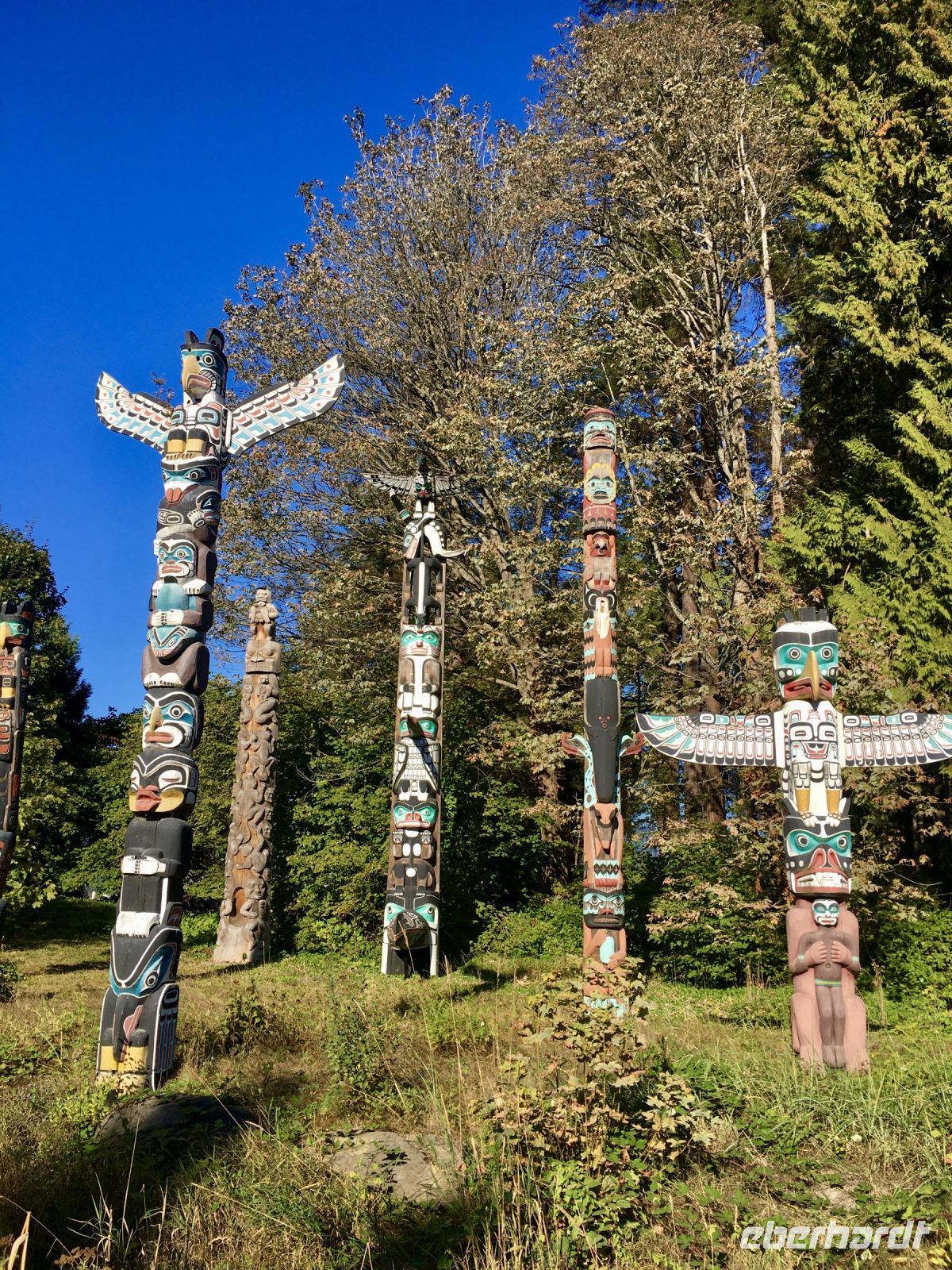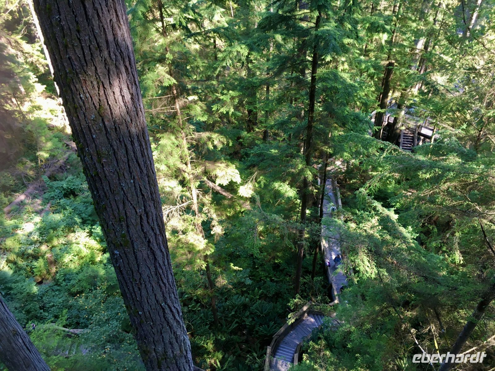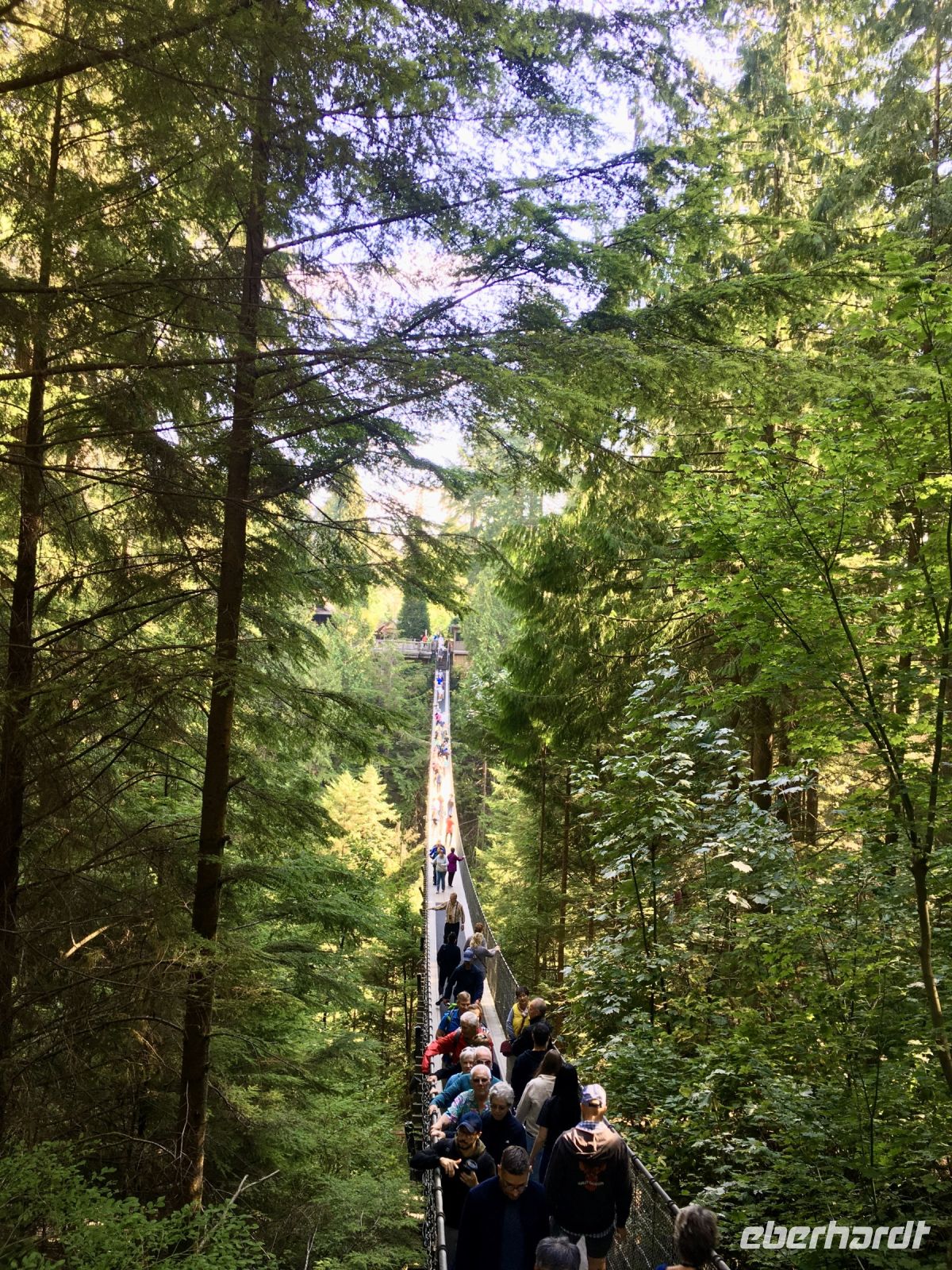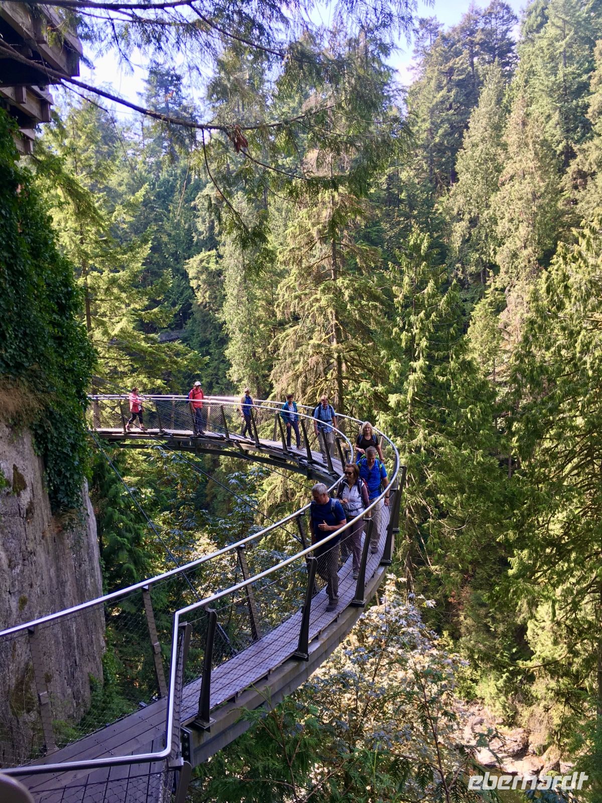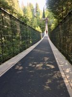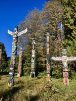 Wirklich, echt….schon wieder blauer Himmel….also hatten wir wirklich in 16 Tagen bloss einen Vormittag Regen…..nach Kanada kommen wir wieder. Nach dem Fruehstueck steht auch schon Ken, unser neuer Fahrer vor dem Hotel. Er faehrt einen riesengrossen weissen Bus und verweist nach einer kurzen Besprechung auch gleich darauf hin, dass er uns NICHT zu dem Park fuehren wird, den wir heute anpeilen. Na ja, da steigen wir eben wieder aus und fahren mit Taxis zum Lighthouse Park. Das ist nicht so einfach wie sonst, da gerade 2 Kreuzschiffe aus Alaska eingefahren sind die rund 6000 Leute ausgespuckt haben, die nun auch alle Taxis brauchen um in ihre Hotelunterkuenfte zu gelangen. So schnappen wir uns welche auf der Strasse und gelangen so an Destination. Oh wie wunderschoen, ruhig, urchig und dicht bewachsen doch dieser Park ist. Wir wandern und machen auch oft Abstecher fuer herrliche Aussichten. Durch einen Urwald ueber Stock und Stein fuehrt der Wanderweg von einem Aussichtspunkt zum anderen. Der Leuchtturm ist die Kroenung. Schaut die Bilder dazu an. Der neu organisierte Bus mit Joshi am Steuer steht bereits beim Parkplatz. So faehrt uns Joshi nach Nord Vancouver um die beruehmte Haengebruecke zu besichtigen und unseren Mut zu testen. Schon ganz schoen beeindruckend. Wir machen uns einen Spass daraus, indem wir versuchen ohne anzuhalten ueber die wackelige, 137 Meter hohe und 70 Meter lange Hängebrücke zu gehen. Gar nicht einfach bei so einem Andrang von Personen auf der Bruecke, die kommen, gehen, stehen und fotografieren. Wir schaffen es alle und haben promoviert den Baumwipfelweg zu unternehmen. Das ist nun wirklich imposant. Um zur Mittagspause zu gelangen, muessen wir nun wieder ueber die verrueckte Haengebruecke, der Magen knurrt jedoch so wild, dass wir uns dem Schicksal einfach hingeben, wir sind ja nun geuebt. Aber noch ehe der Mittagspause beginnt das naechste Abenteuer. Der neueste Felssteig in diesem Park wartet schon auf uns. Wir sind gut, wir koennen das und werden deshalb auch mit einem Zertifikat belohnt, welches wir zu Hause, natuerlich aufhaengen werden. OK, bloss im Gaesteklo ! Der naechste Halt ist bei der Gondel auf Grouse Mountain. Hinauf fahren wir mit der riesen Gondel auf den 1250 Mt hohen Skiberg der Vancouveriten. Oben auf Grouse Mountain leben 2 Grizzly in einem grossen Gehege und beide zeigen sich heute von der besten Seite. Es ist bereits etwas herbstlich und die Fuetterung der beiden Winterschlaefer wird in ihrem offenen Winterbau serviert. So gewoehnen sie sich langsam wieder an die Tenne. Wir beobachten Grinder und Coola eine ganze Weile und eine Waerterin wirft jedem auch einen gefrorenen Lachs zu an dem die Grizzlis genuesslich saugen, schlecken und fressen. Der Sessellift auf die Bergspitze ist heute auch in Betrieb, so machen wir dies natuerlich auch mit. Ganz langsam ist sie eingestellt sodass man gut fotografieren kann. Wieder unten, gehen wir jetzt zur Holzhacker Show. Es ist sehr lustig die Holzhacker saegen, hacken, schnitzen und klettern um die Wette und werden von den Zuschauern lauthals angefeuert. UUUUps, es ist bereits 5 Uhr Nachmittags, Zeit fuer unser Aperitif und das Abendessen. Die Aussicht auf Vancouvers Haeusermeer ist bezaubernd genauso das Bier und der Wein der uns hier von der Firma offeriert wird. Was fuer eine tolle Reise, danke Eberhardt, danke Canadian Travel Partners, wir haben jeden Moment genossen (ausser dem allerersten Tag !) aber den haben wir laengst vergessen. Nach dem schoenen Abendessen gondeln wir wieder hinunter und Michael unser 3. Fahrer heute, faehrt uns zurueck in unser Hotel. So verneigt sich ein wuenderbarer Tag und gibt seinen Platz einer guten Nacht mit schoenen Traeumen weiter.