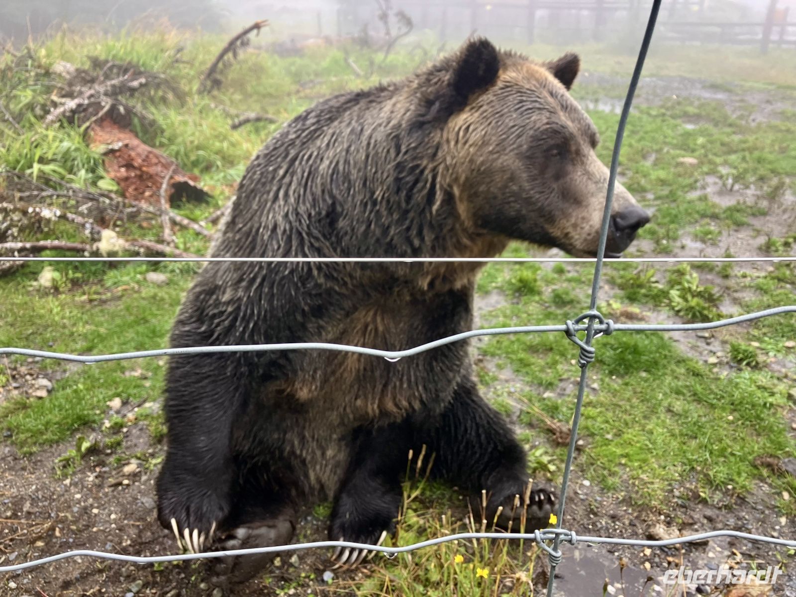Der naechste Halt ist Grouse Mountain. Wir verabschieden uns von John und rennen unter dem weinenden Himmel in das Ticket Haeuschen. Hier steht auch schon Claudia, Freundin von Elisabeth und Besitzerin des hiesigen Vertragspartners von Eberhardt. Wir plaudern ein wenig und dann gehts hinauf mit der riesen Gondel auf den 1250 Mt hohen Skiberg der Vancouveriten. Oben auf Grouse Mountain leben 2 Grizzly in einem grossen Gehege und beide zeigen sich heute trotz des Regens von der besten Seite. Es ist bereits Herbst, nein, es schneit noch nicht aber die Fuetterung wird in ihrem offenen Winterbau serviert. So gewoehnen sie sich langsam wieder an die Tenne. Wir beobachten Grinder und Coola eine Weile ehe wir, total durchnaesst zur Station zurueckgehen. Hier gibt es ein Kaffeehaus mit Kamin, eine Bar unten, ein Theater wo interessante Dokumentar Filme ueber die Baeren und Grouse Mountain gezeigt werden und auch ein paar Geschaefte, die nun ihre Sommerkollektion an den Mann oder die Frau bringen moechten. So vergeht die Zeit allzu schnell und es ist Zeit fuer unser tolles Abendessen im oberen Restaurant. Unser elegantes Abschiedsessen nehmen wir hier oben in dem Luxusrestaurant in unser Wanderbekleidung ein. Toll, wenn man sich so verwoehnen lassen kann. Die Speisen sind vorzueglich und wir amuesieren uns koestlich. Von der Sicht sieht man bis zum Dessert eigentlich nichts. Aber dann, ploetzlich oeffnet sich der weisse Vorhang und die Stadt zeigt sich unter uns. Bei der Talfahrt mit der Gondel schauen wir nochmals auf die hell erleuchtete Perle des Pazifiks hinunter. Wie schoen doch dies Vancouver ist. Unten angekommen, ist unser Bus bereits da und mit dem indischen Dave fahren wir durch die Stadt zurueck zu unserem Hotel. Viele schoene Lieder werden auf dieser Rueckfahrt lauthals gesungen, Kareoke ahoi ! Wir sind eine tolle und sehr froehliche Truppe. Im Hotel angekommen, muessen wir nun die noch immer feuchte Bekleidung und vor allem die Socken ausziehen und ich bin sicher, dass sich nun einige unter der Dusche oder im Bad aufwaermen. Gute Nacht liebe Freunde, es war so ein nasser und doch so ein froehlicher Tag.