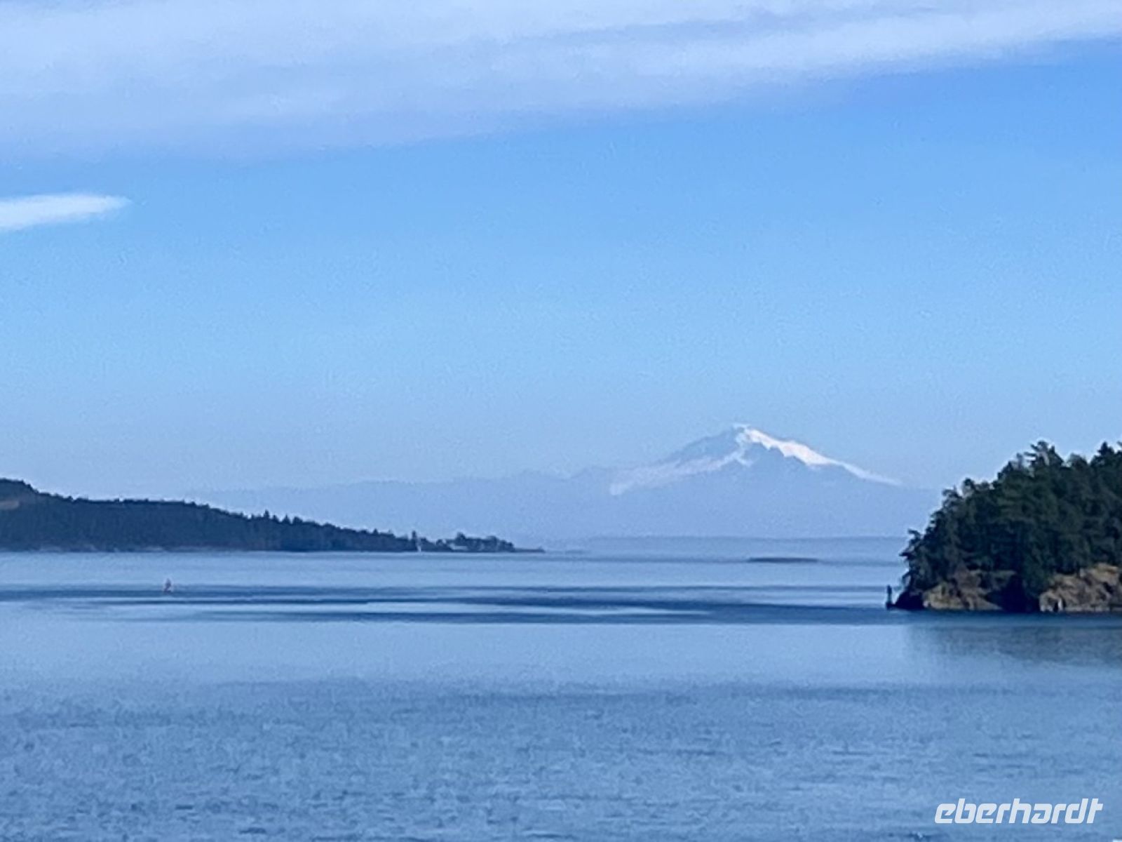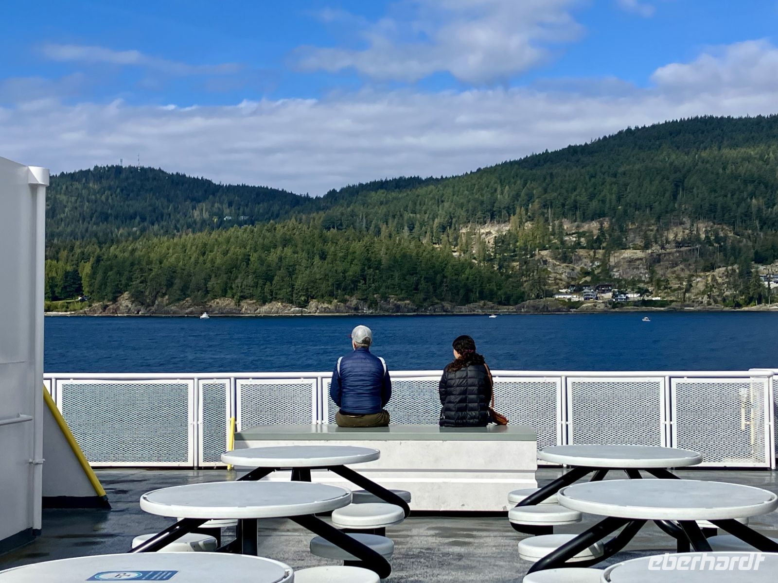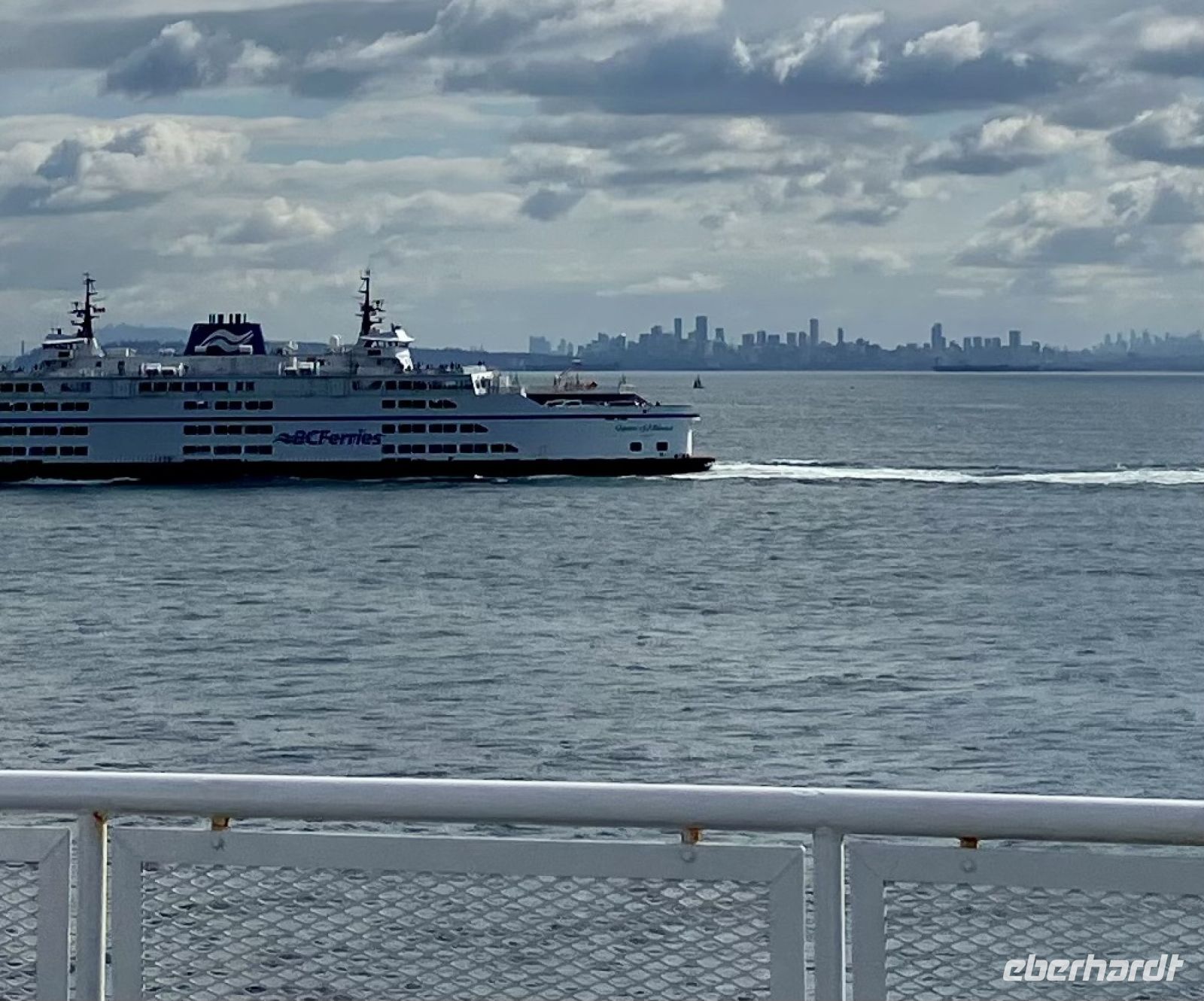Mittags sind wir auf der Faehre und sehen auch den schwebenden Mount Baker im Staate Washington in den USA. Die Sonne strahlt, es ist wie eine Mini-Kreuzschiffahrt durch die Inside Passage. Die 1 ½ Stunden sind sehr schnell vorbei. Bei Ankunft auf dem Festland fahren wir in Richtung Norden nach Vancouver.