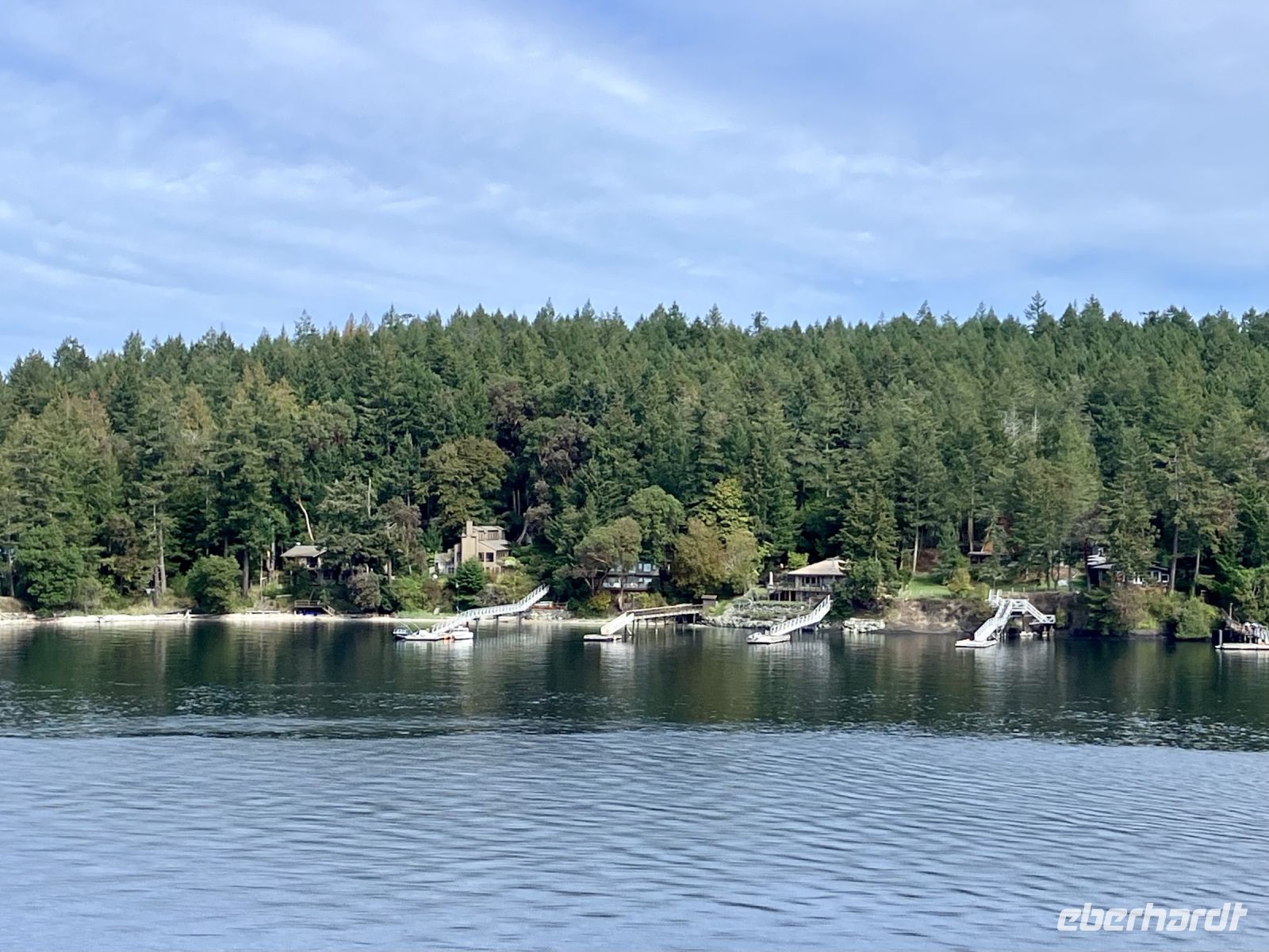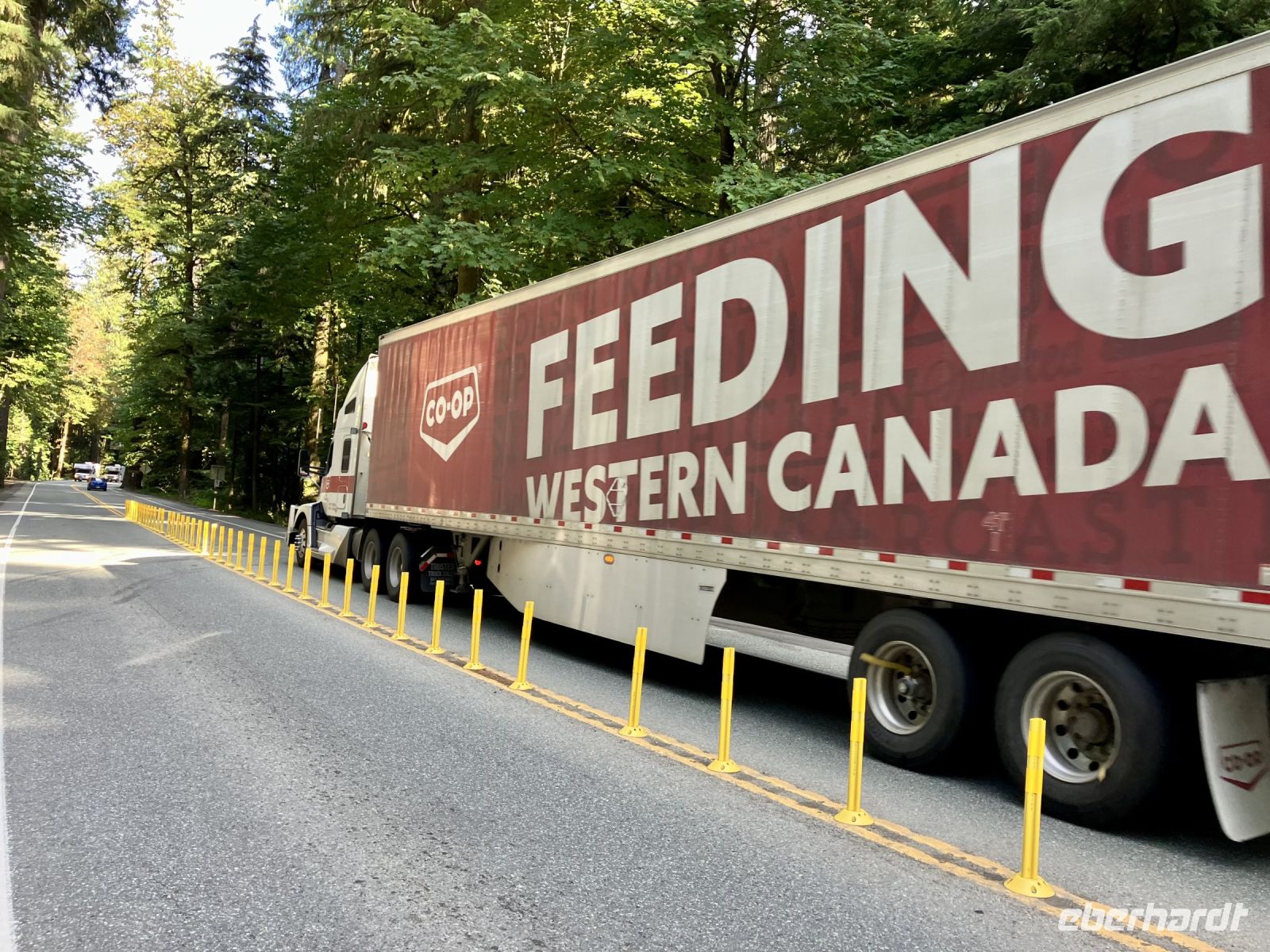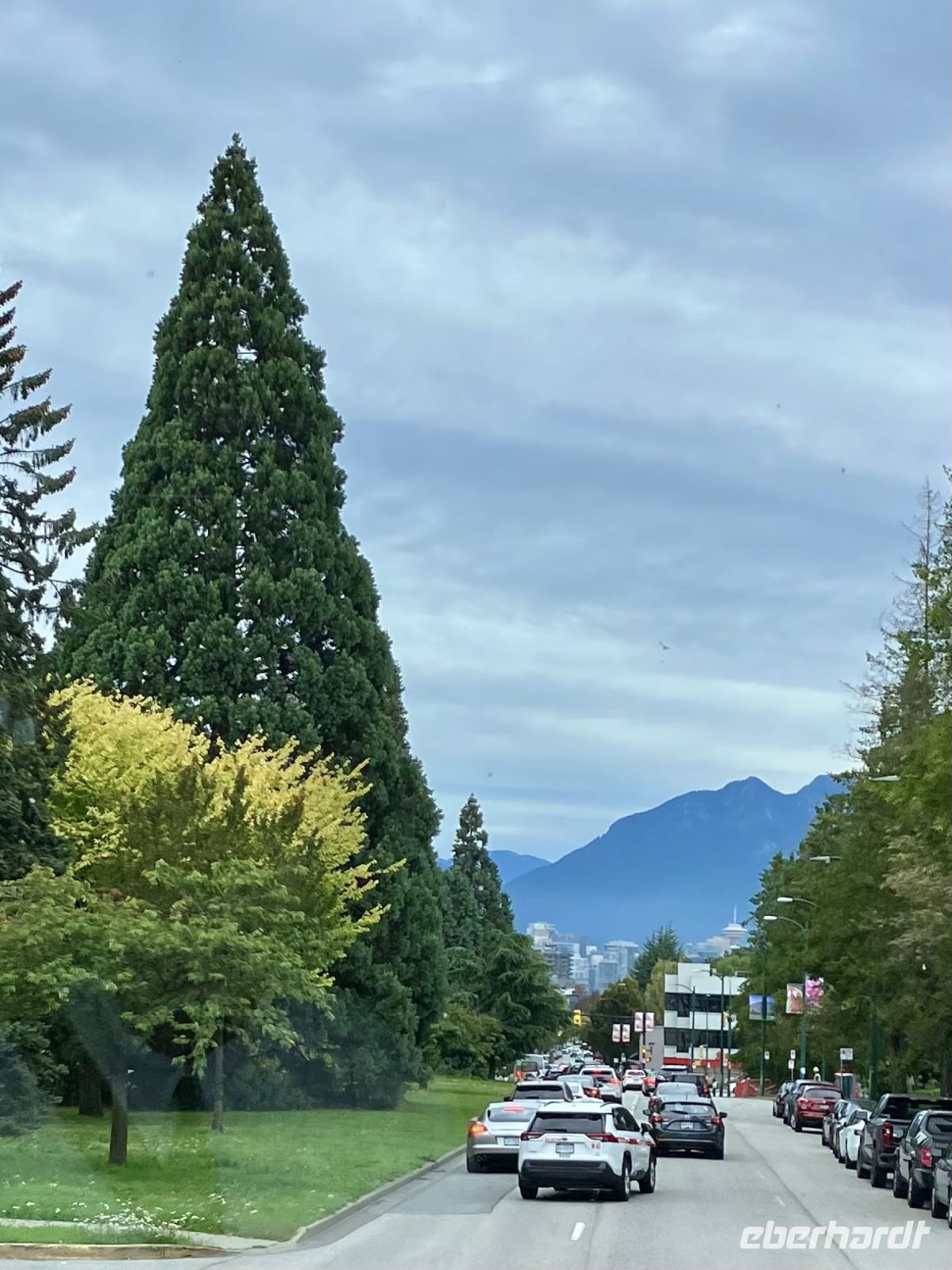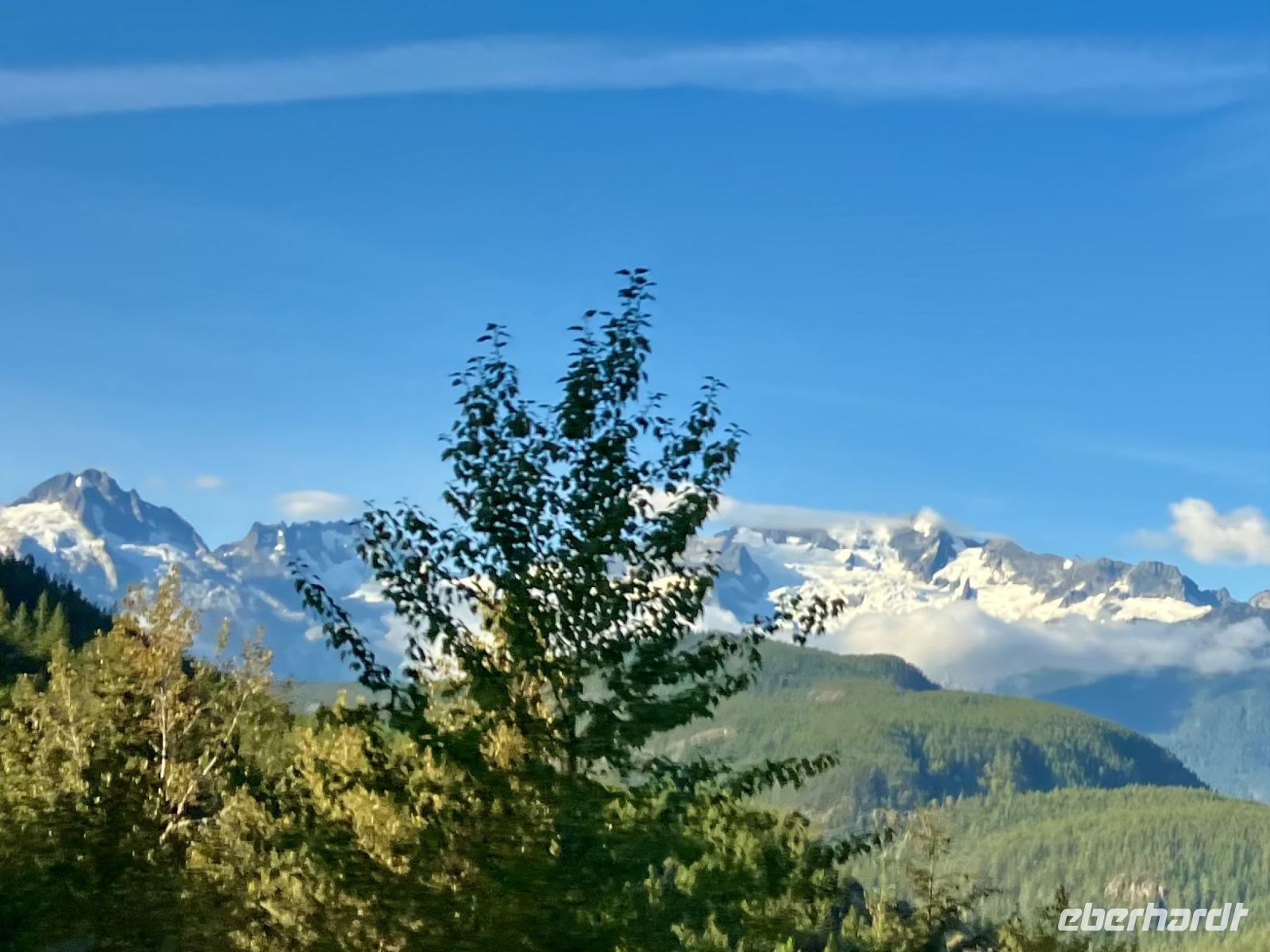 Mittags sind wir auf der Faehre und sehen auch den schwebenden Mount Baker im Staate Washington in den USA. Die Sonne strahlt, es ist wie eine Mini-Kreuzschiffahrt durch die Inside Passage. Die 1 ½ Stunden sind sehr schnell vorbei. Bei Ankunft auf dem Festland fahren wir in Richtung Norden nach Vancouver.