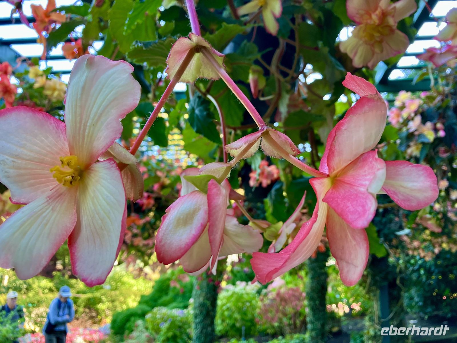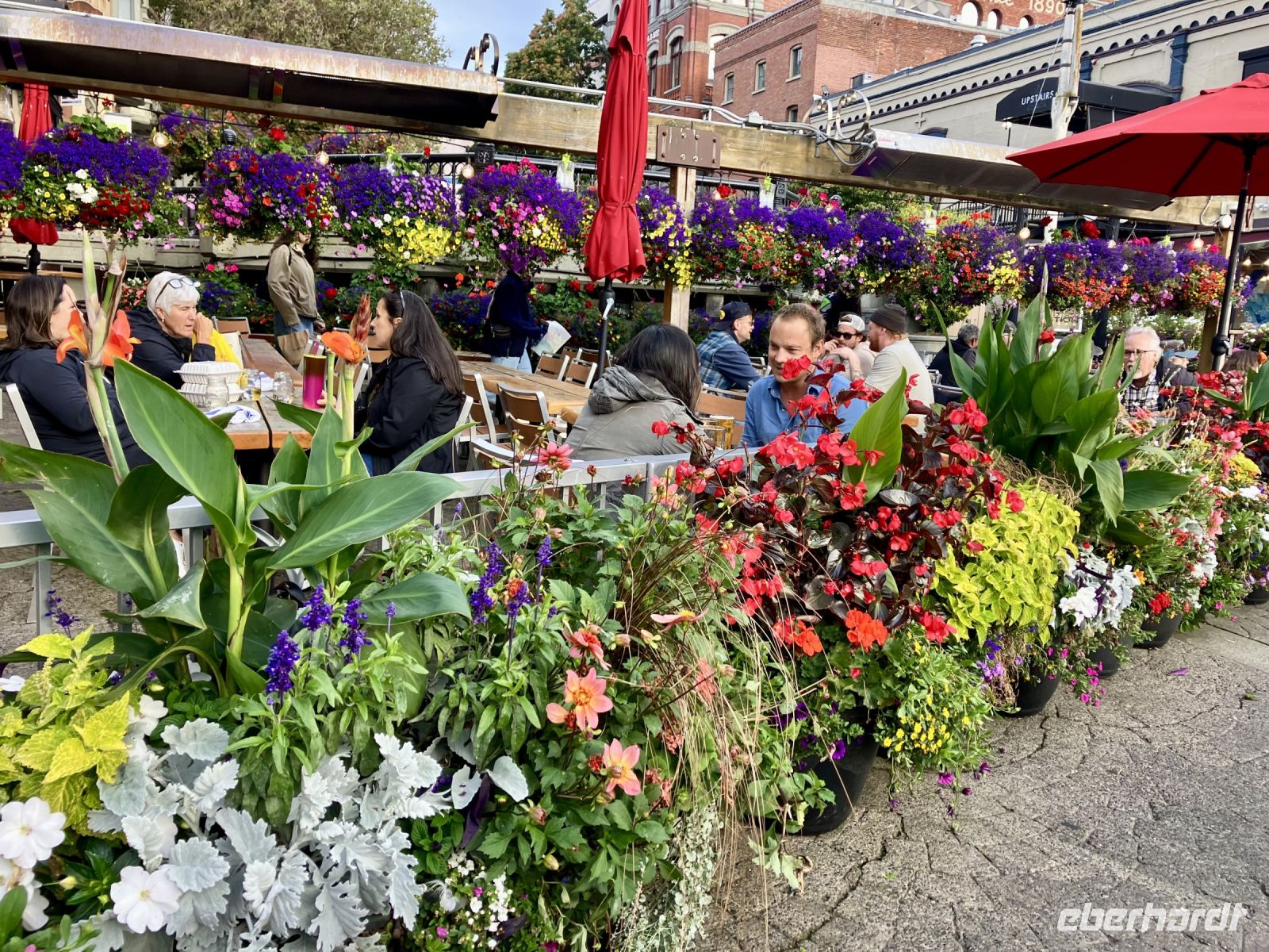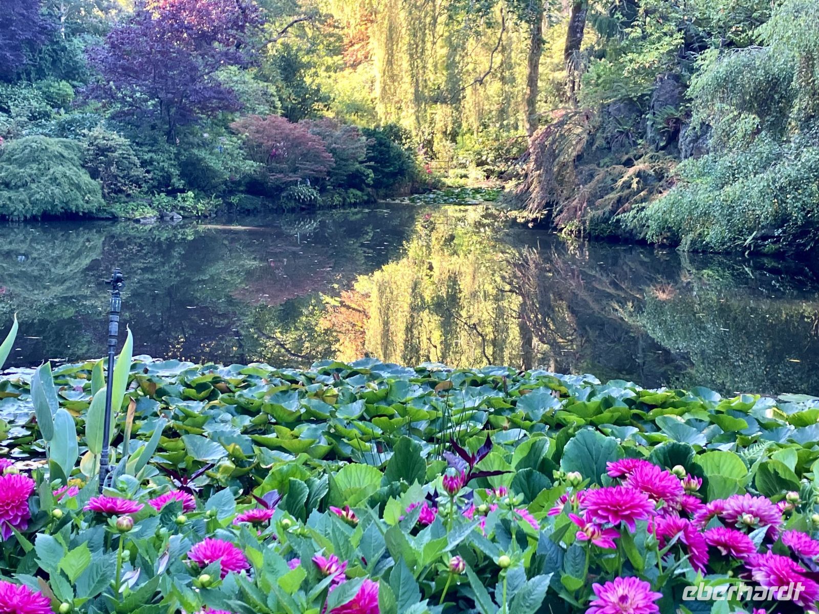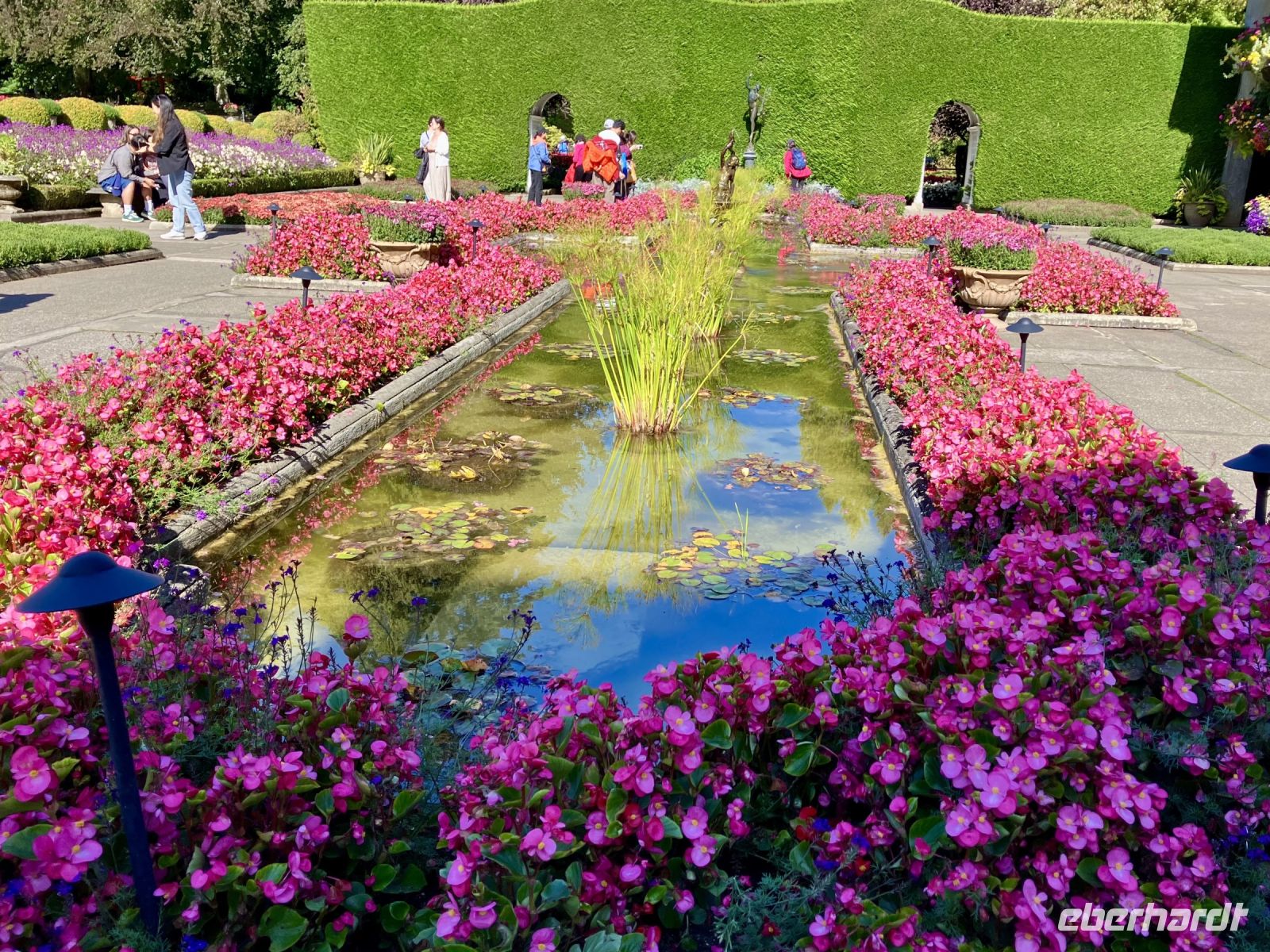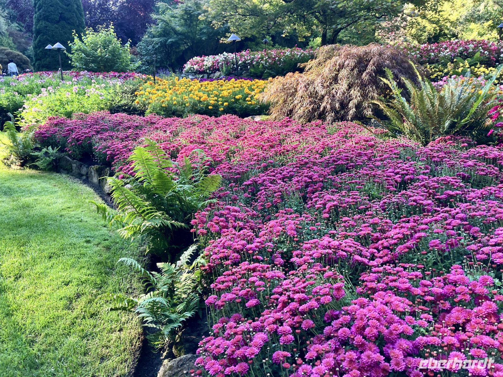 Danach gehts weiter in die Butchart Gardens. Eine riesengrosse Anlage mit verschiedenen Gaerten erwartet uns hier. Elisabeth darf uns hier leider nicht mehr begleiten, also bekommen wir die ganze Fuehrung beim Eingang, sodass wir uns hier nun wie in unserer Hosentasche auskennen. Vorerst der haengende Garten, dann den Wald-Garten, der versunkene Garten mit seiner Fontaene, den Rosengarten, den japanischen Garten, der franzoesische- und, zu guter Letzt, der italienische Garten. Bis wir wieder beim Kaffeehaus sind, sehen wir nur noch Blueten und Blumen vor unseren Augen. So beeindruckend sind diese Gaerten, dass ueber eine Million Gaeste sich jaehrlich diese Pracht anschauen. Wir auch !